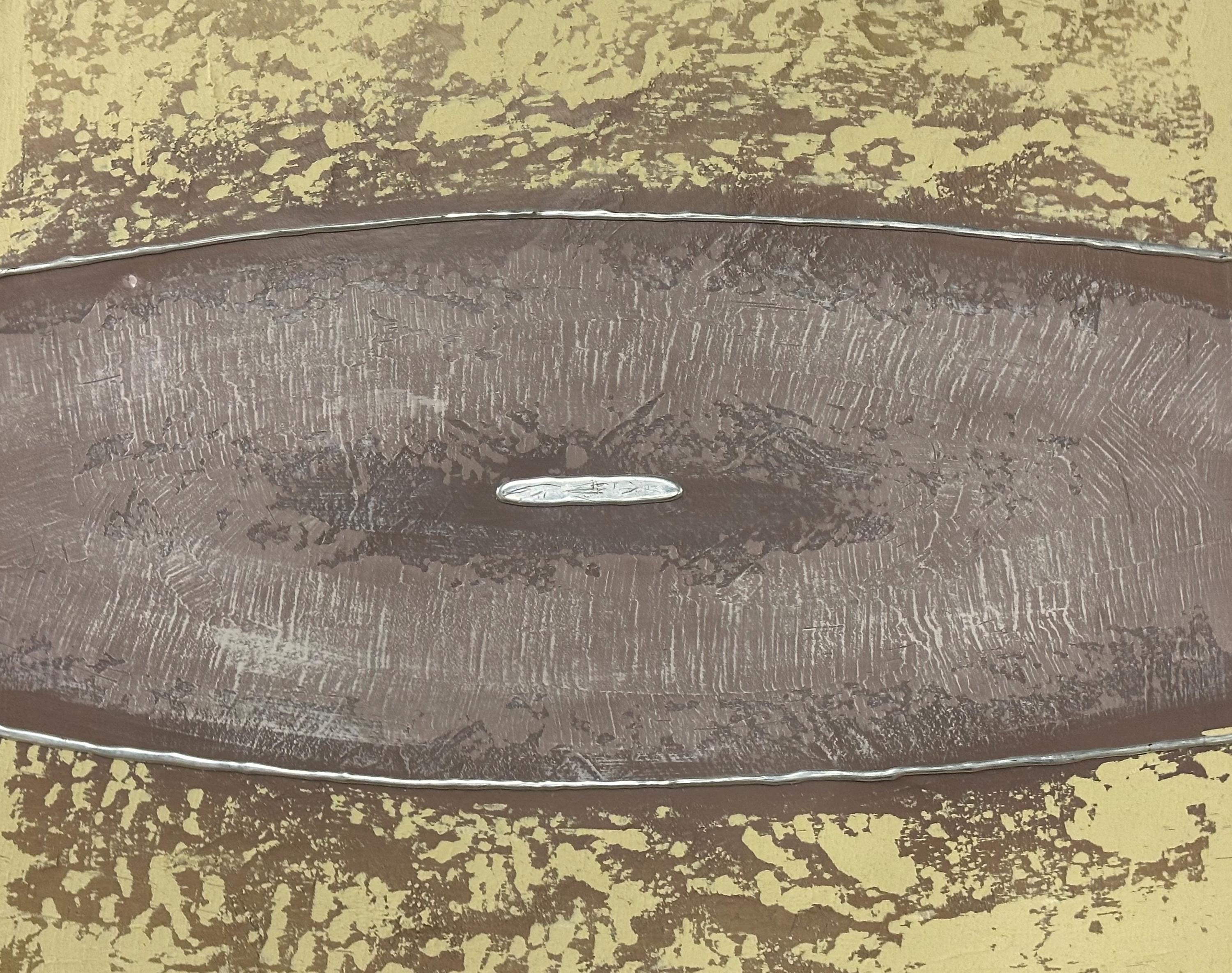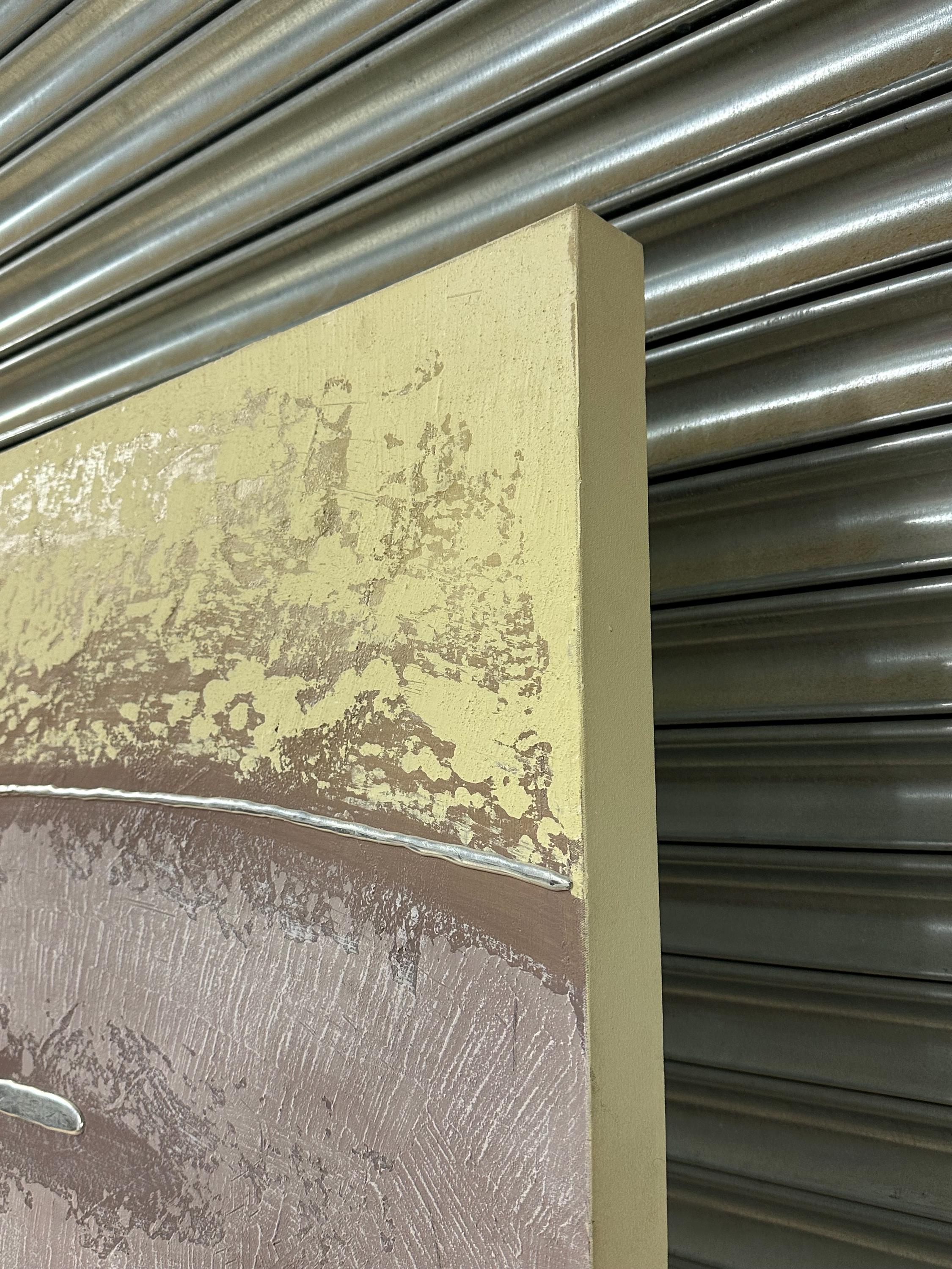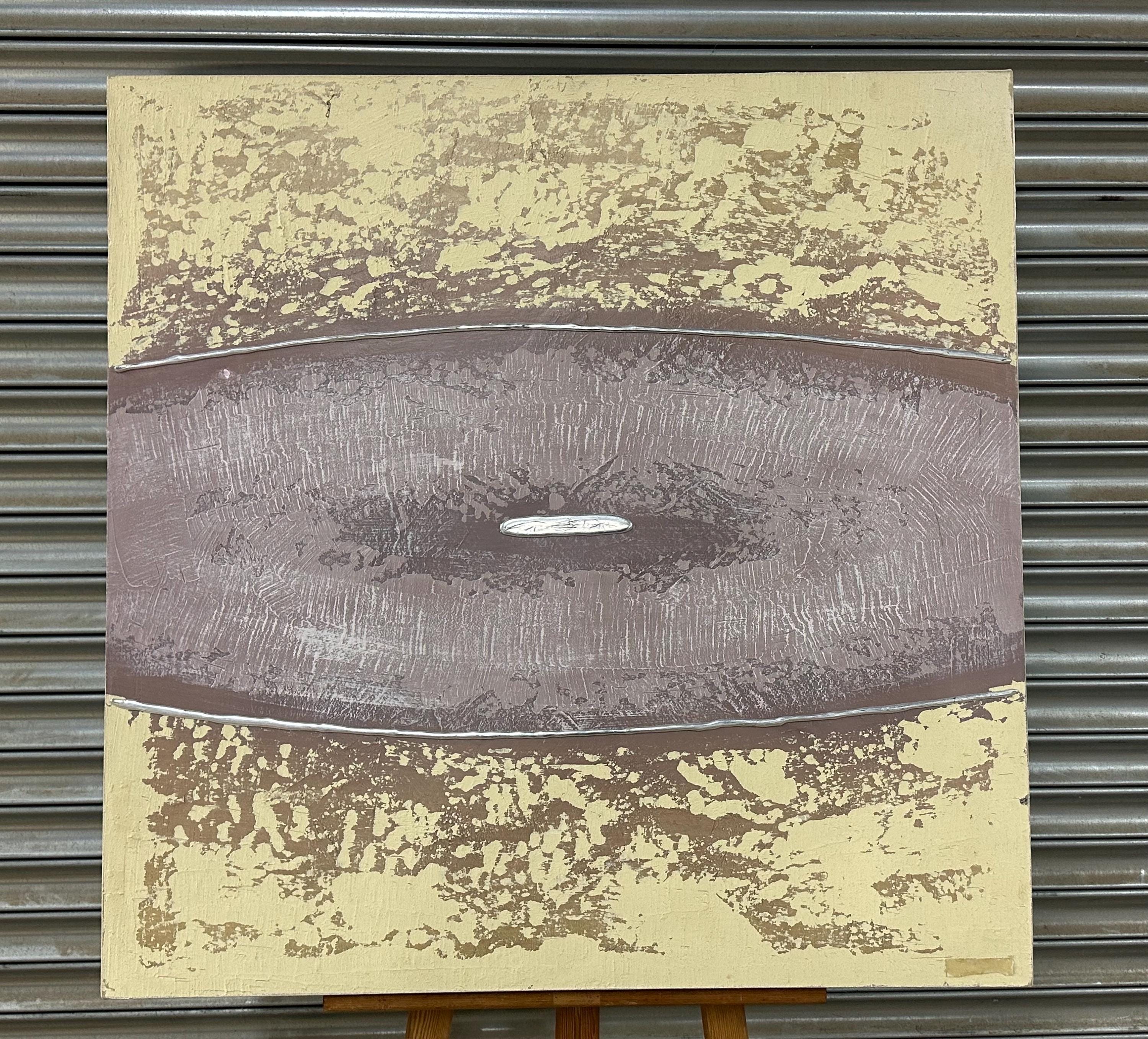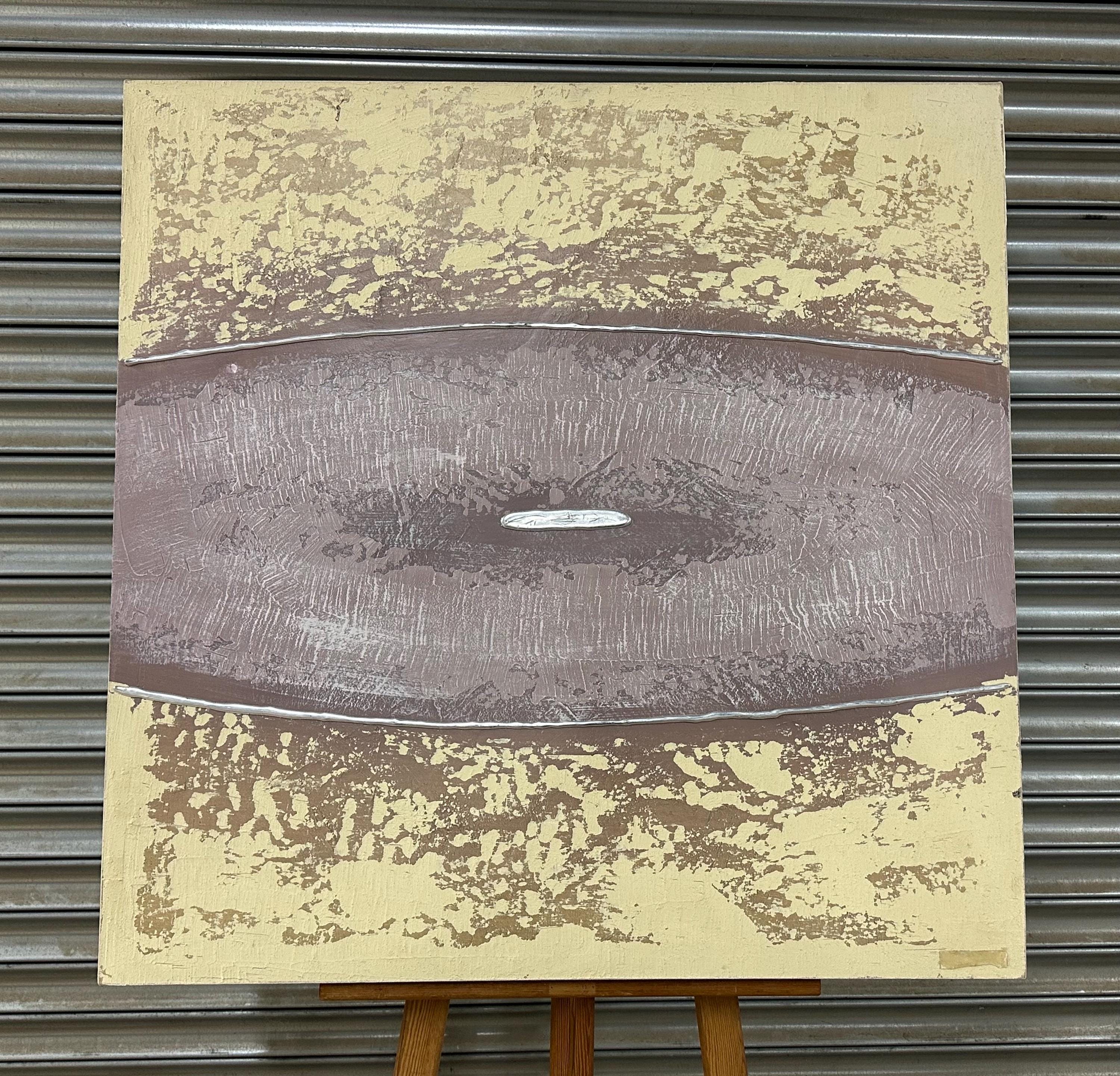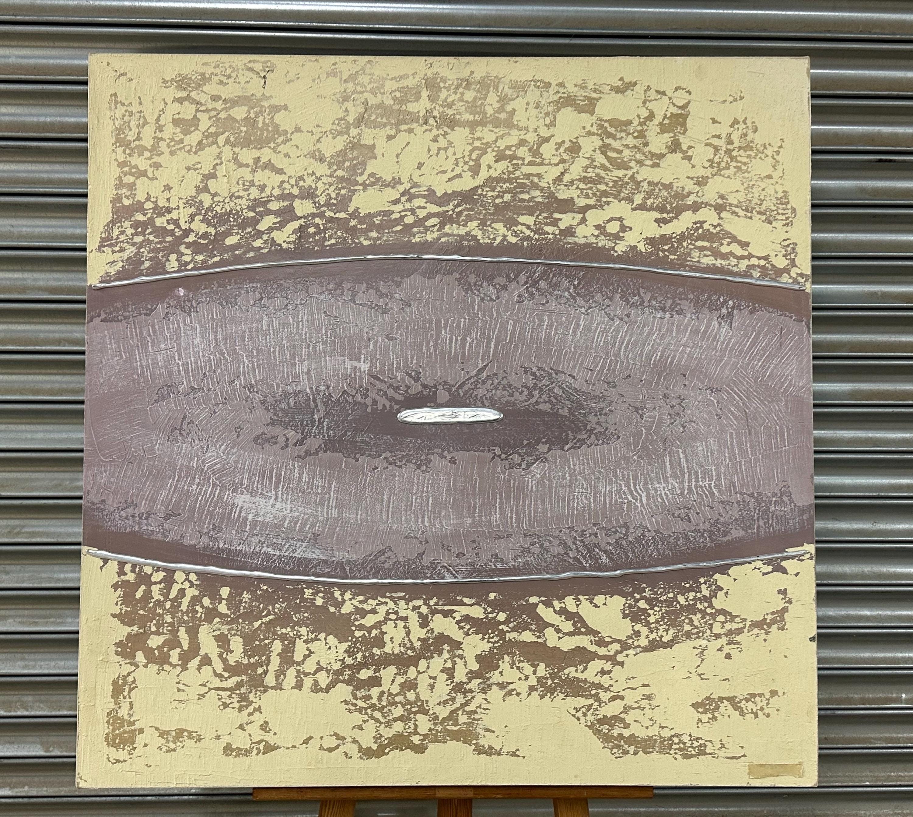 This large oil painting on canvas by Barty Bailey is a striking piece of modern abstract art featuring a serene, earthy colour palette. The composition is formed of horizontal bands in textured layers of taupe, cream, ochre, beige, and muted mauve tones, creating a calm and balanced visual rhythm. The central section, painted in a soft mauve with hints of grey and lilac, draws the viewer’s attention and adds depth and contrast to the otherwise neutral hues.