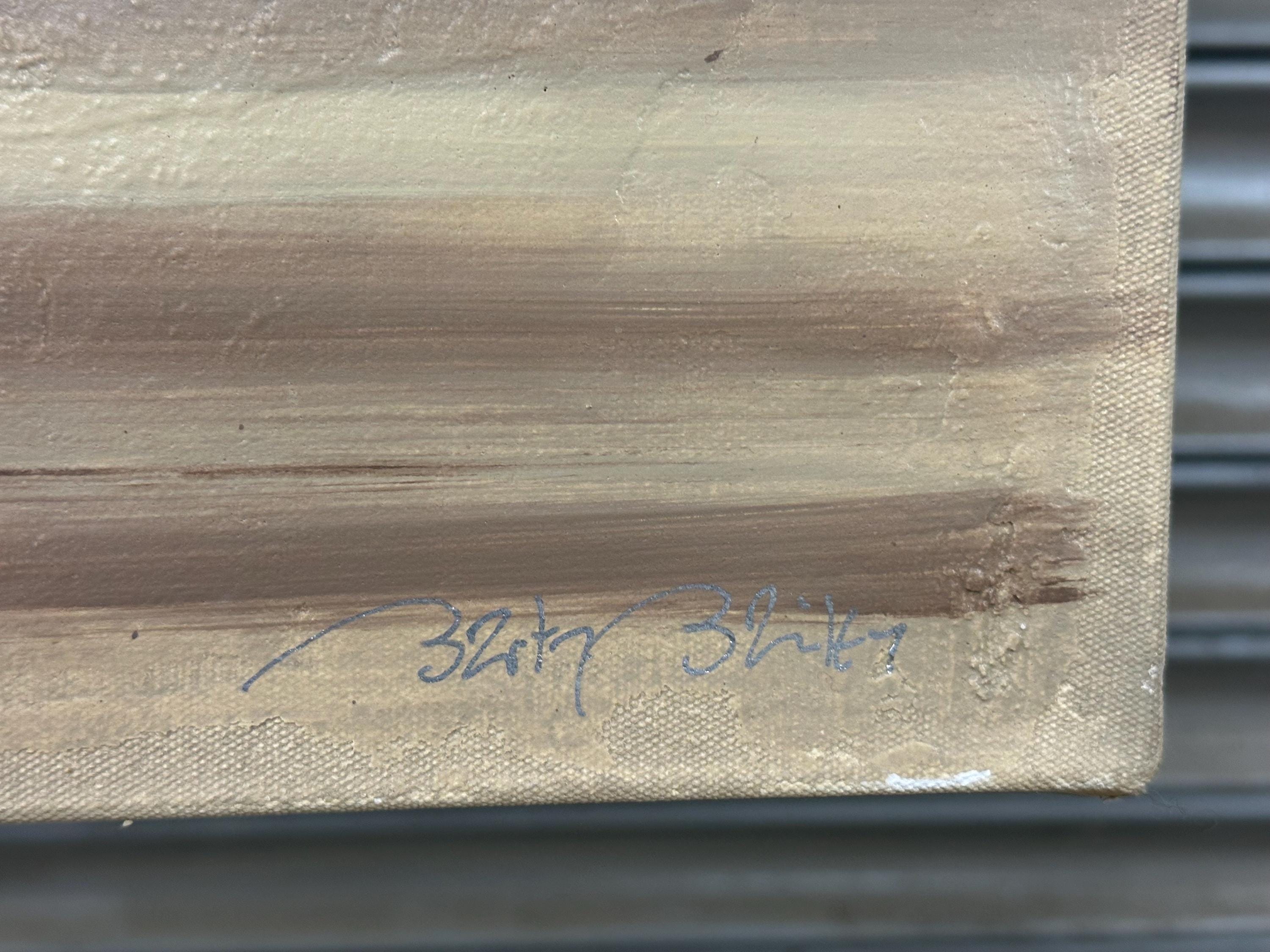 The artist’s use of thick impasto textures and subtle blending evokes a sense of landscape or horizon without depicting any literal scene — leaving interpretation open to the viewer. It has a minimalist yet sophisticated aesthetic, ideal for a modern or contemporary interior.