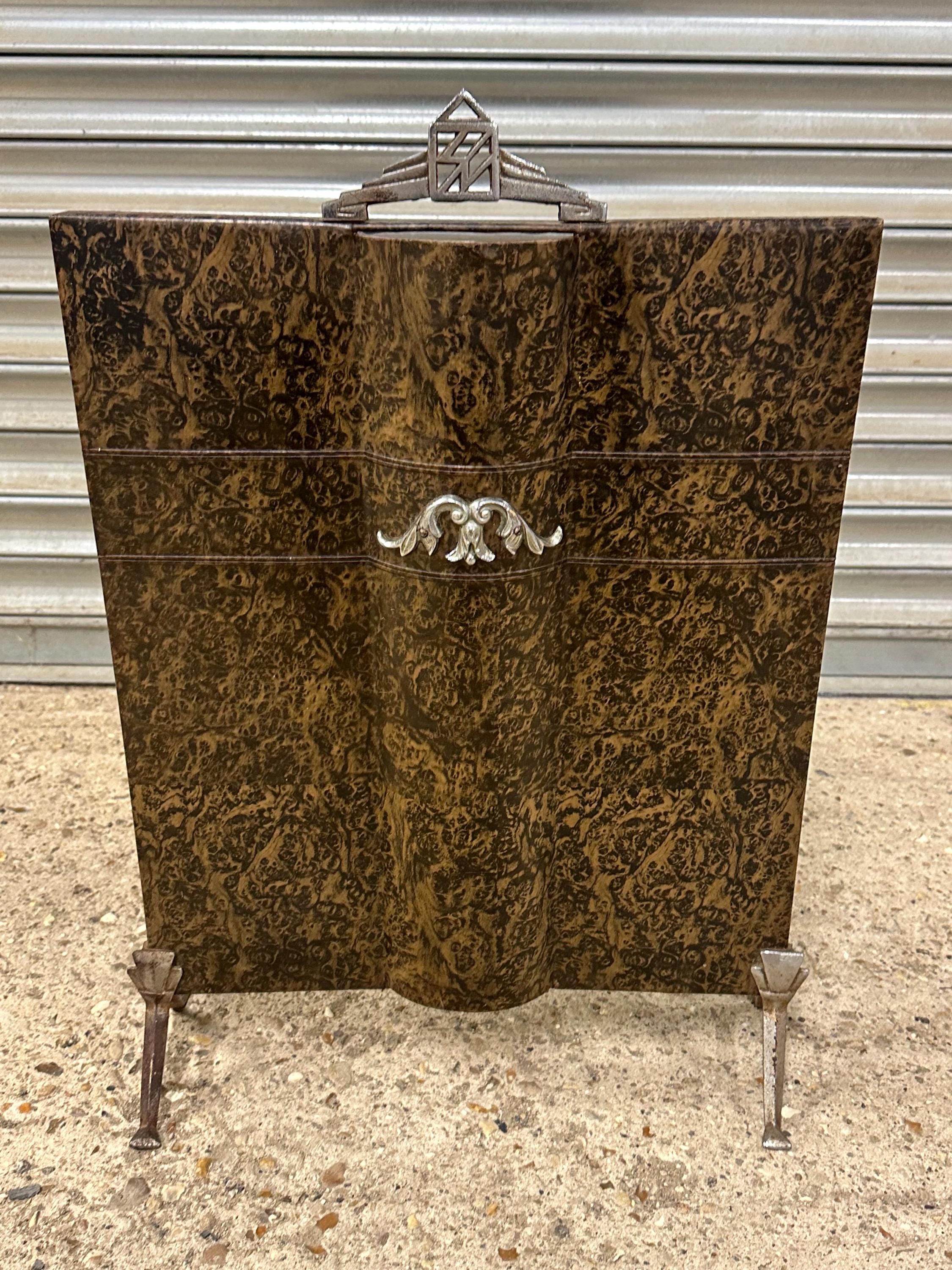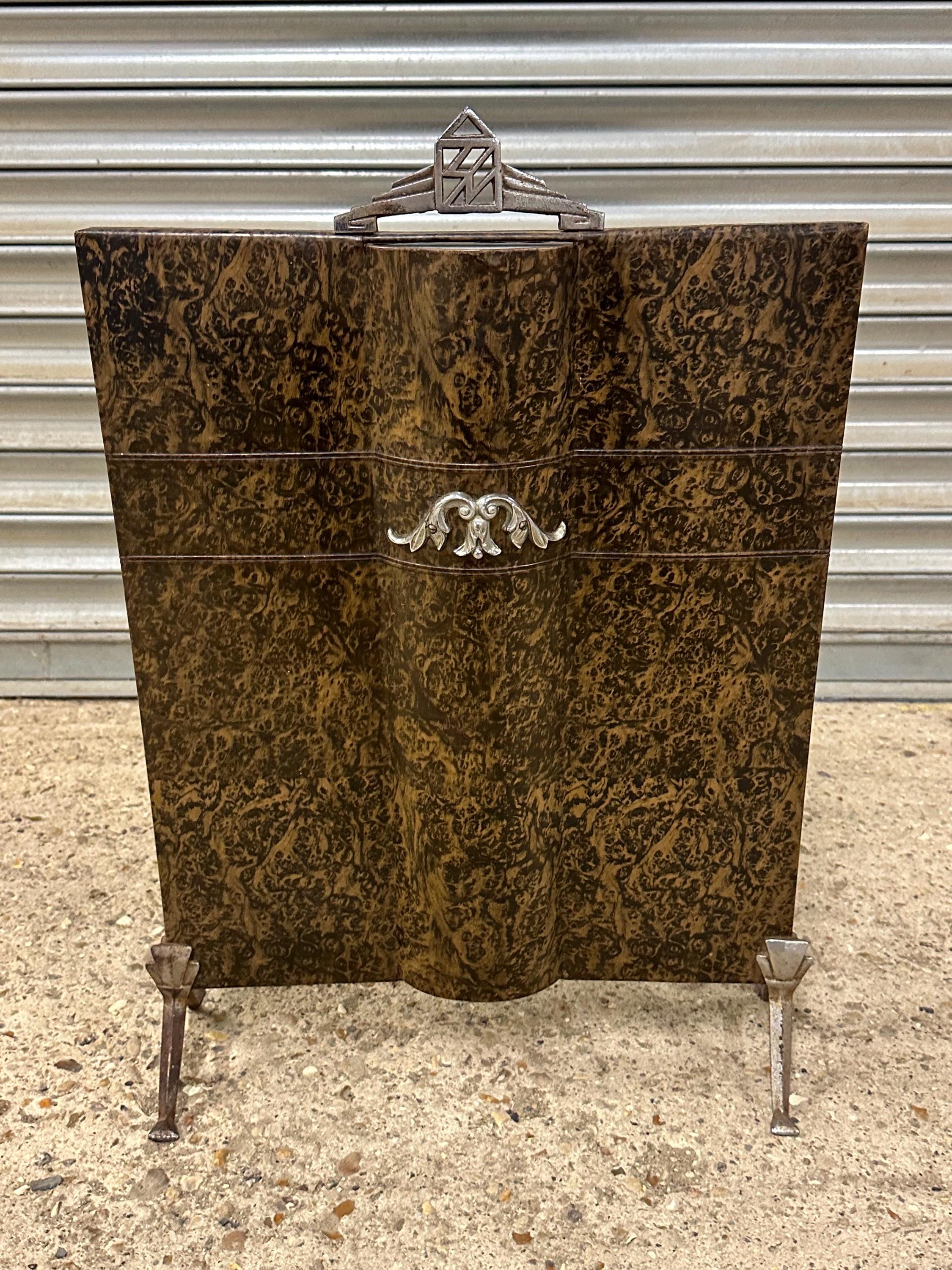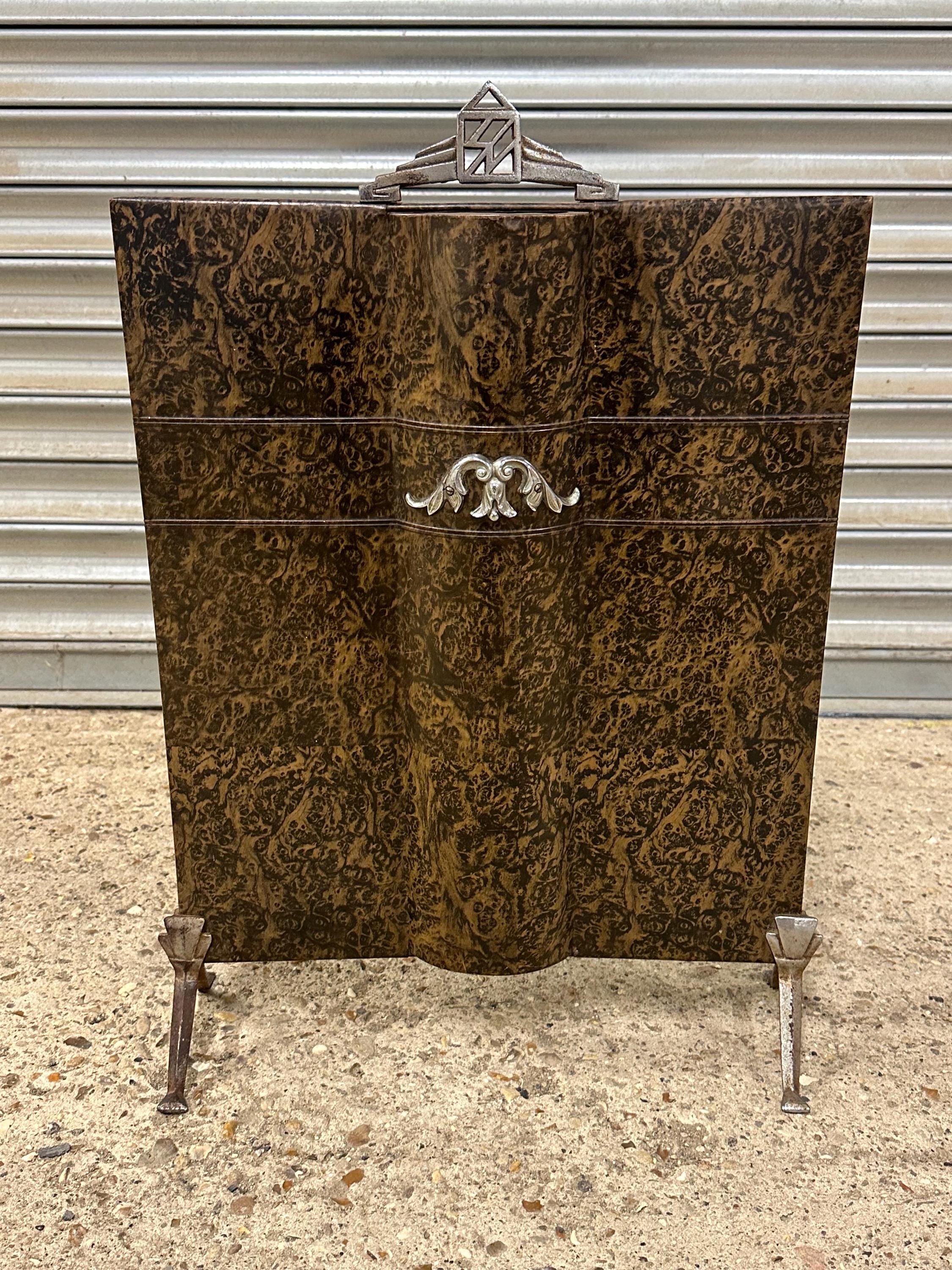 Vintage Art Deco Style Fireguard – Burl Effect Panel with Chrome Detailing
