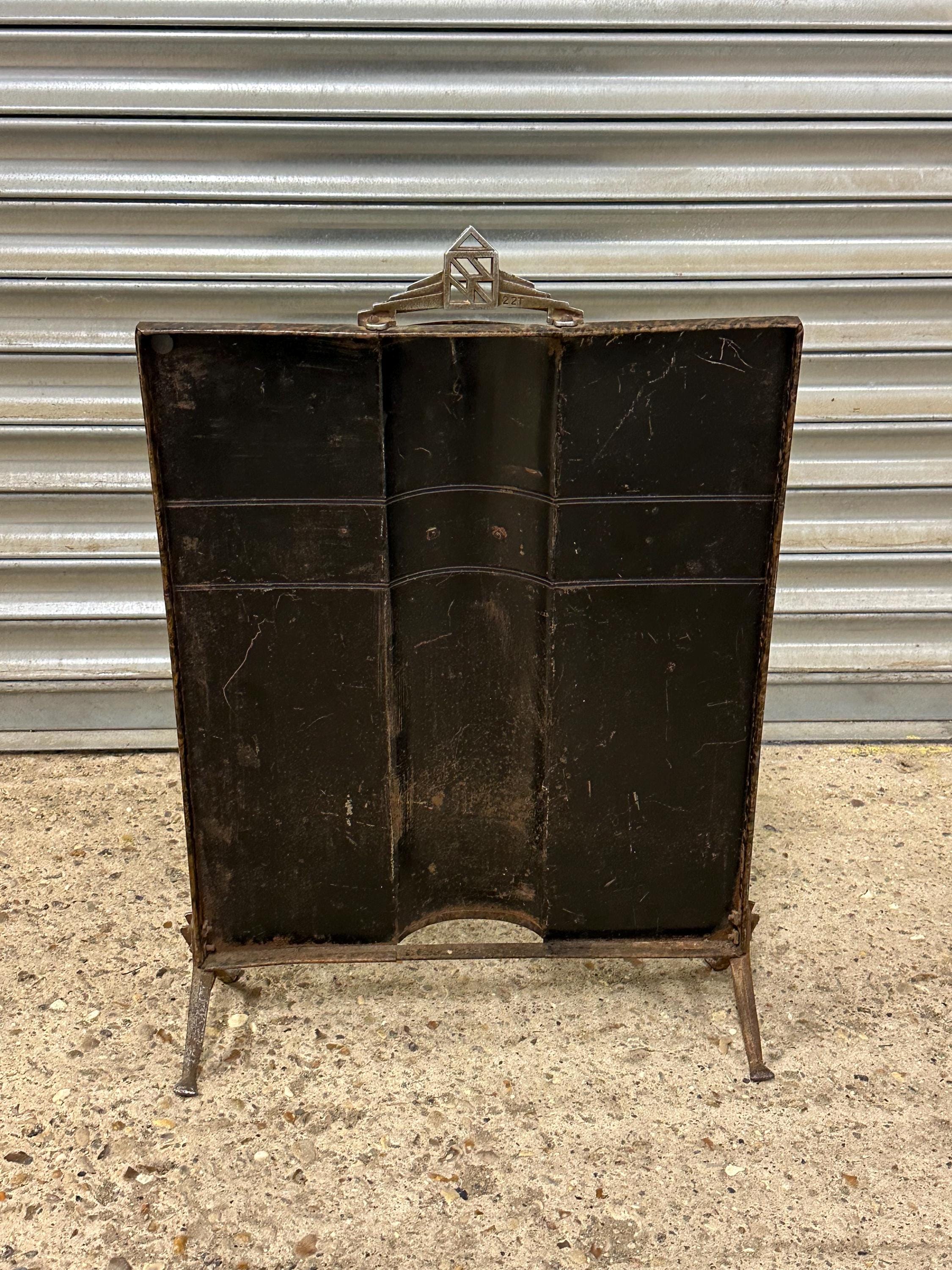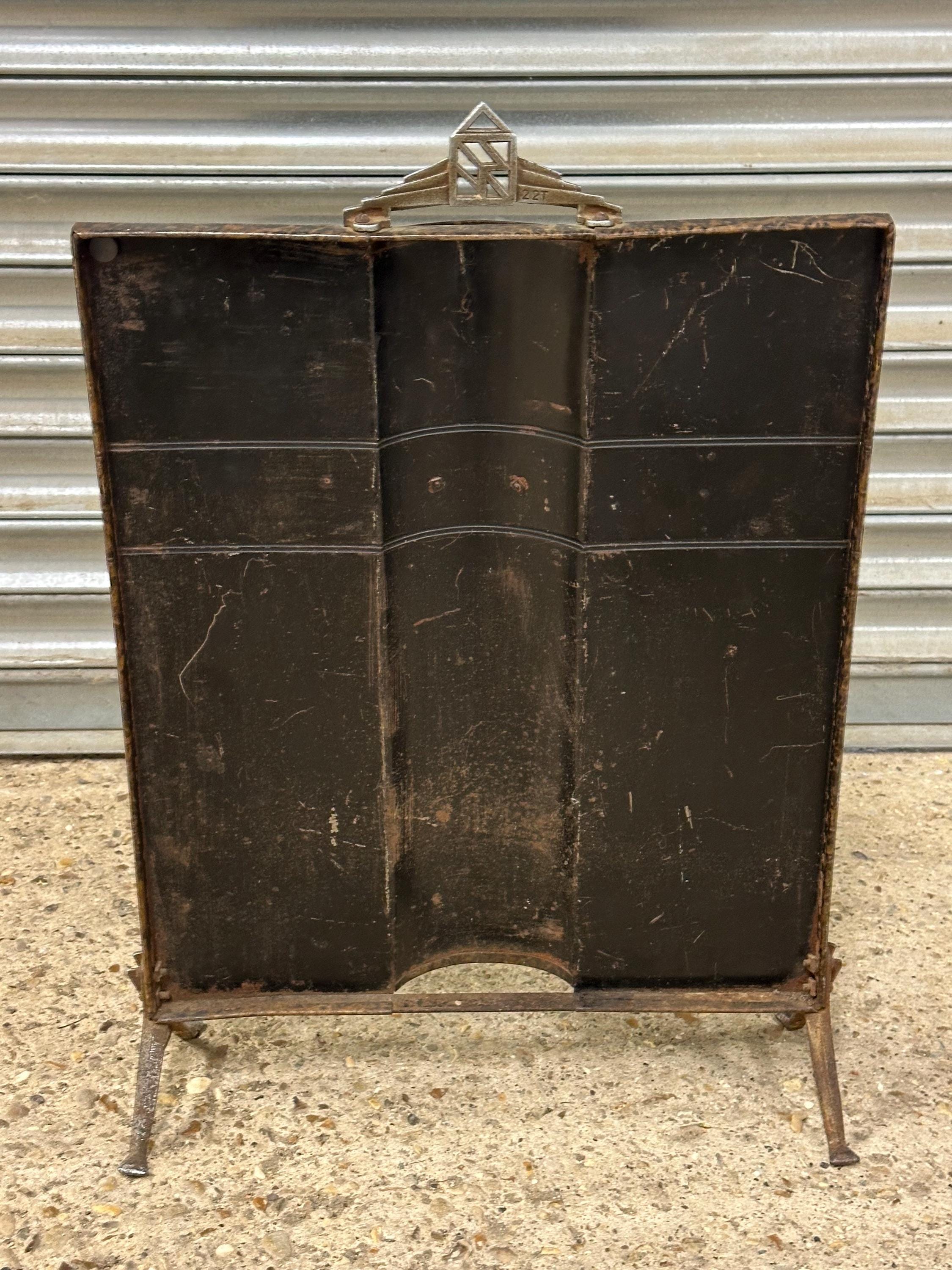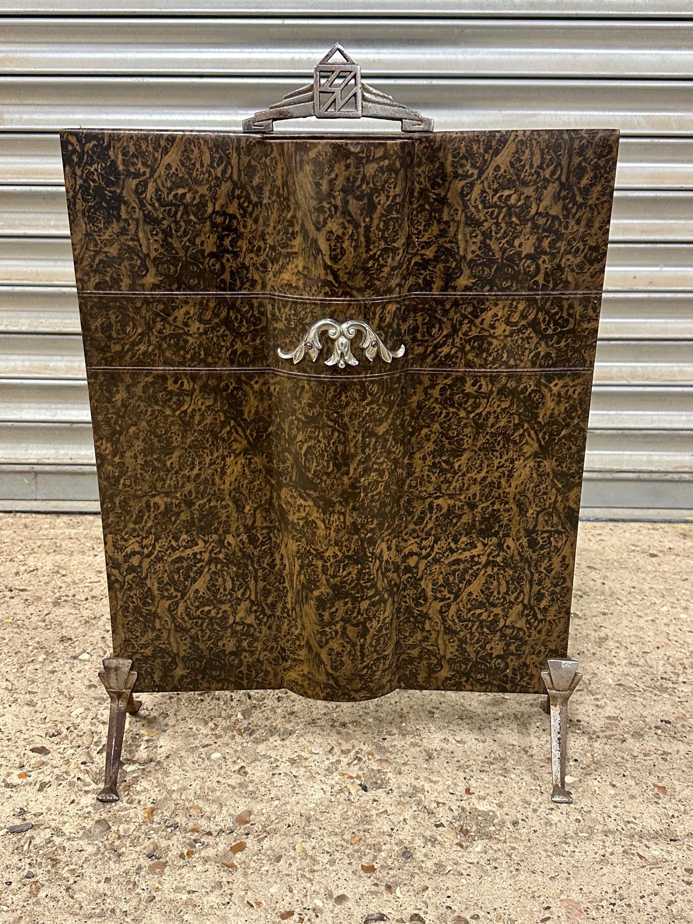 Vintage Art Deco Style Fireguard – Burl Effect Panel with Chrome Detailing