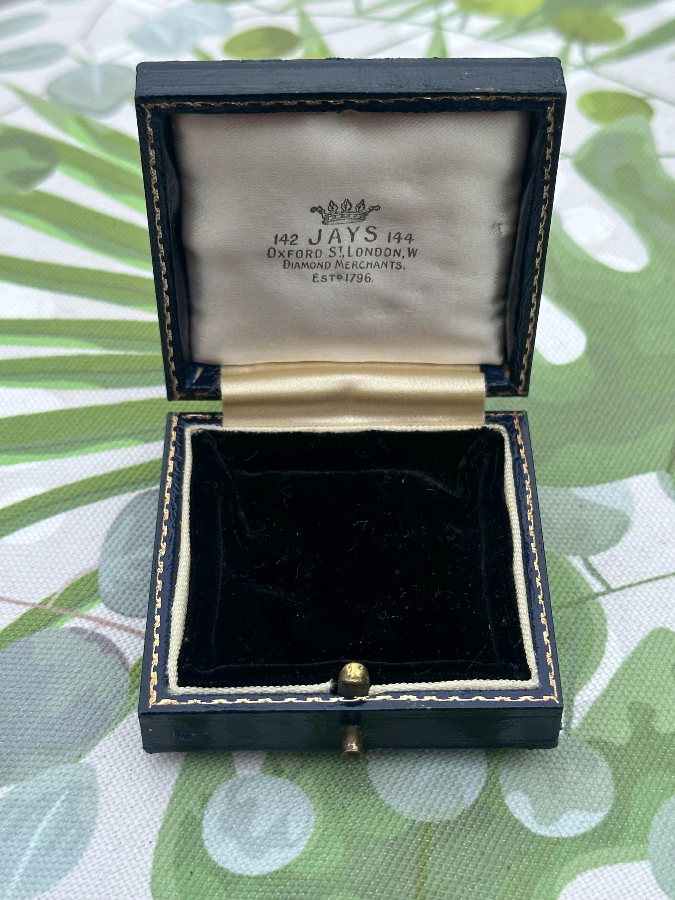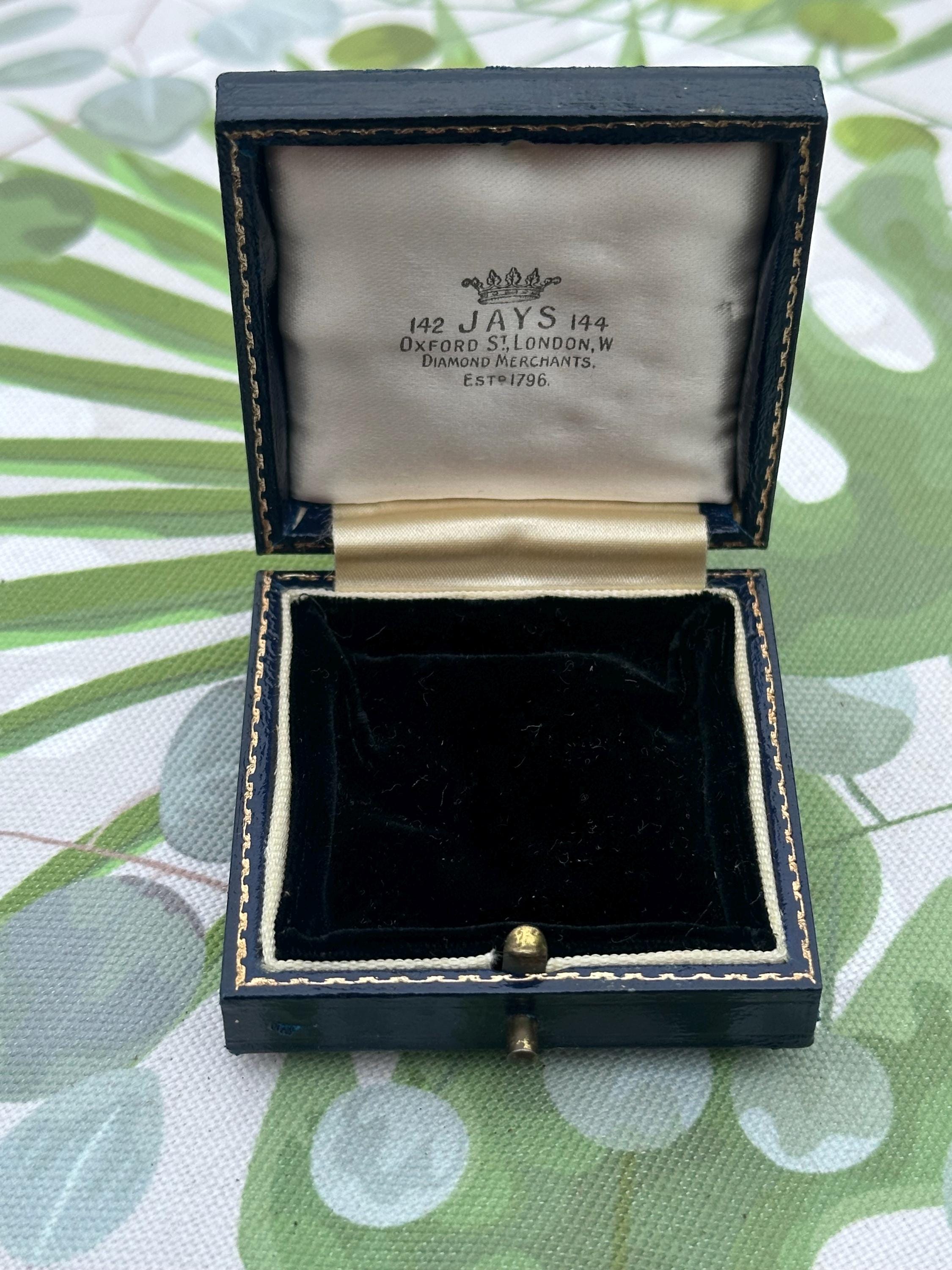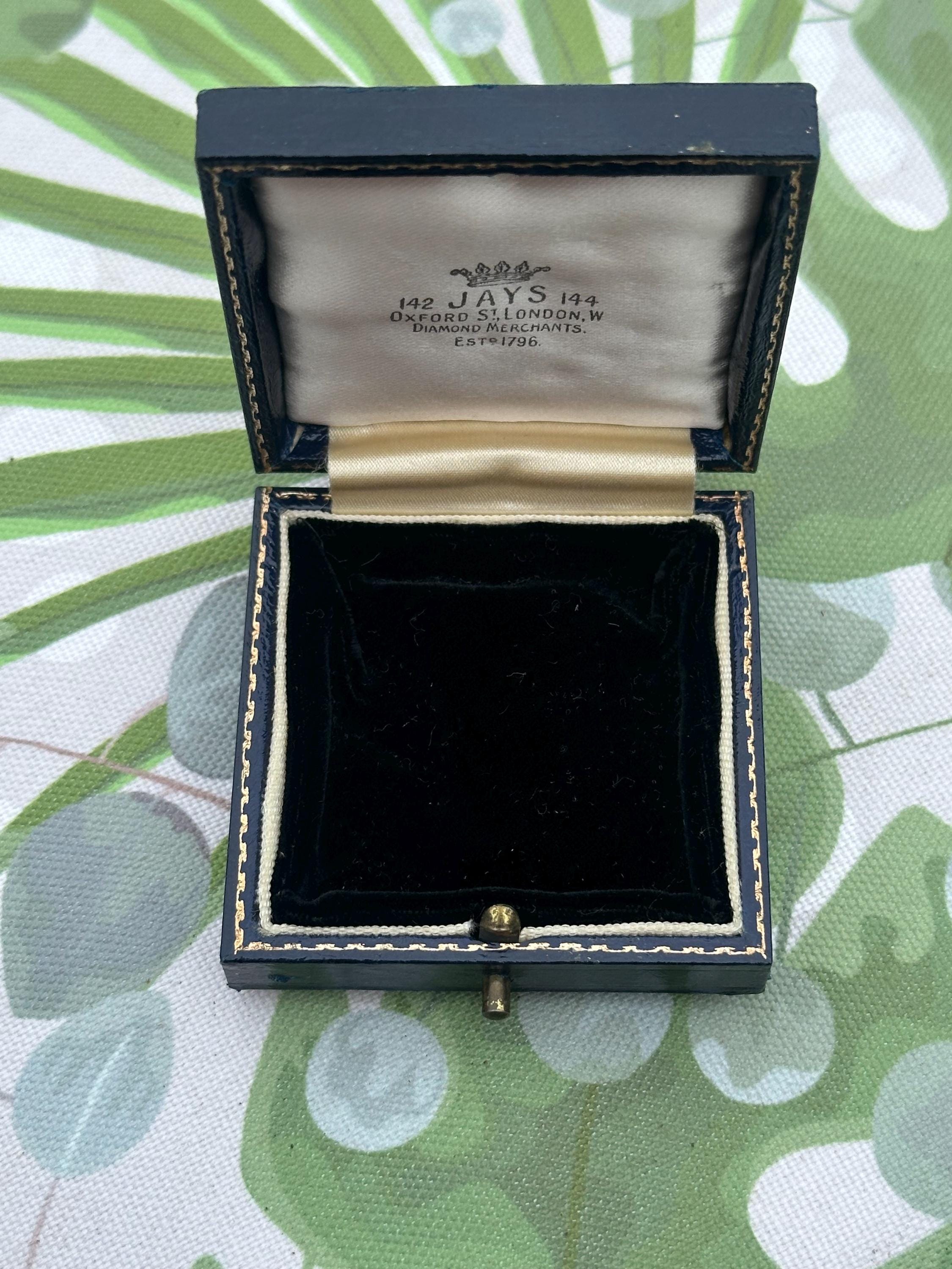 Jays Diamond Merchants, which was established in 1796 at 142-144 Oxford Street, London. The box is dark blue with gold detailing and a velvet interior