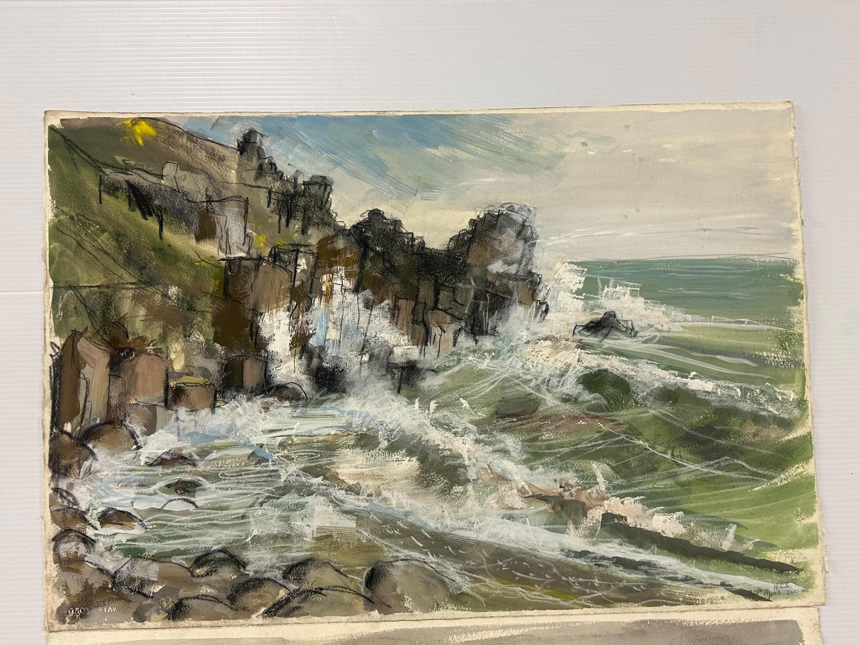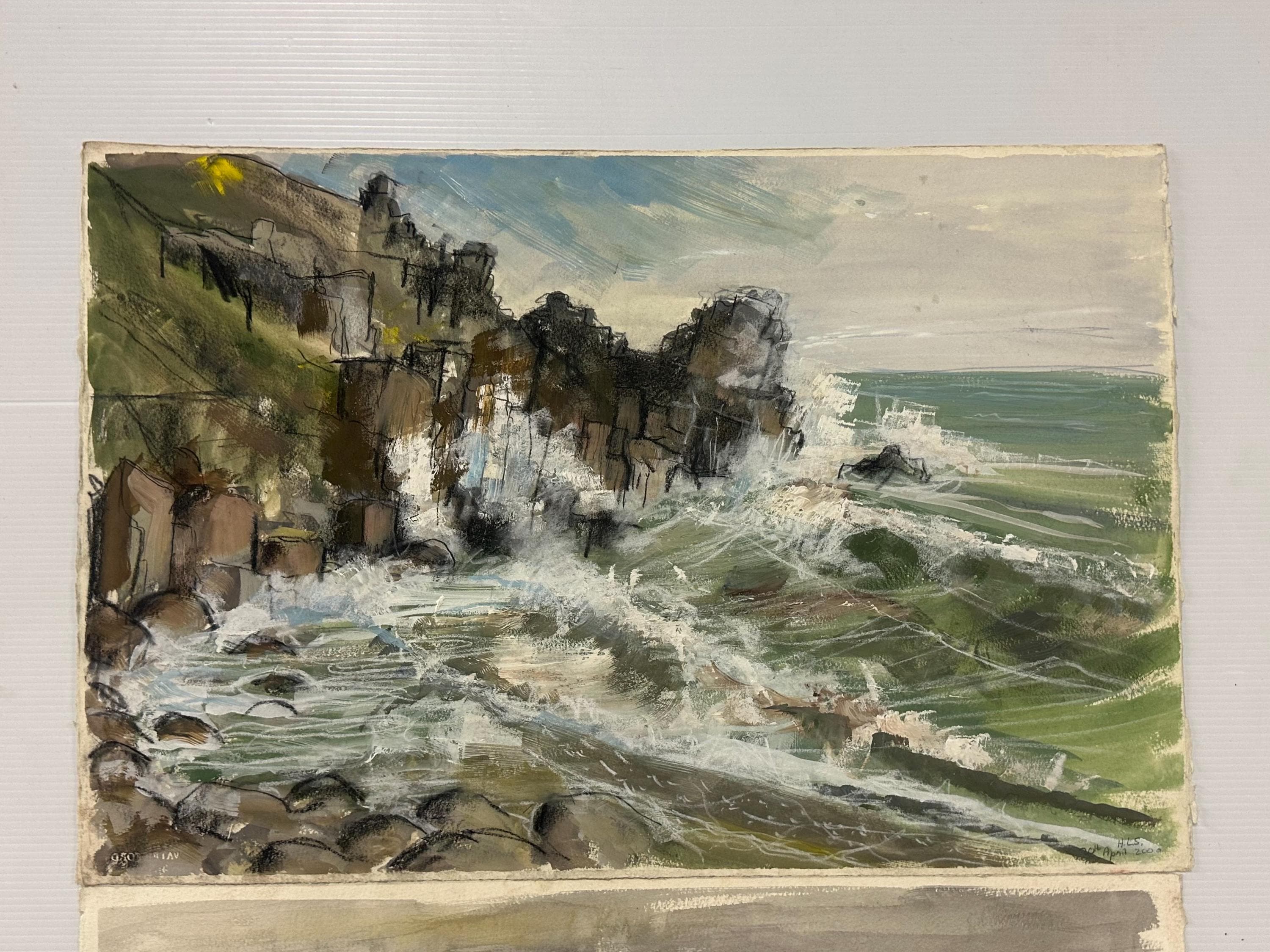 Both works display confident, gestural brushwork and a strong sense of movement, light, and natural power, typical of artists inspired by Cornwall’s dramatic shores.