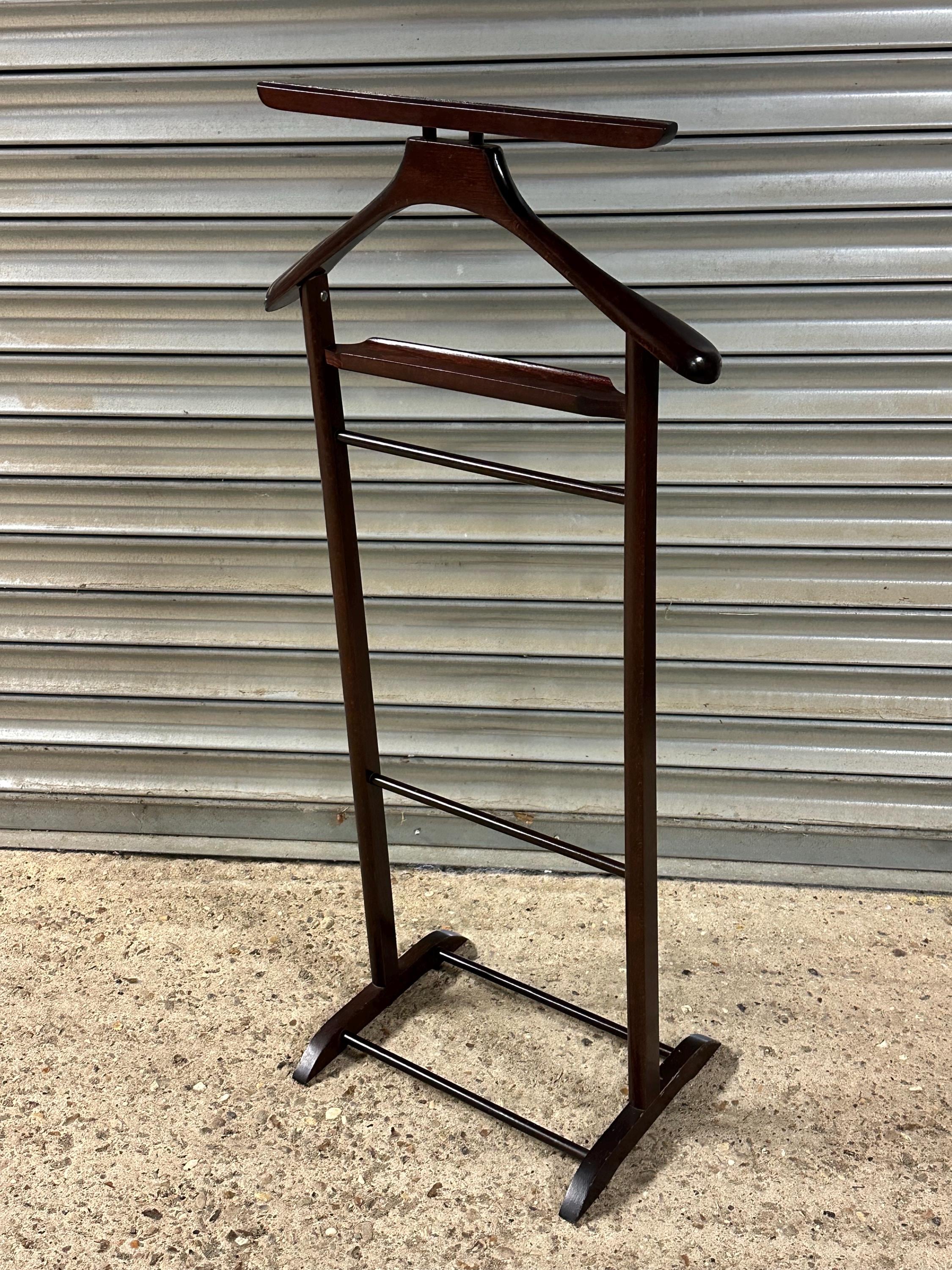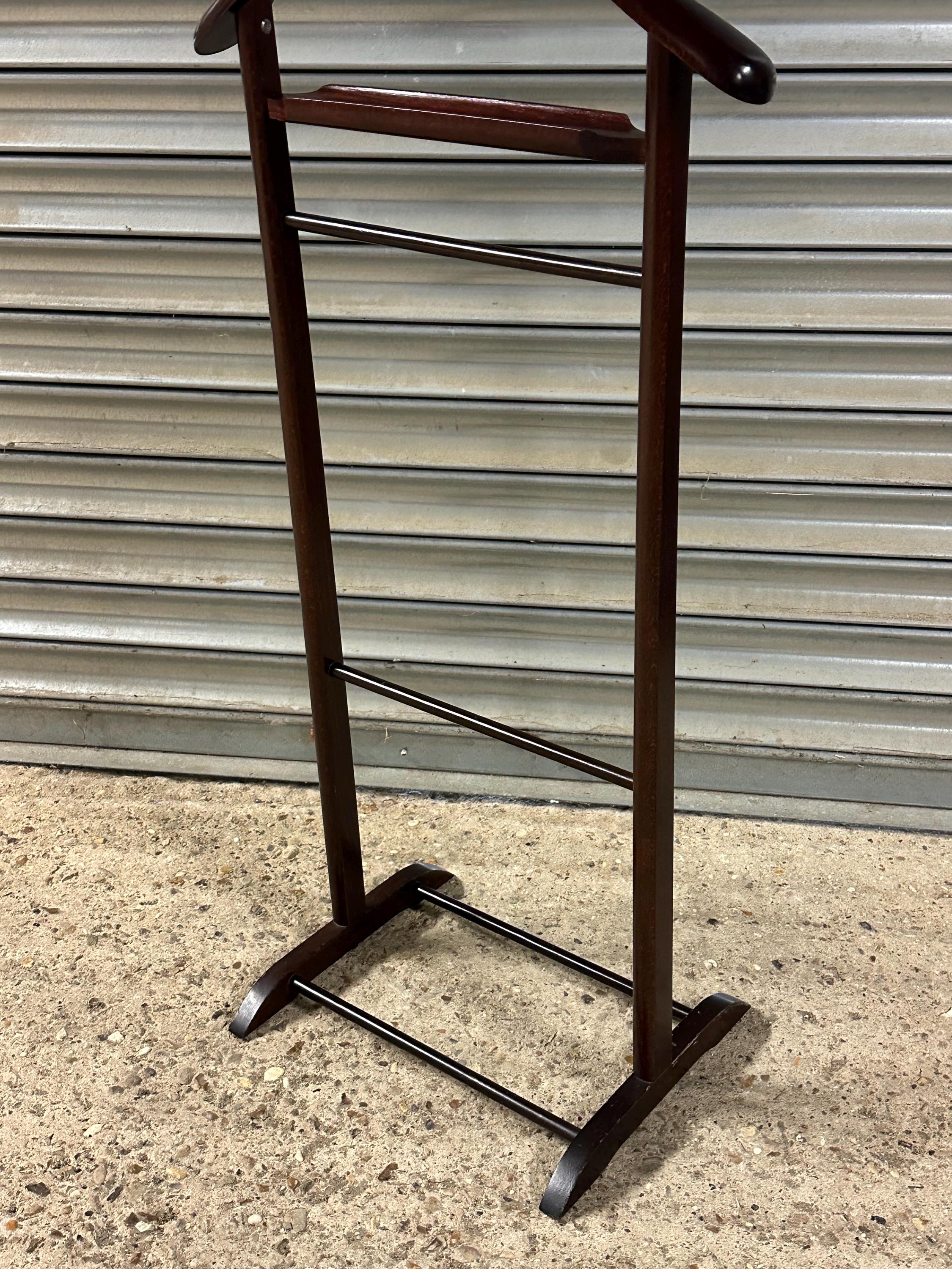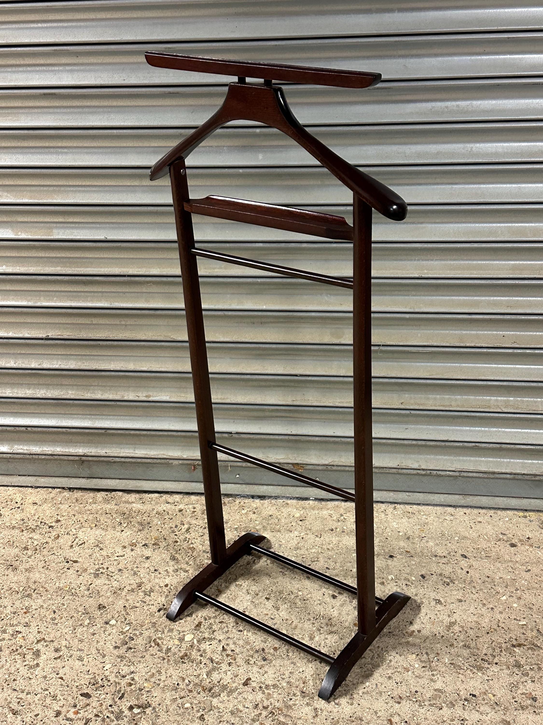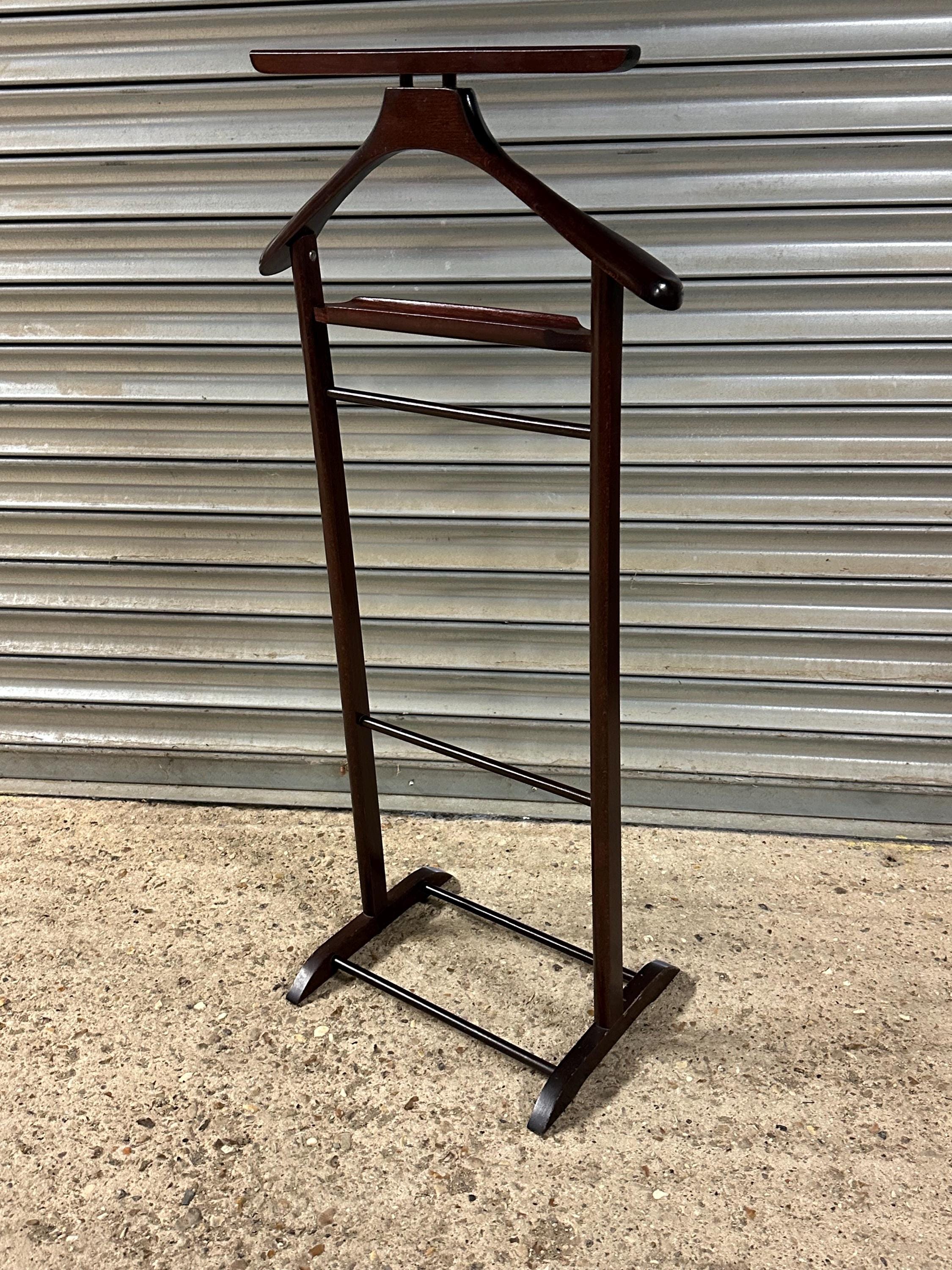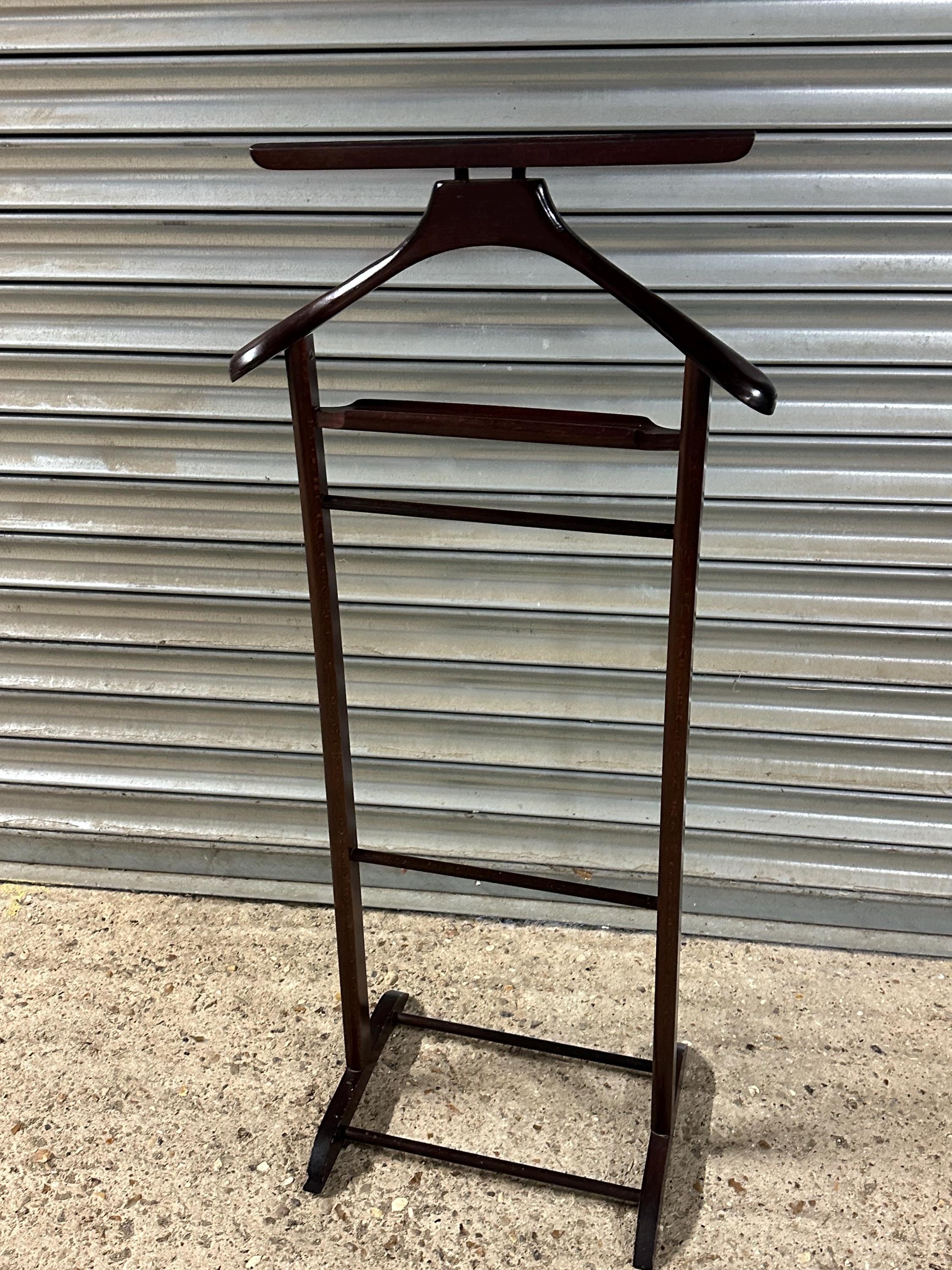 A stylish vintage gentleman’s valet stand designed for neatly organising suits, jackets, trousers and accessories.