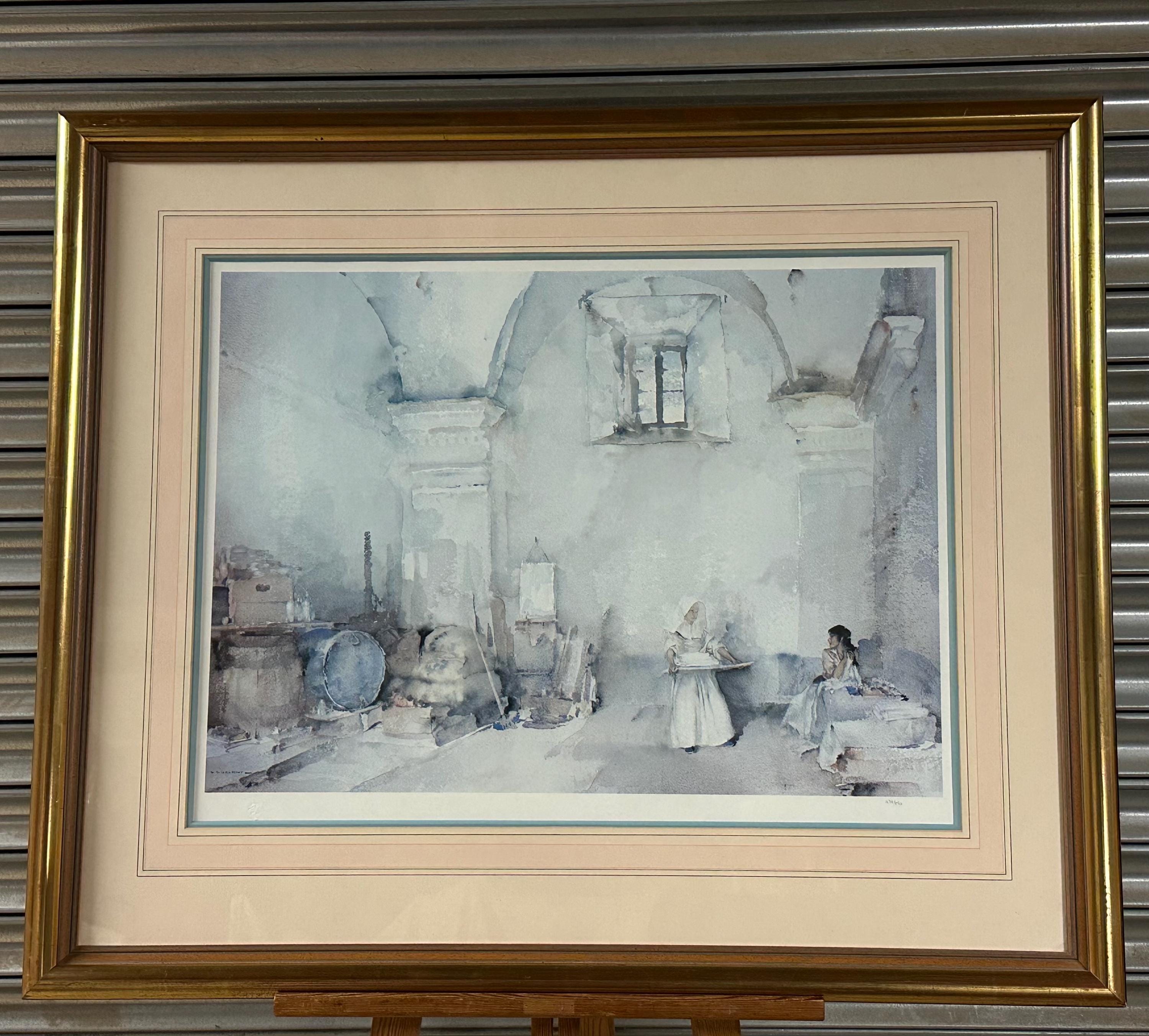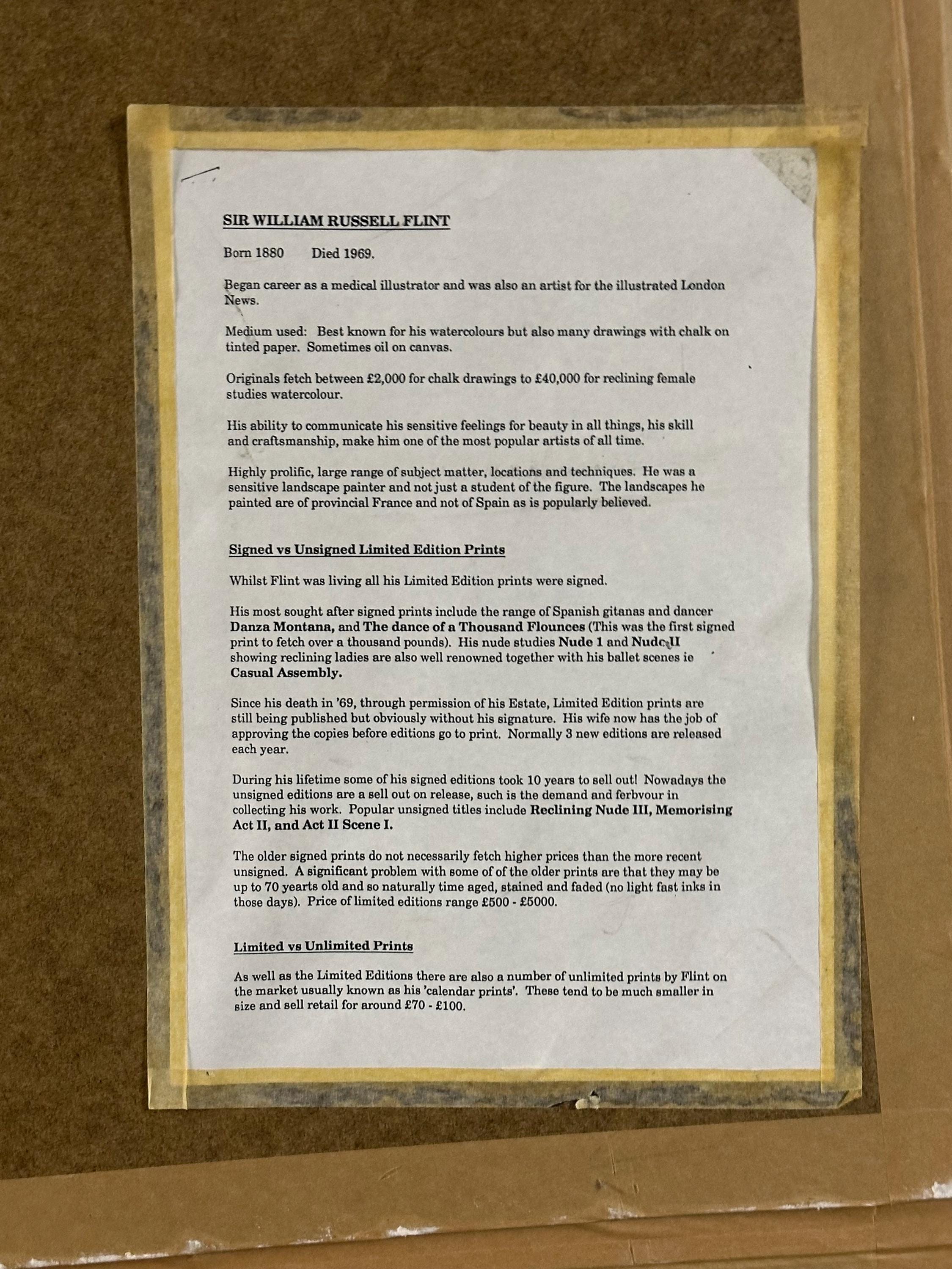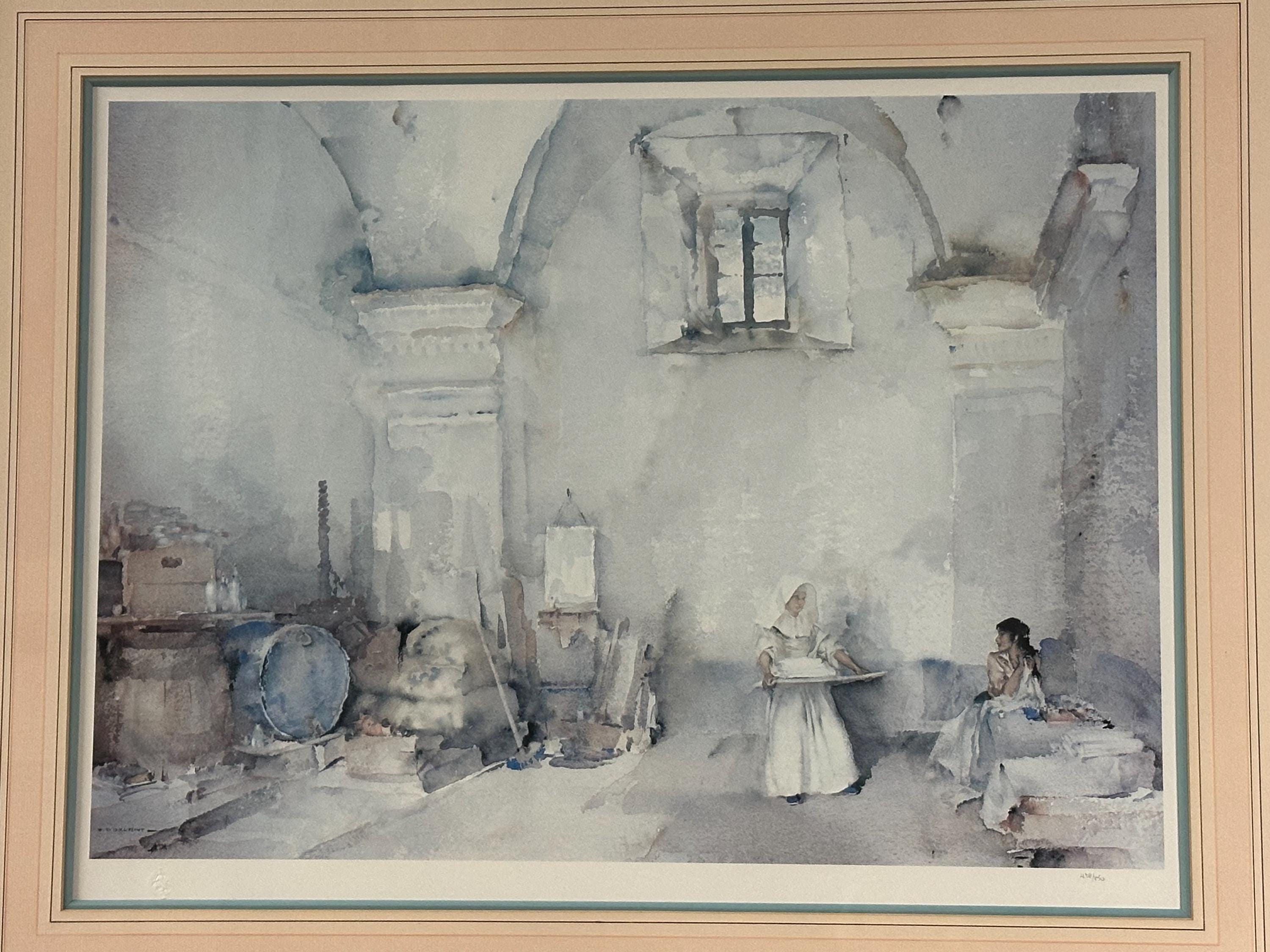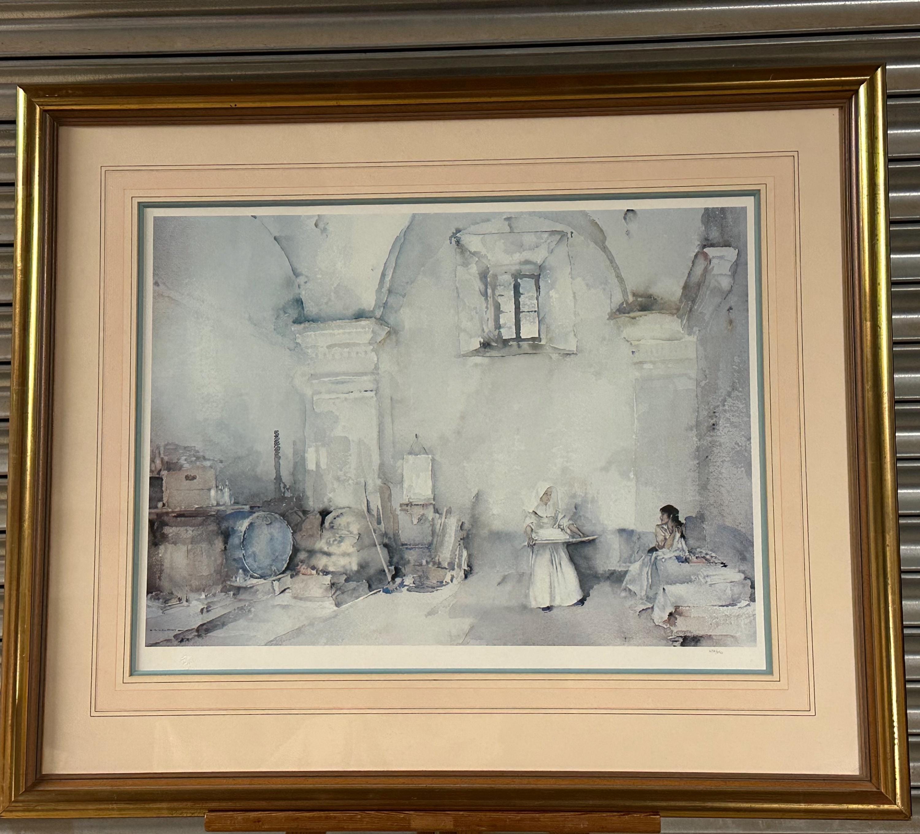 A beautifully presented limited edition print after the watercolour “The Little Sewing Girl, Sospel” by renowned British artist Sir William Russell Flint. Published in 1989 in a strictly limited edition of 850 copies – this is hand-numbered 438/850.