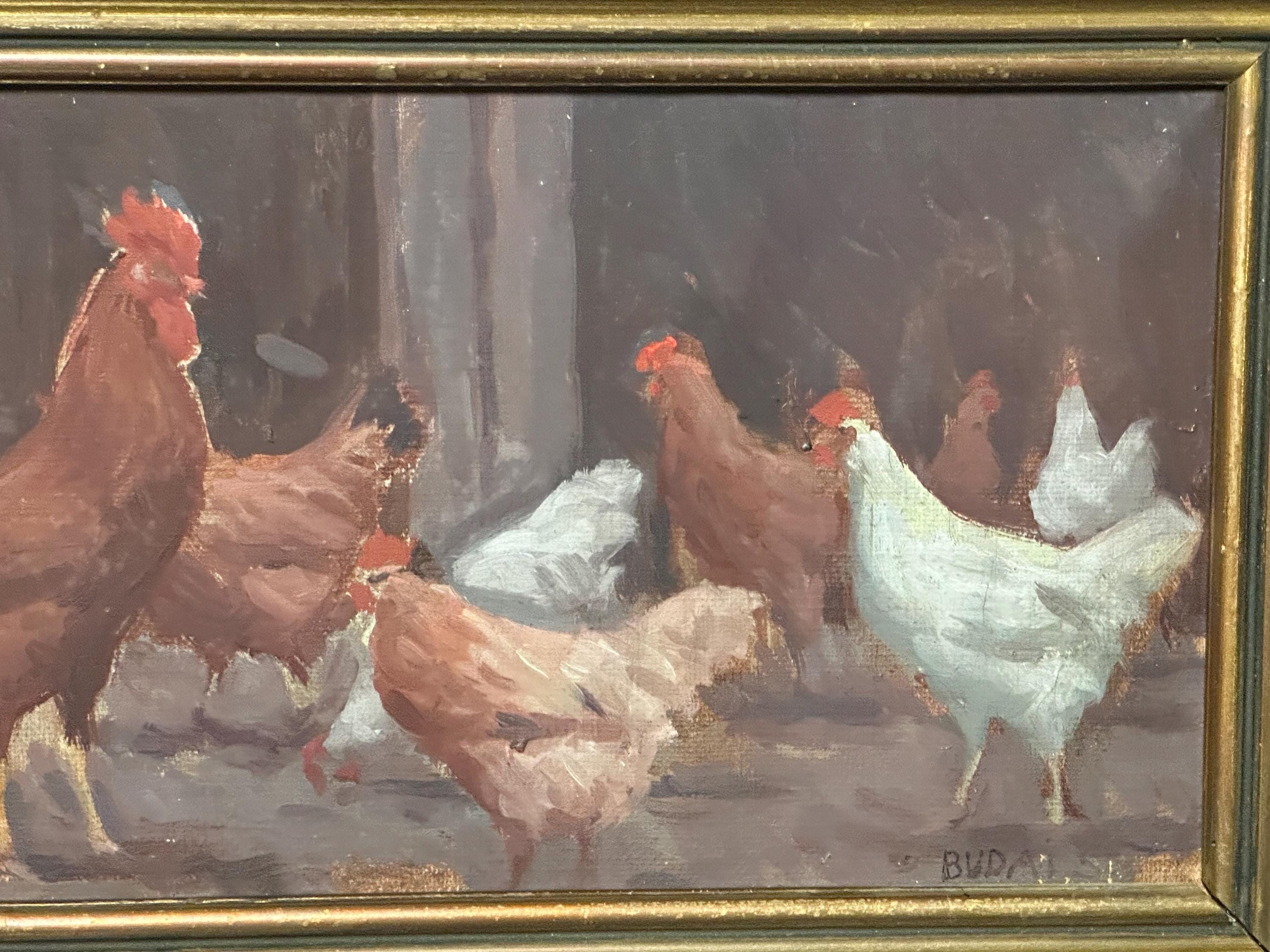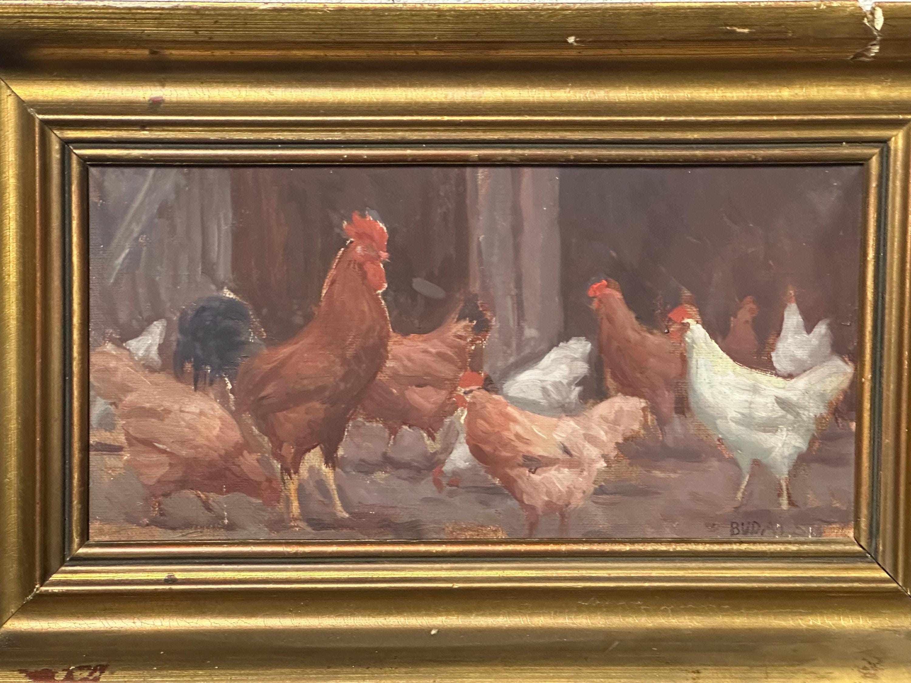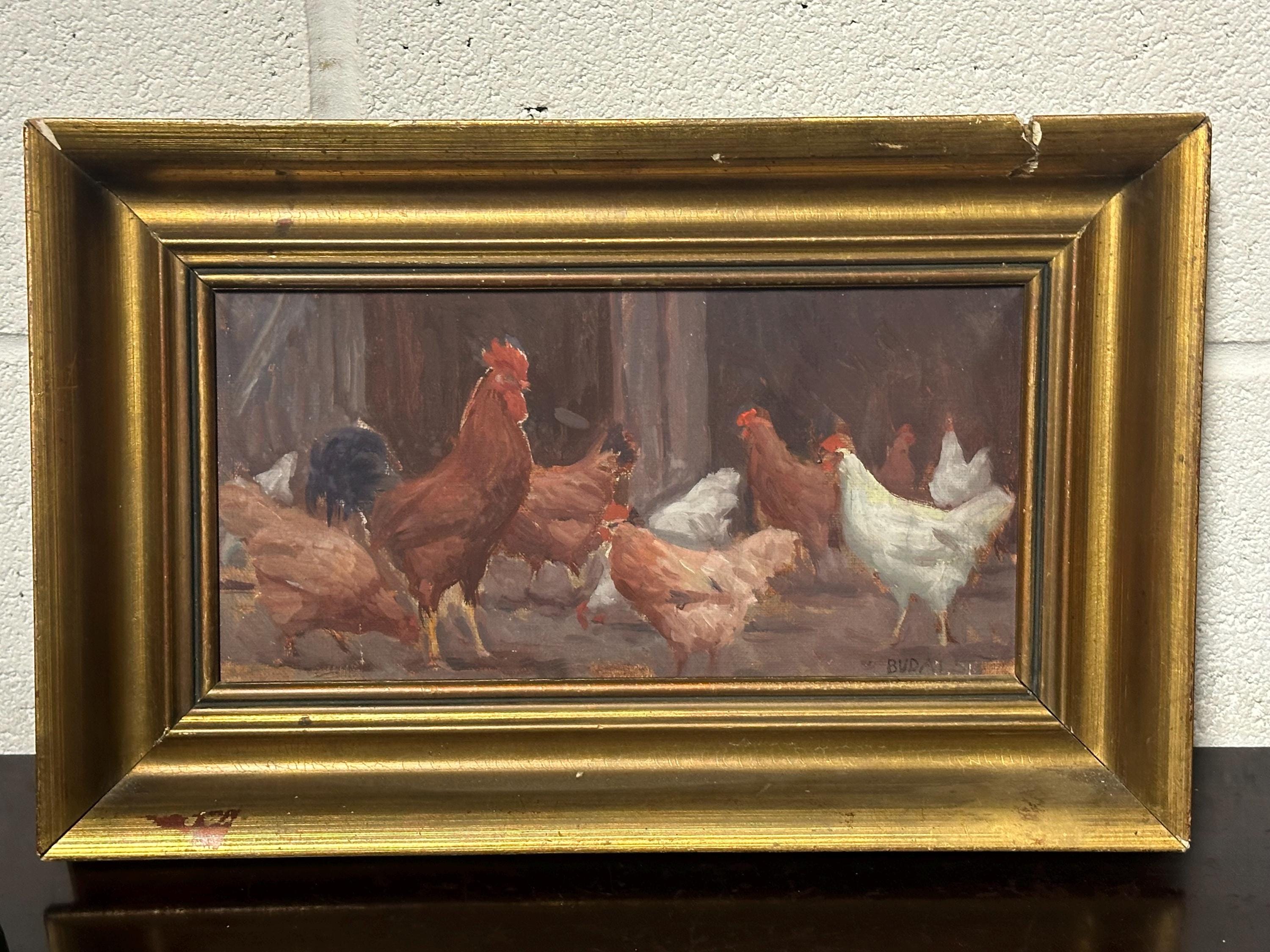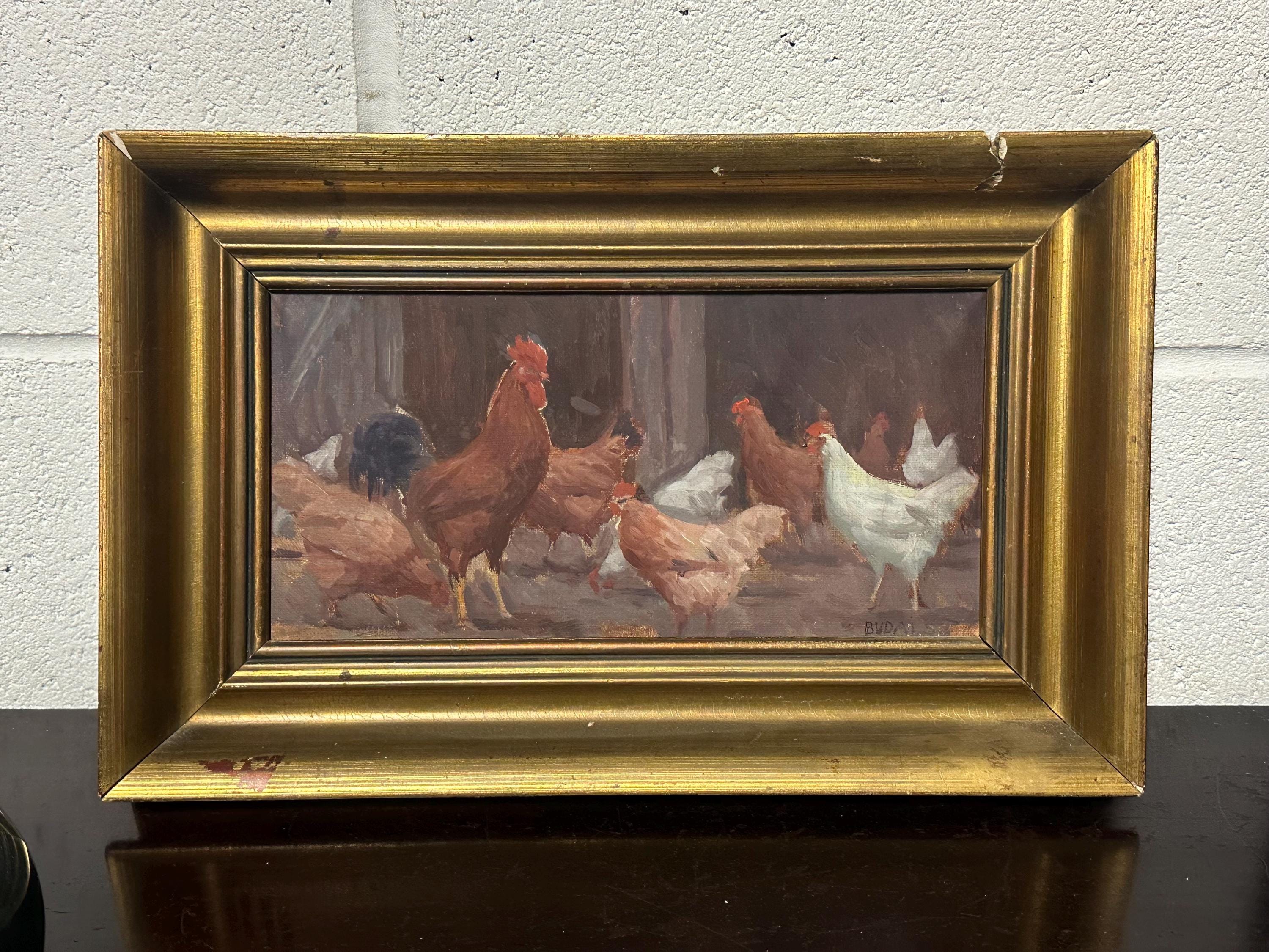 Original Watercolour Depicting Hens / Chickens By Hungarian Sandor Budai
