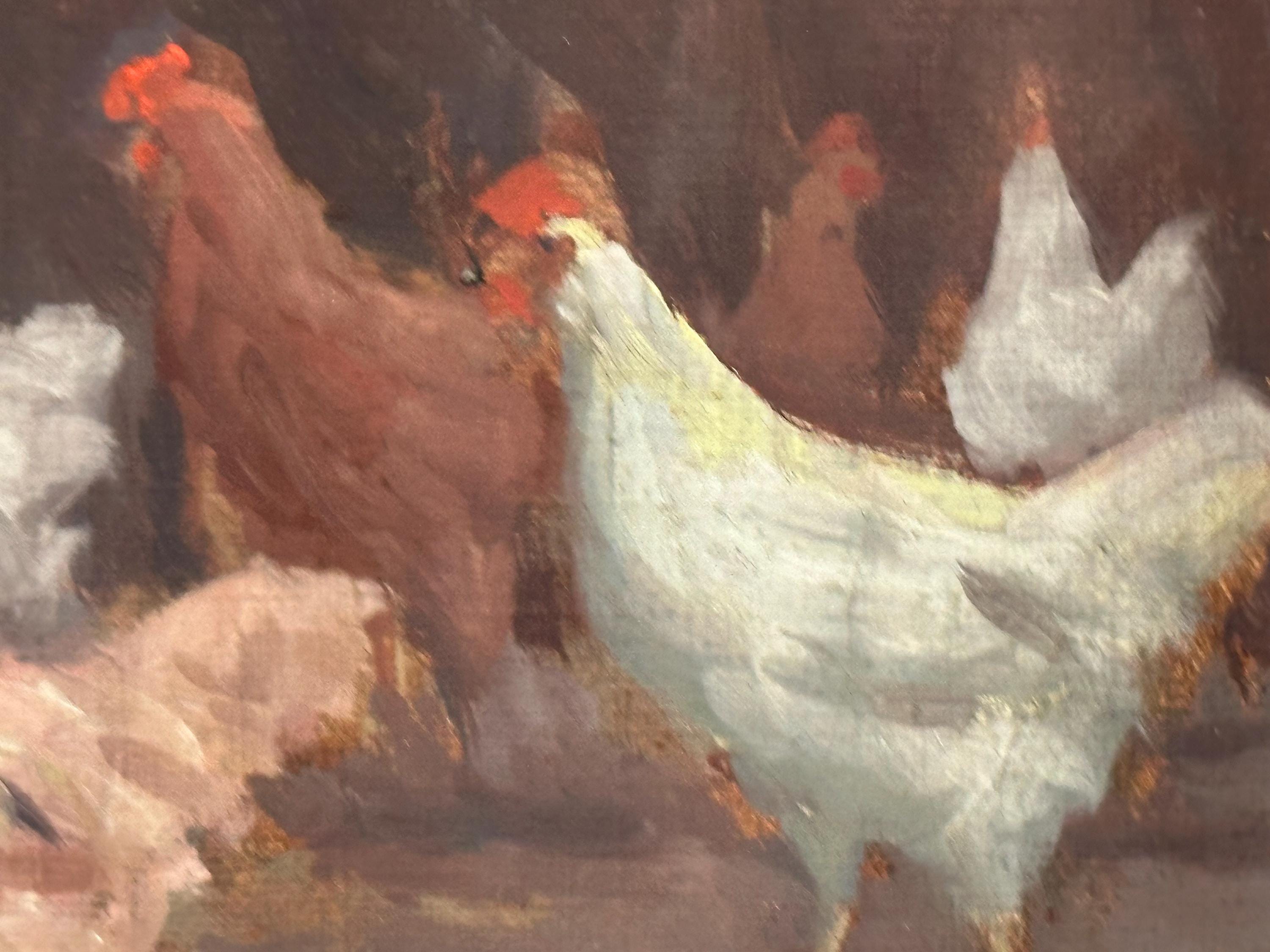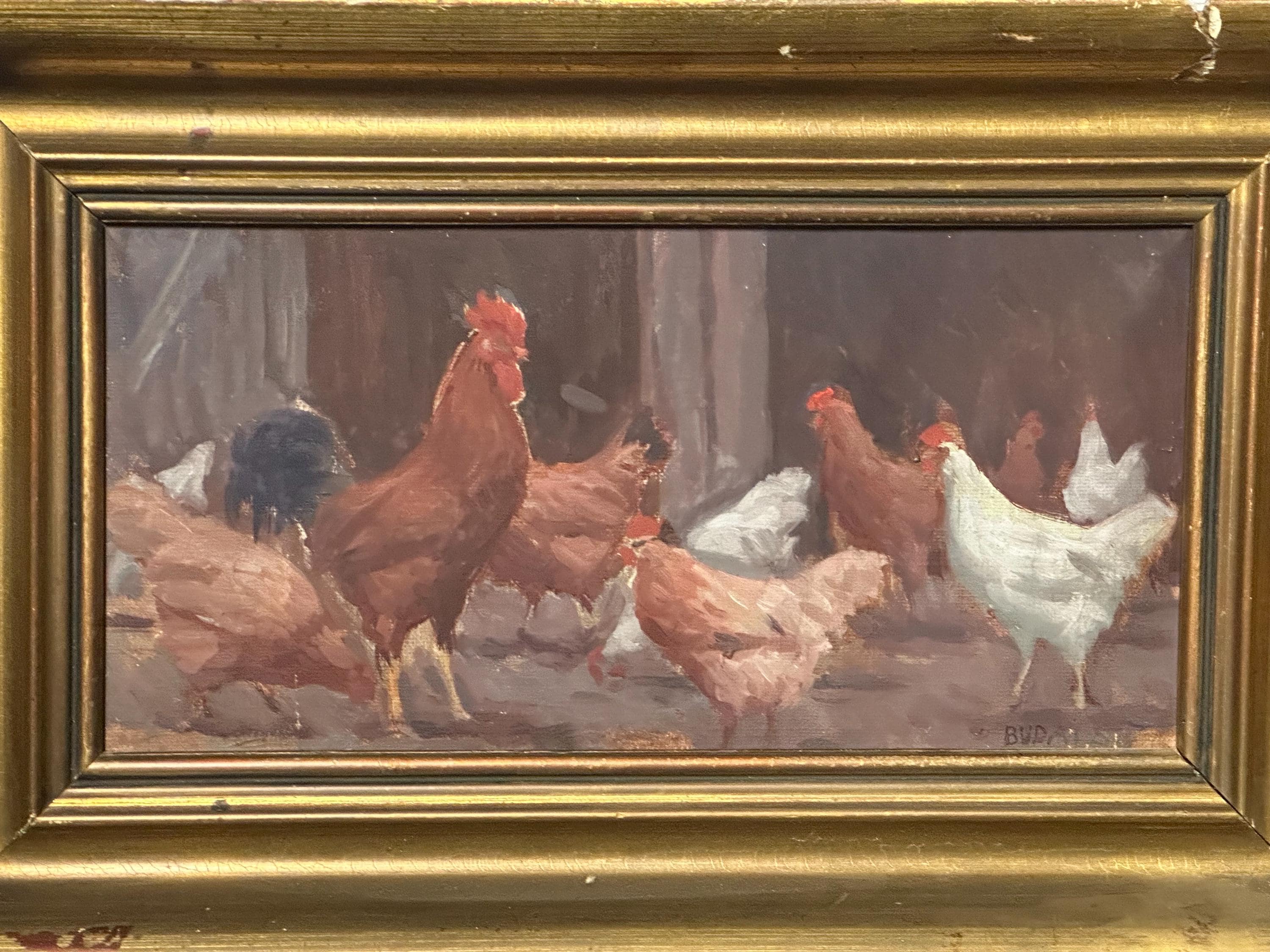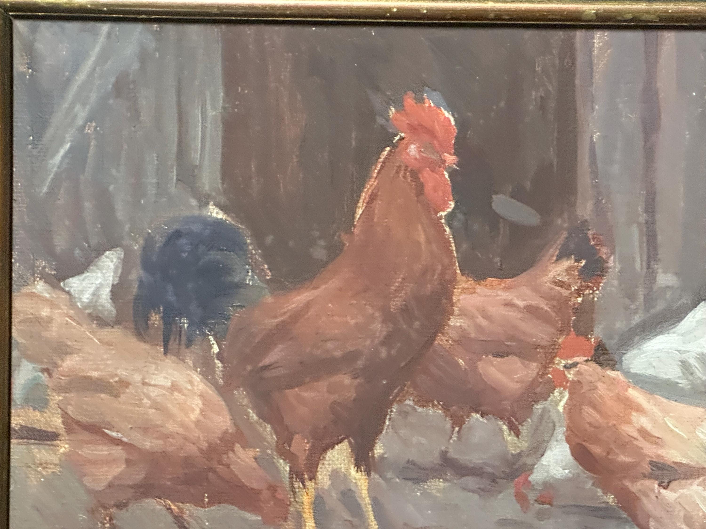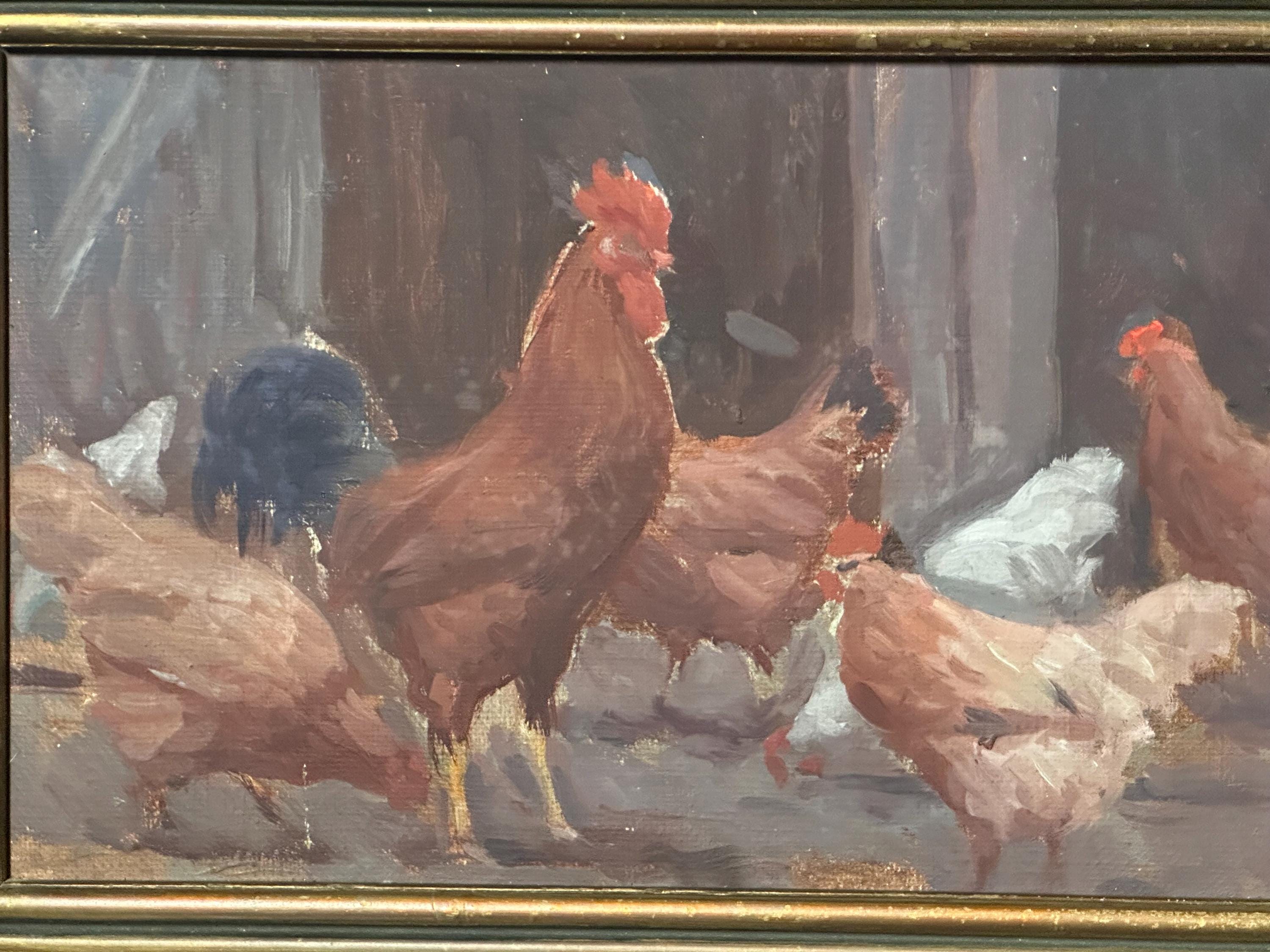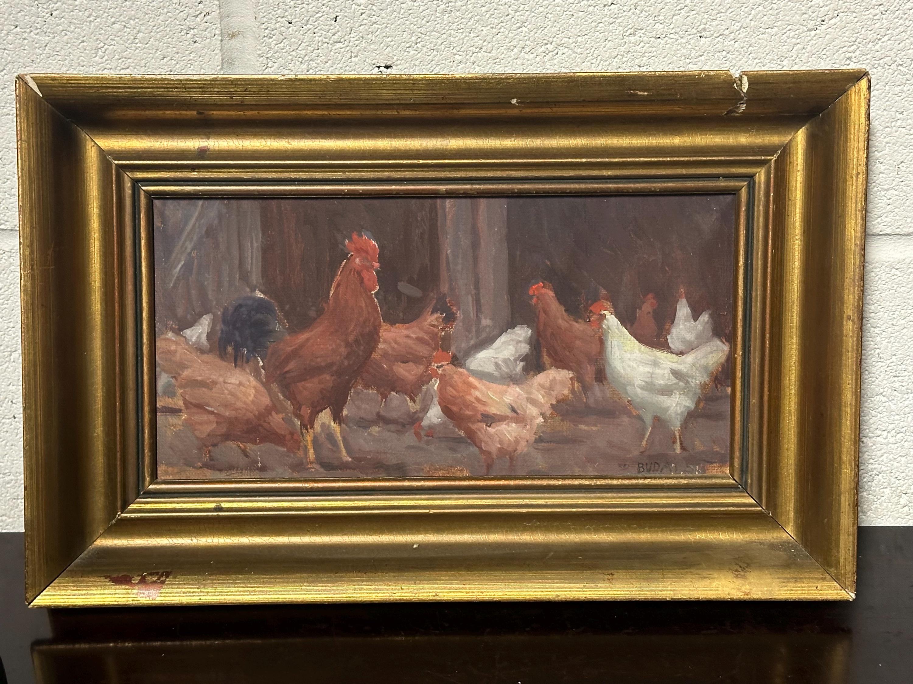 Original Watercolour Depicting Hens / Chickens By Hungarian Sandor Budai