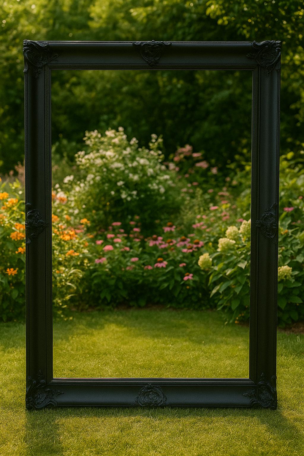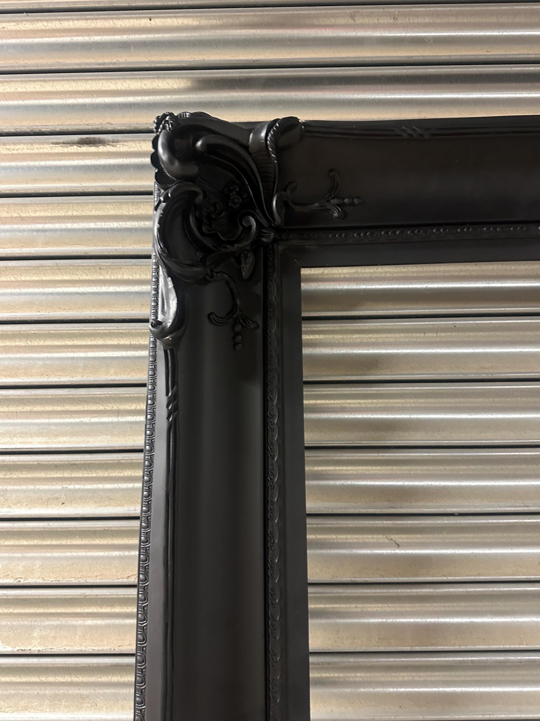 This impressive 7ft tall / life-size ornate frame has been professionally finished in a matte black for a dramatic, luxury look. Perfect for creating wow-factor photo moments or for styling venues and retail spaces. Made from wood and plaster or similar composite material for the decoration