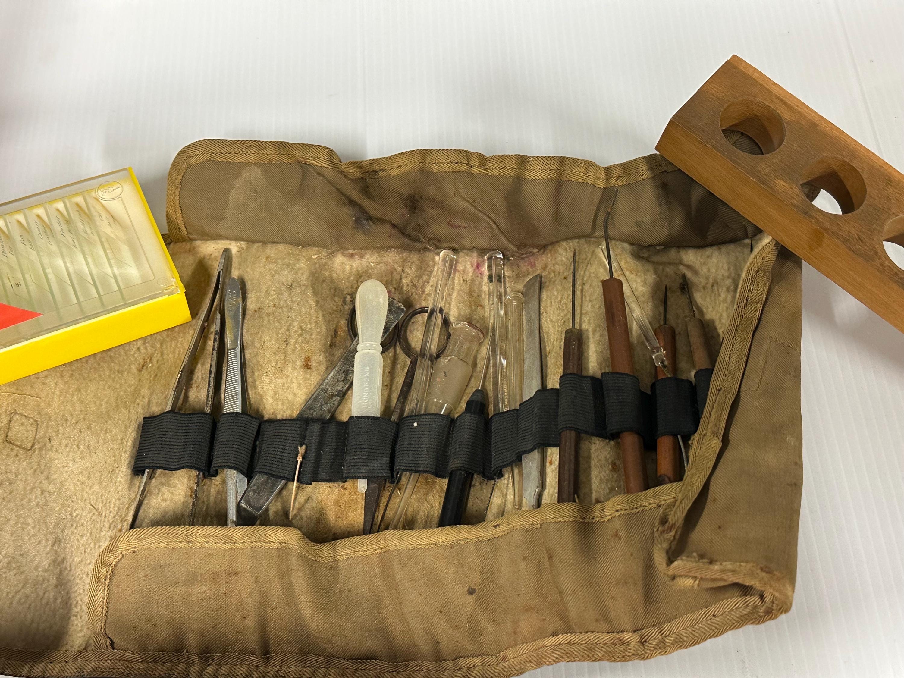 This impressive scientific set appears to date from the early–mid 20th century and includes a variety of insect parts, botanical specimens, biological samples and more – a wonderful collection for collectors, educators, or enthusiasts of early scientific instruments.