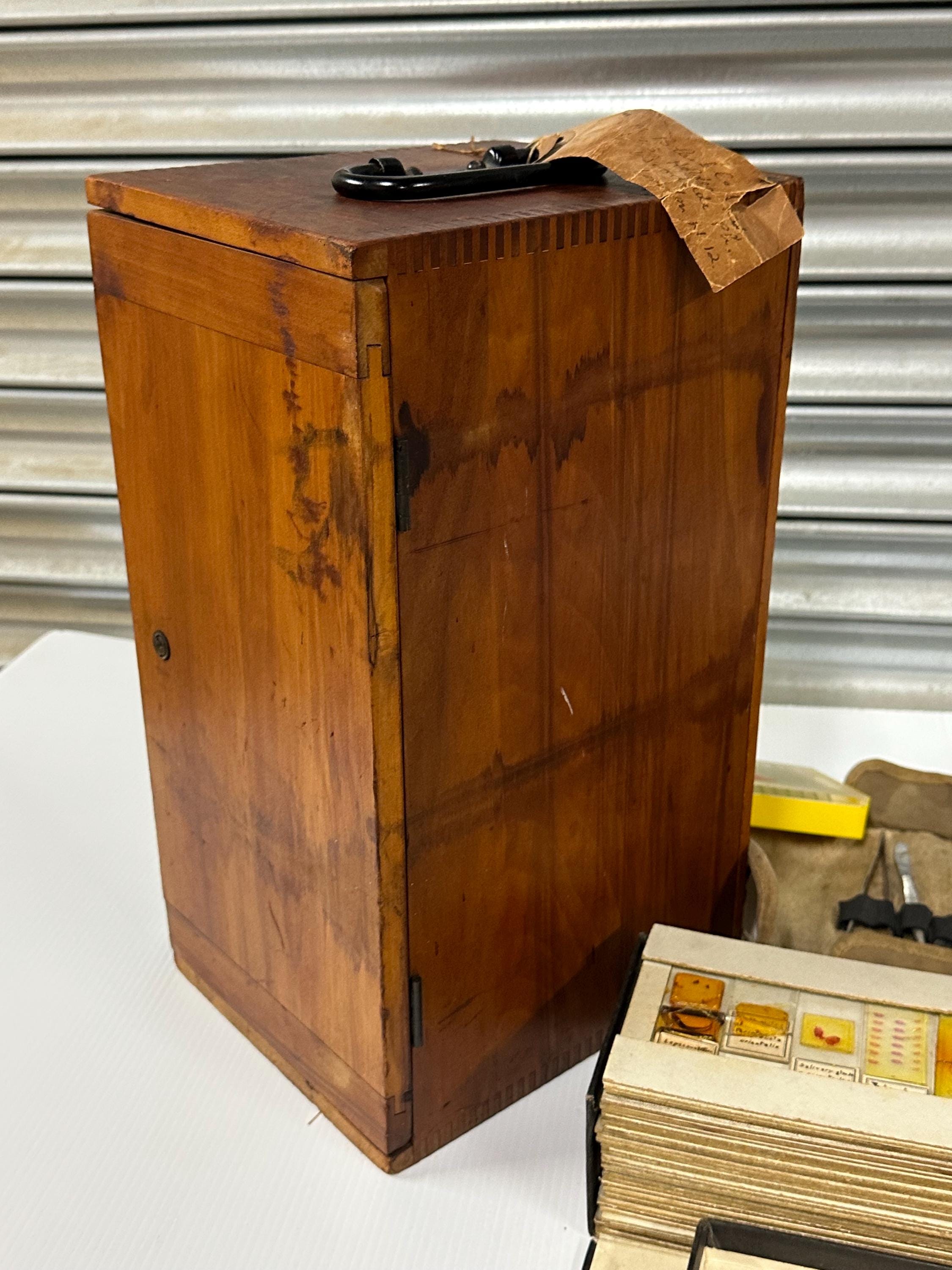 Wooden case and slide boxes solid with age-related marks/handling
