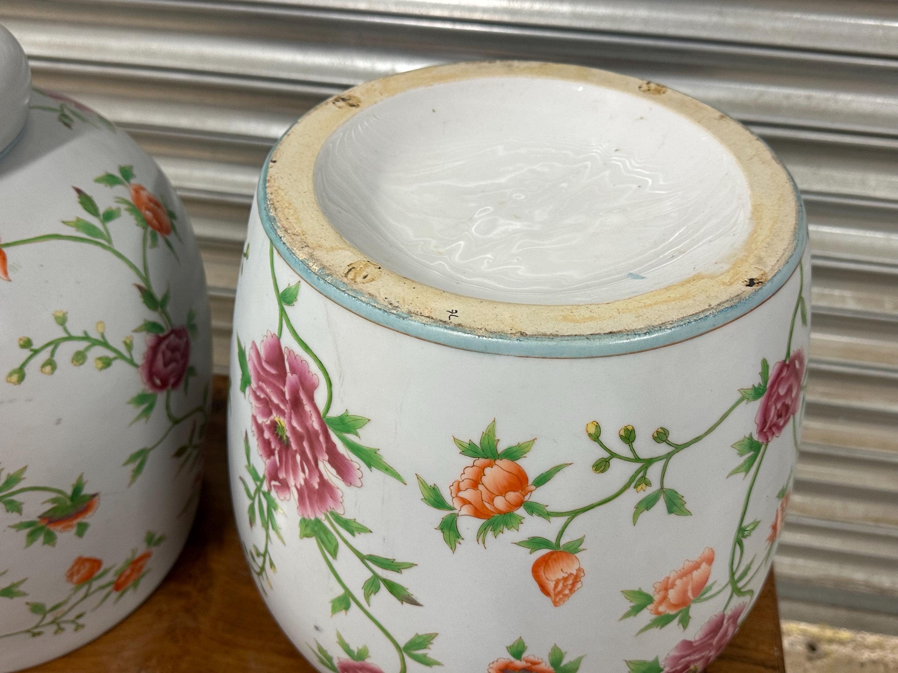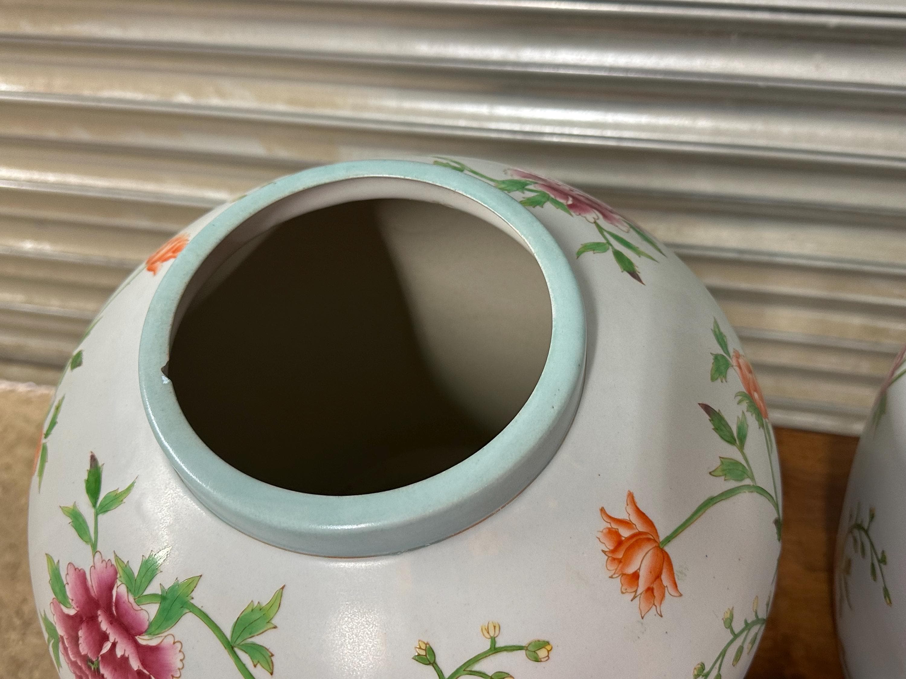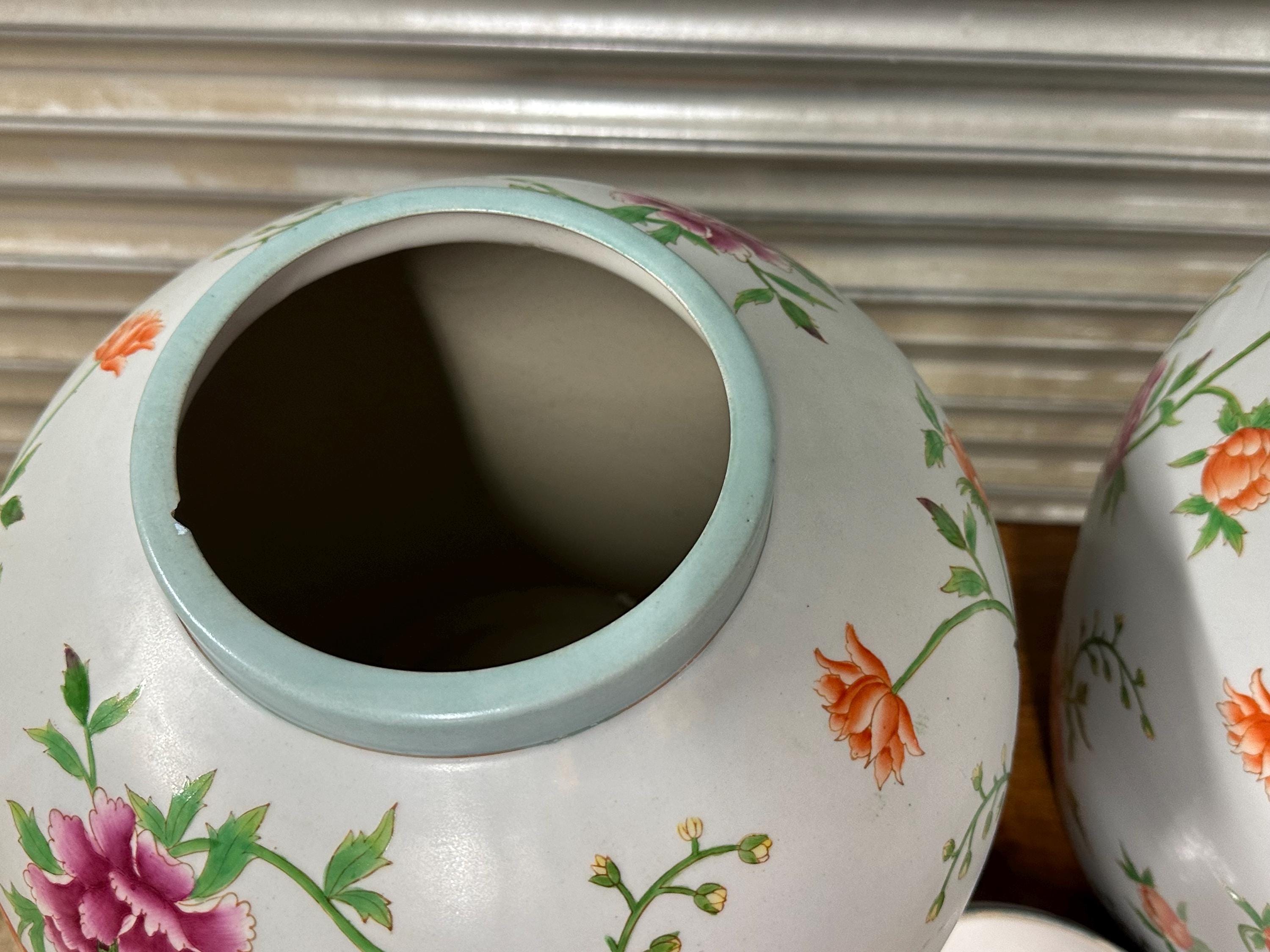 Very Large Pair of Decorative Lidded Ginger Jars – Hand-Painted Floral Design