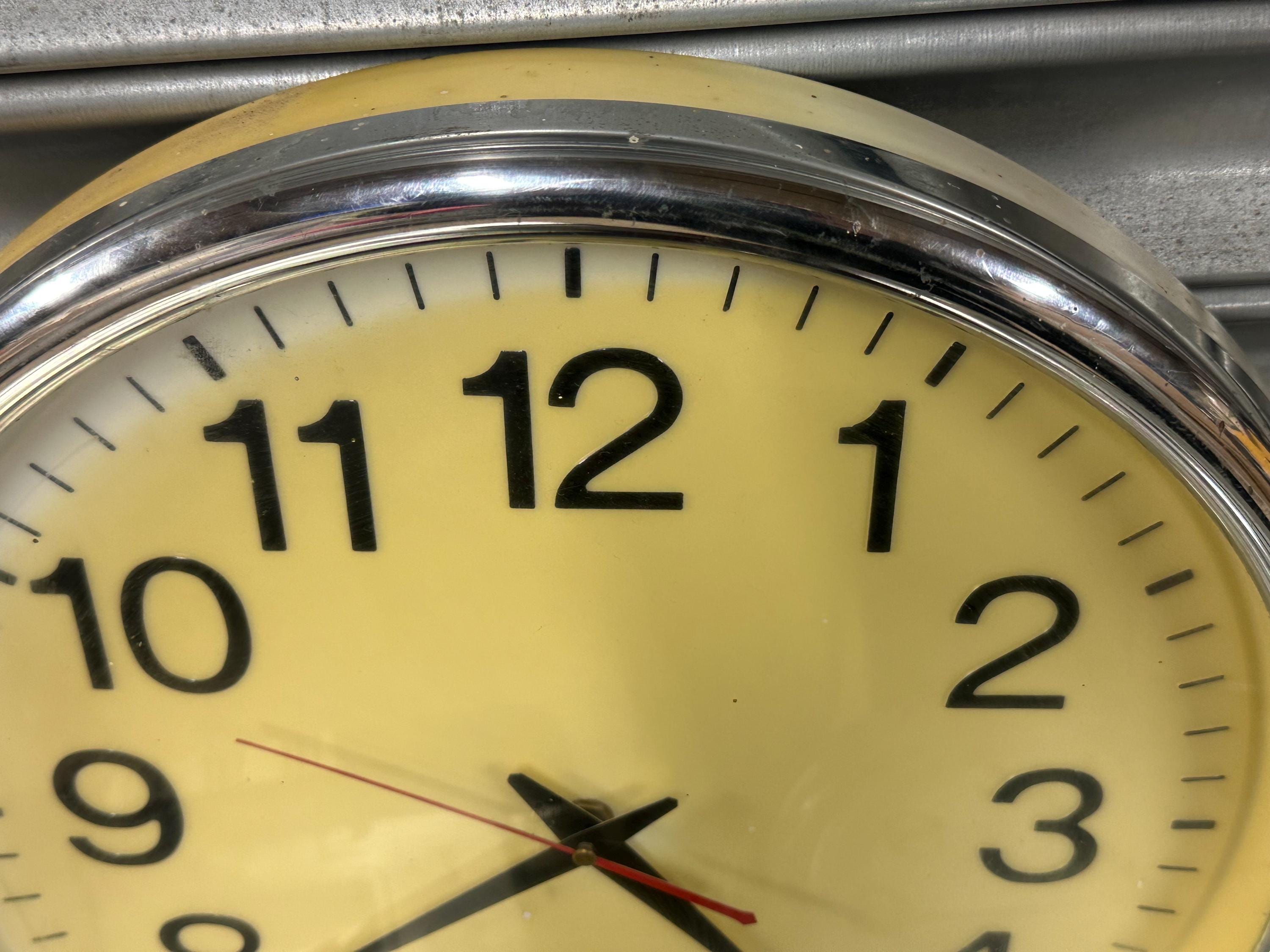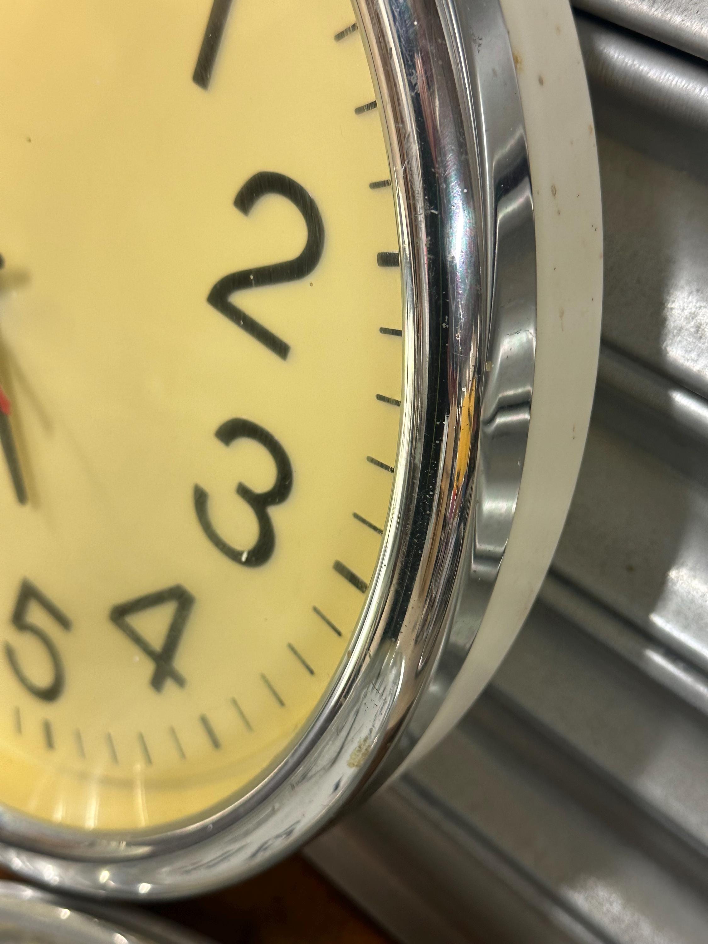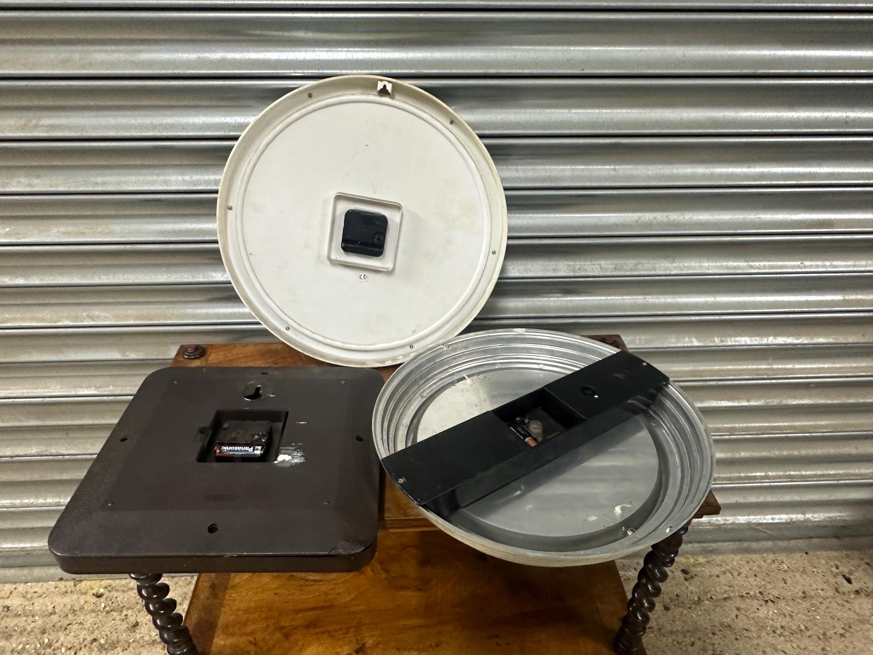 A mixed lot of three vintage wall clocks, ideal for restoration, repurposing, or vintage interior display. Great decorative pieces with classic retro and industrial styling – perfect for collectors, set designers, cafés, shops or anyone who loves vintage timepieces.