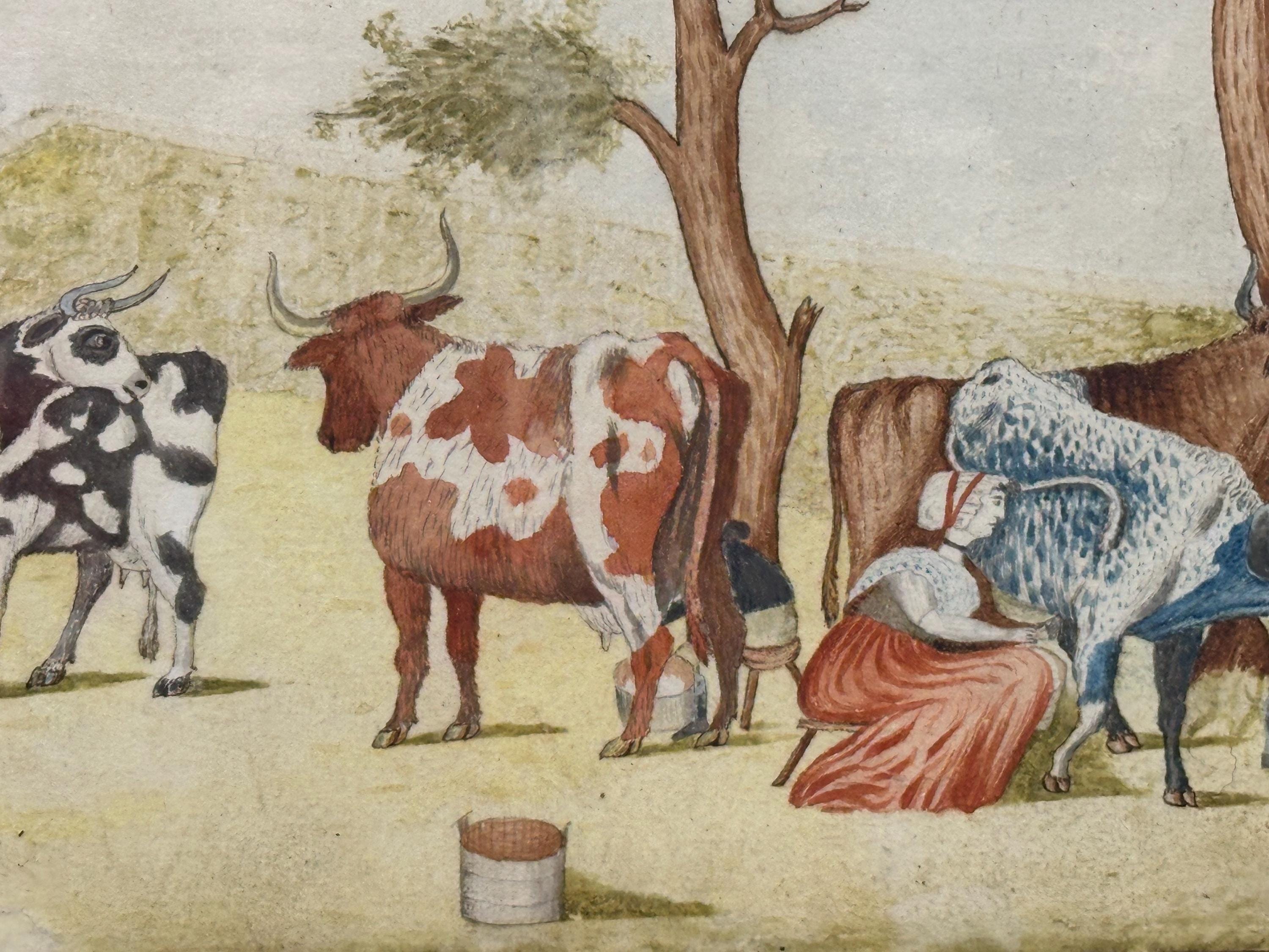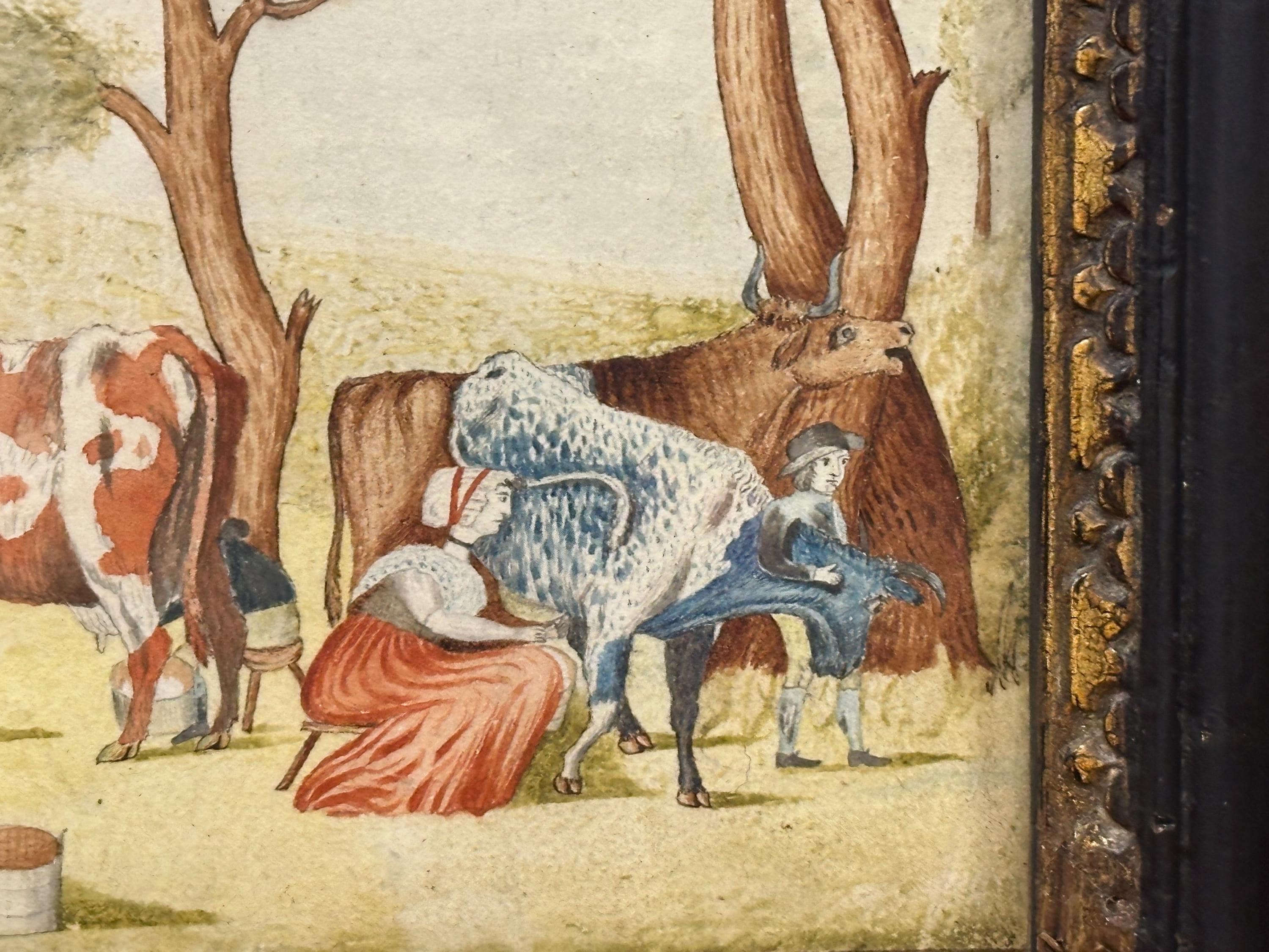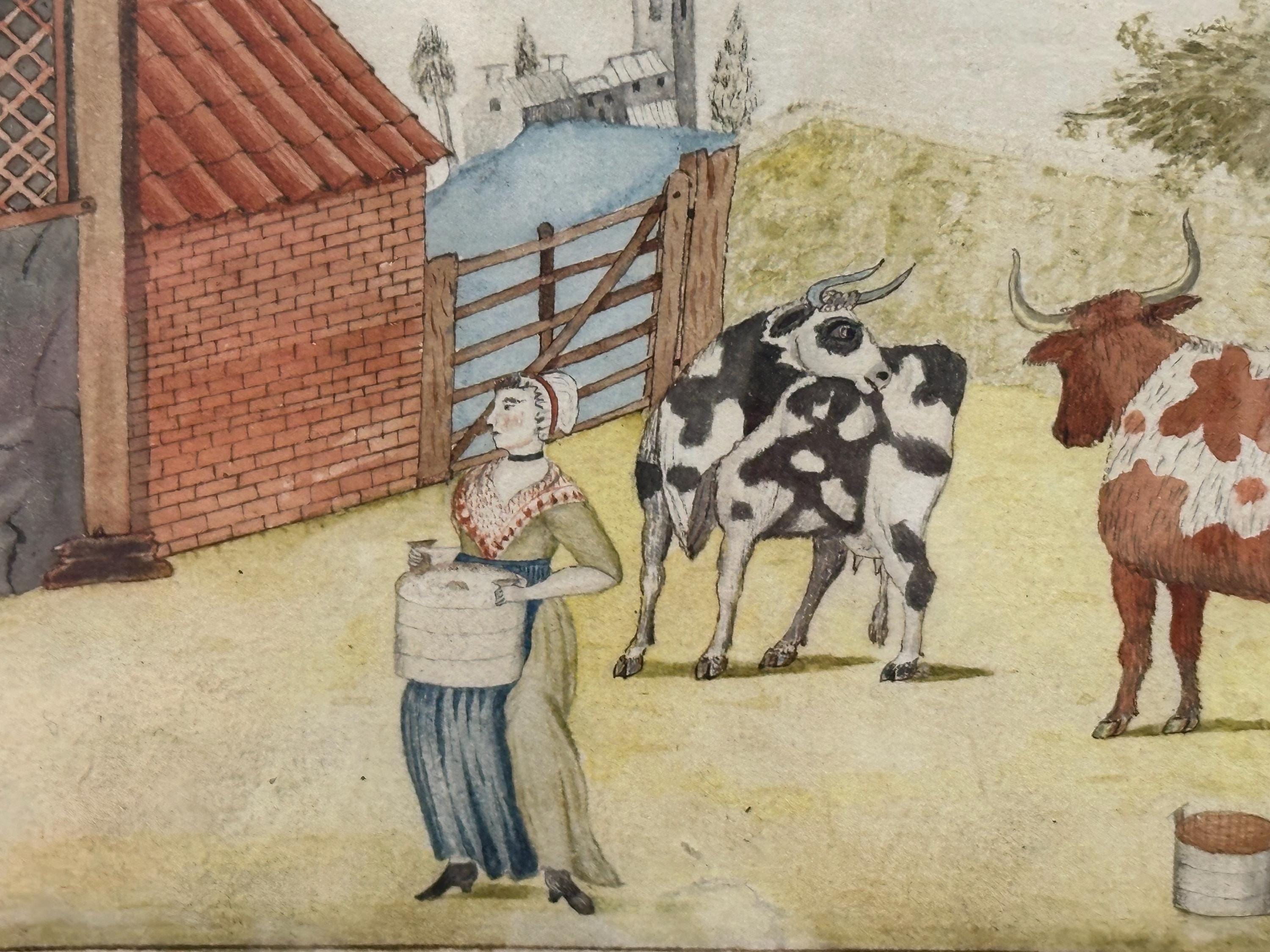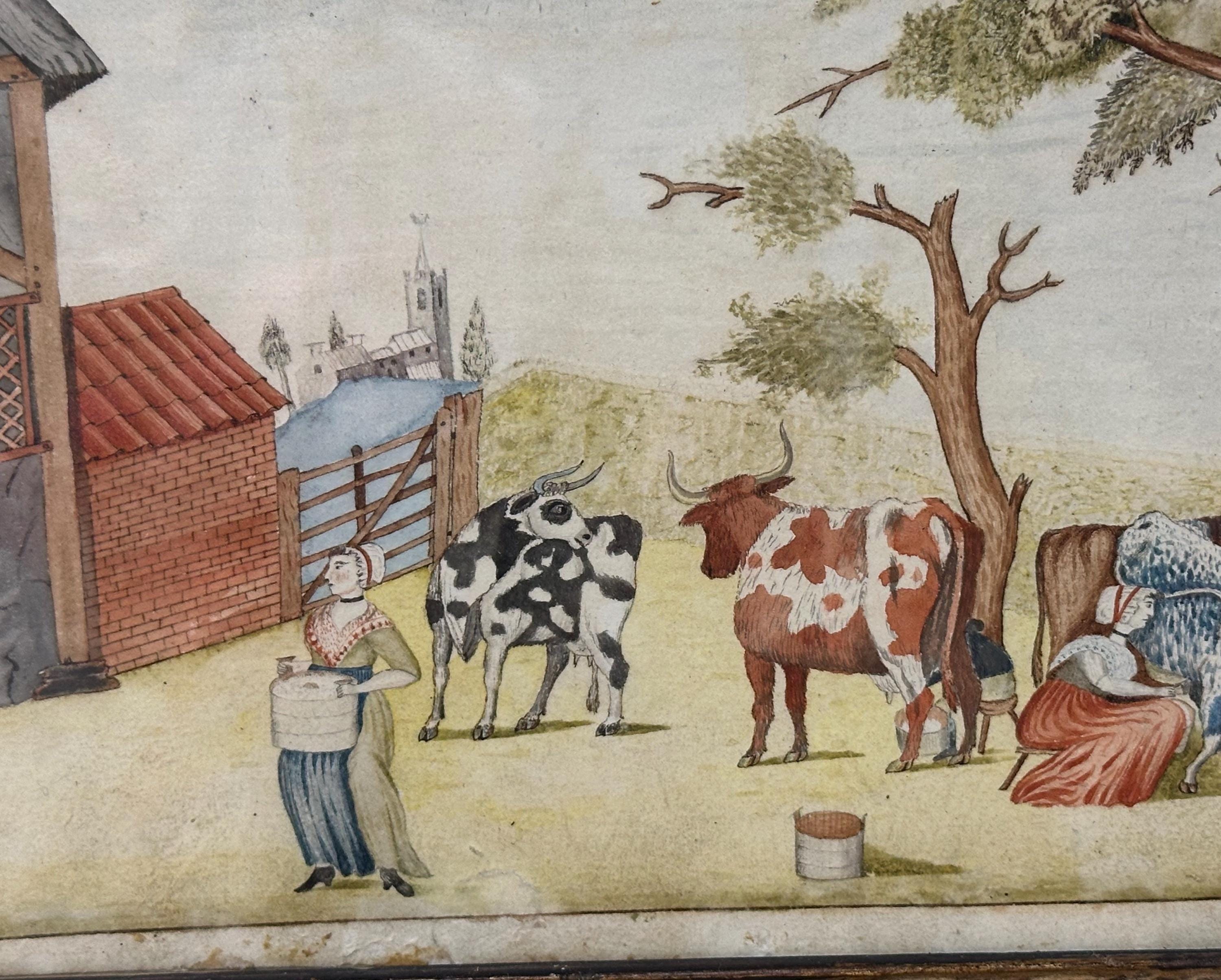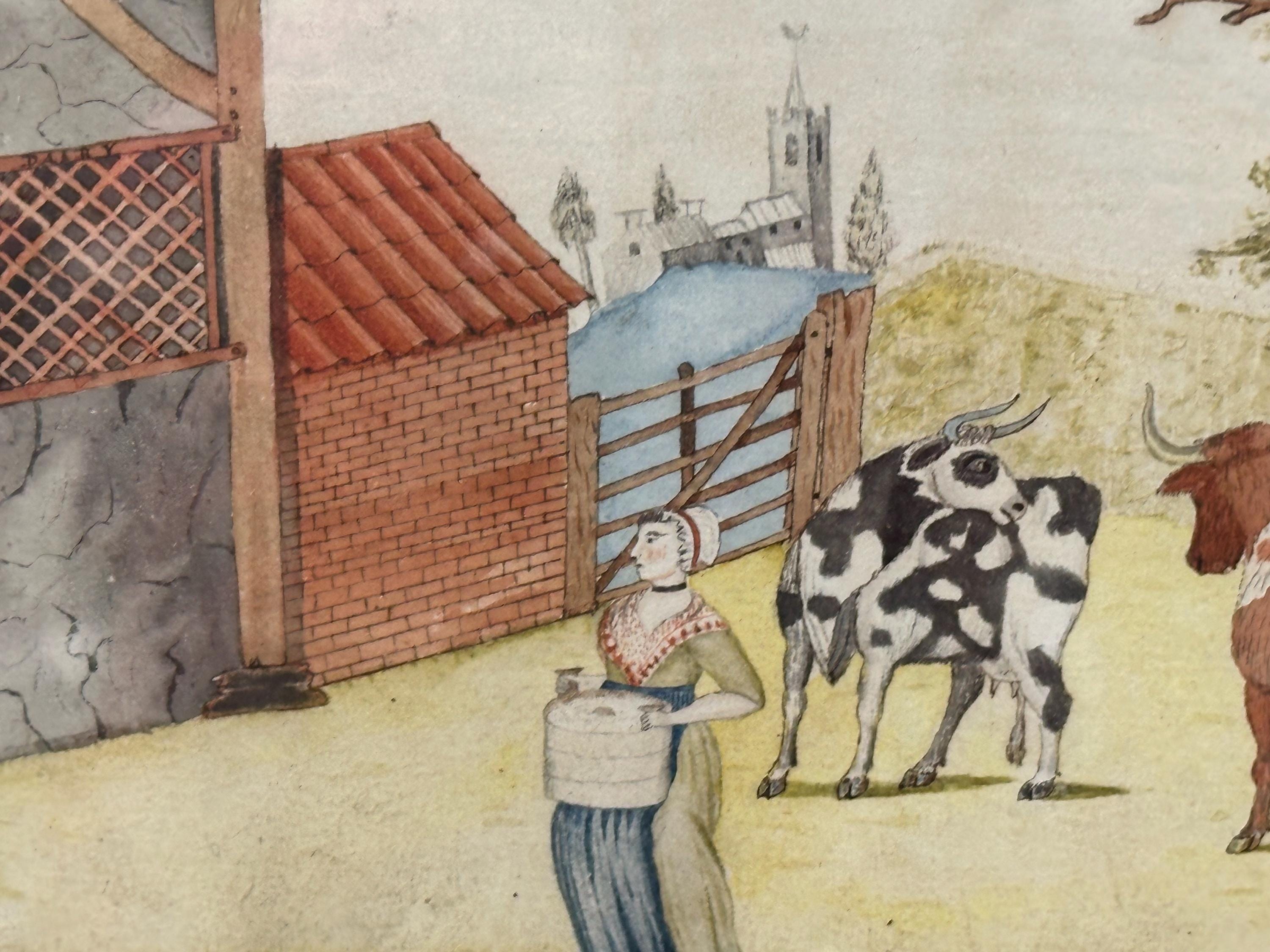 A farmyard scene with cows and milkmaids signed 'William Stocks' in margin Iower right.