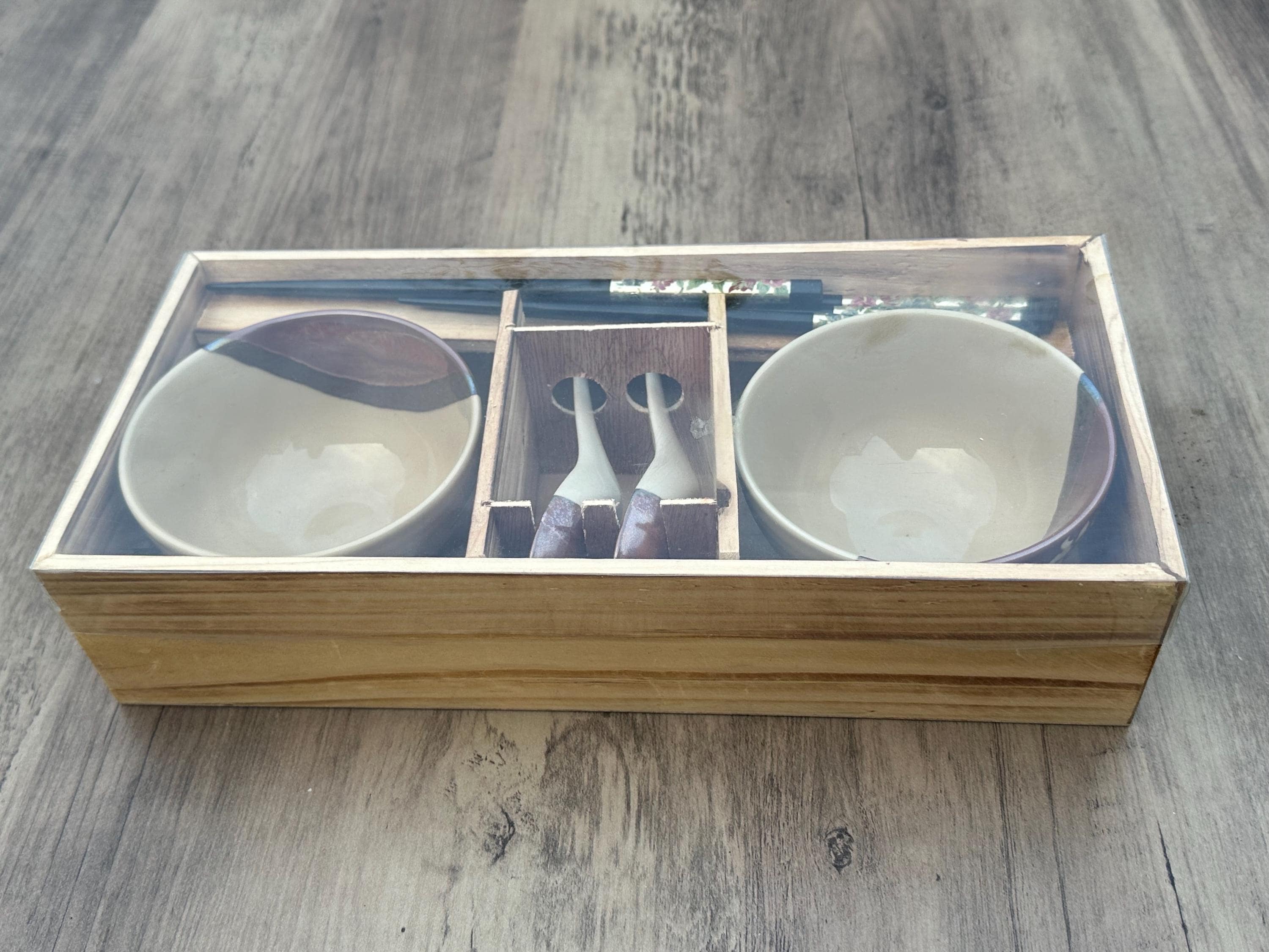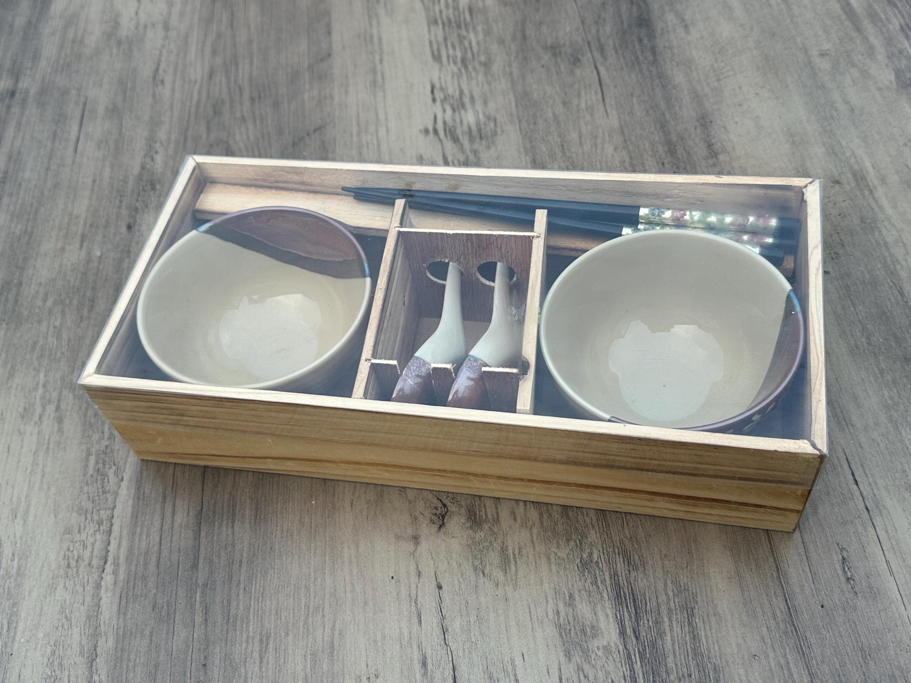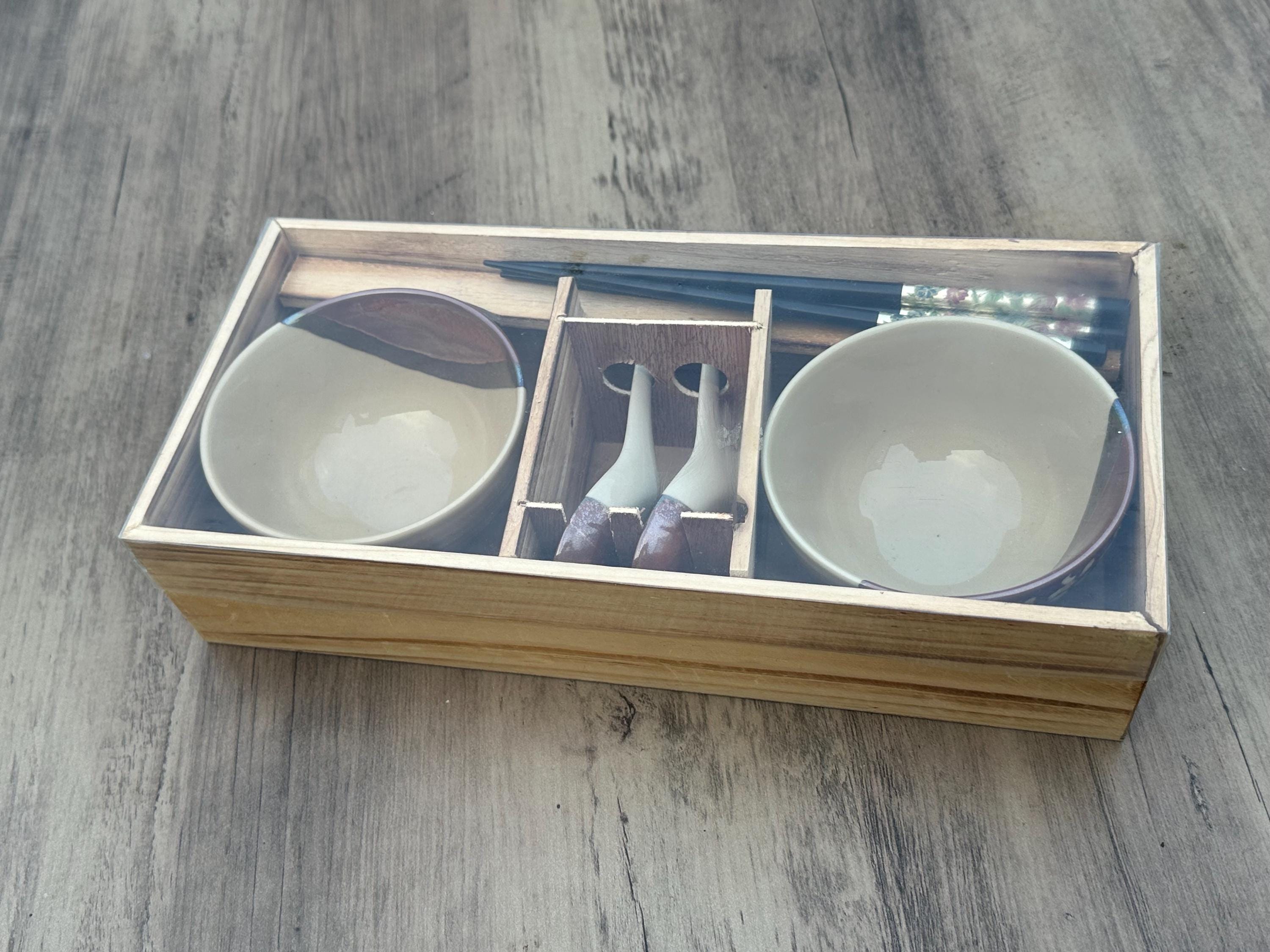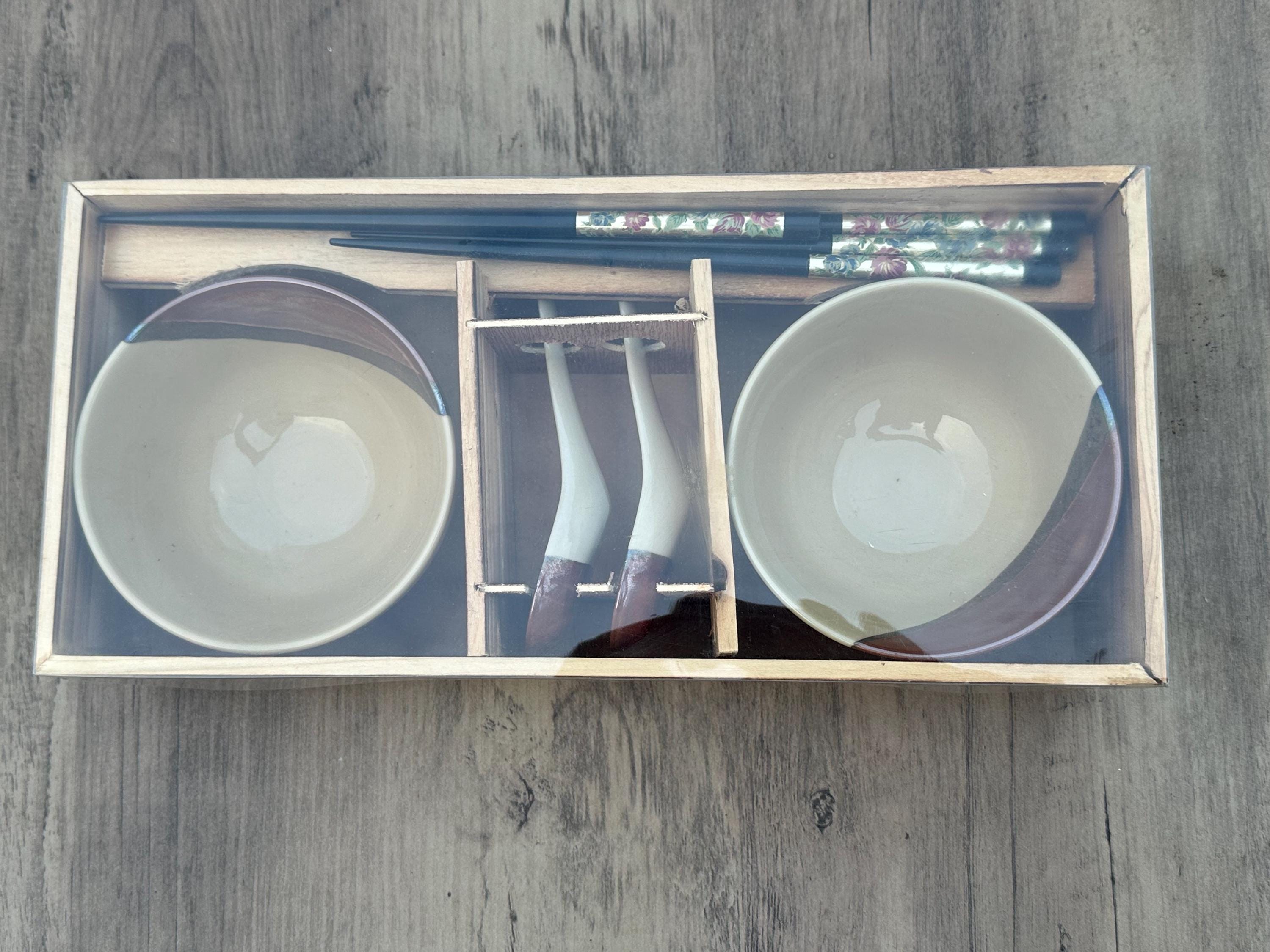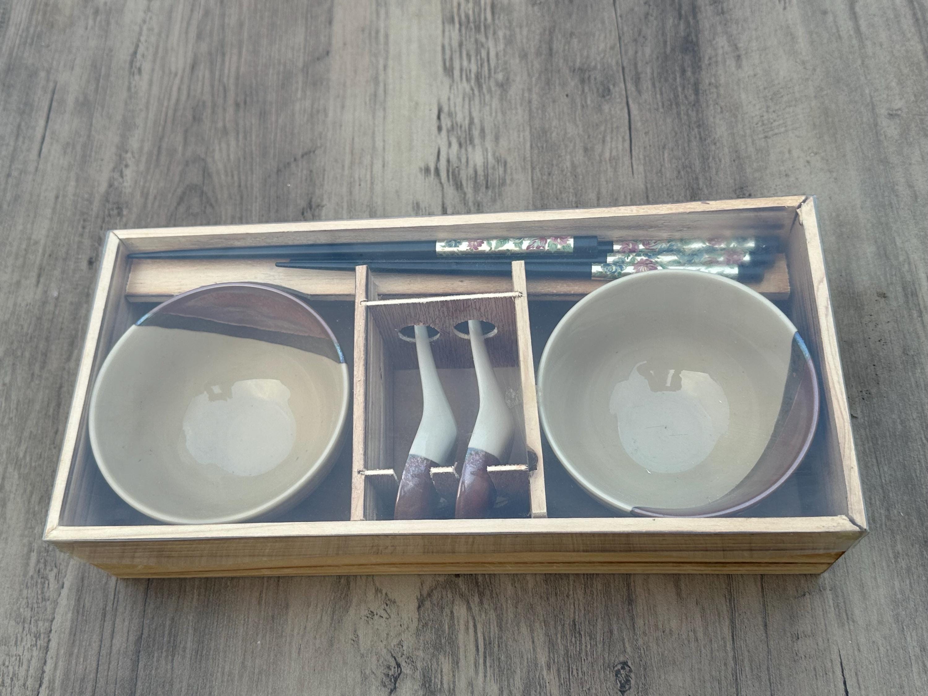 Vintage New Japanese Pottery Ramen Bowl Gift Set – 2 Bowls, Chopsticks & Spoons
