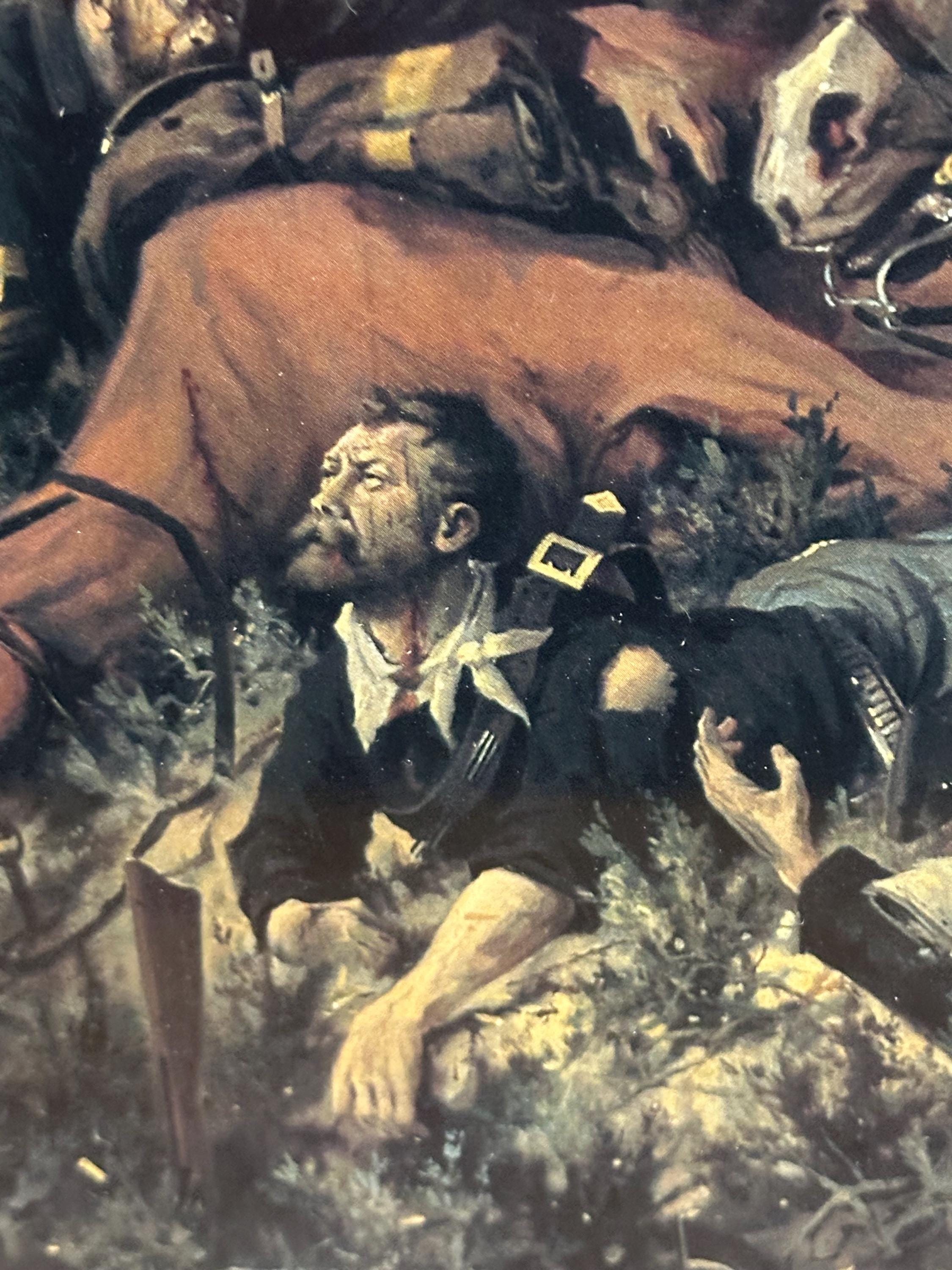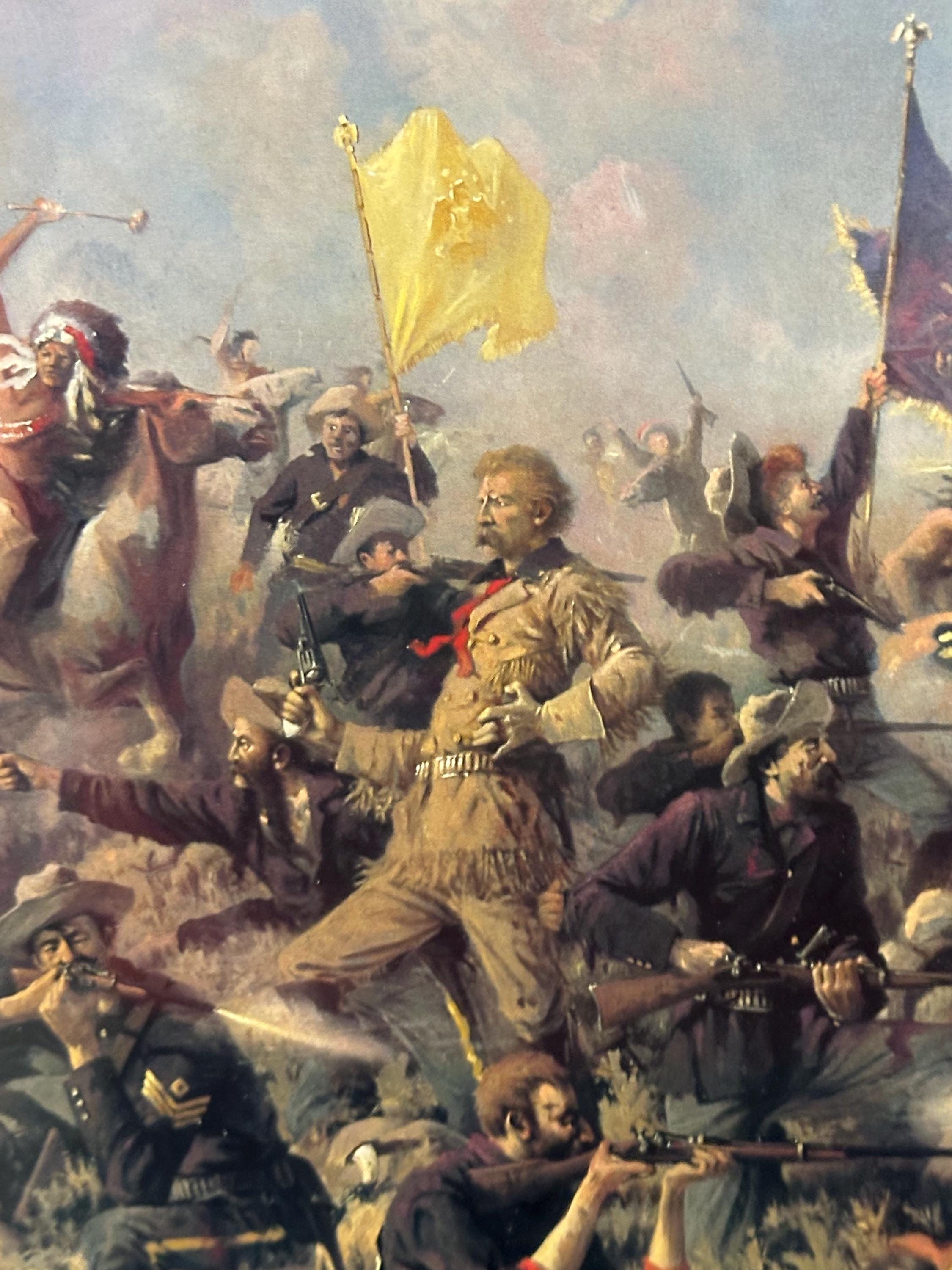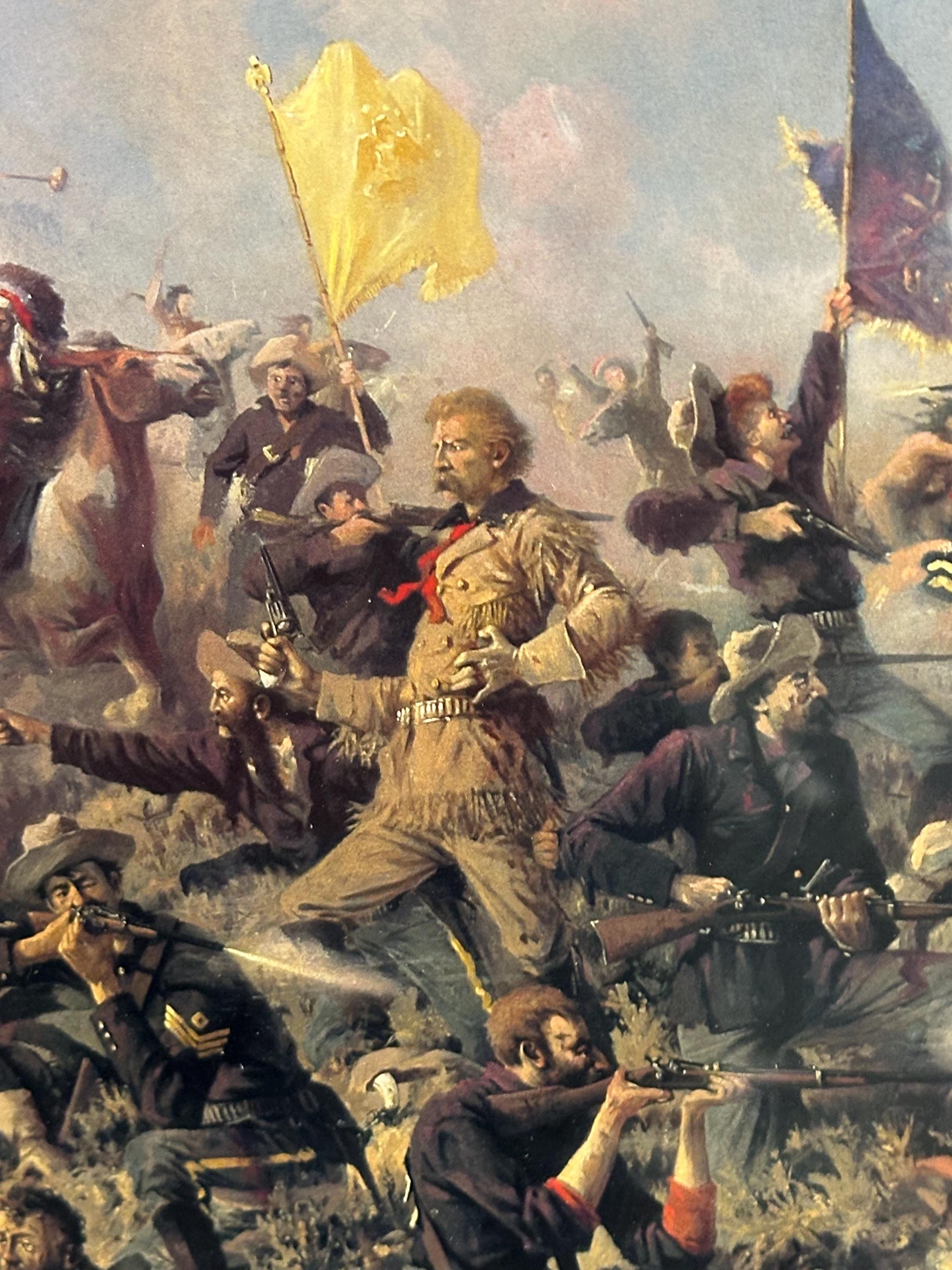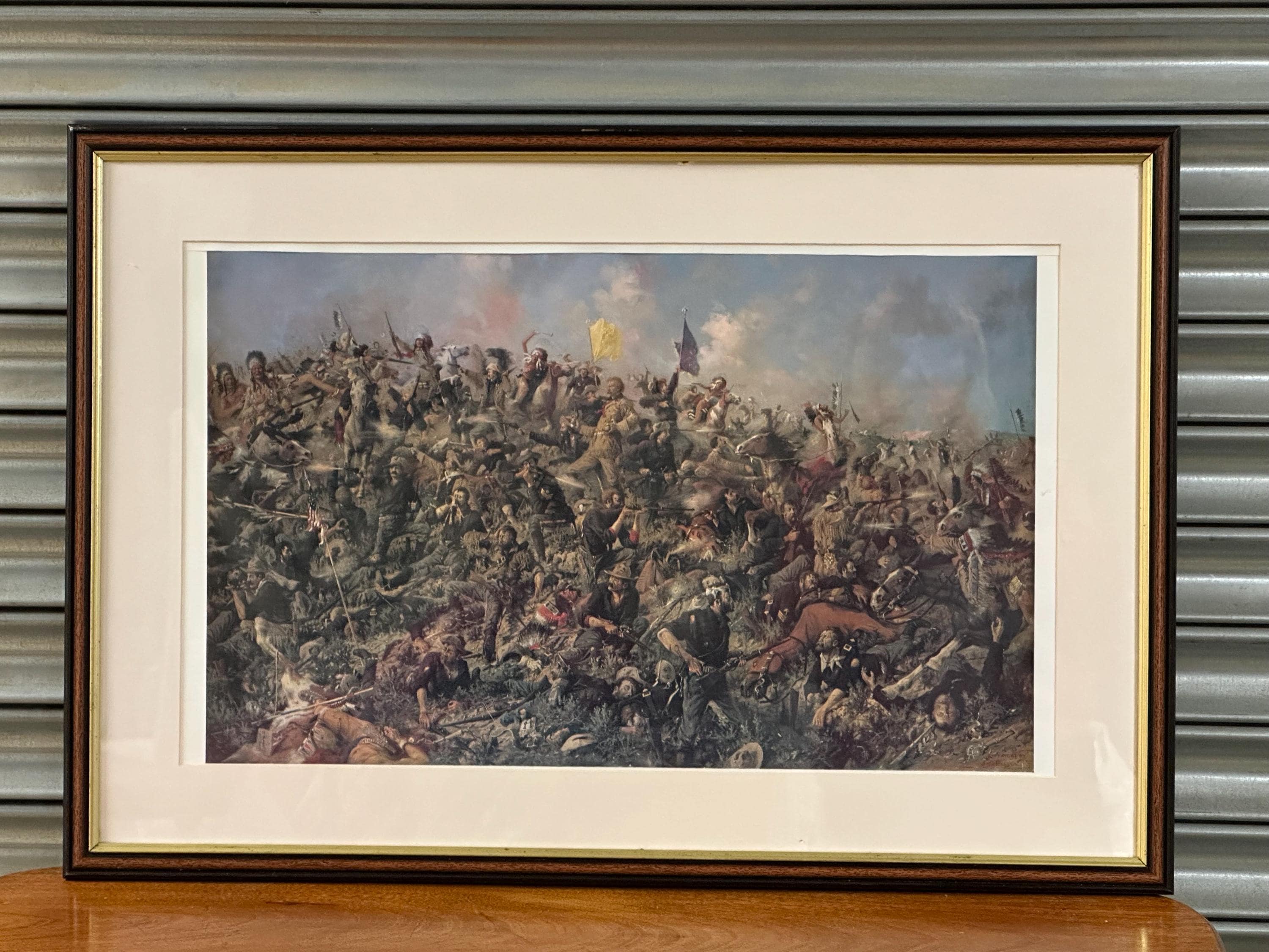 A dramatic framed print depicting Custer’s Last Stand, one of the most iconic moments in American Western and military history. This highly detailed artwork shows the intense final battle of Lt. Col. George Armstrong Custer and the 7th Cavalry at the Battle of the Little Bighorn, portrayed with vivid movement, colour, and emotion.