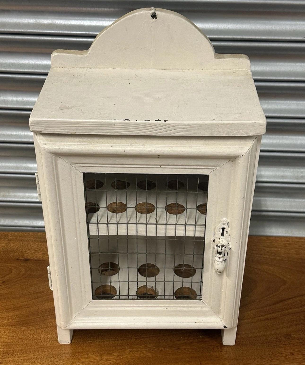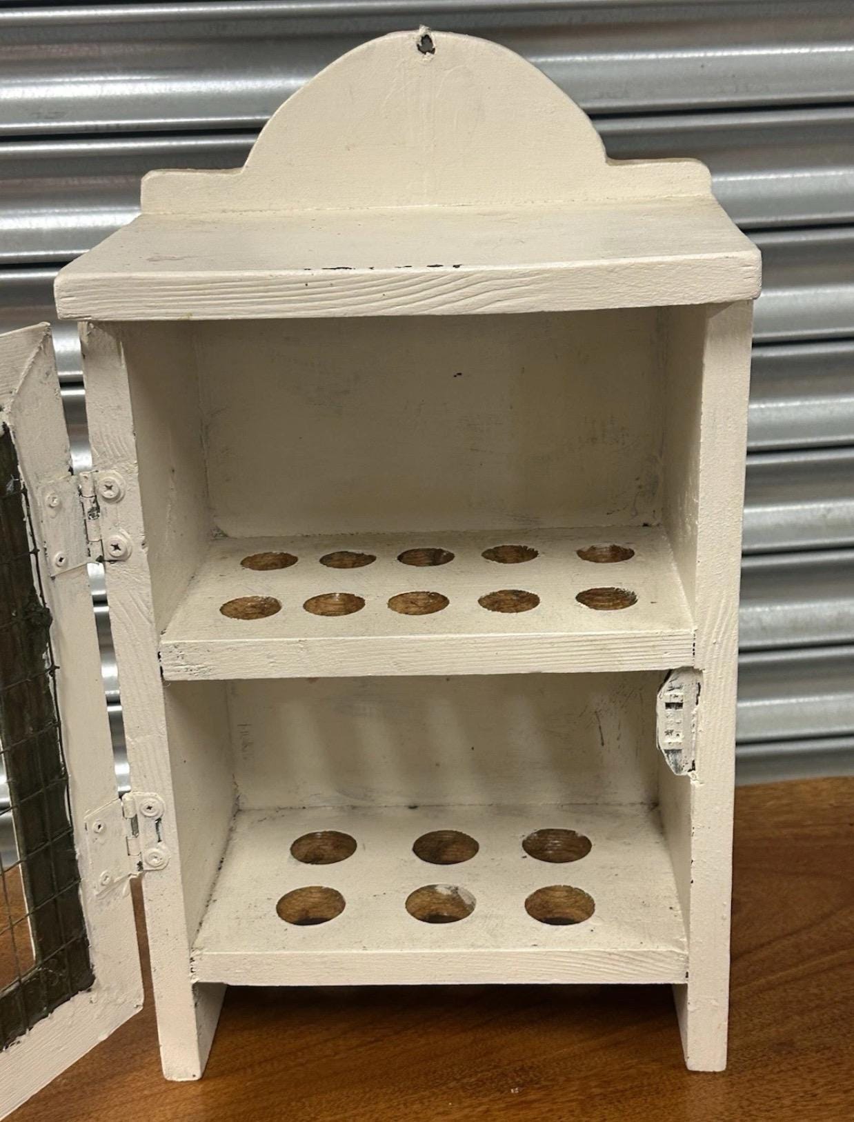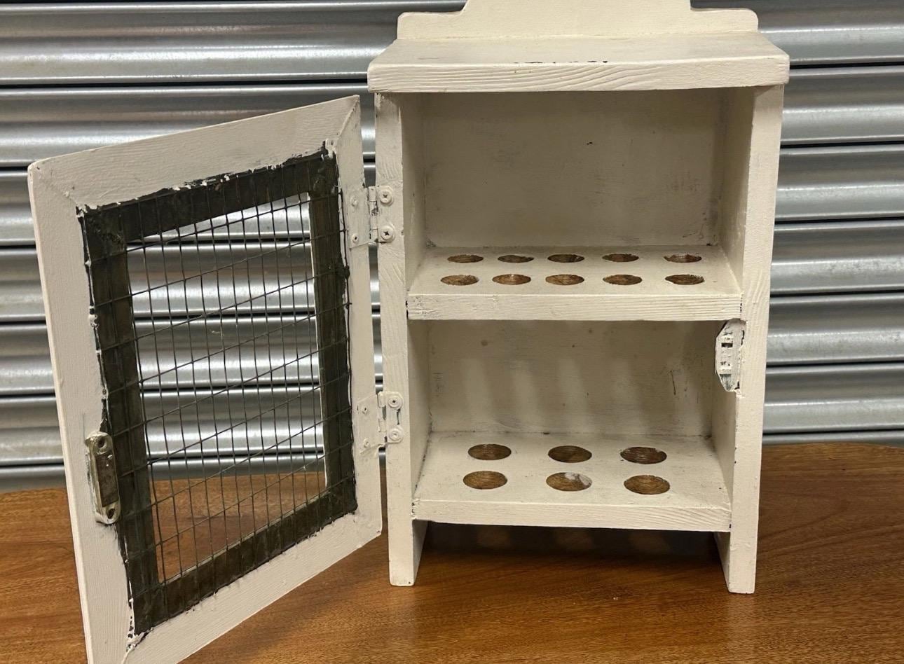 Charming Vintage Painted Wooden Egg Cabinet / Egg Safe – Wire Front – Country Farmhouse Style