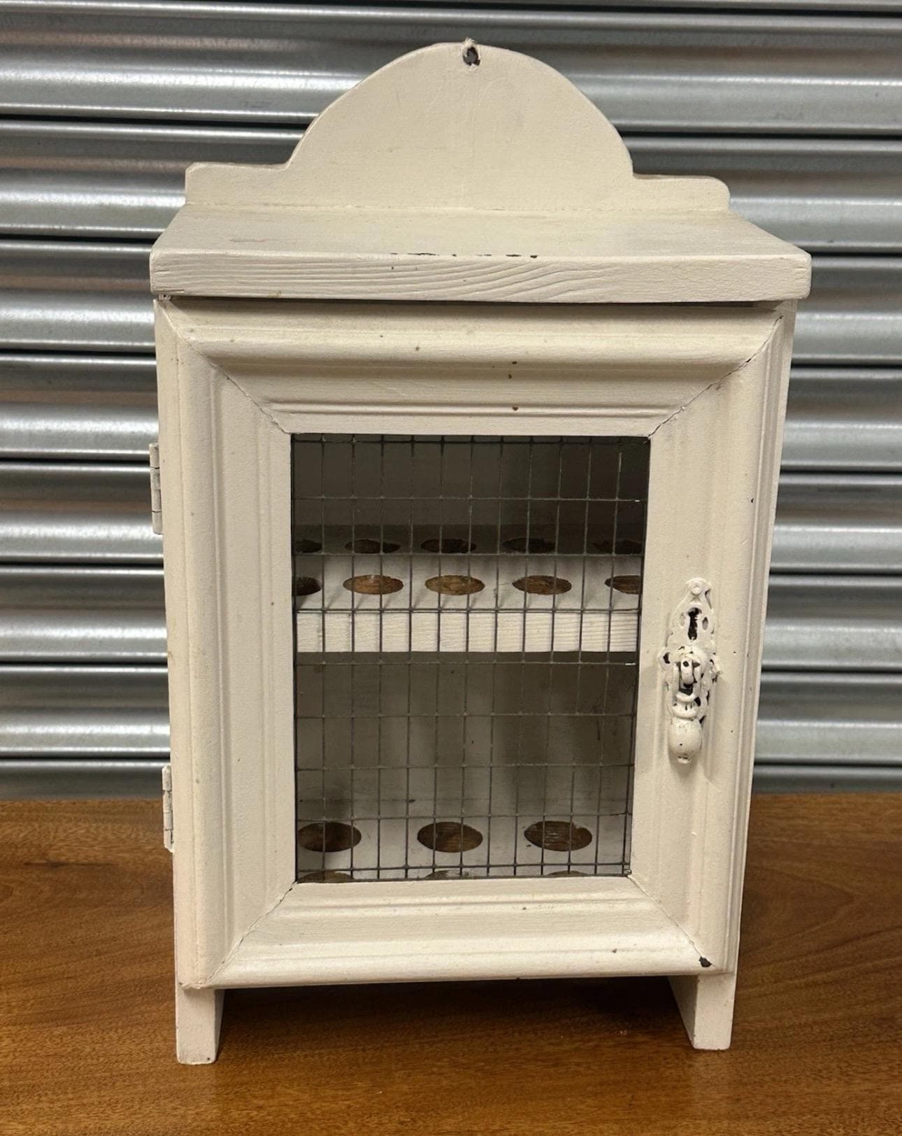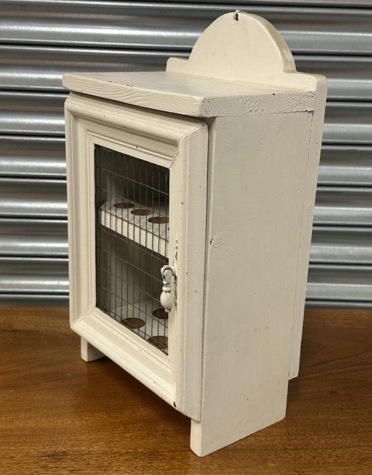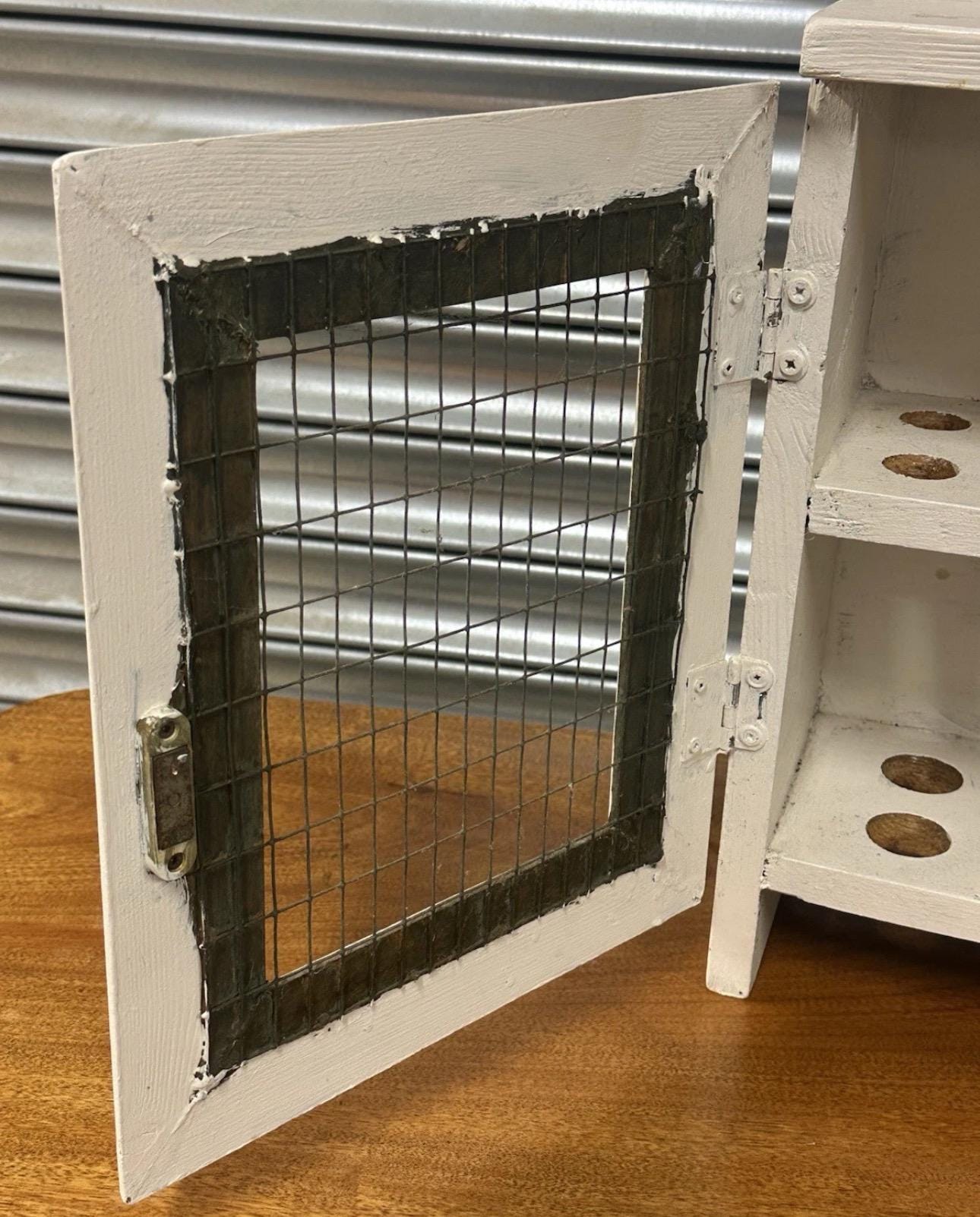 Charming Vintage Painted Wooden Egg Cabinet / Egg Safe – Wire Front – Country Farmhouse Style