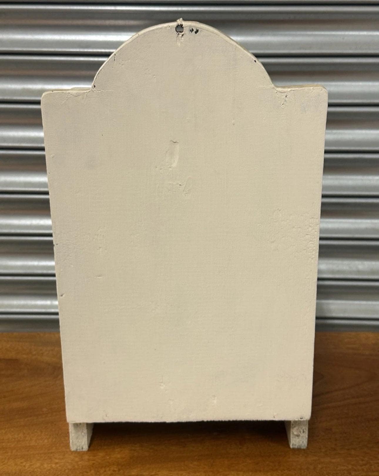 A practical and decorative piece that can be wall-mounted (hole to the top) or stood on a countertop. Ideal for farmhouse décor, cottage interiors, or collectors of vintage kitchenalia.