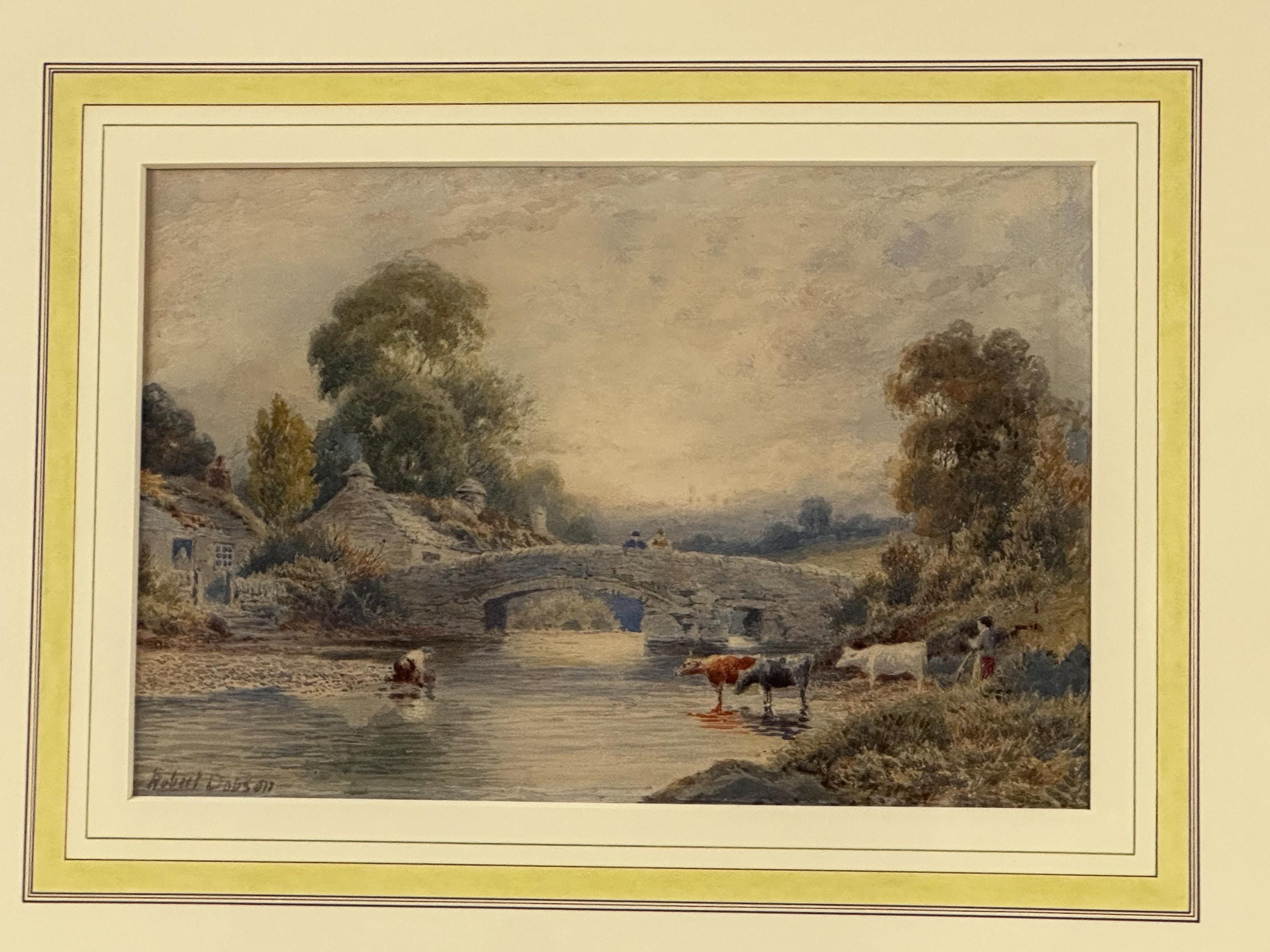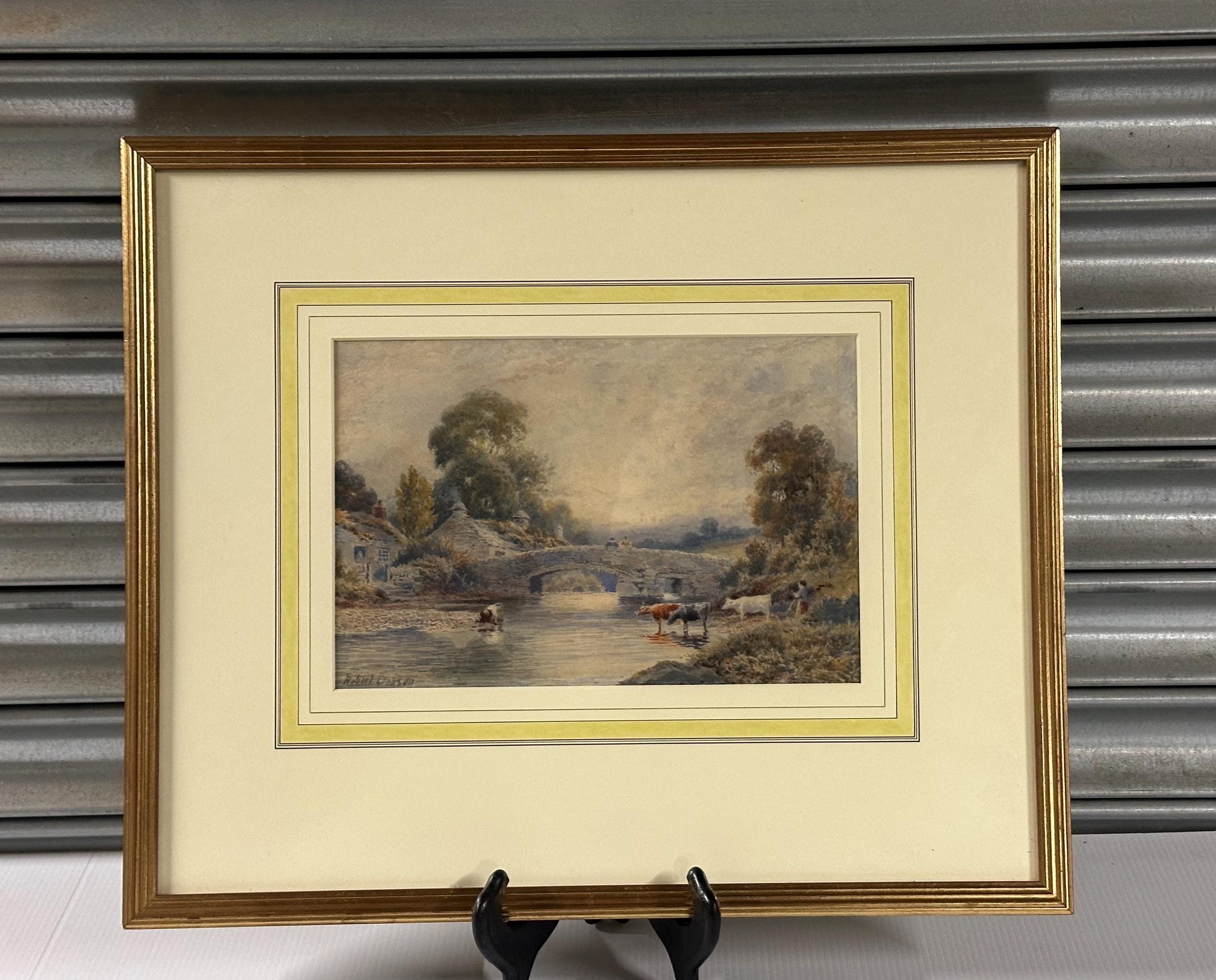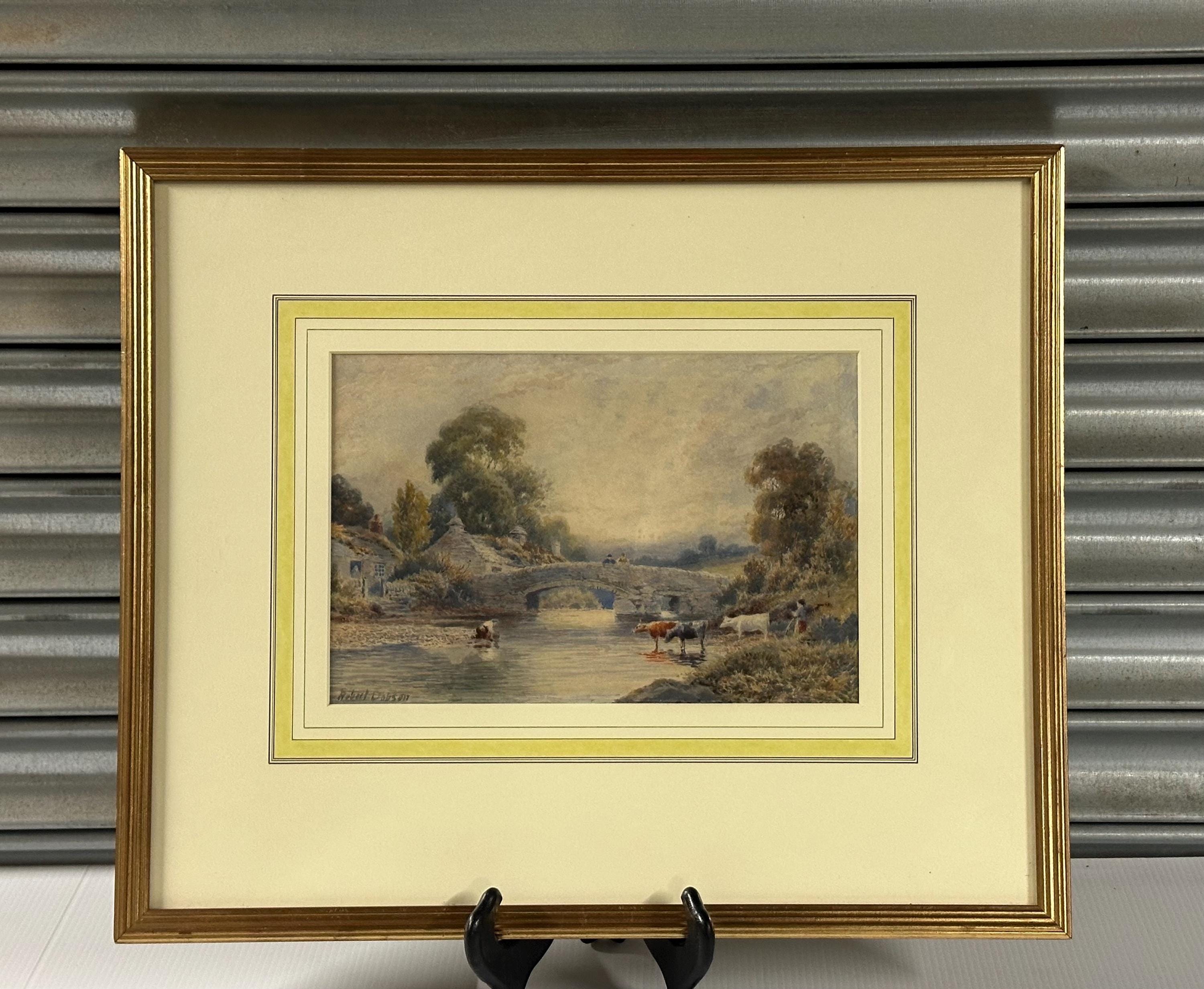 This is a beautifully detailed original watercolour painting by Robert Dobson, an accomplished late-19th/early-20th-century artist known for his atmospheric rural scenes of Lancashire and Cheshire. His work is admired for its gentle palette, soft light and highly skilled depiction of the English countryside.