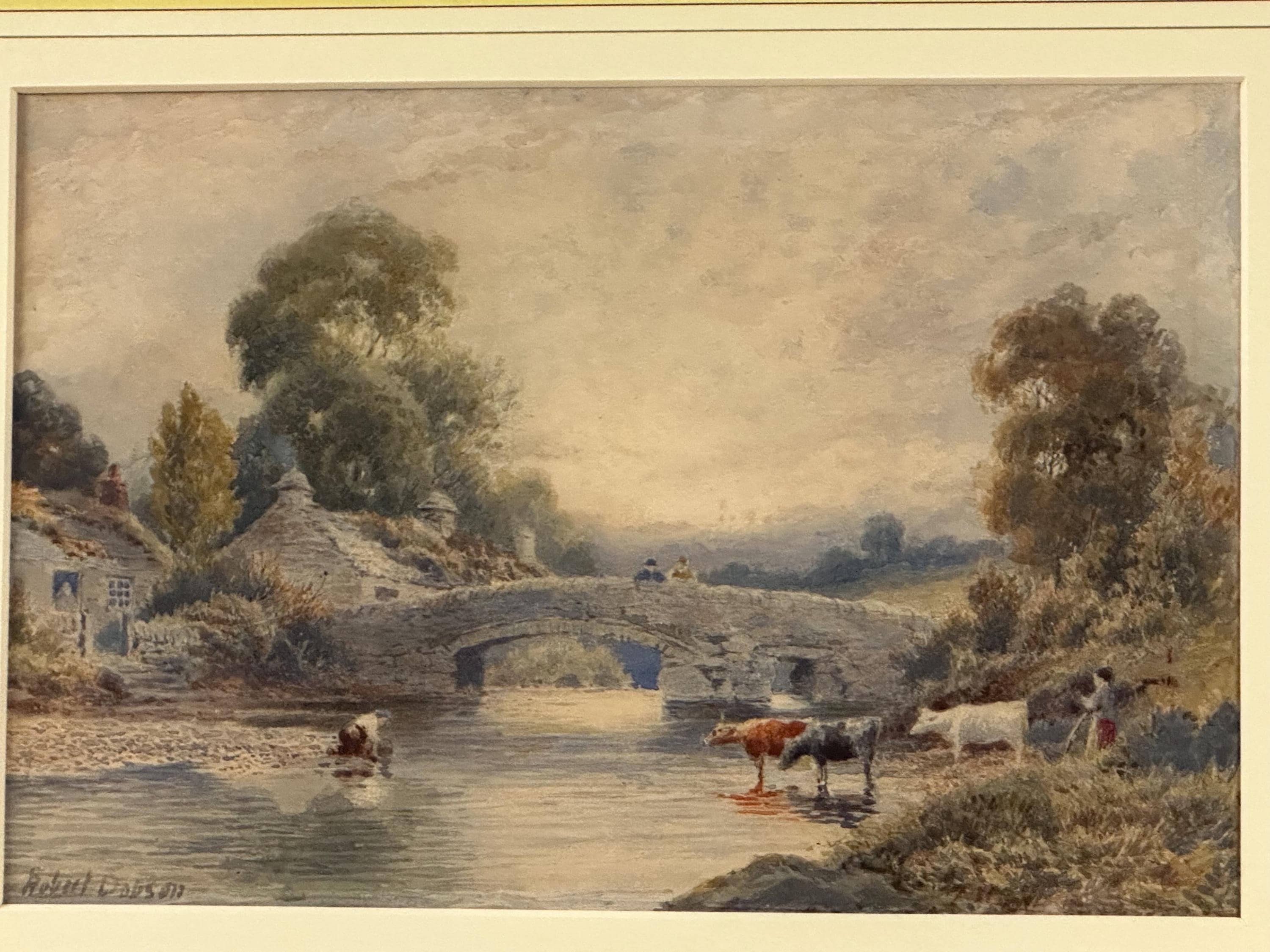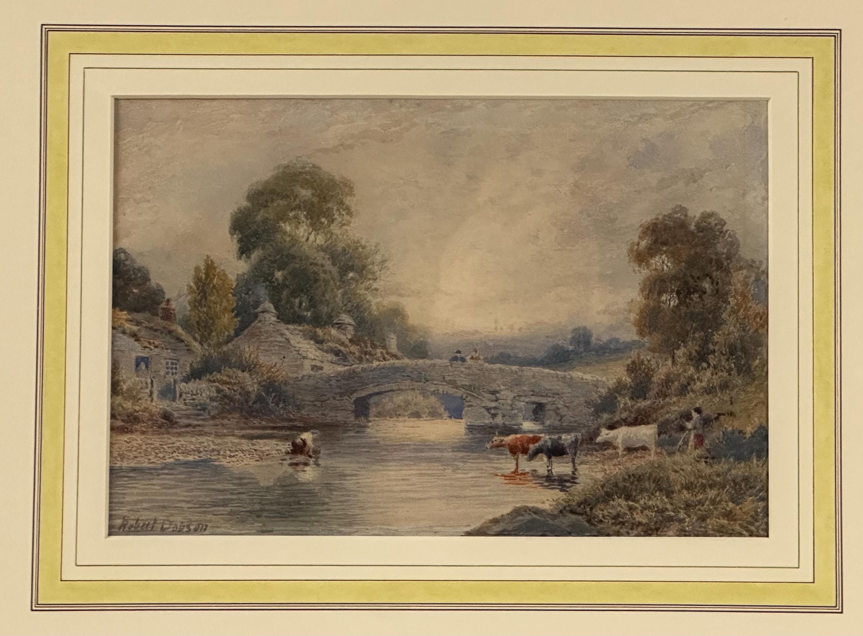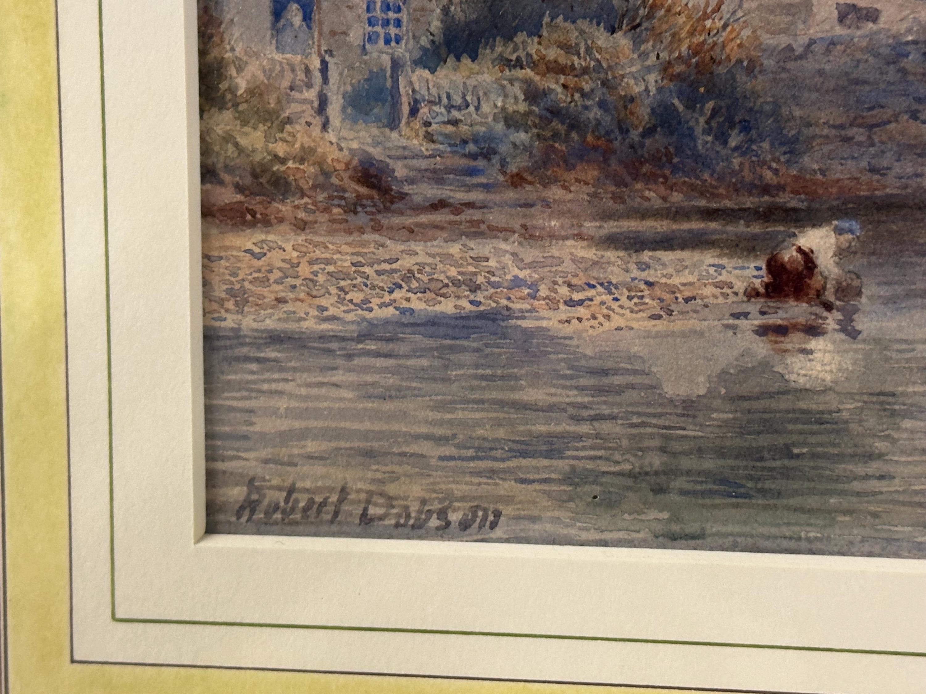 This is a beautifully detailed original watercolour painting by Robert Dobson, an accomplished late-19th/early-20th-century artist known for his atmospheric rural scenes of Lancashire and Cheshire. His work is admired for its gentle palette, soft light and highly skilled depiction of the English countryside.
