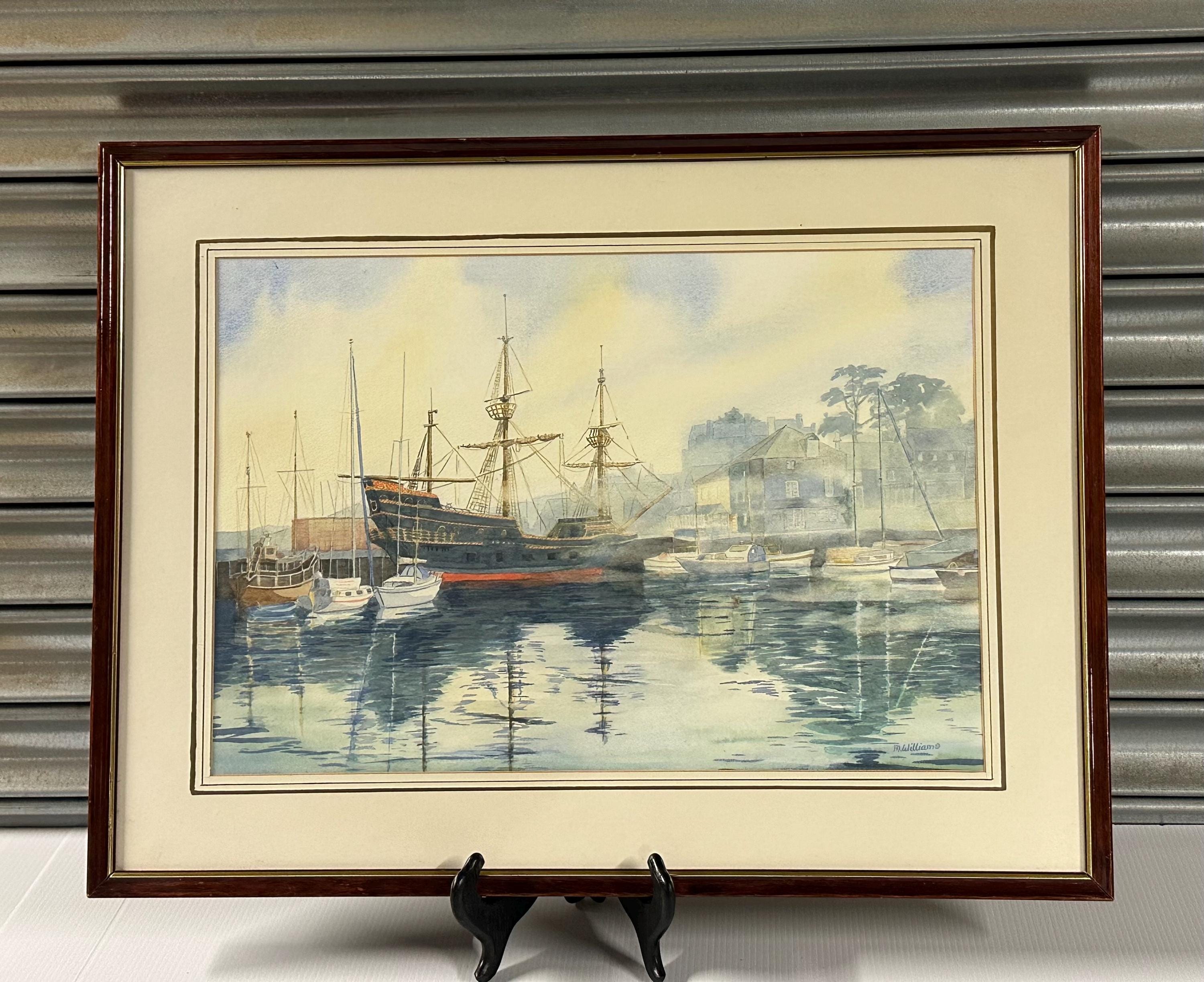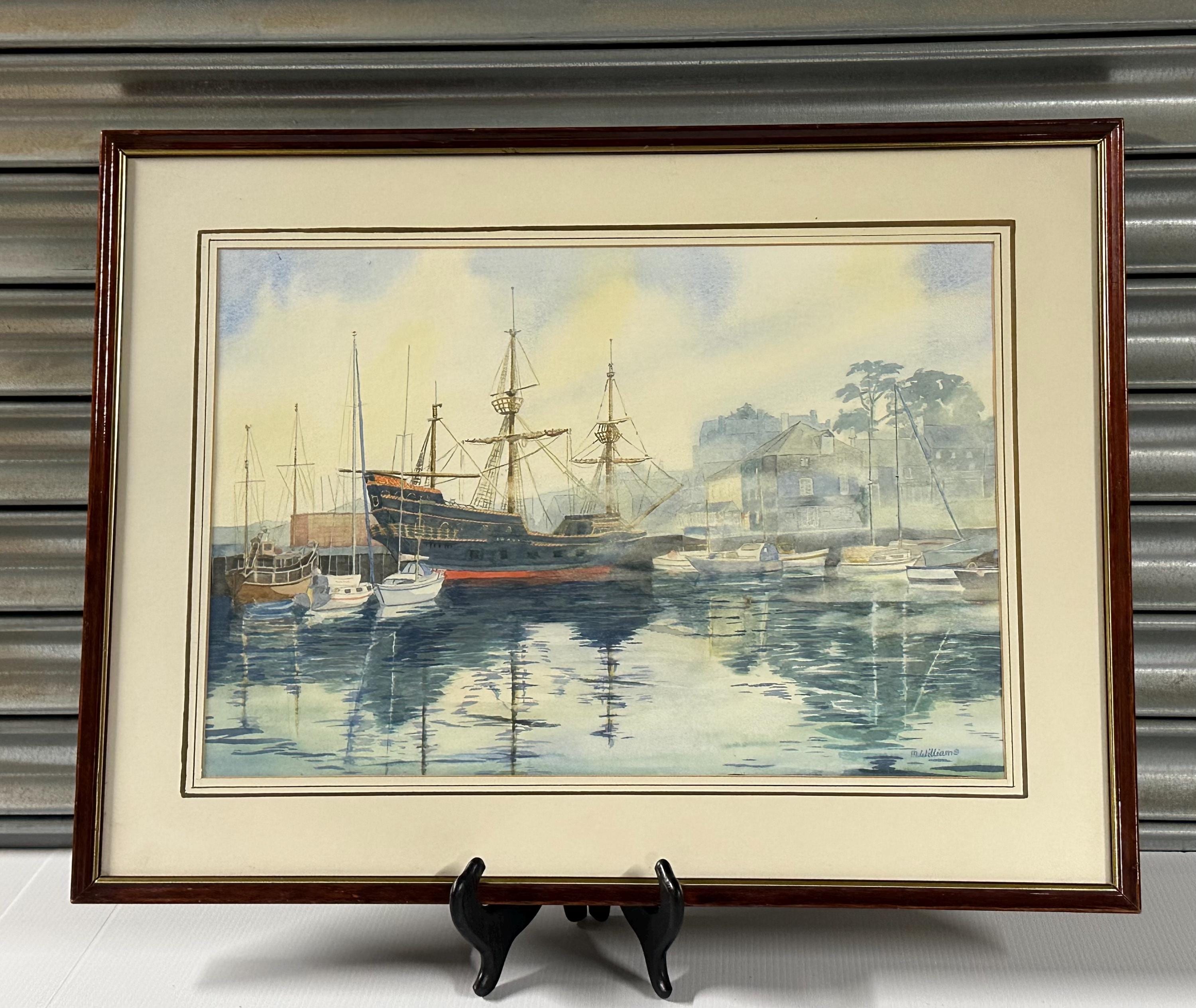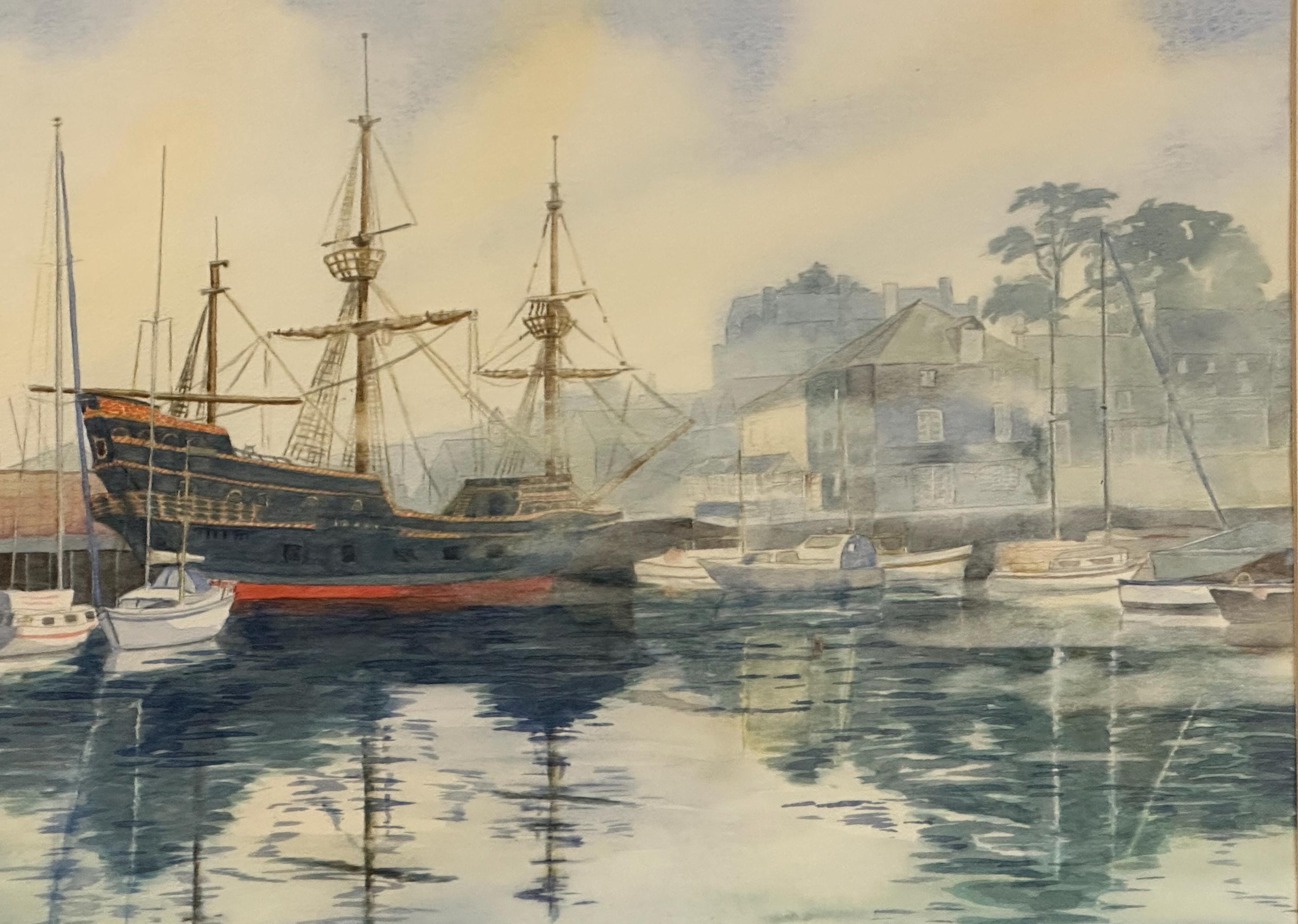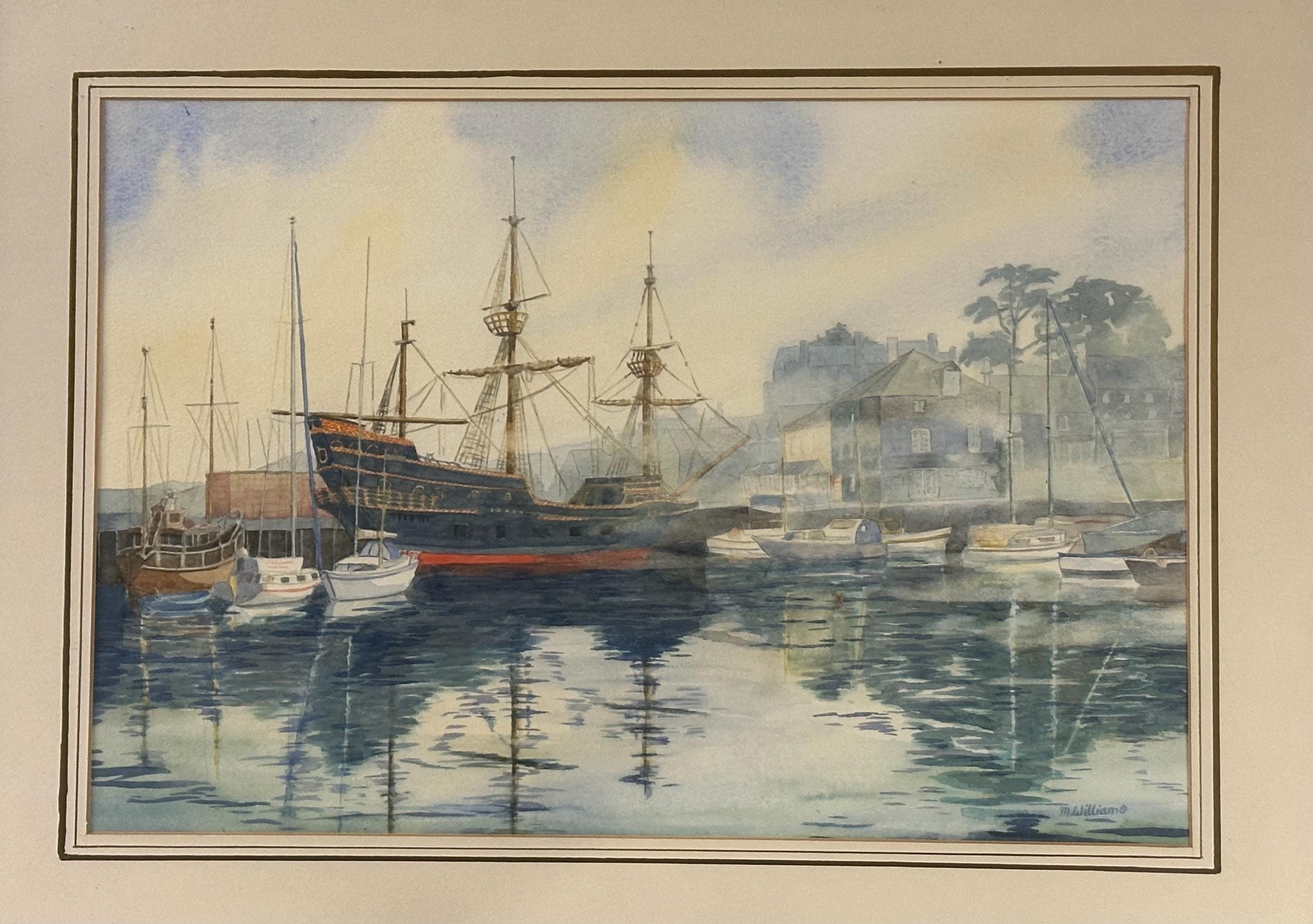 Beautiful Watercolour of the Golden Hind, Padstow – Signed M. Williams