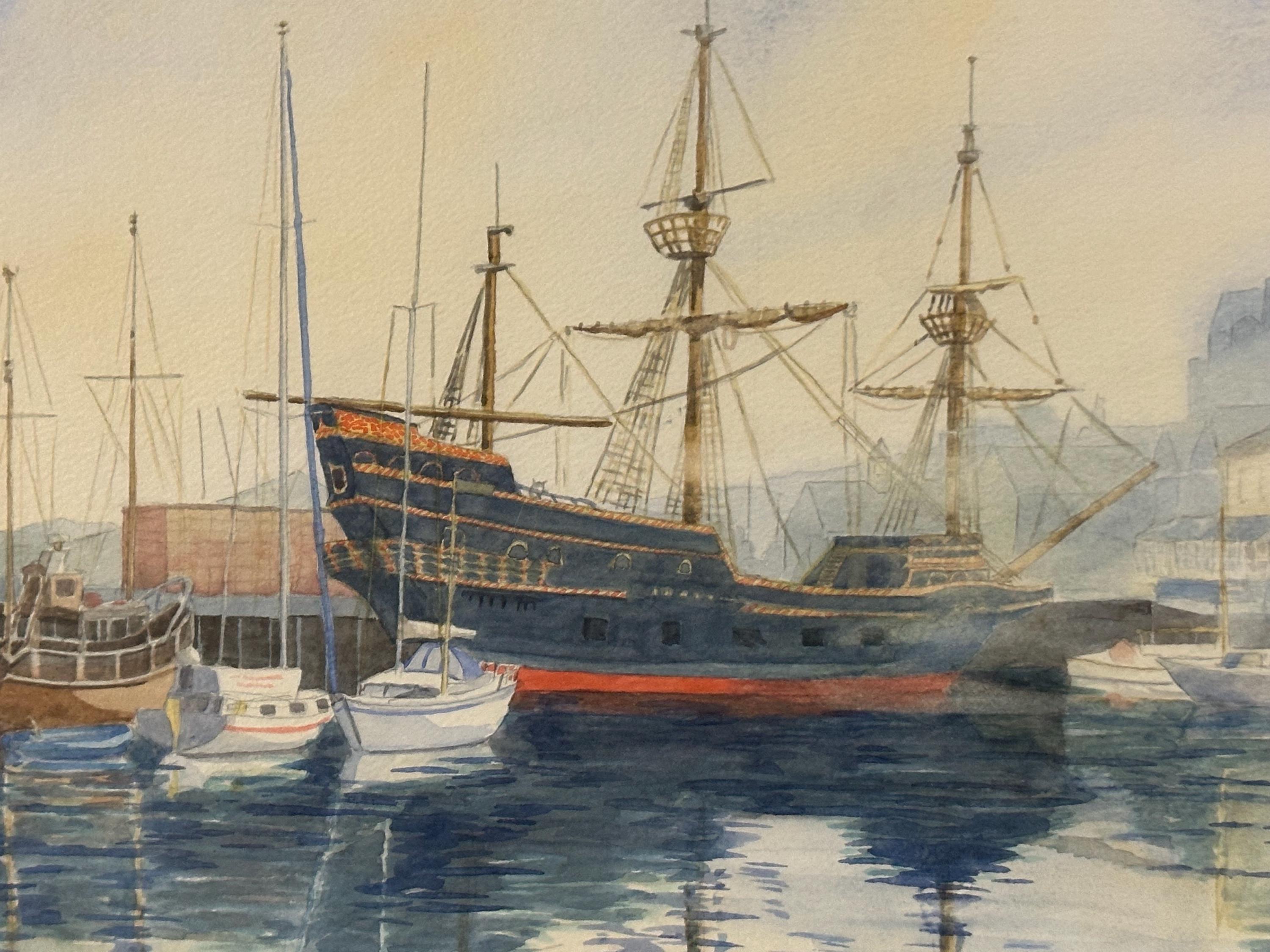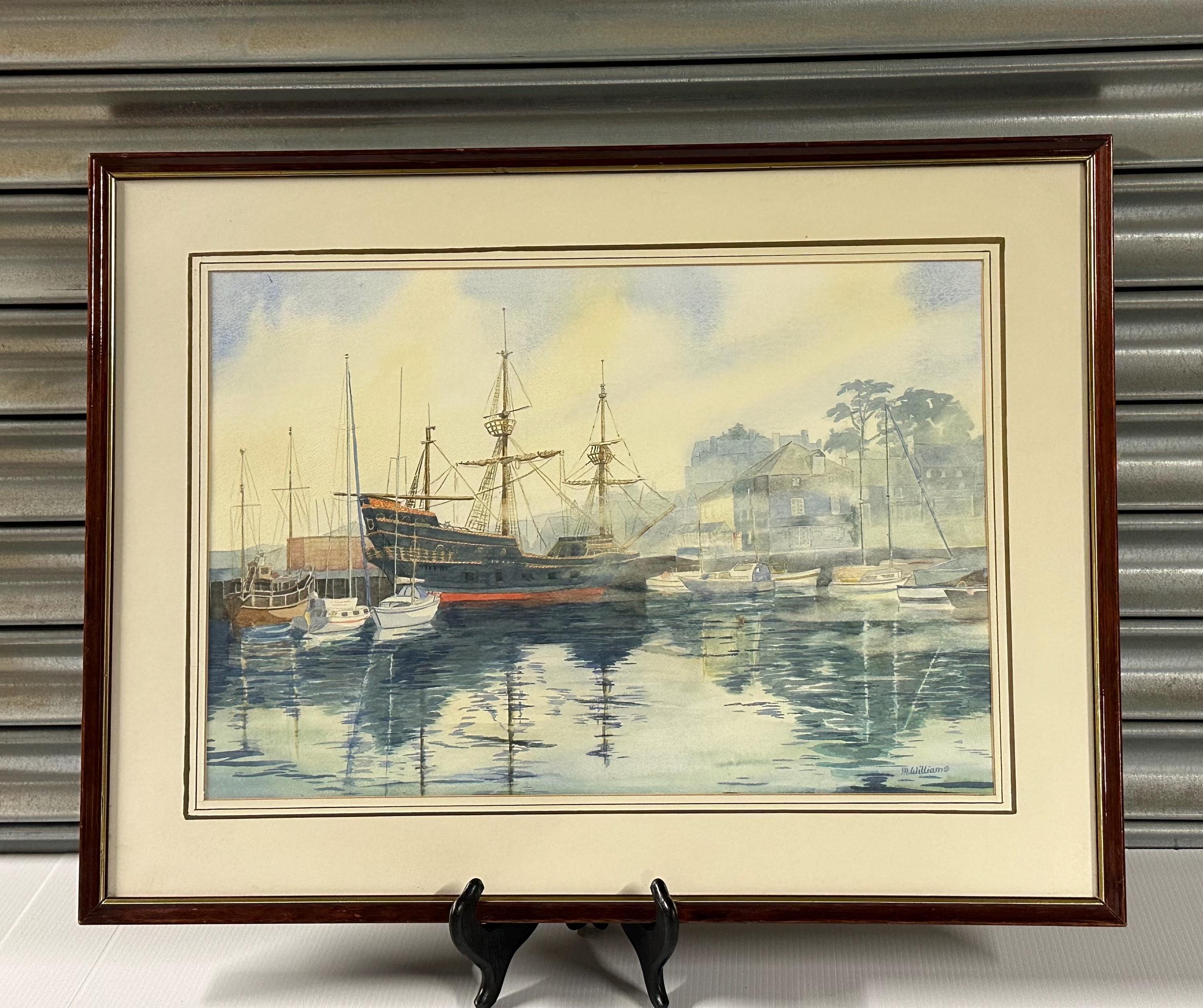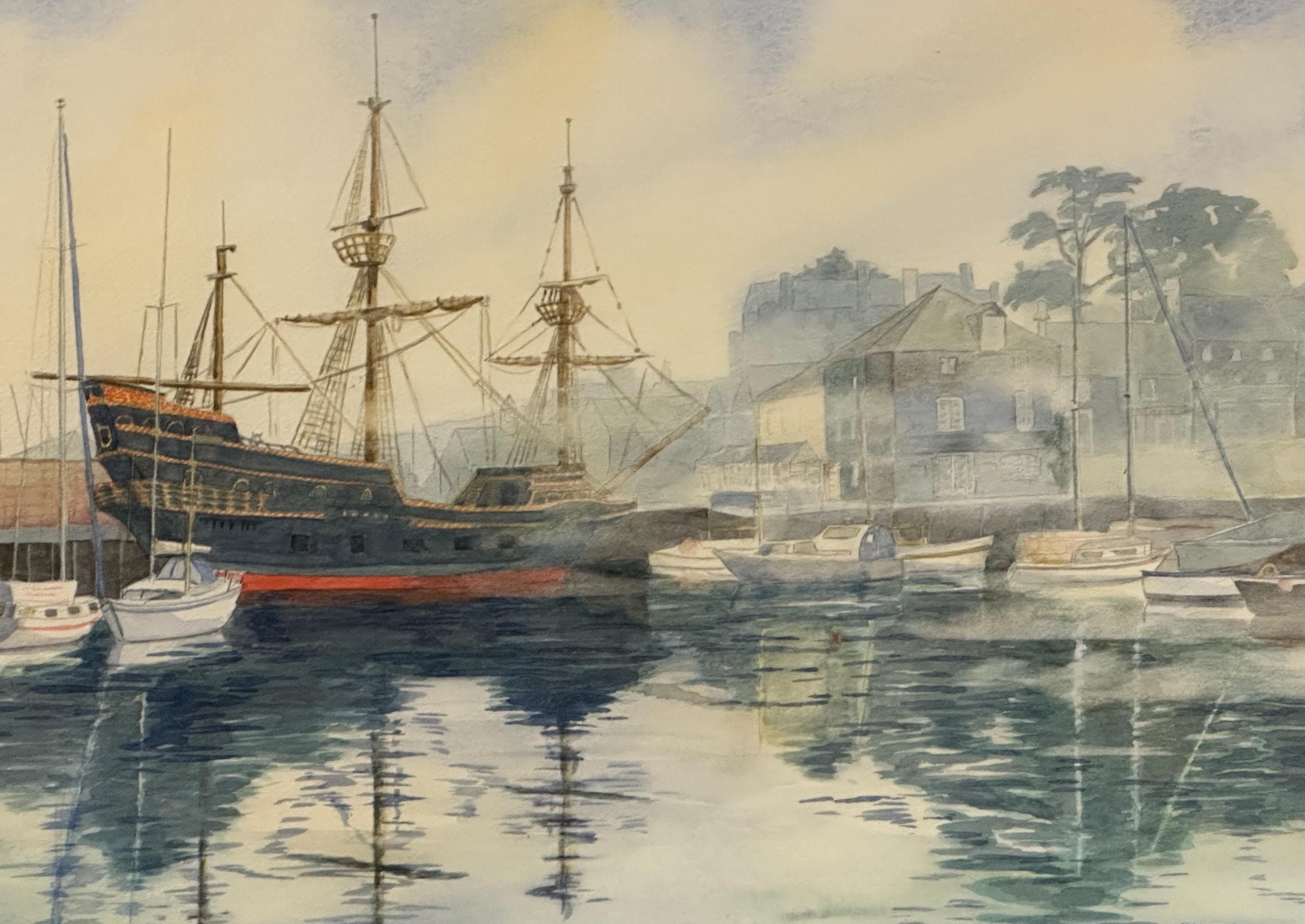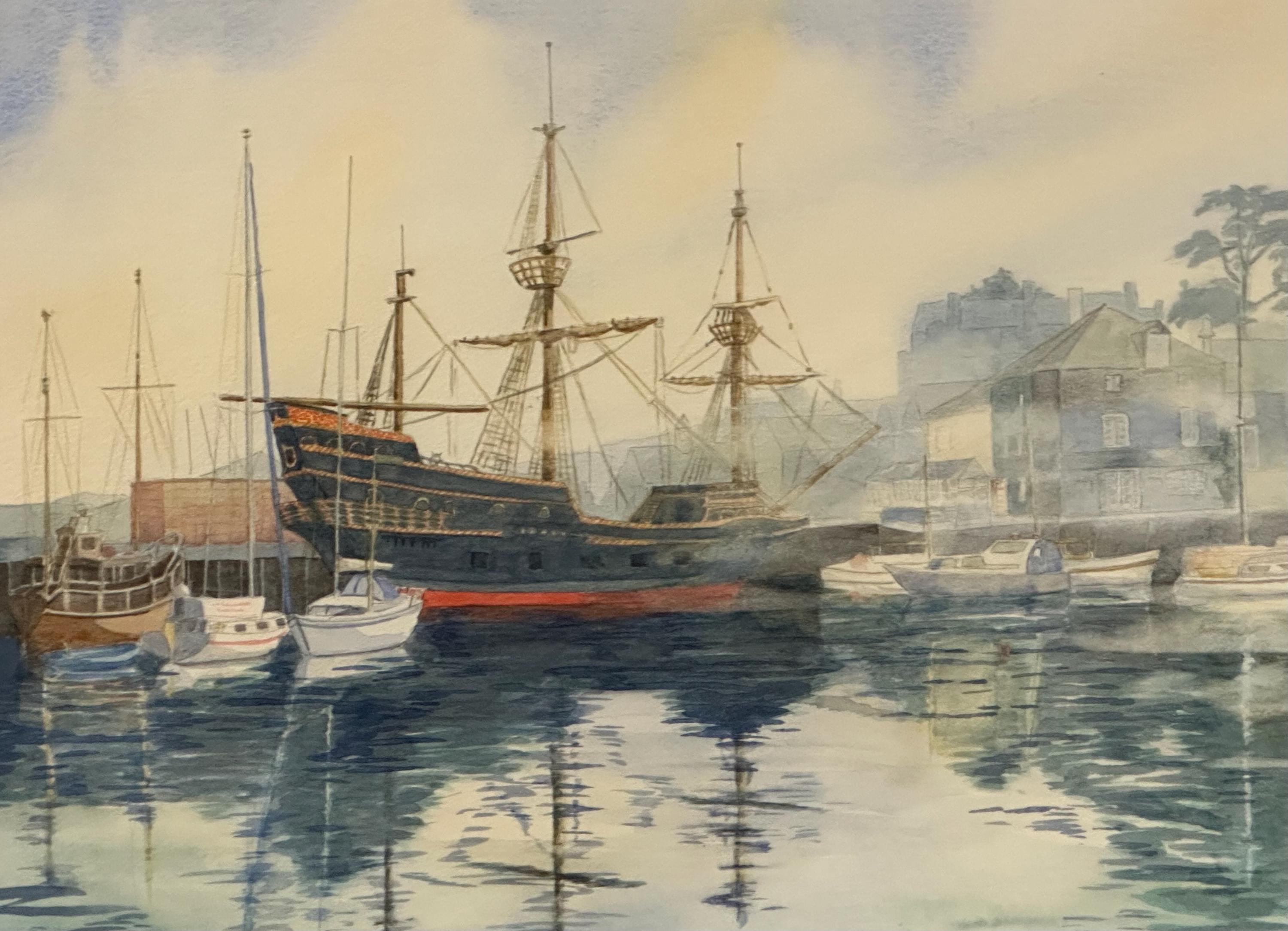 Beautiful Watercolour of the Golden Hind, Padstow – Signed M. Williams