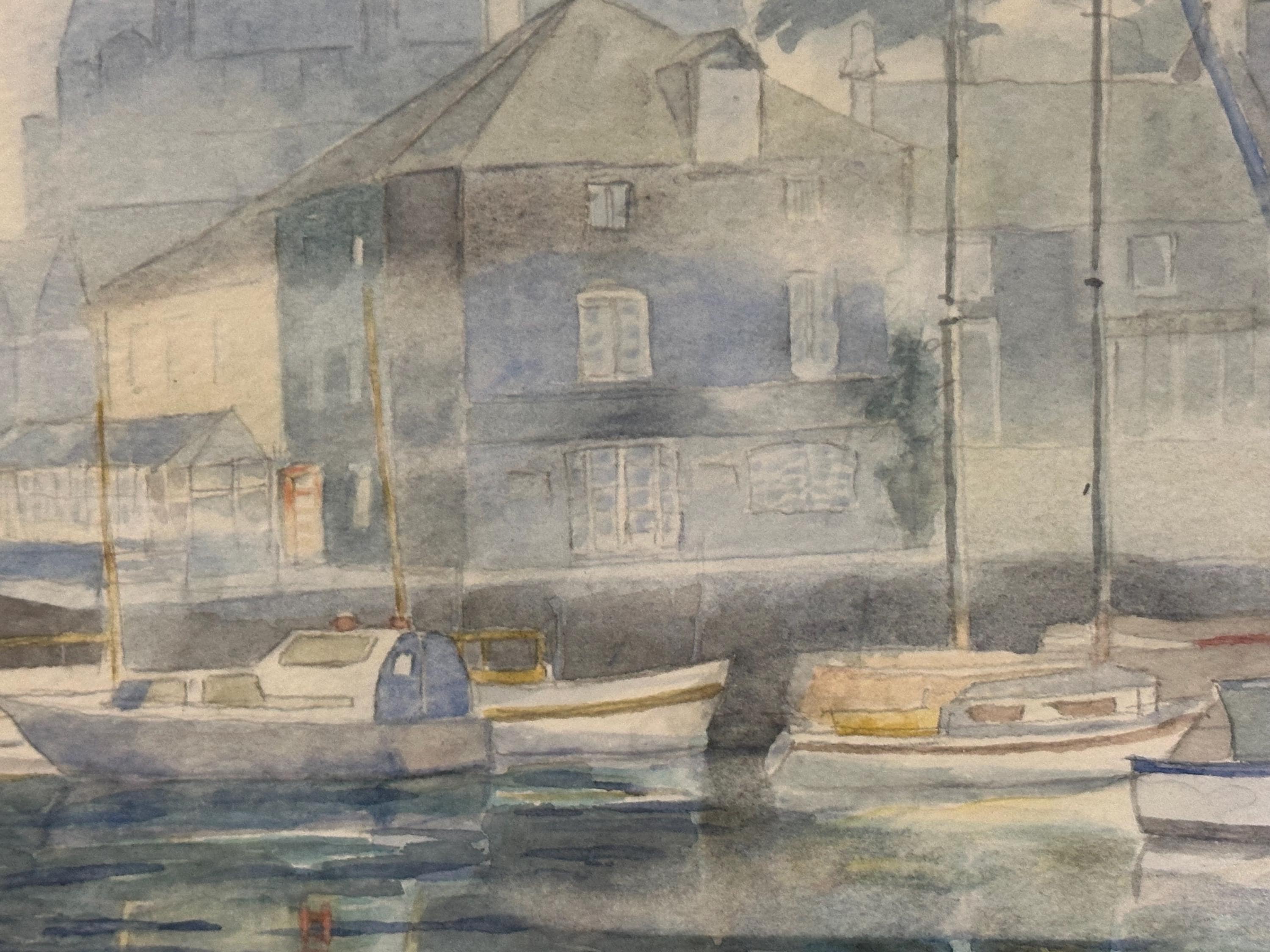 The artist has used gentle tones and fine detailing to create a peaceful maritime composition, with excellent handling of reflections and sky washes. It is beautifully presented in a double-mounted frame, ready to hang and enjoy.