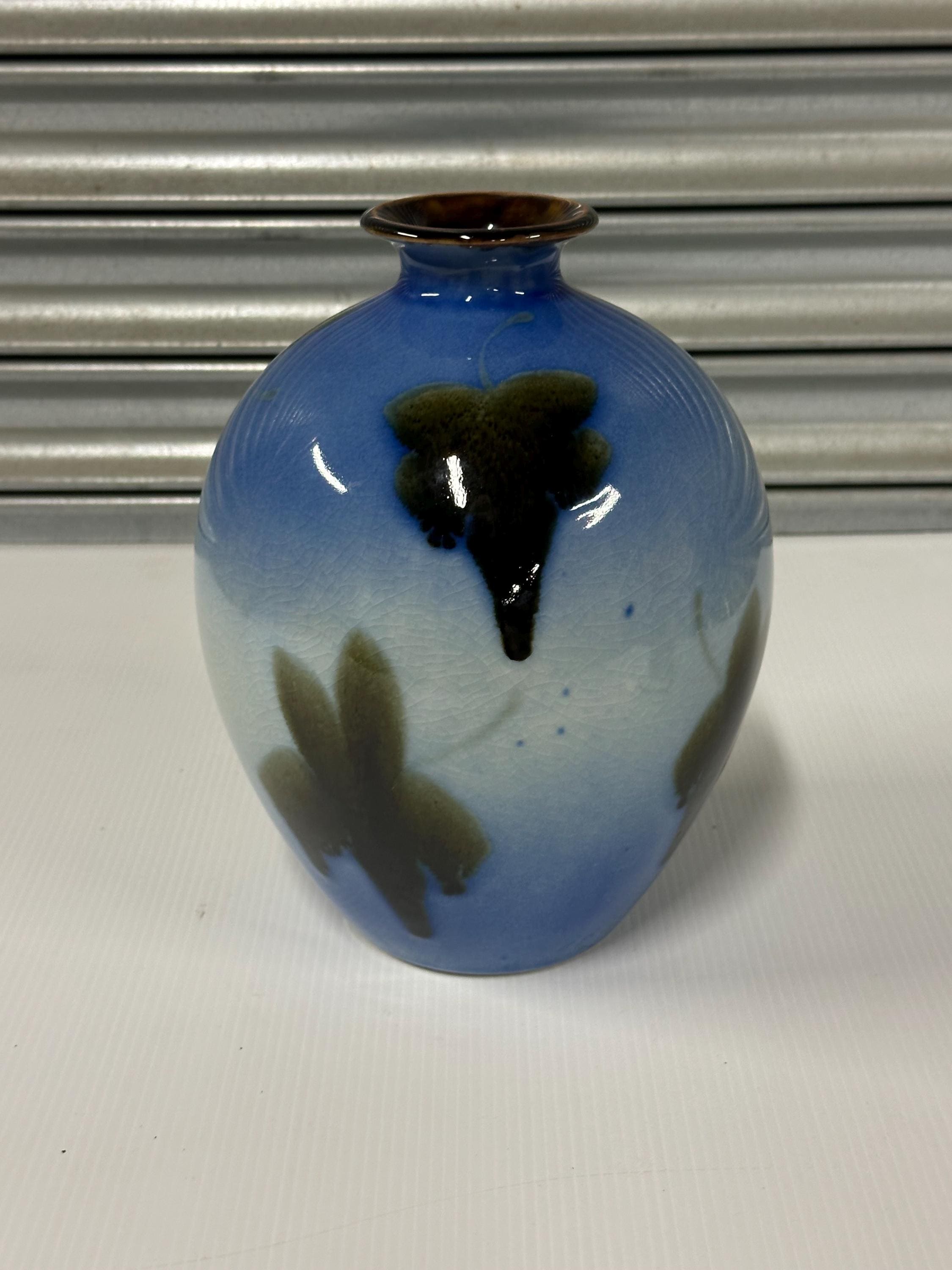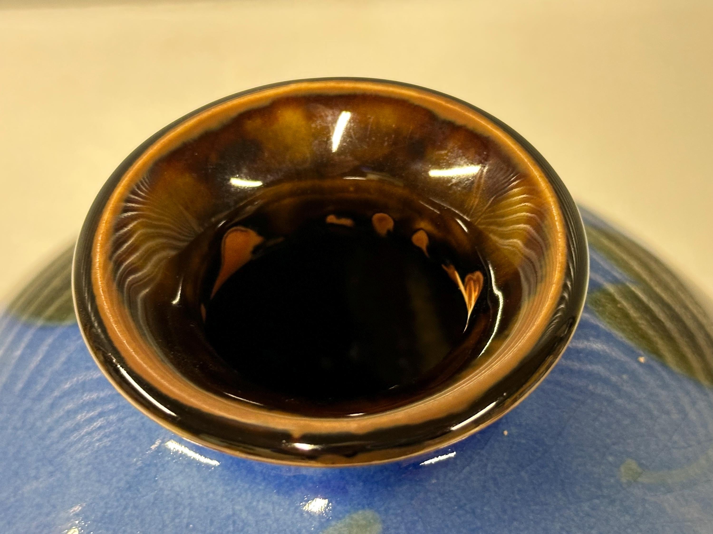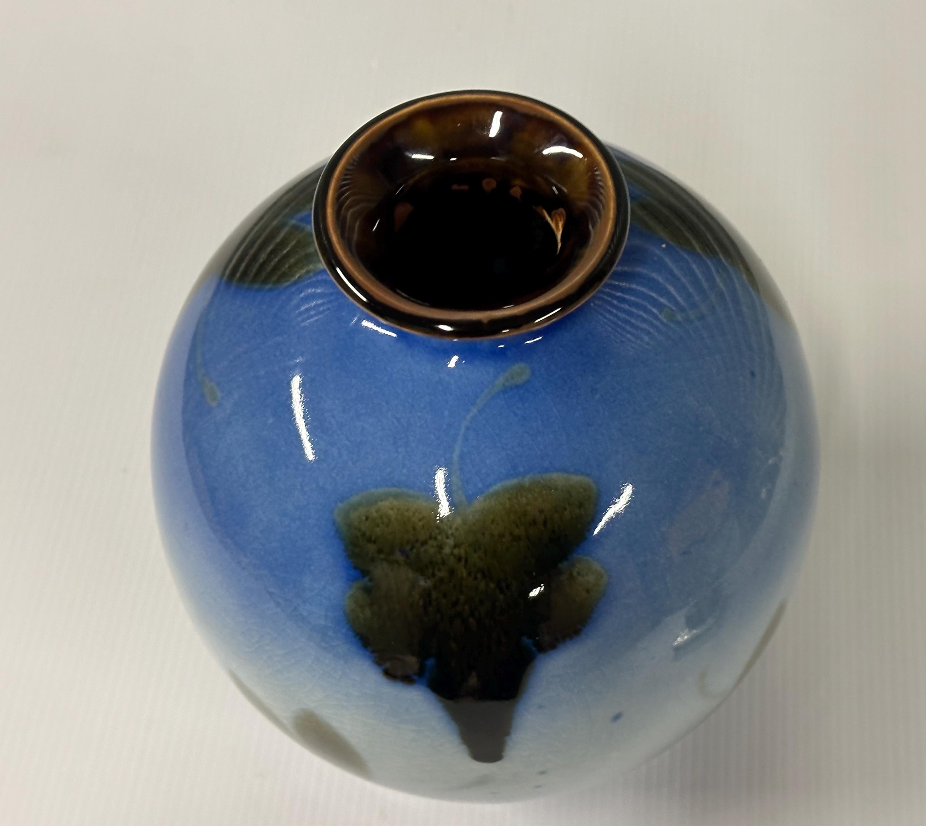 Vintage Chinese Inspired Glazed Vase – Blue & Brown Leaf Design Studio Pottery