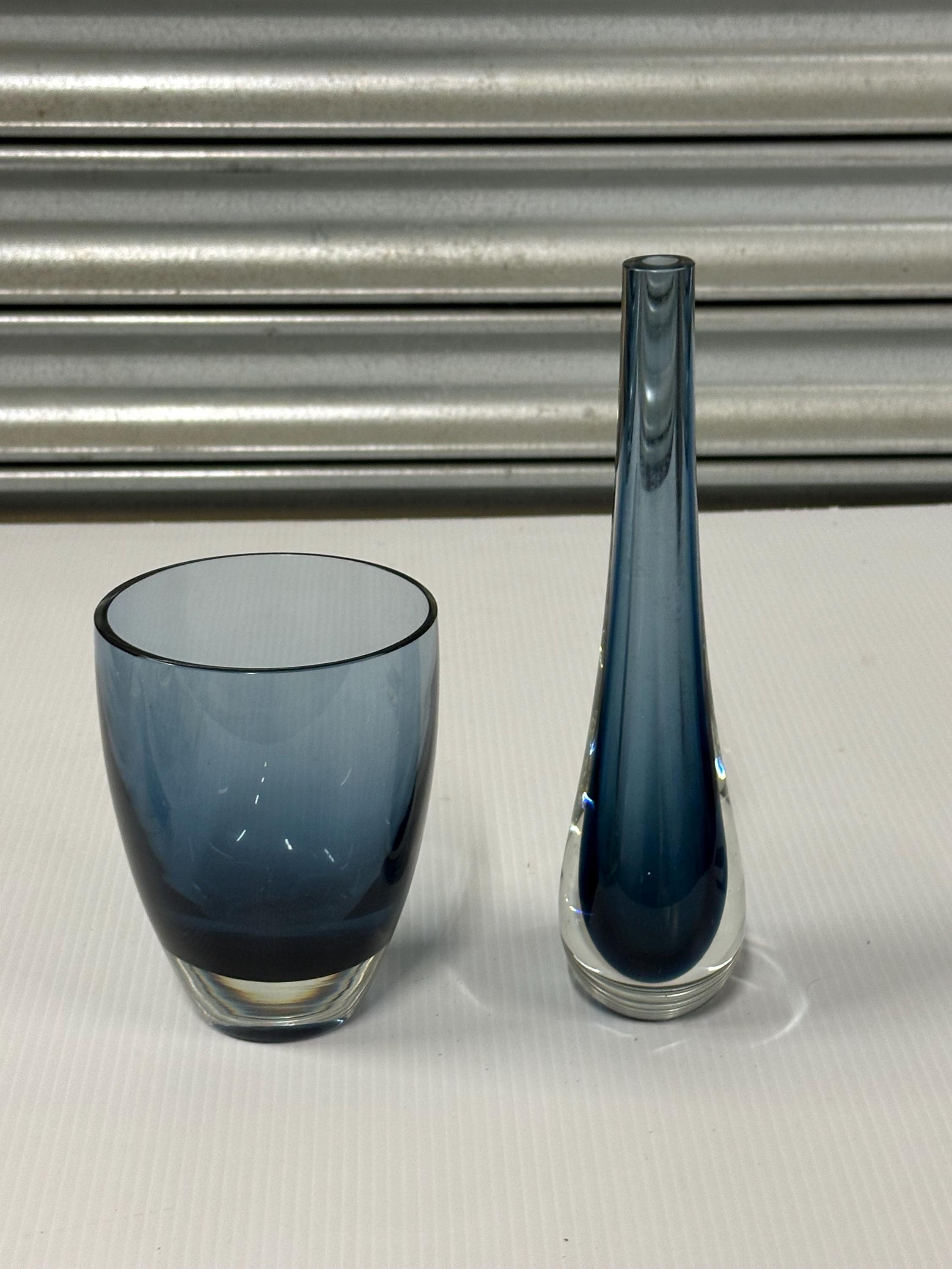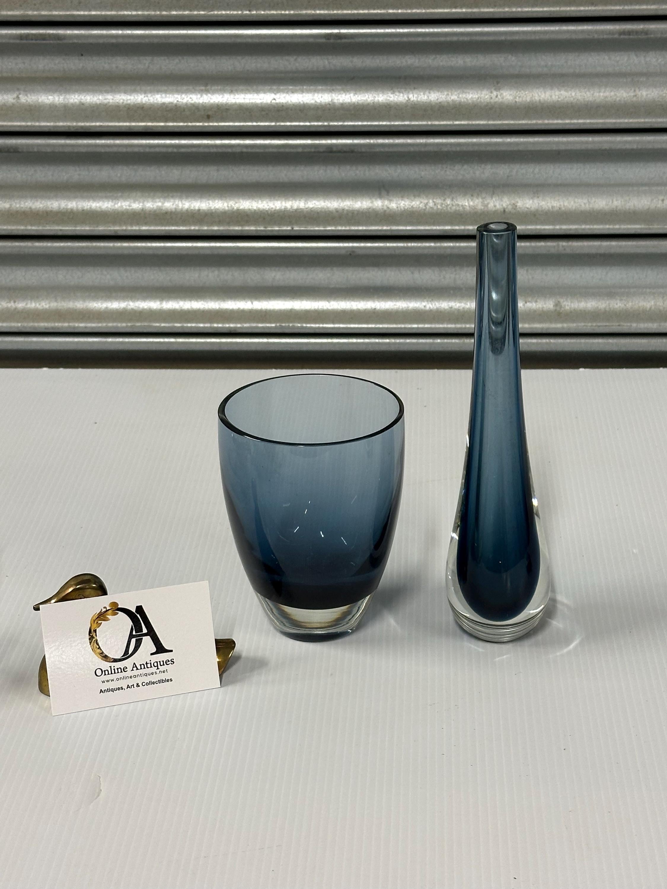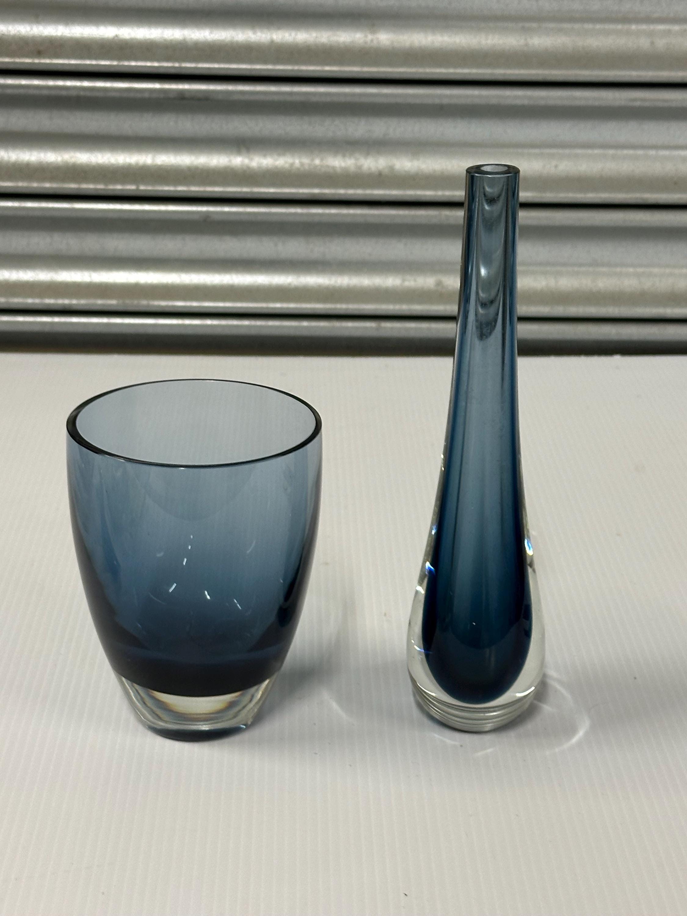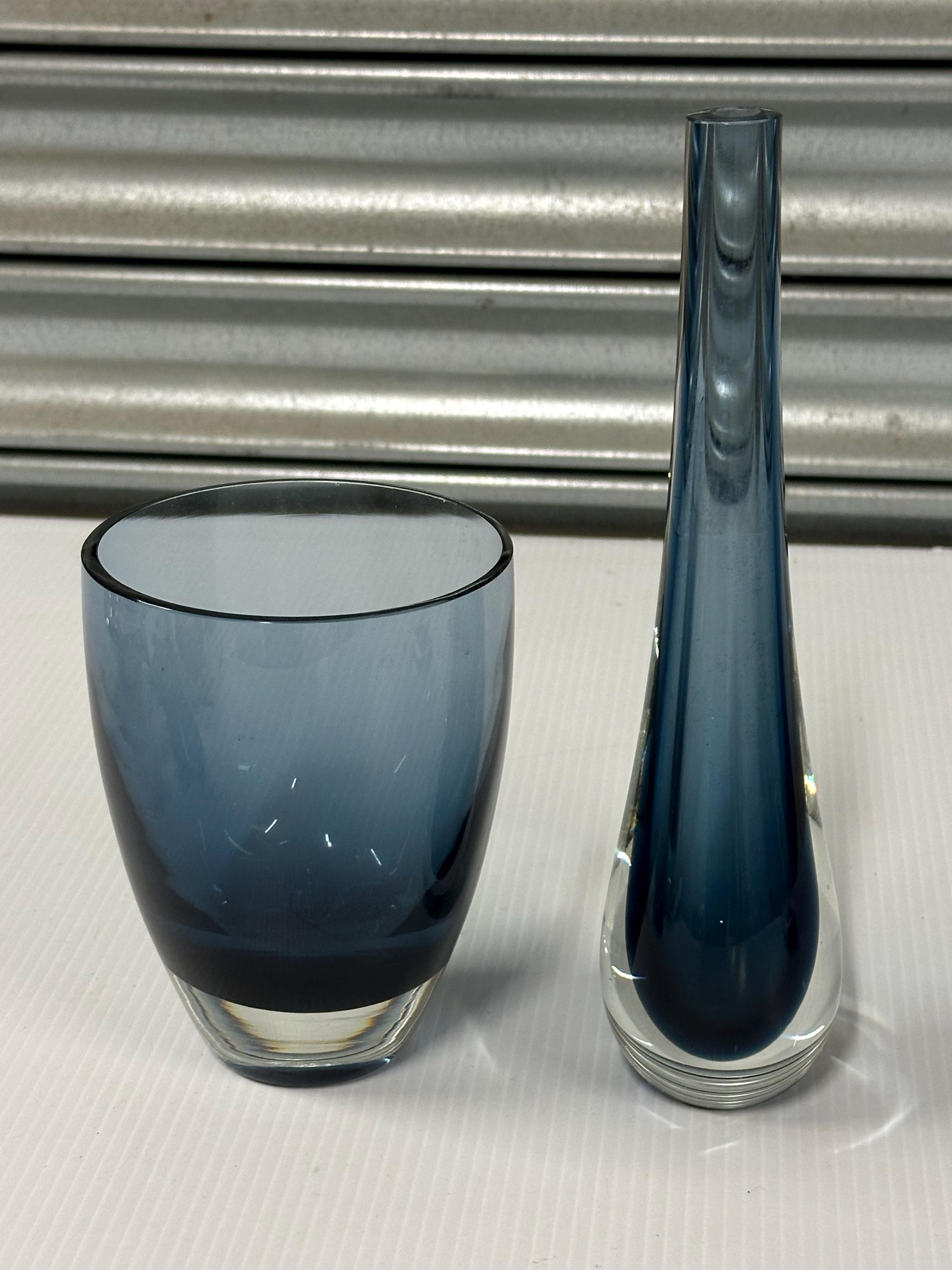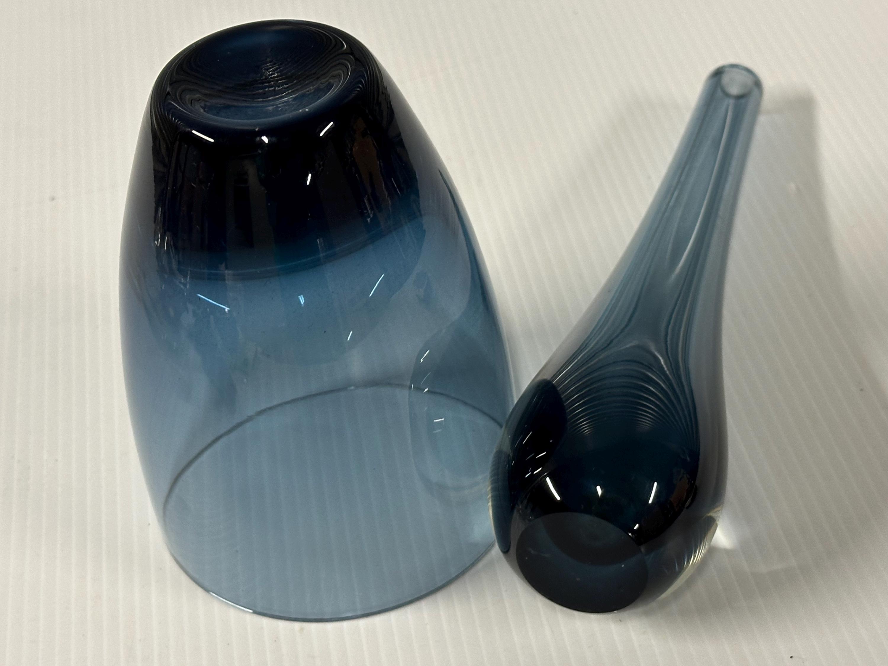 A beautifully complementary pair of mid-century art glass pieces, each hand-crafted with the clean lines and subtle colour gradients associated with Scandinavian design of the 1950s–70s.