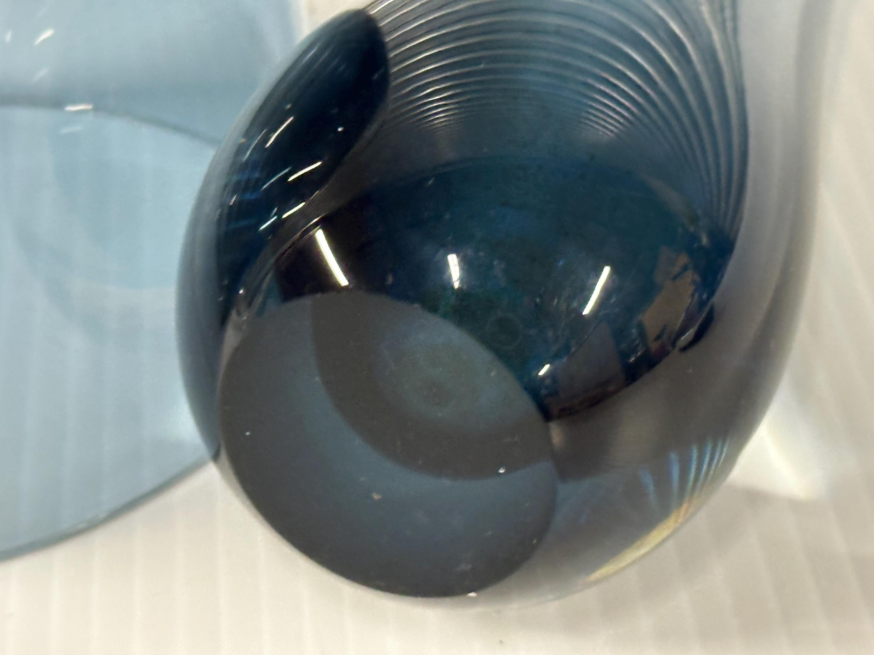 These pieces display beautifully as a pair and would complement any mid-century, Scandinavian, or contemporary interior. Quality heavy glass with great clarity and colour.