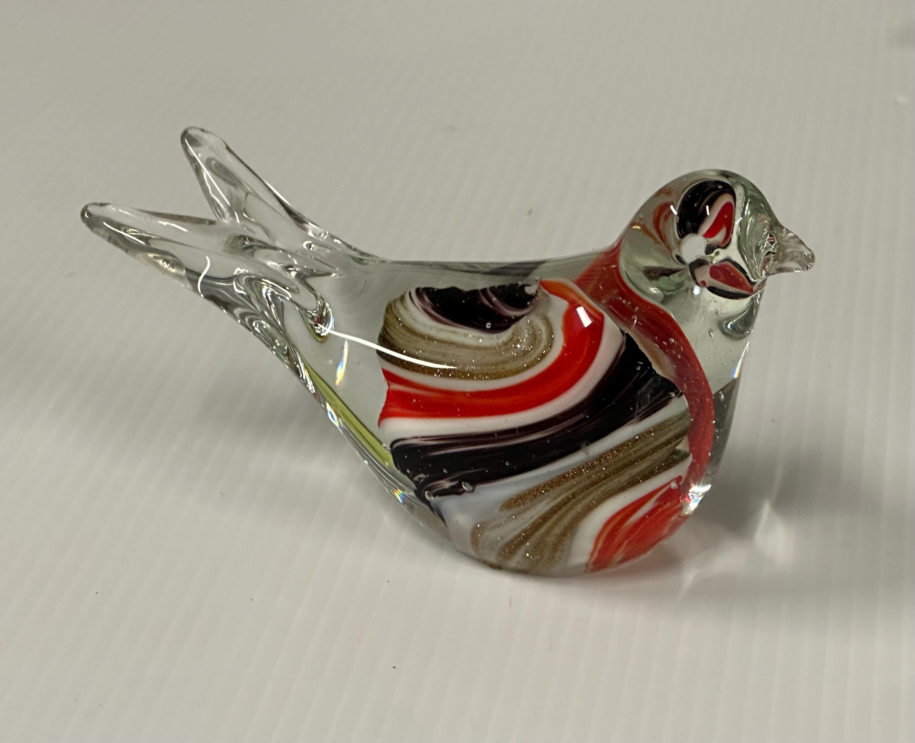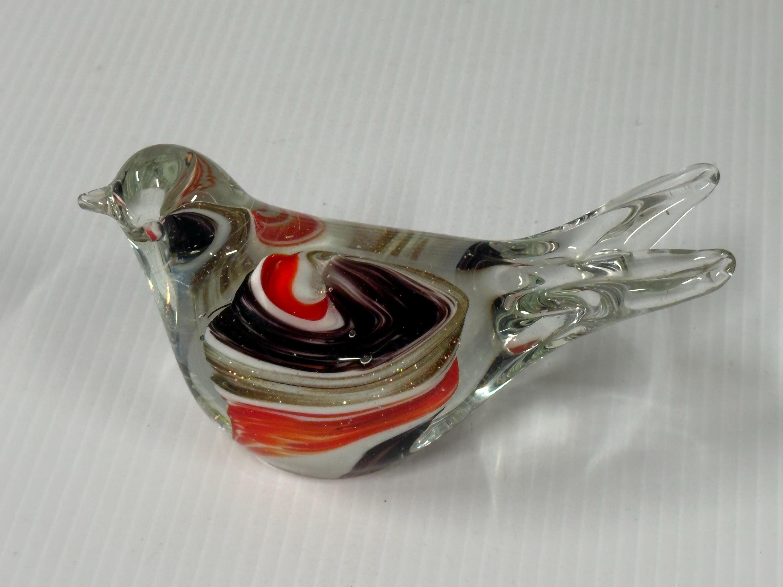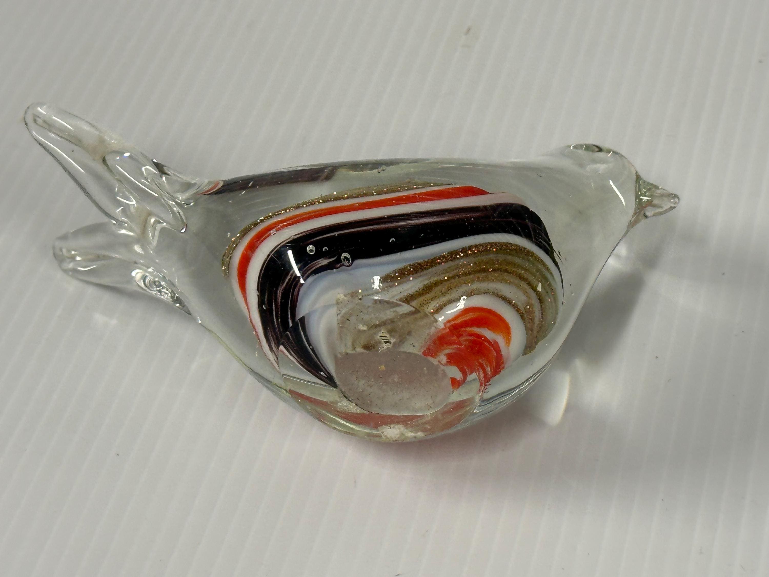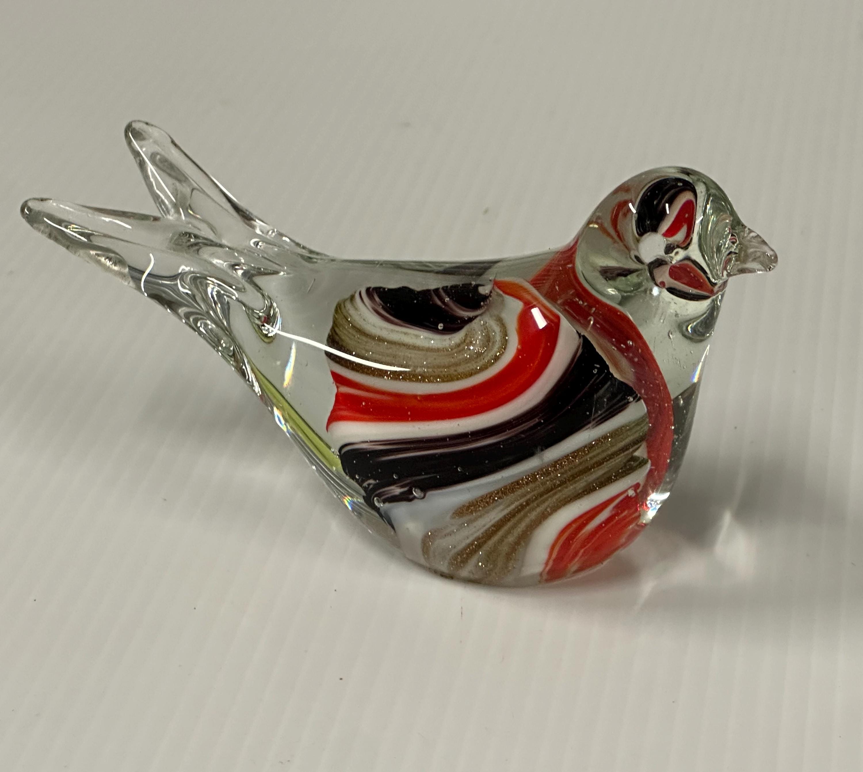 Beautiful Vintage Murano Style Art Glass Bird – Multicoloured Swirl Design 1960s