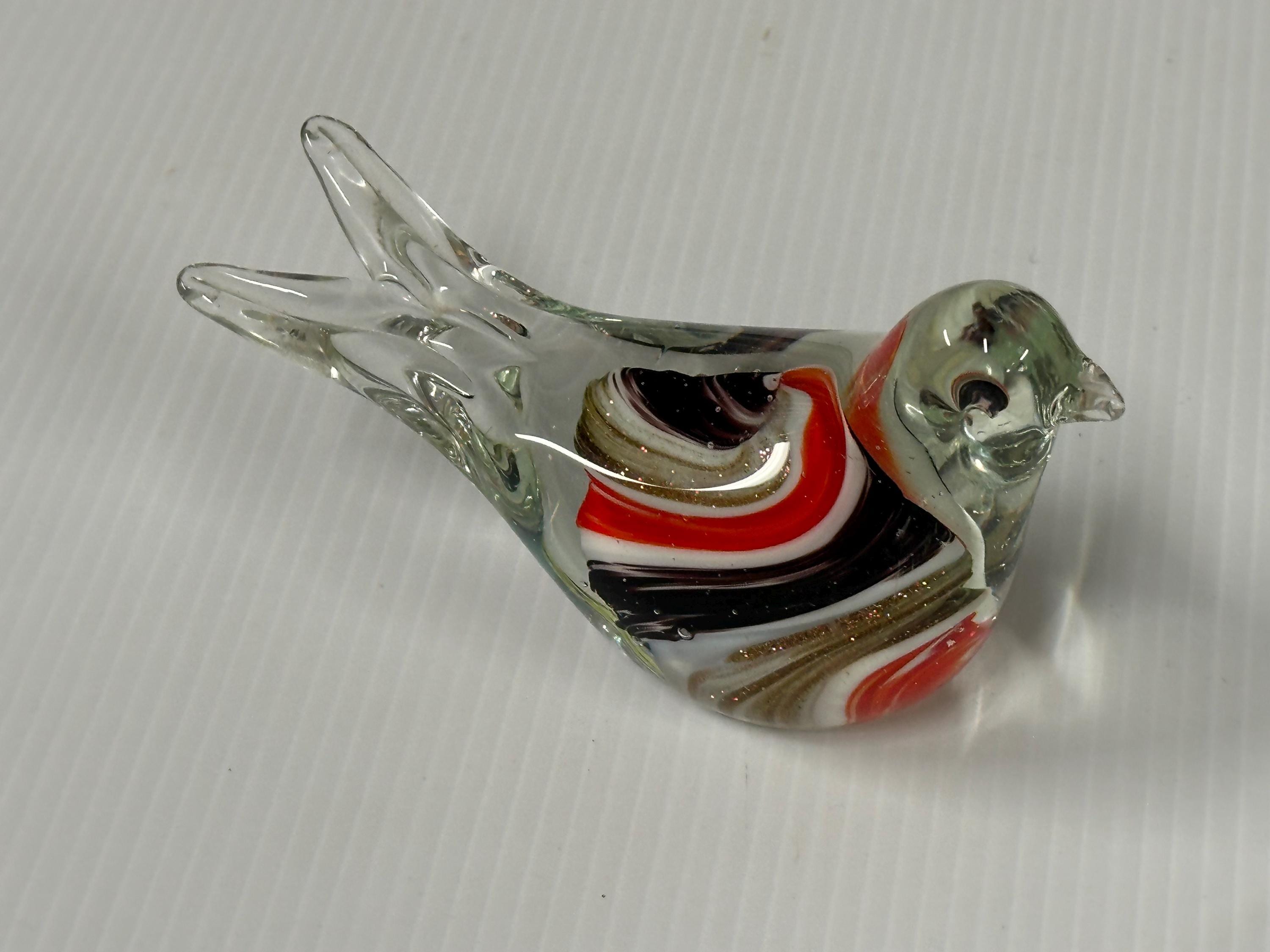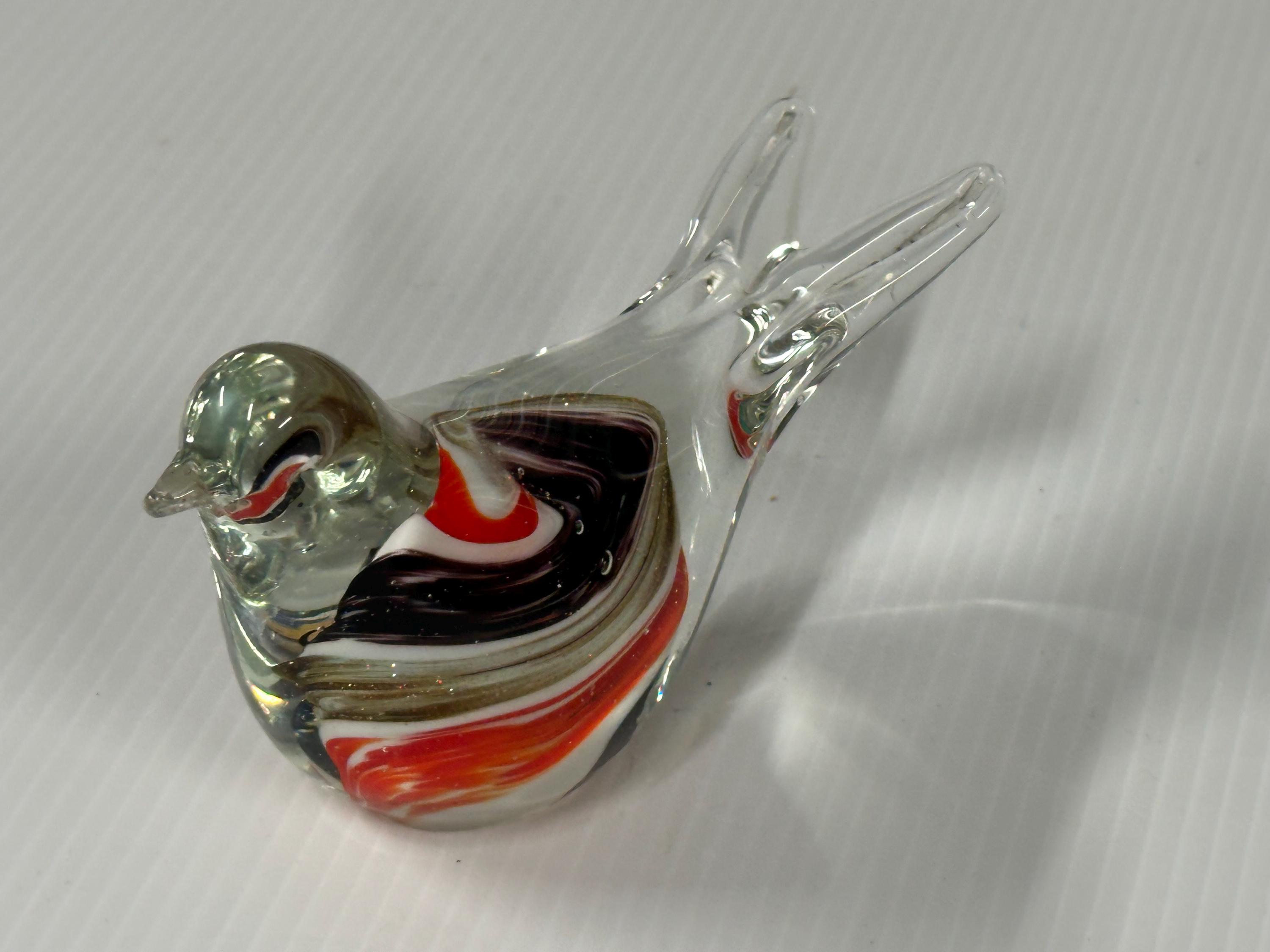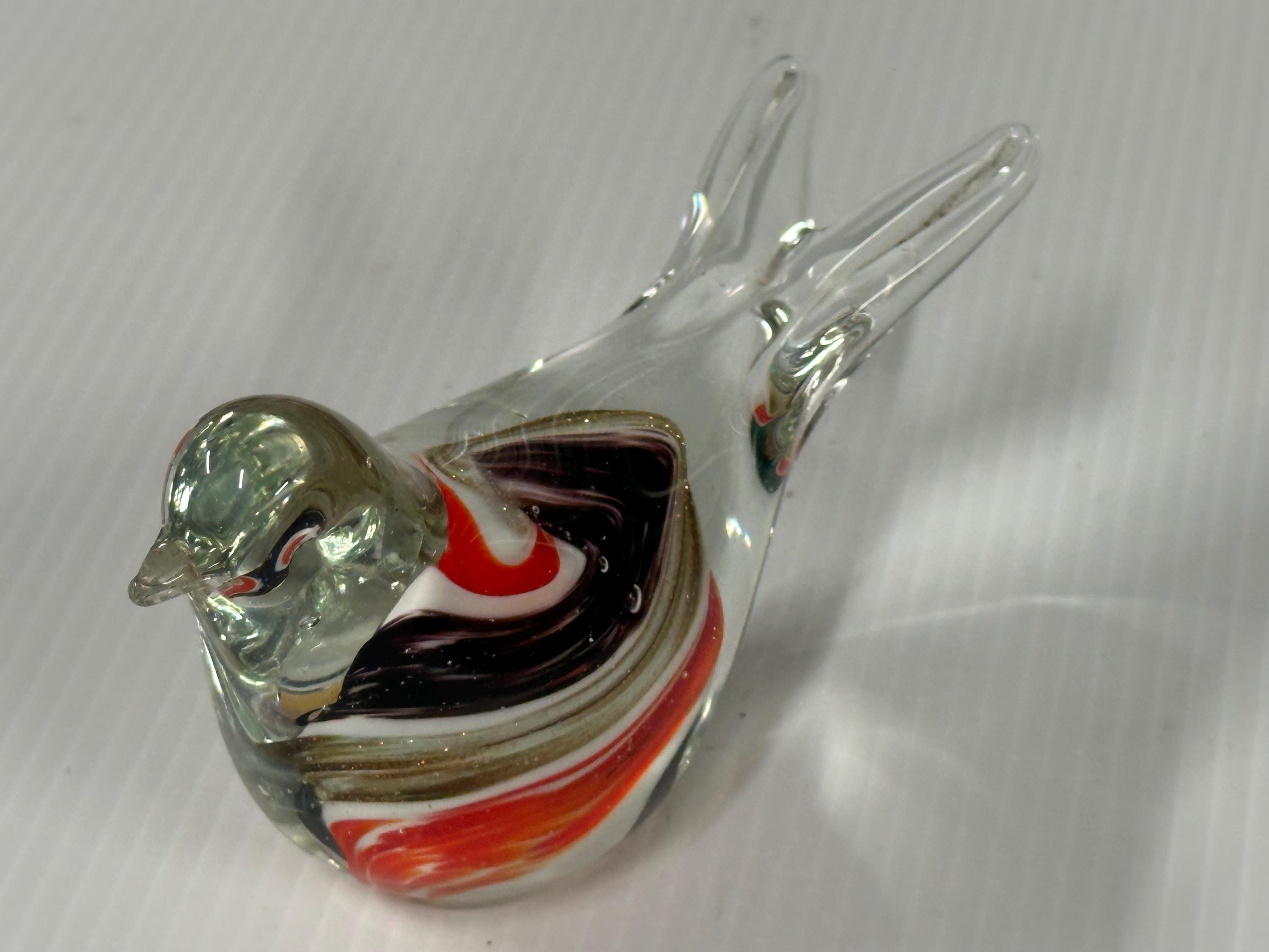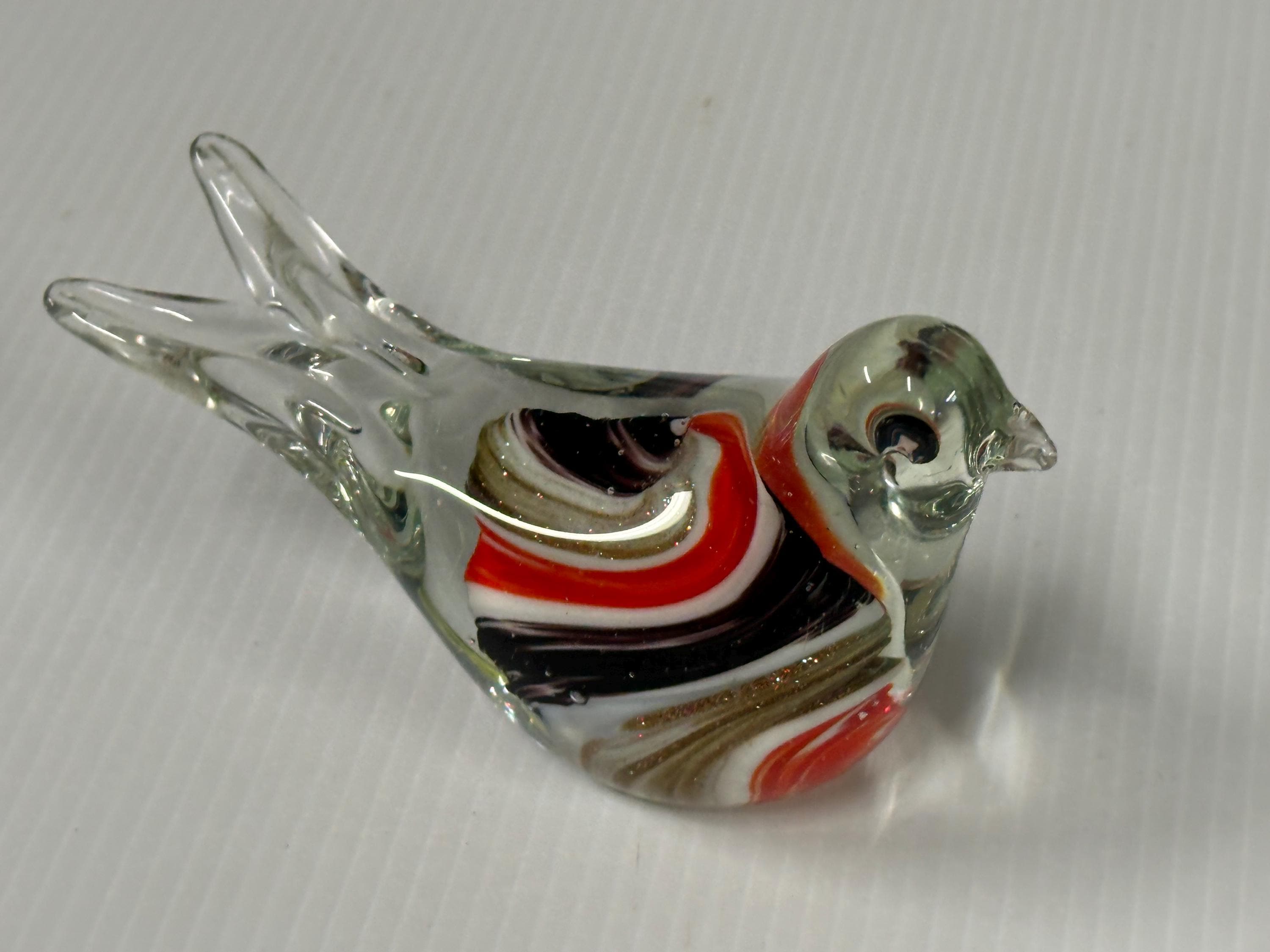 Beautiful Vintage Murano Style Art Glass Bird – Multicoloured Swirl Design 1960s