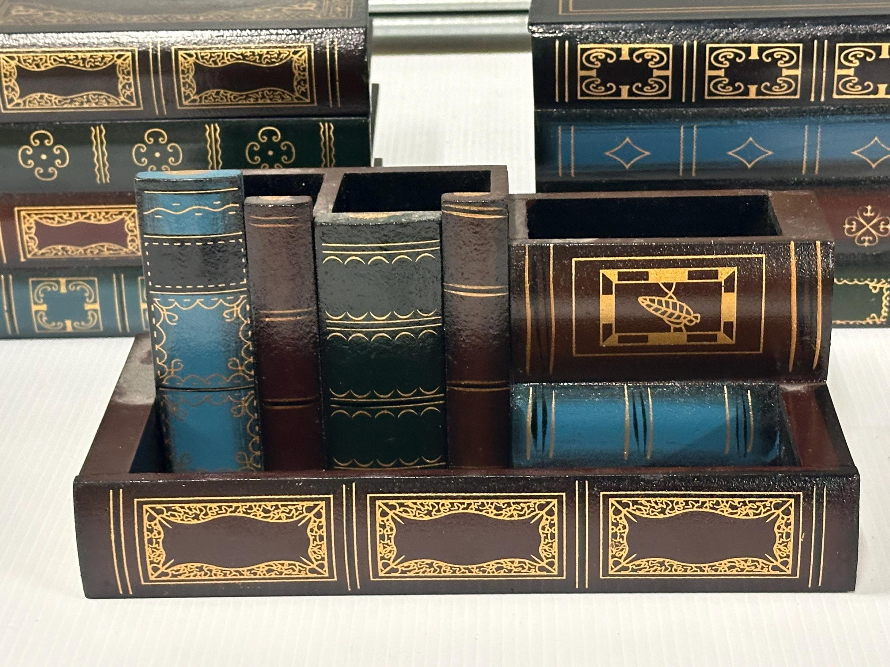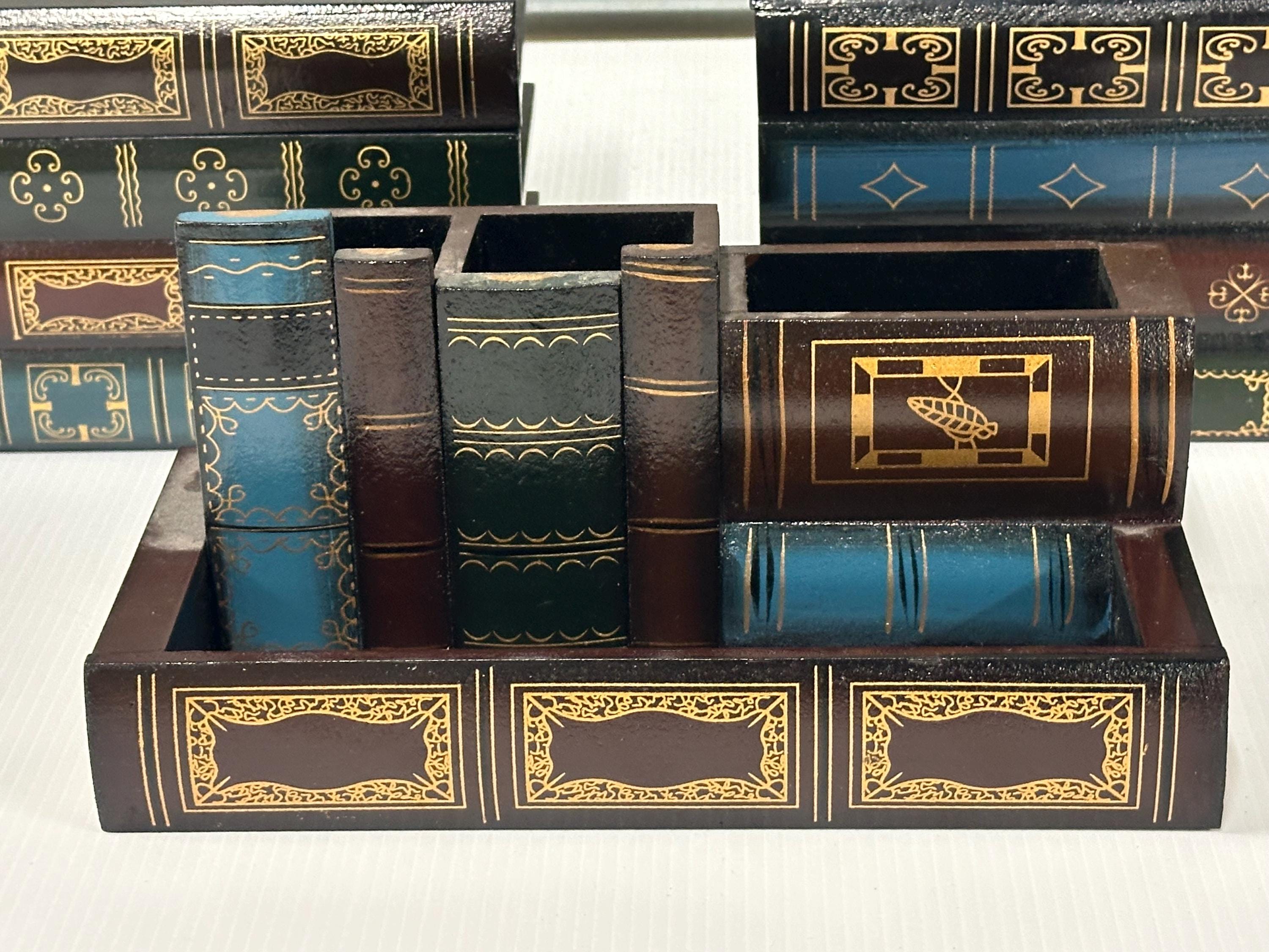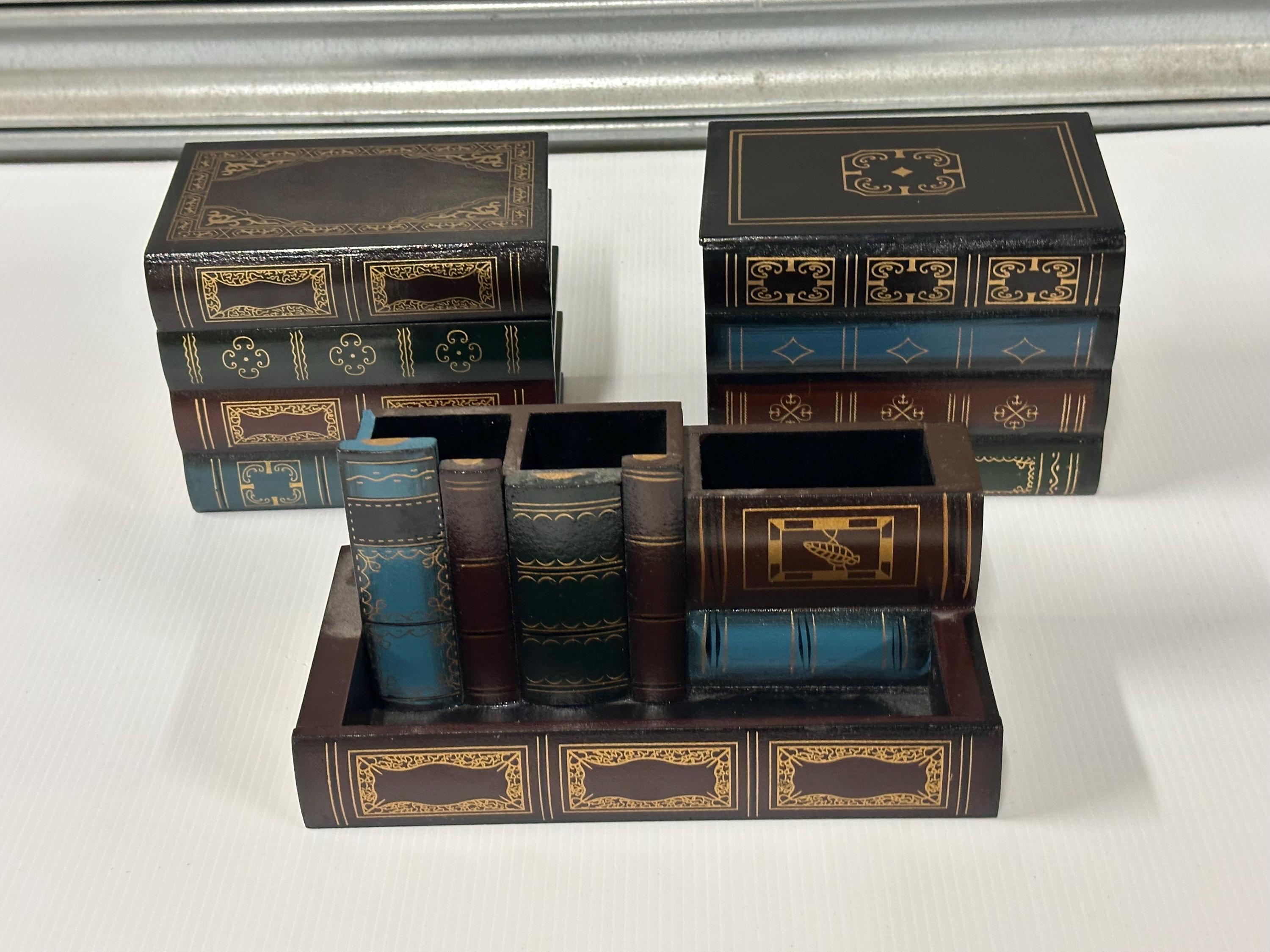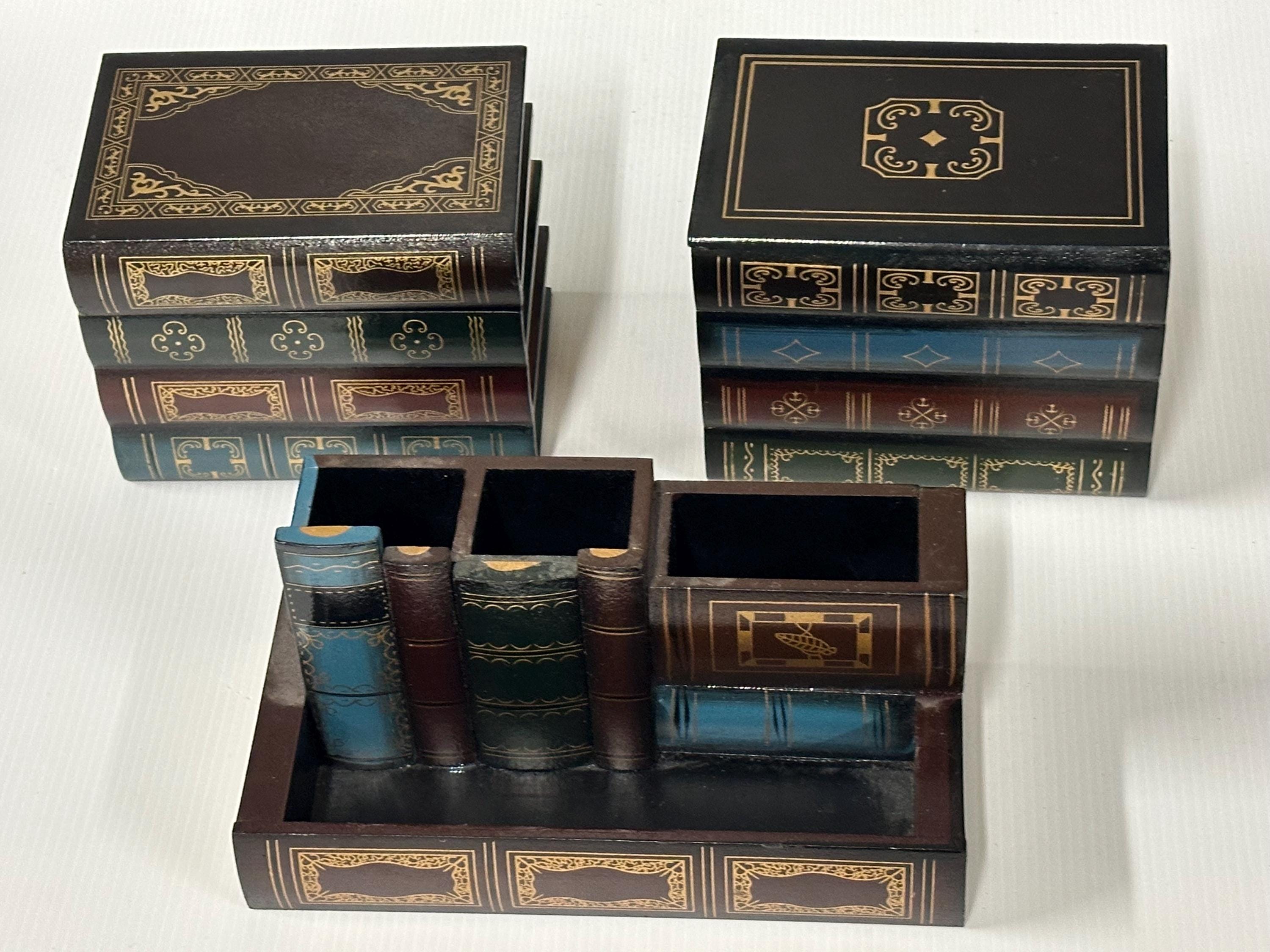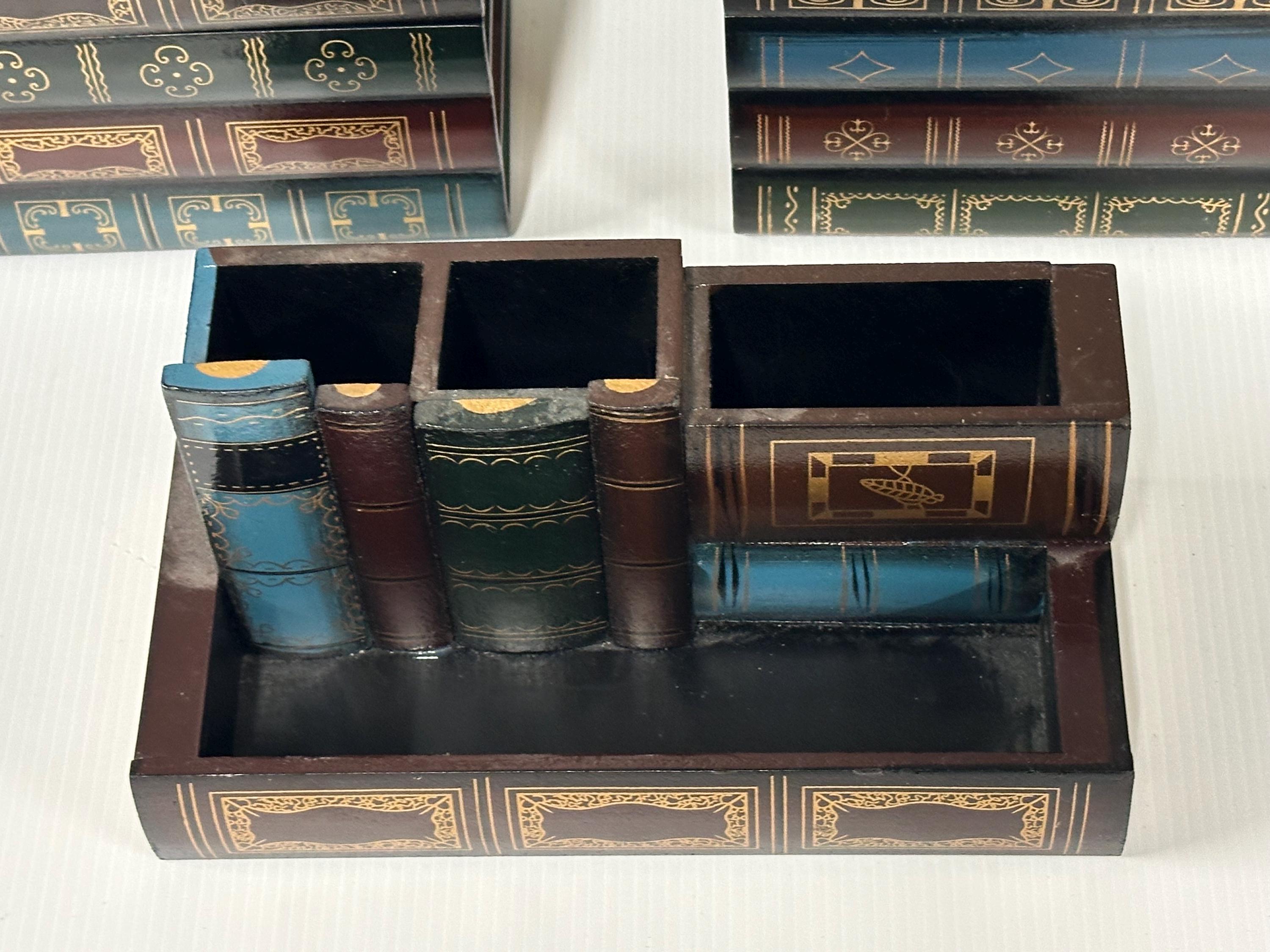 Wooden Pen Holder Book Shaped Desk Organizer Storage Boxes - Desk Set