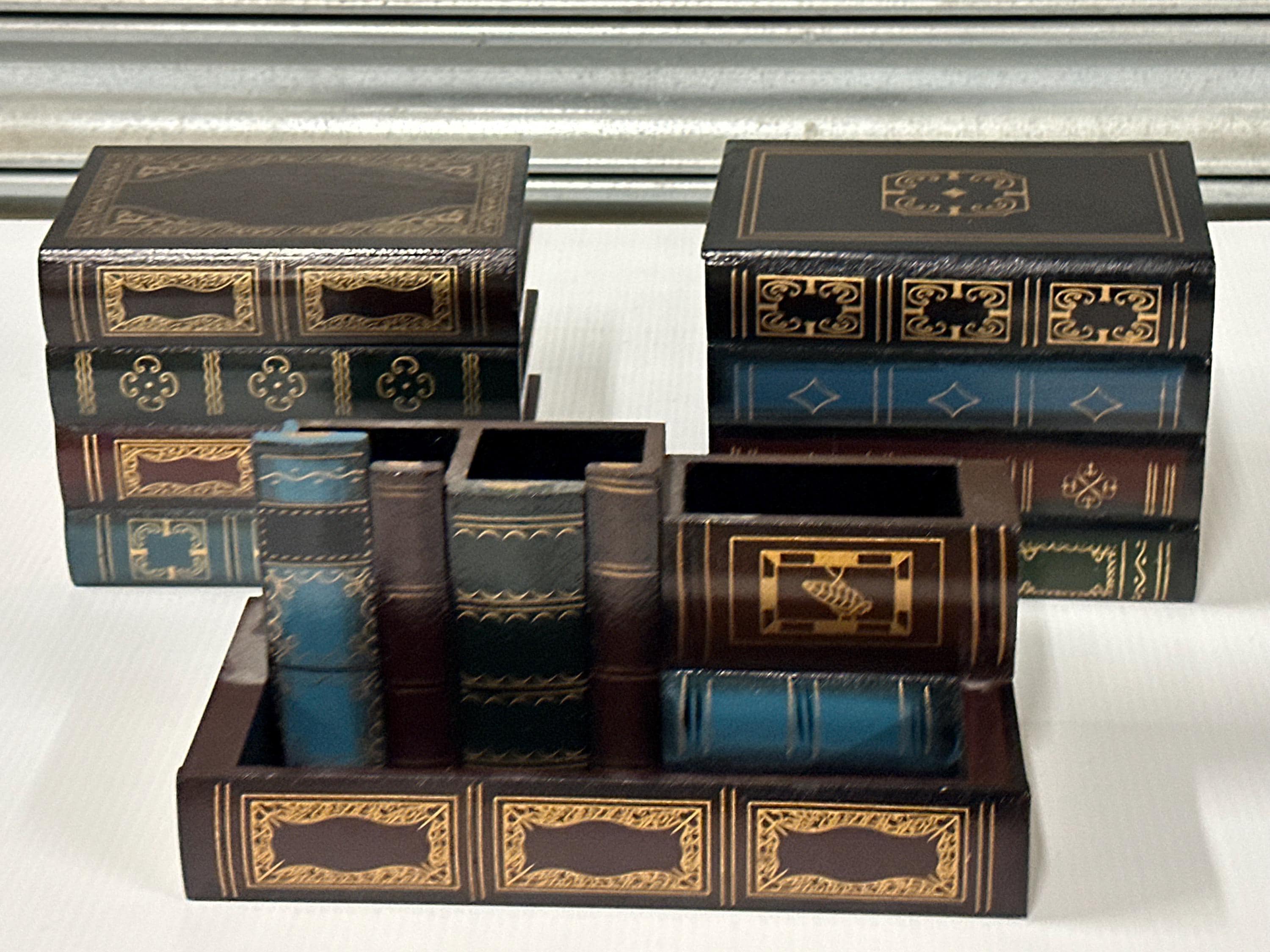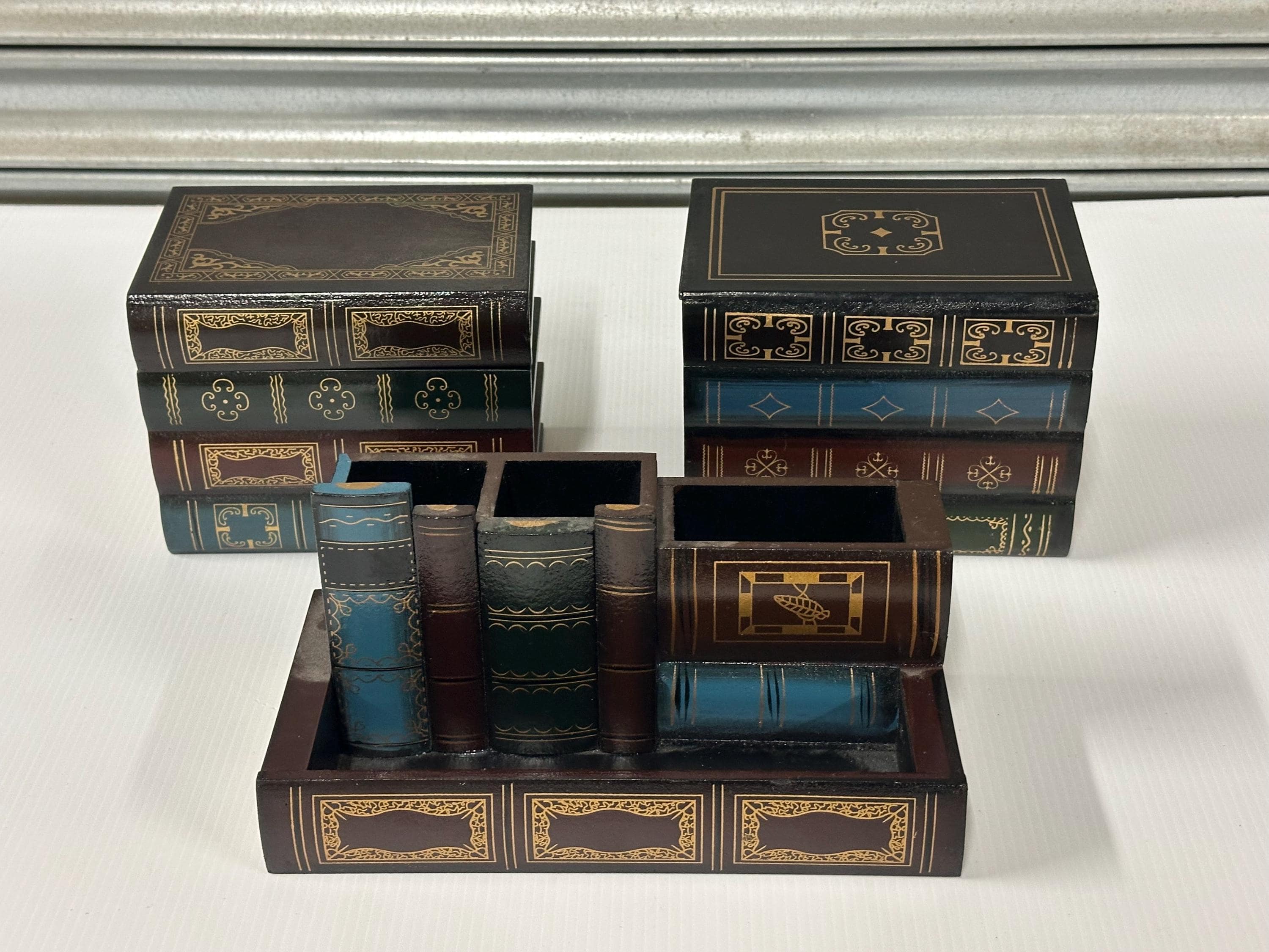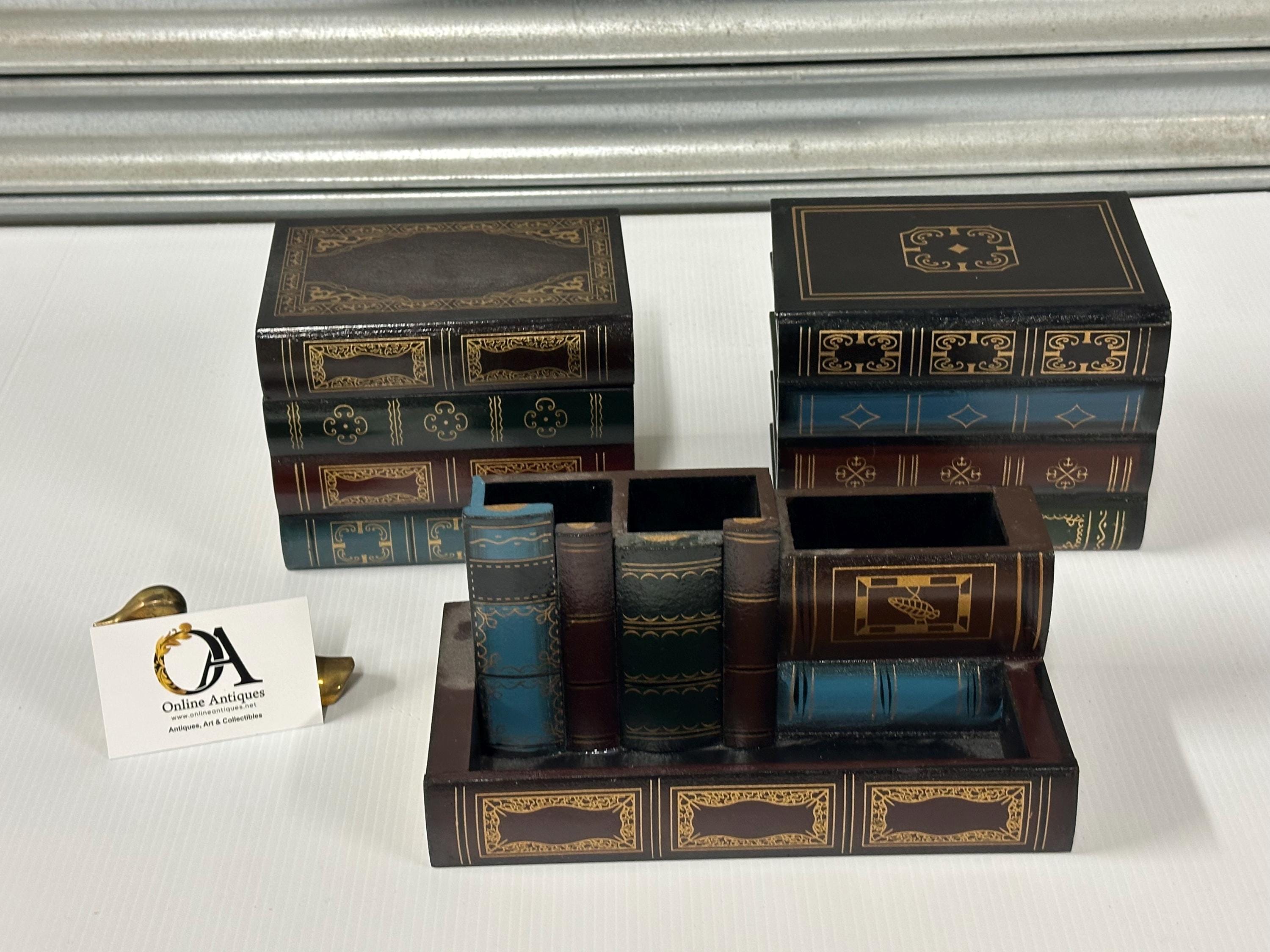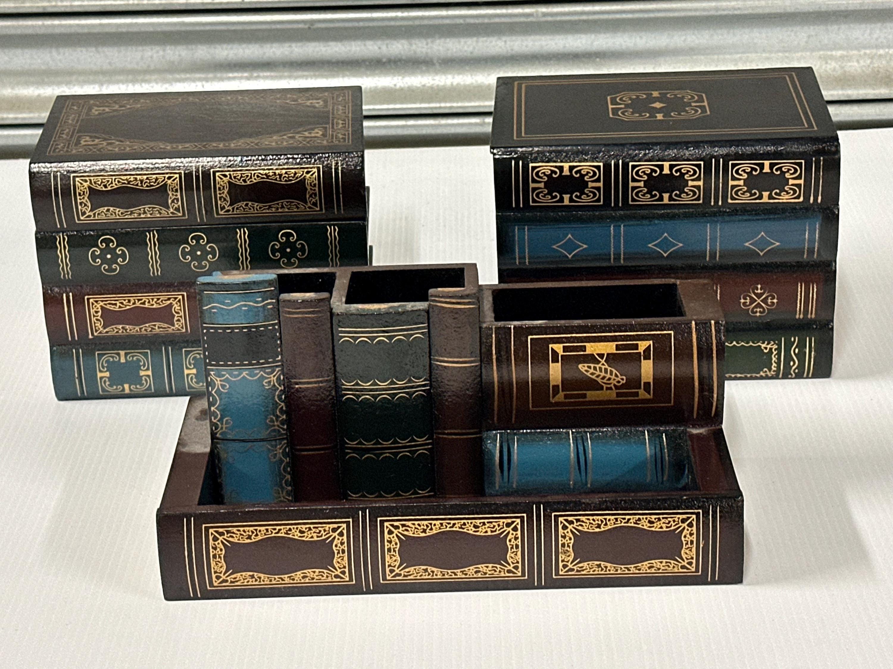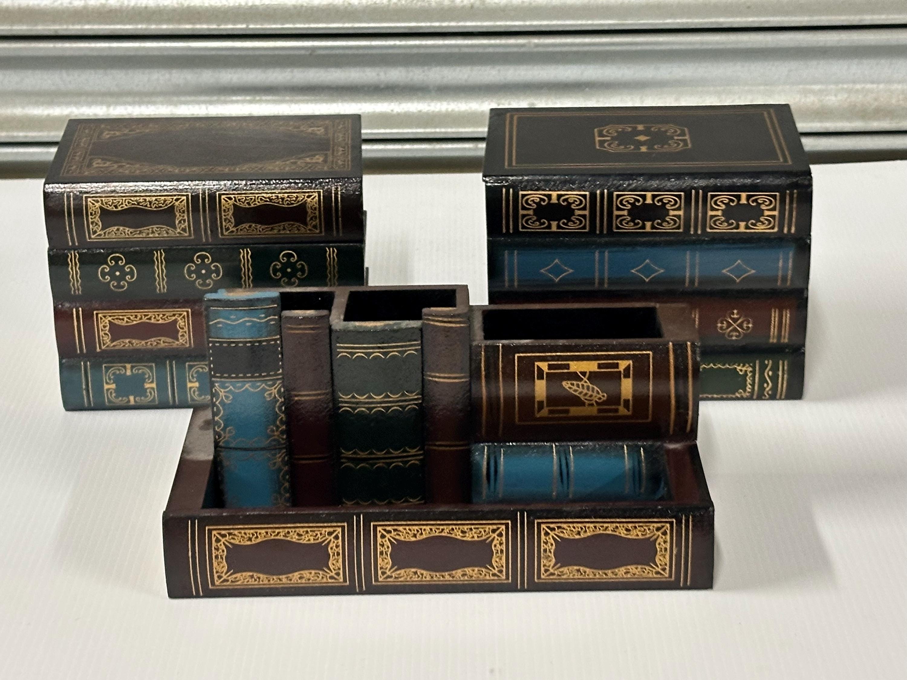 Wooden Pen Holder Book Shaped Desk Organizer Storage Boxes - Desk Set