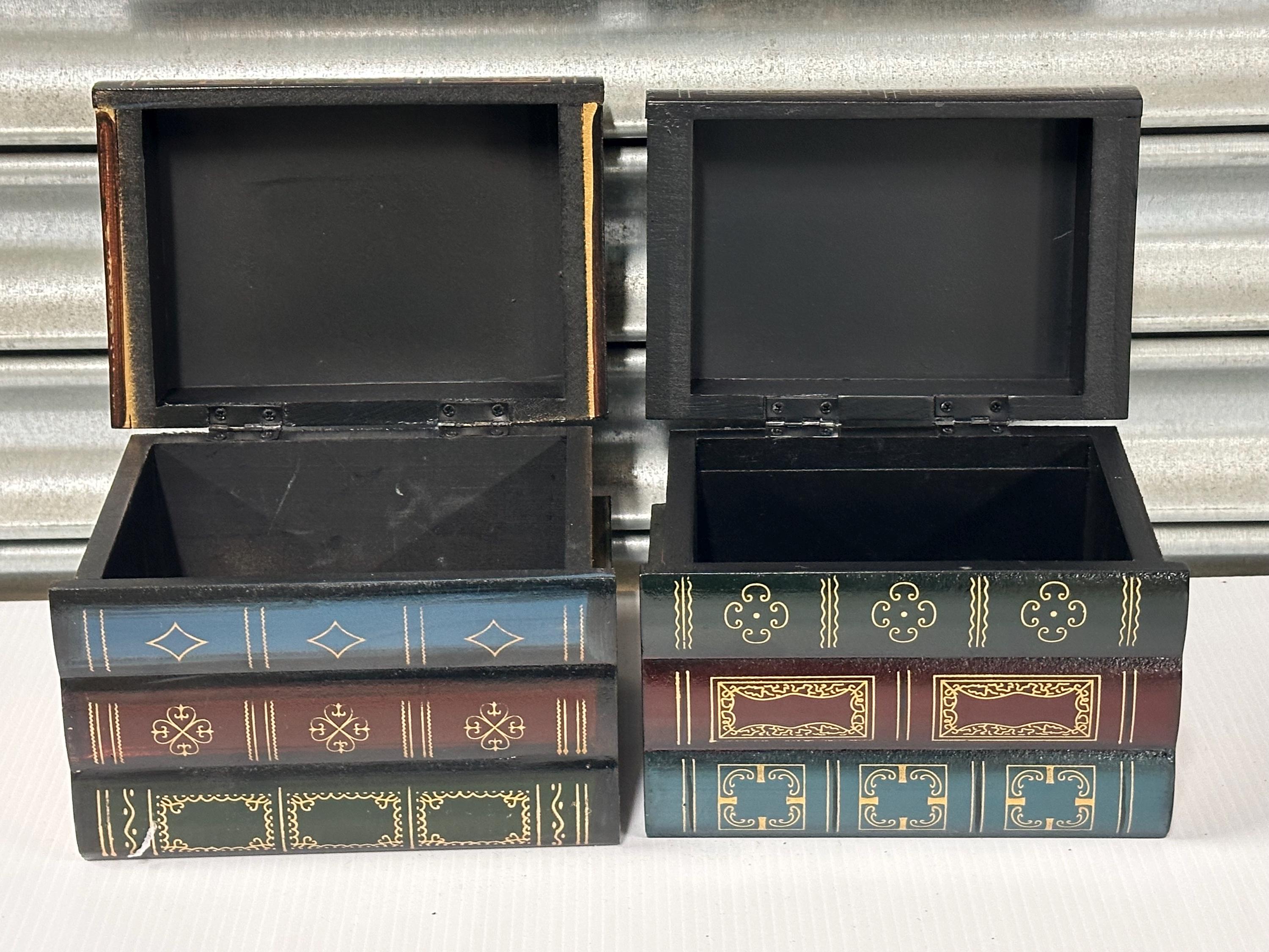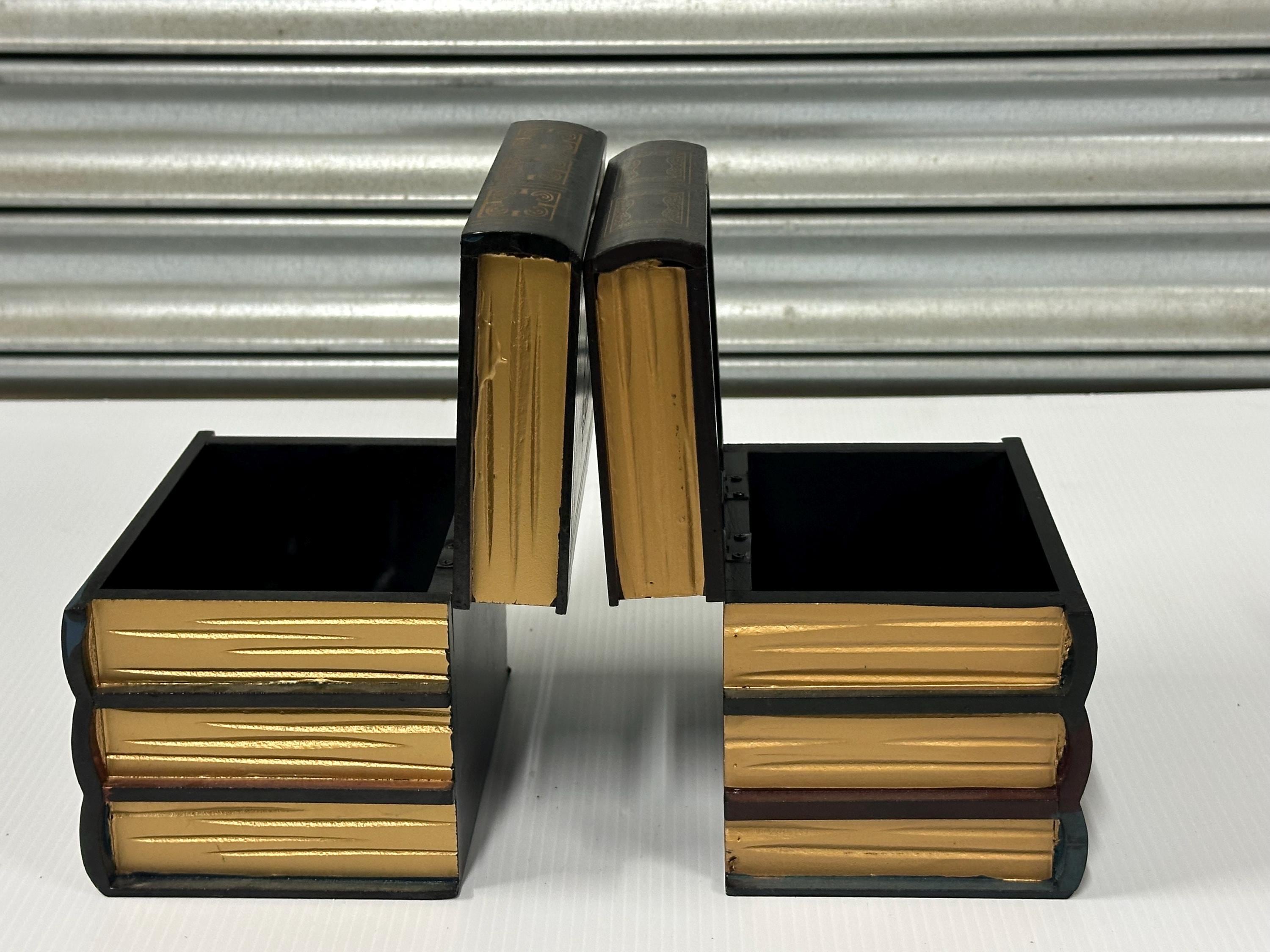 There’s a pair of bookend style boxes with lids which measures 16.5 x 13cm h
