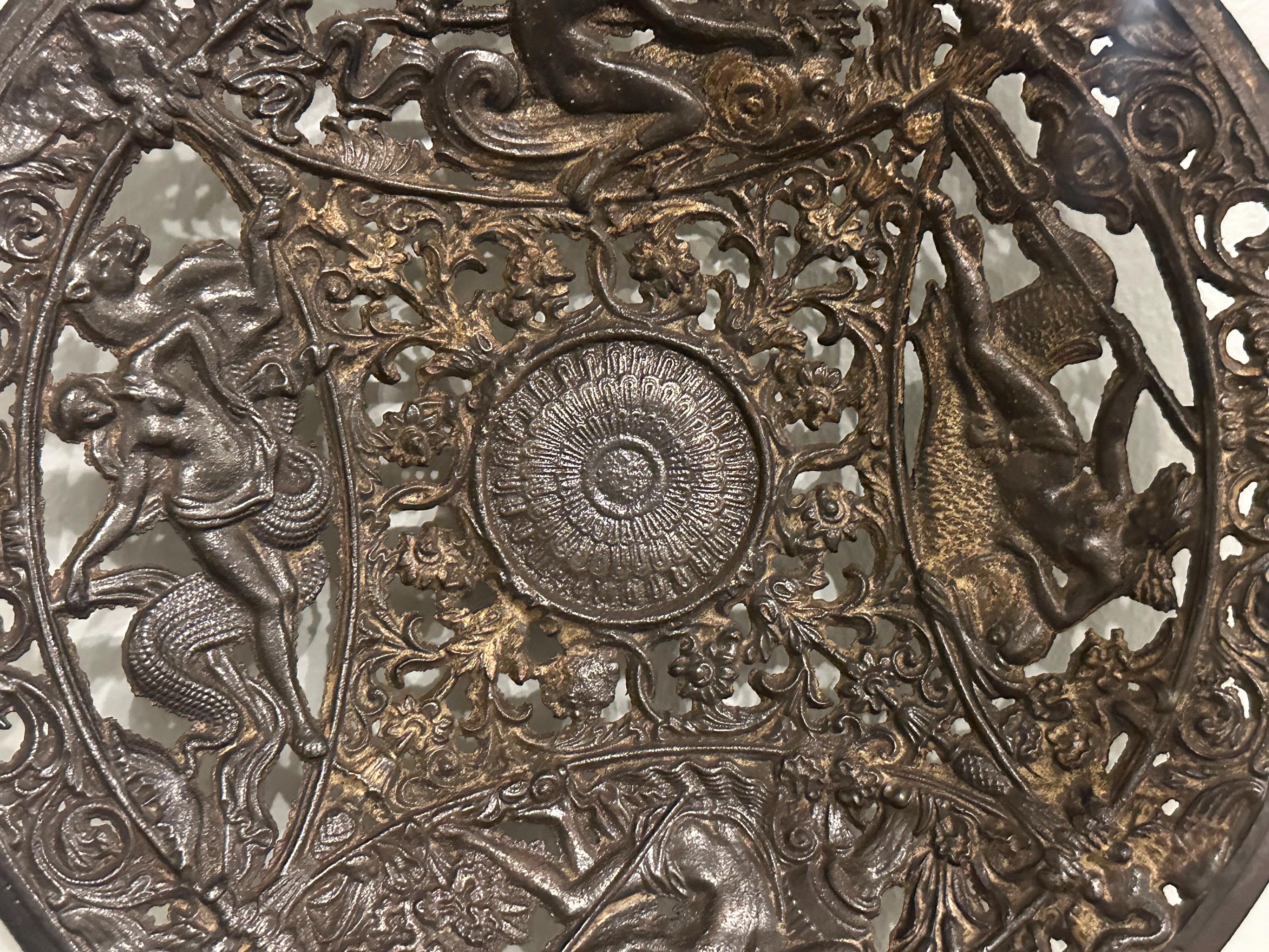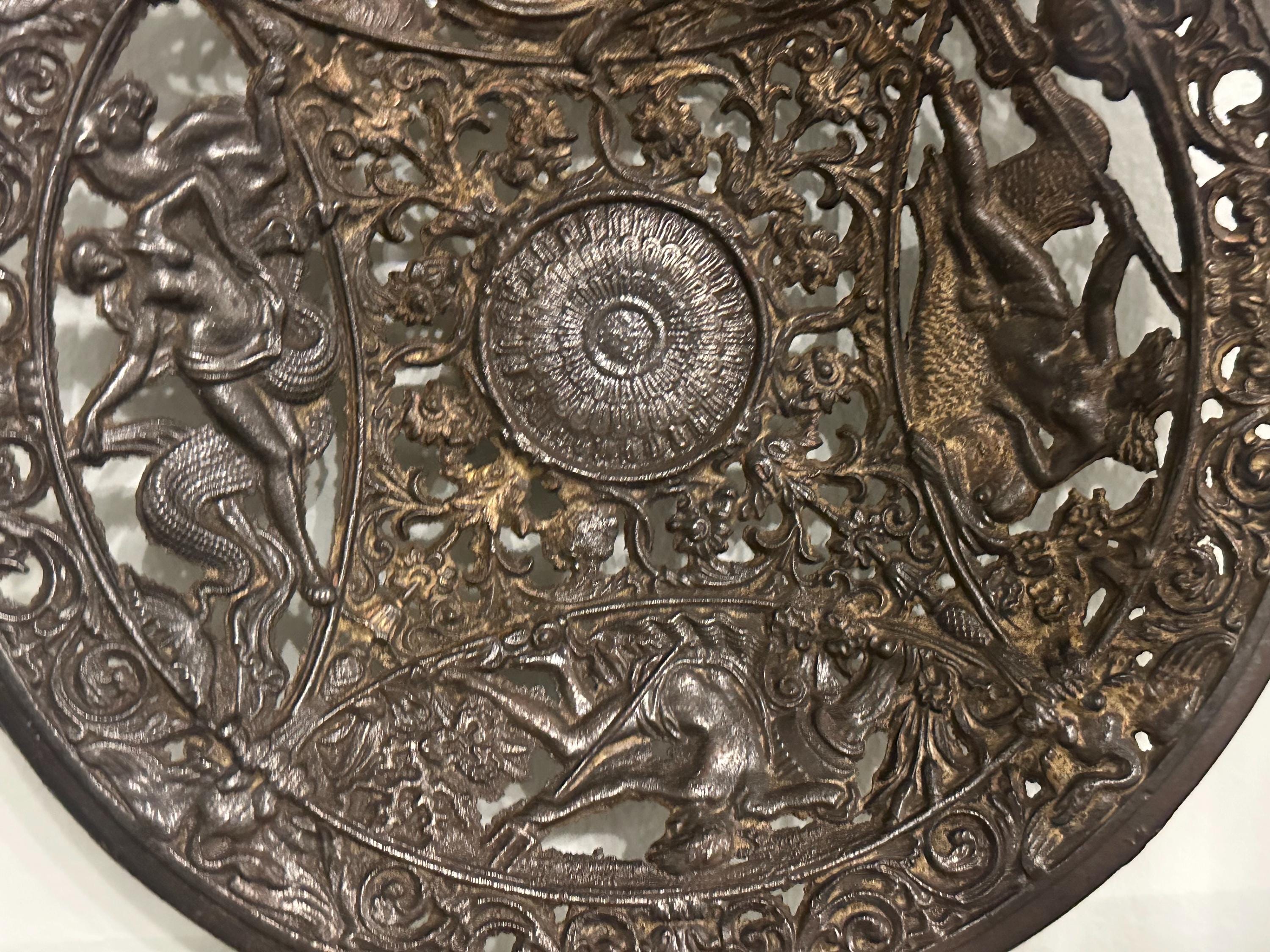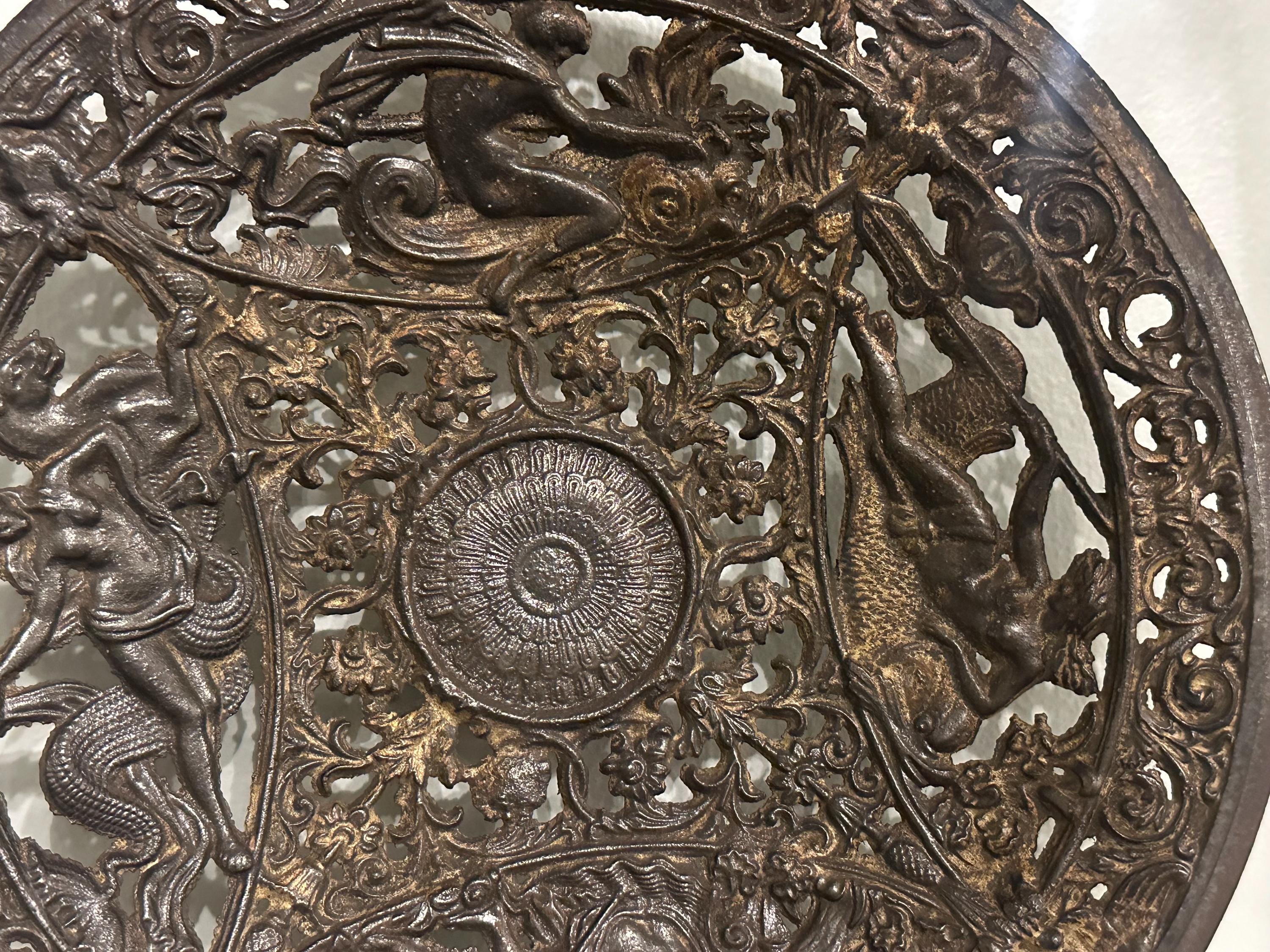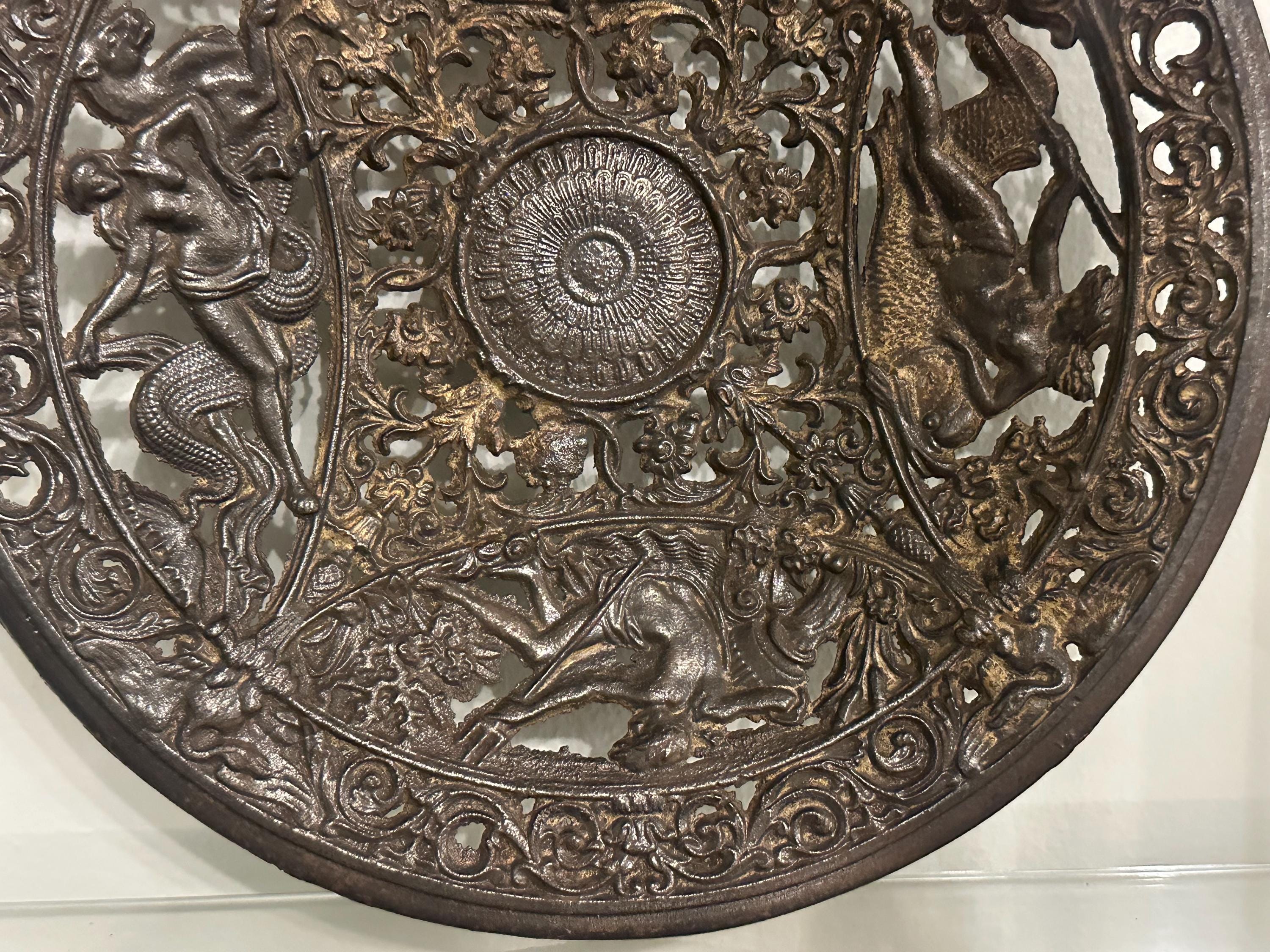 Antique Coalbrookdale Cast Bronze Decorative Plate – Mythological Figures & Scrollwork