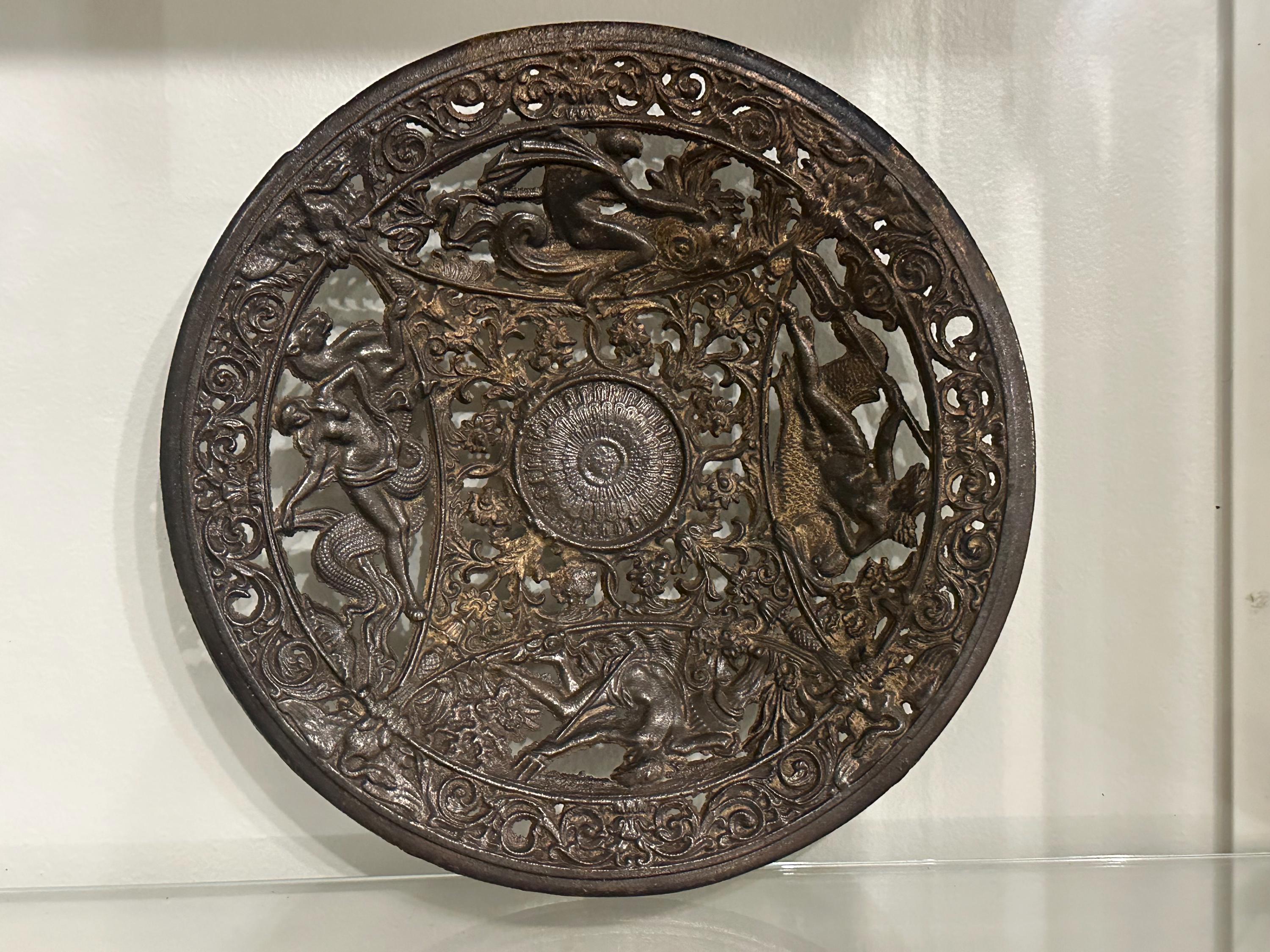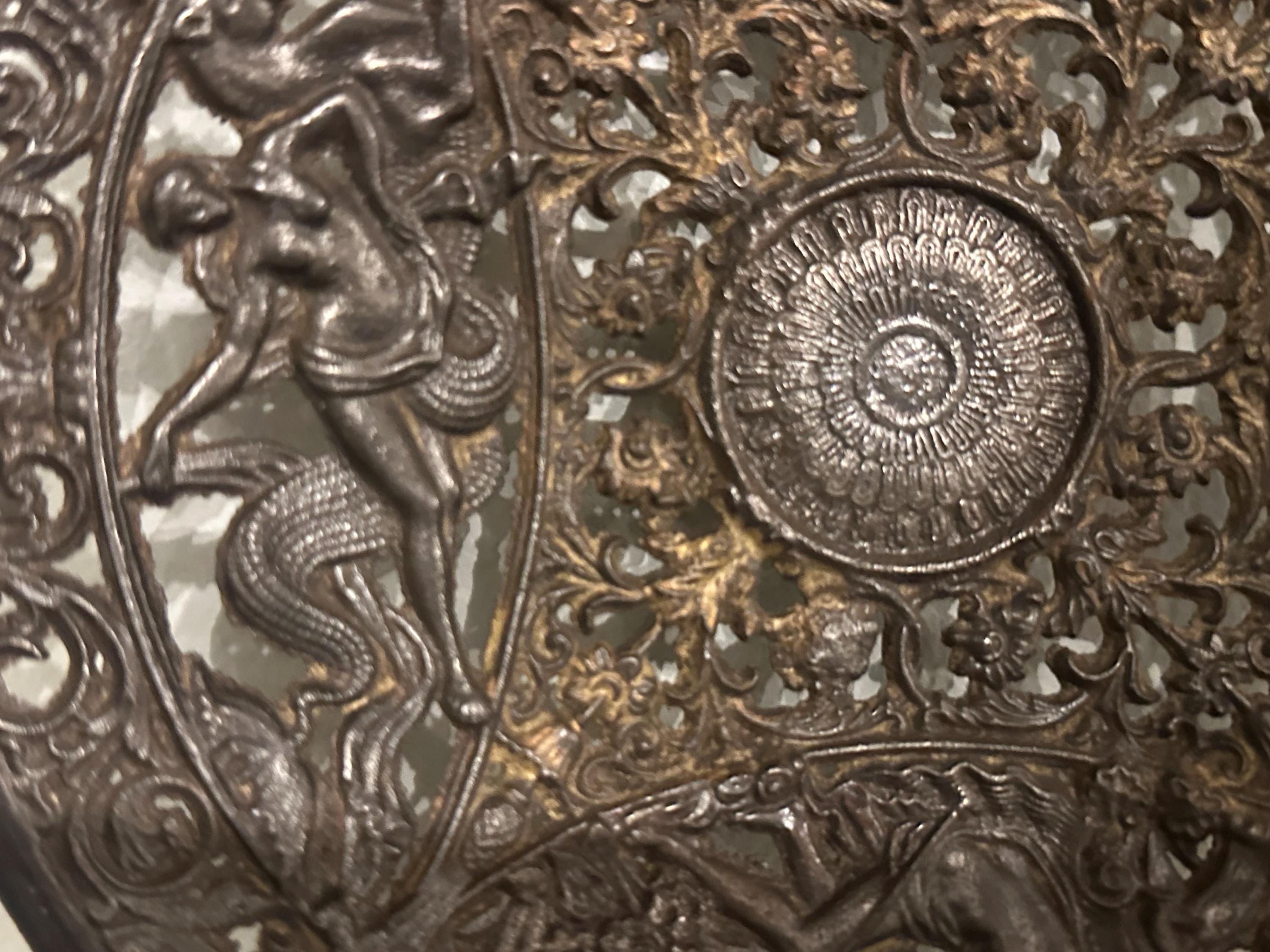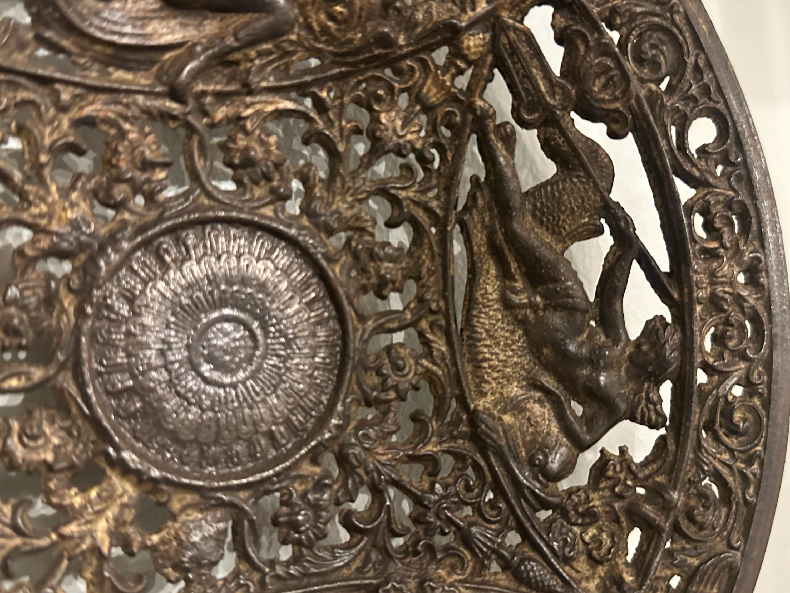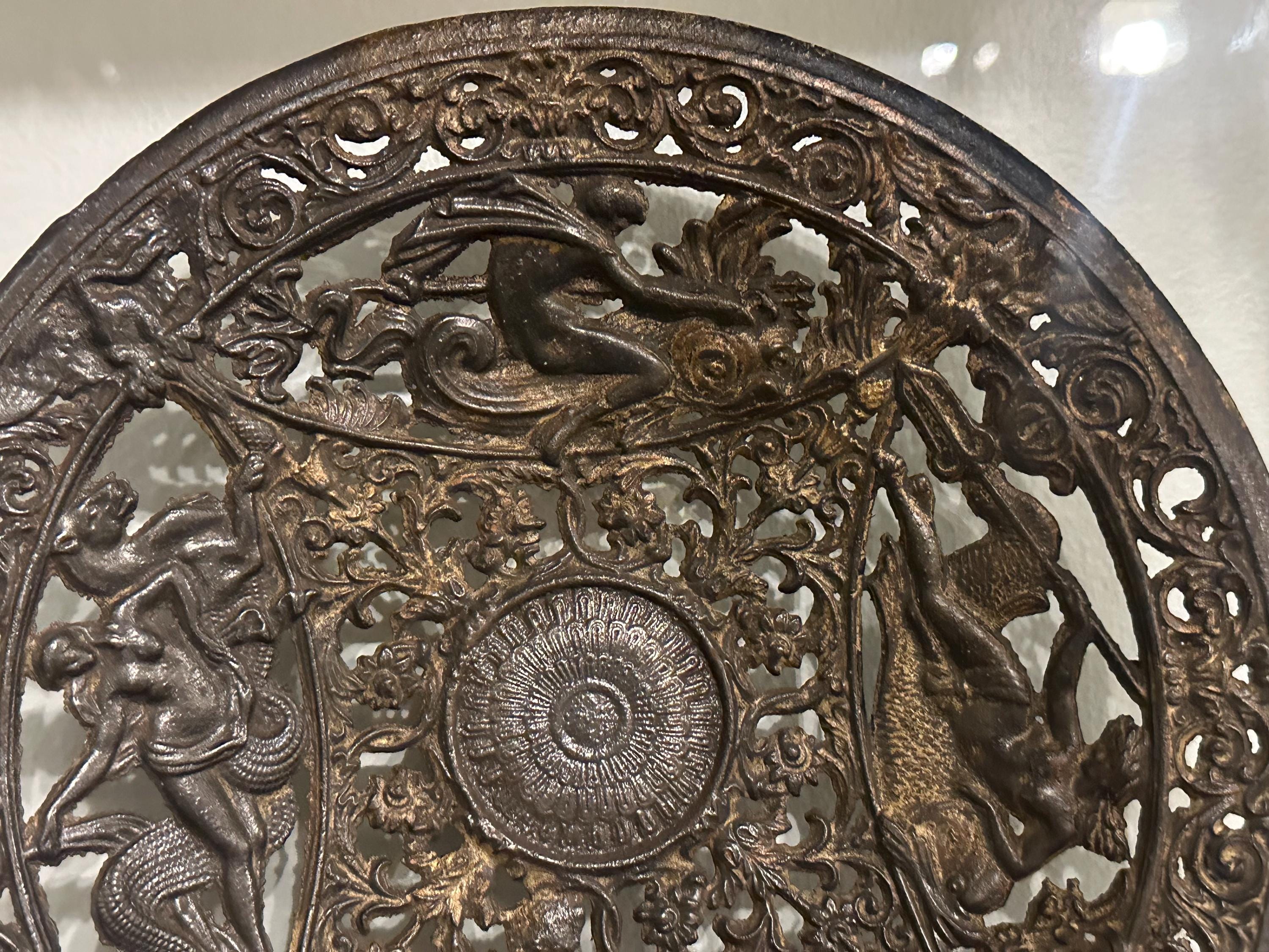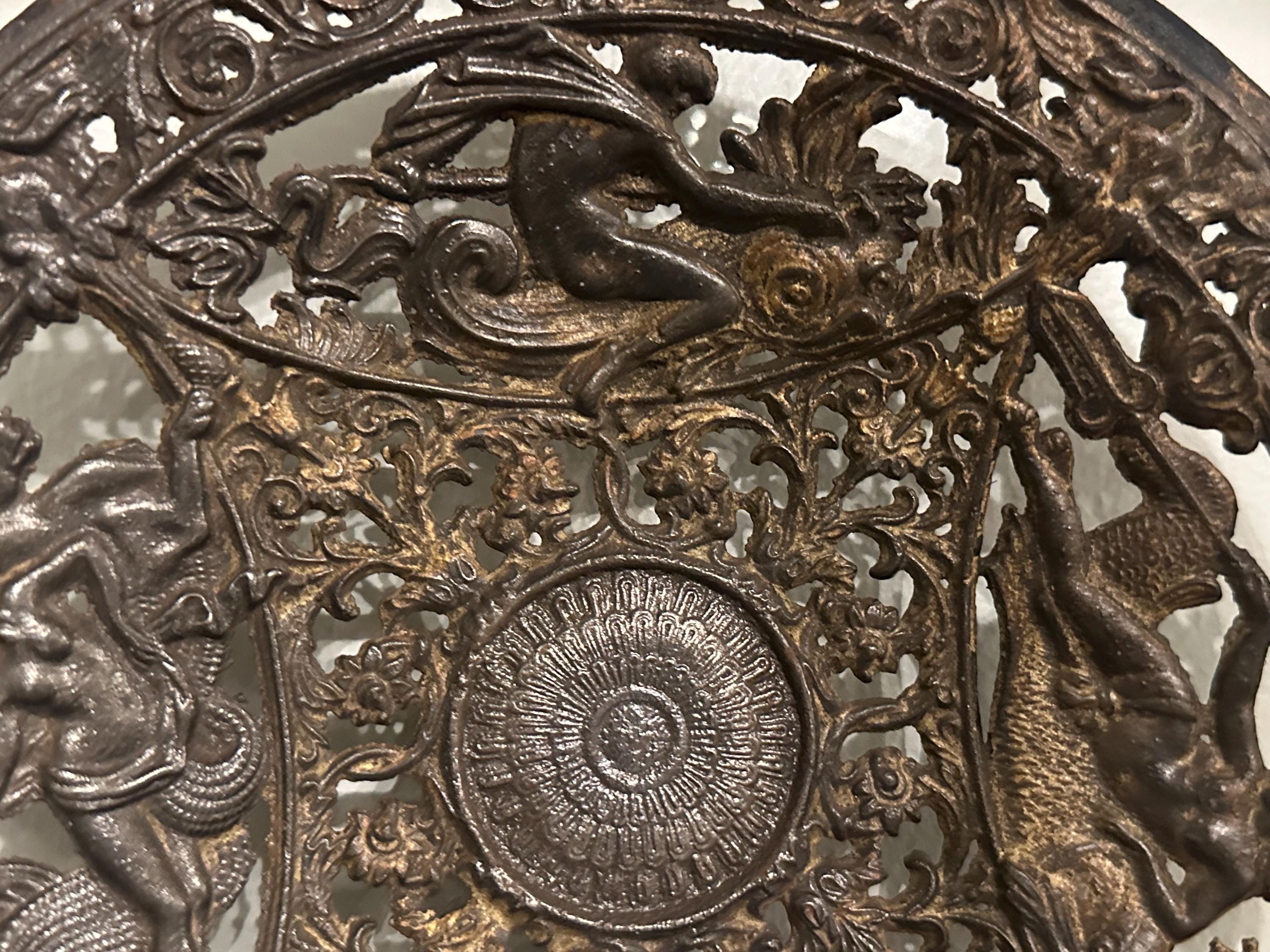 Antique Coalbrookdale Cast Bronze Decorative Plate – Mythological Figures & Scrollwork