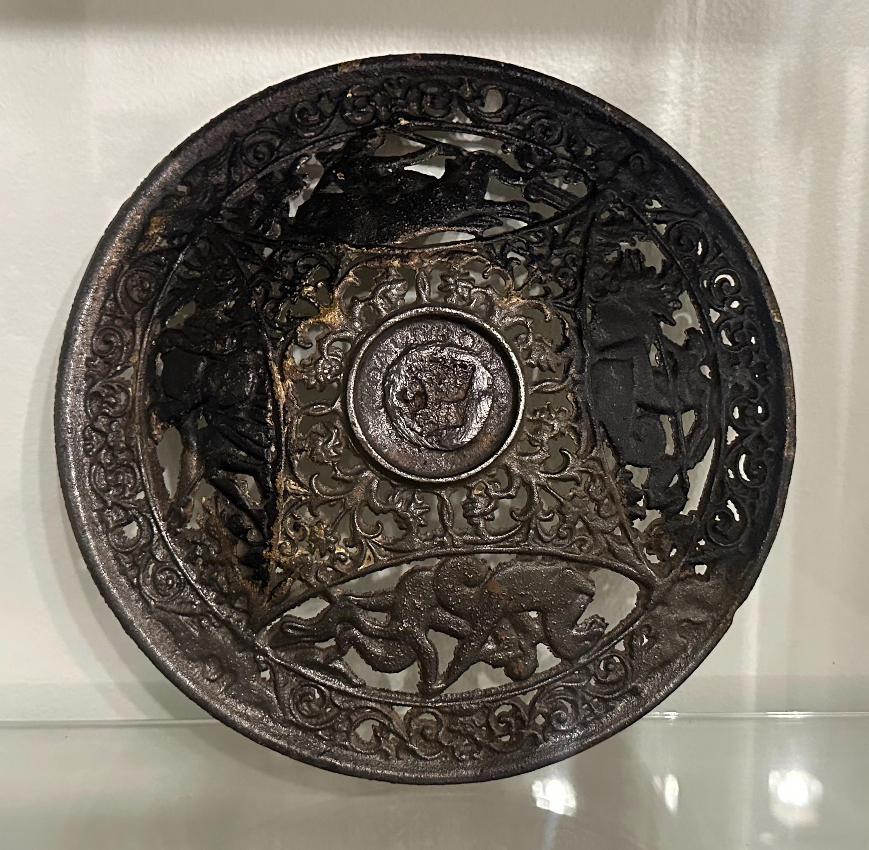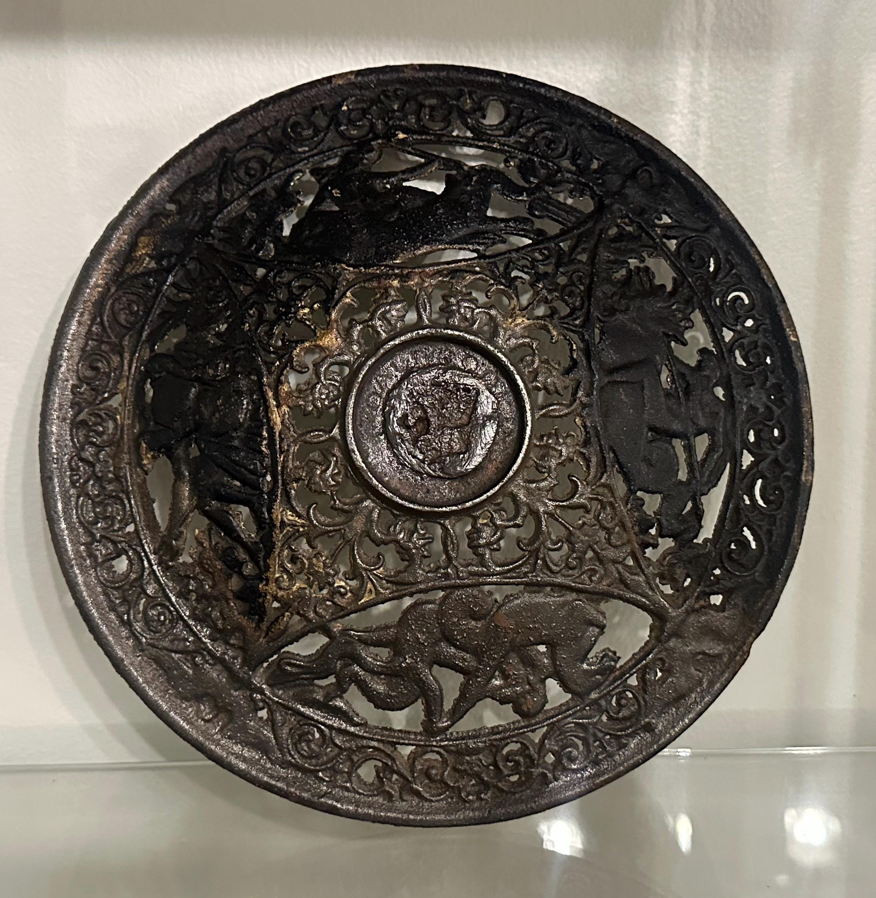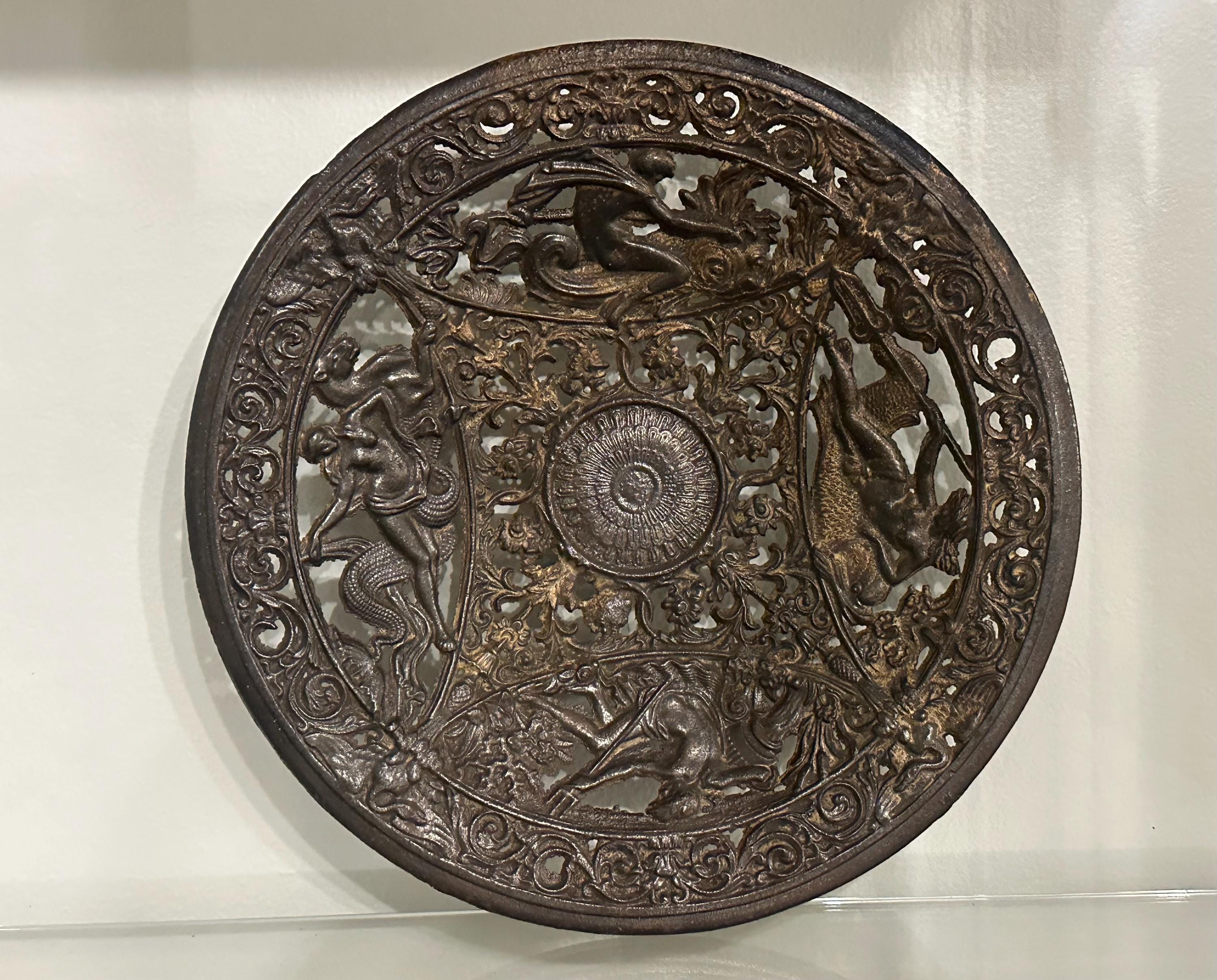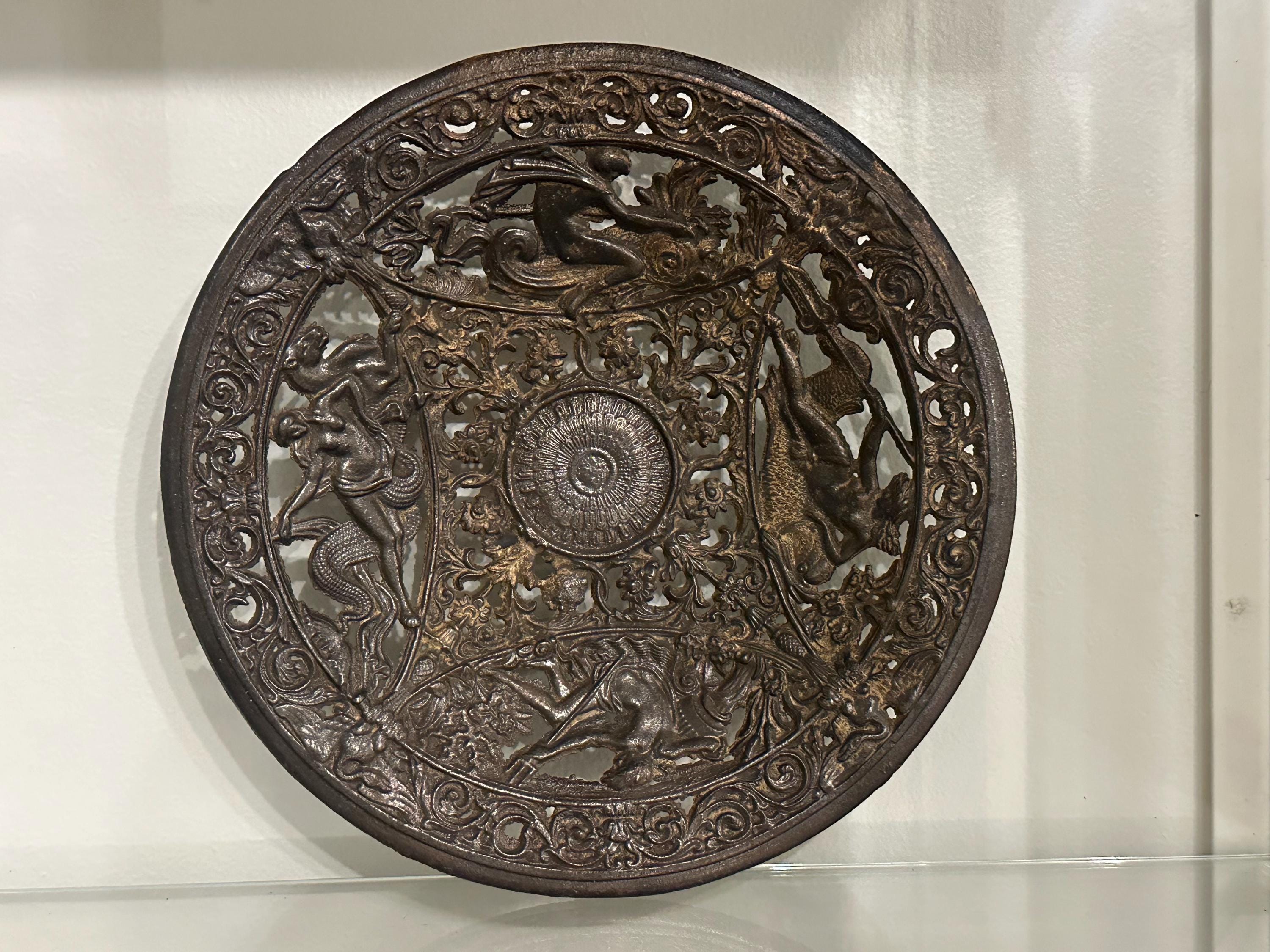 Antique Coalbrookdale Cast Bronze Decorative Plate – Mythological Figures & Scrollwork