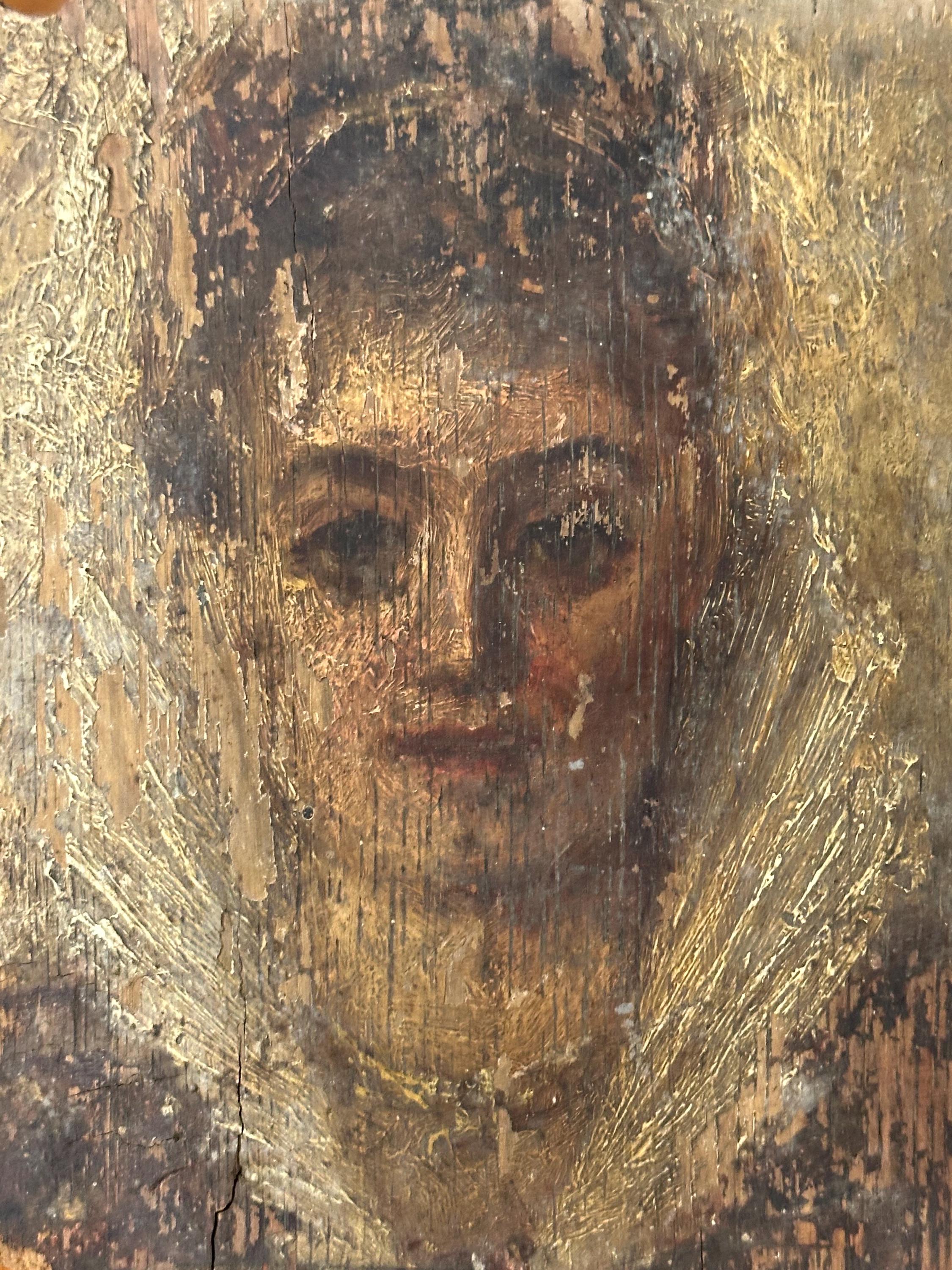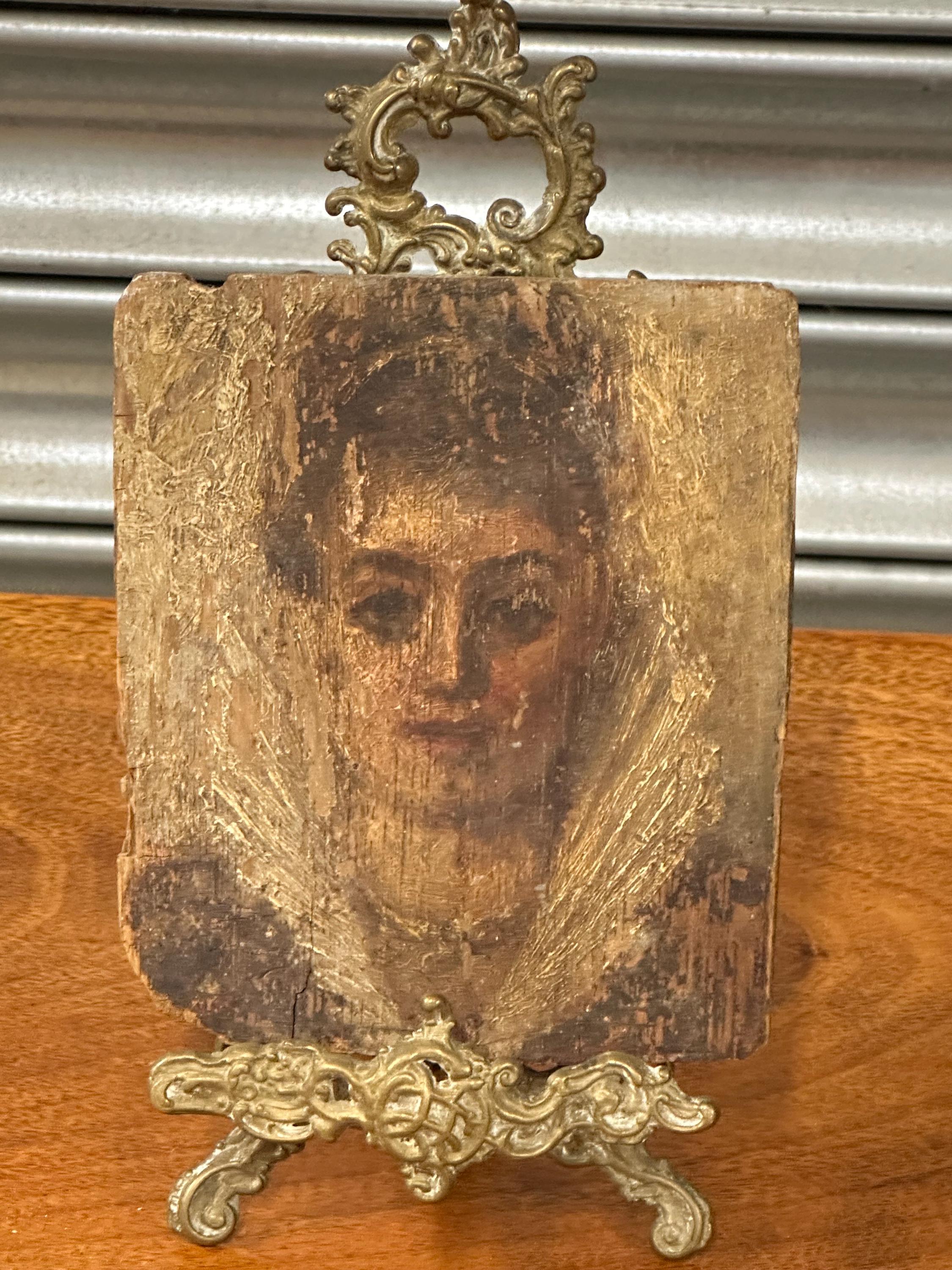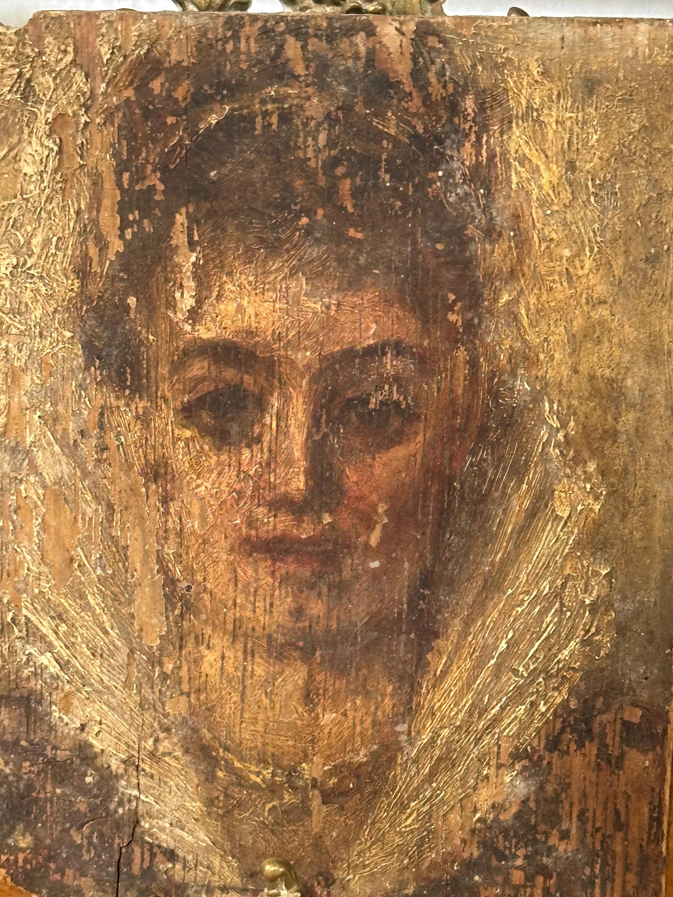 The painting shows attractive patina and surface wear consistent with age, adding to its authenticity and antique charm. It would look superb framed and displayed as a decorative period artwork.