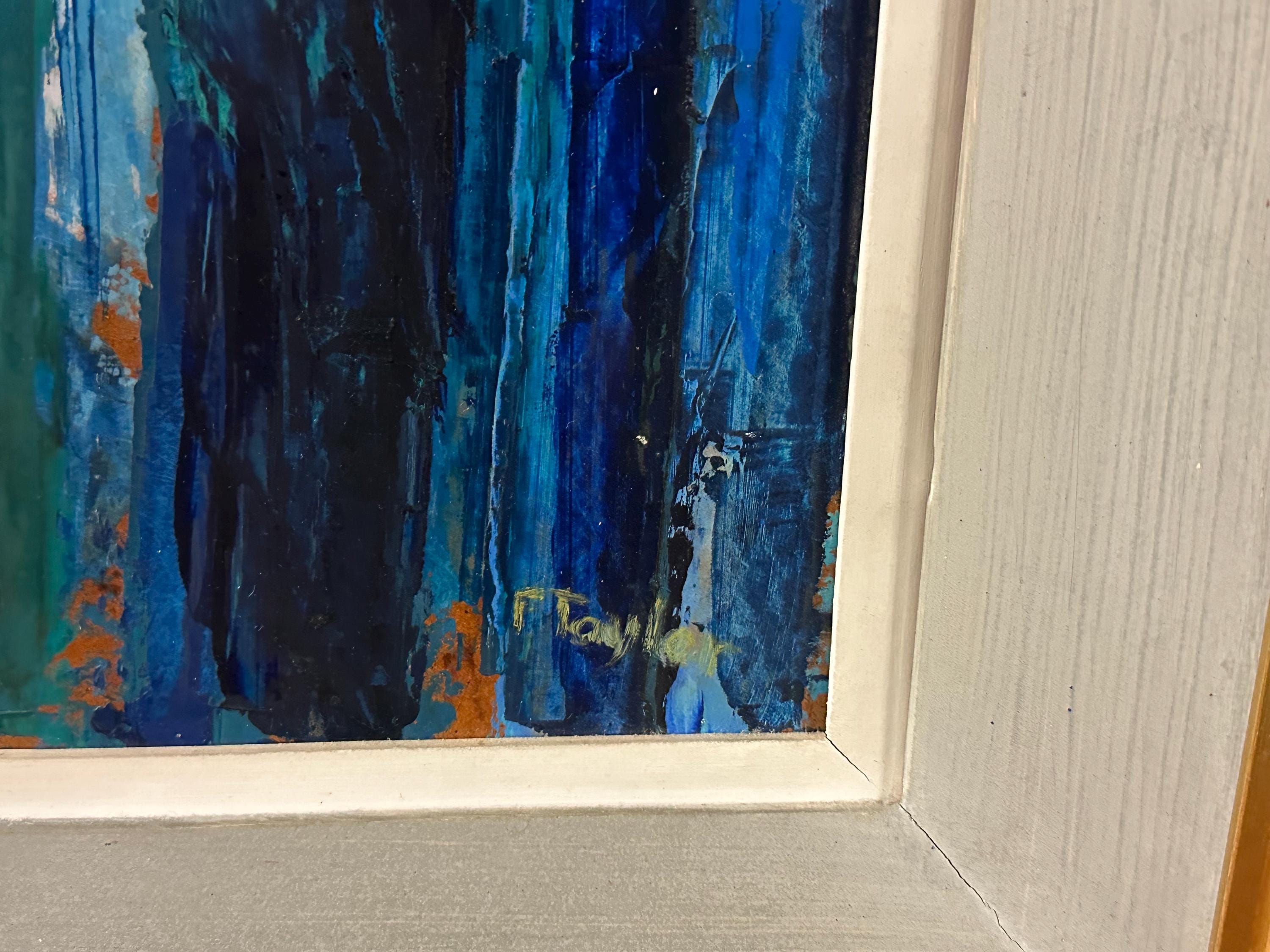 A decorative and characterful original artwork, ideal for adding mood and colour to a living space, hallway or study. A strong statement piece for collectors of original contemporary or mid-century-inspired art.