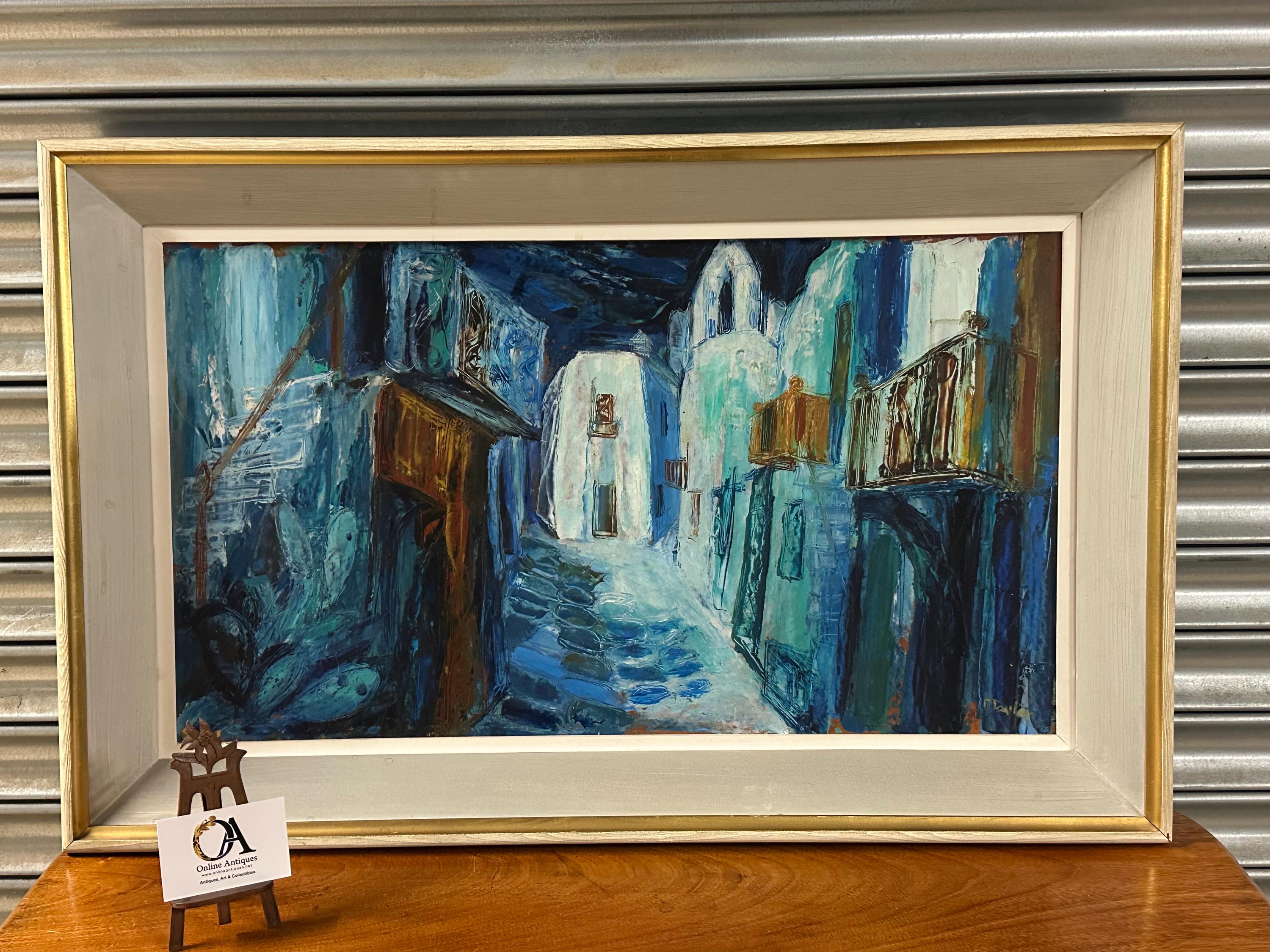 Striking Original Oil Painting on Board– Atmospheric European Street Scene – R Taylor