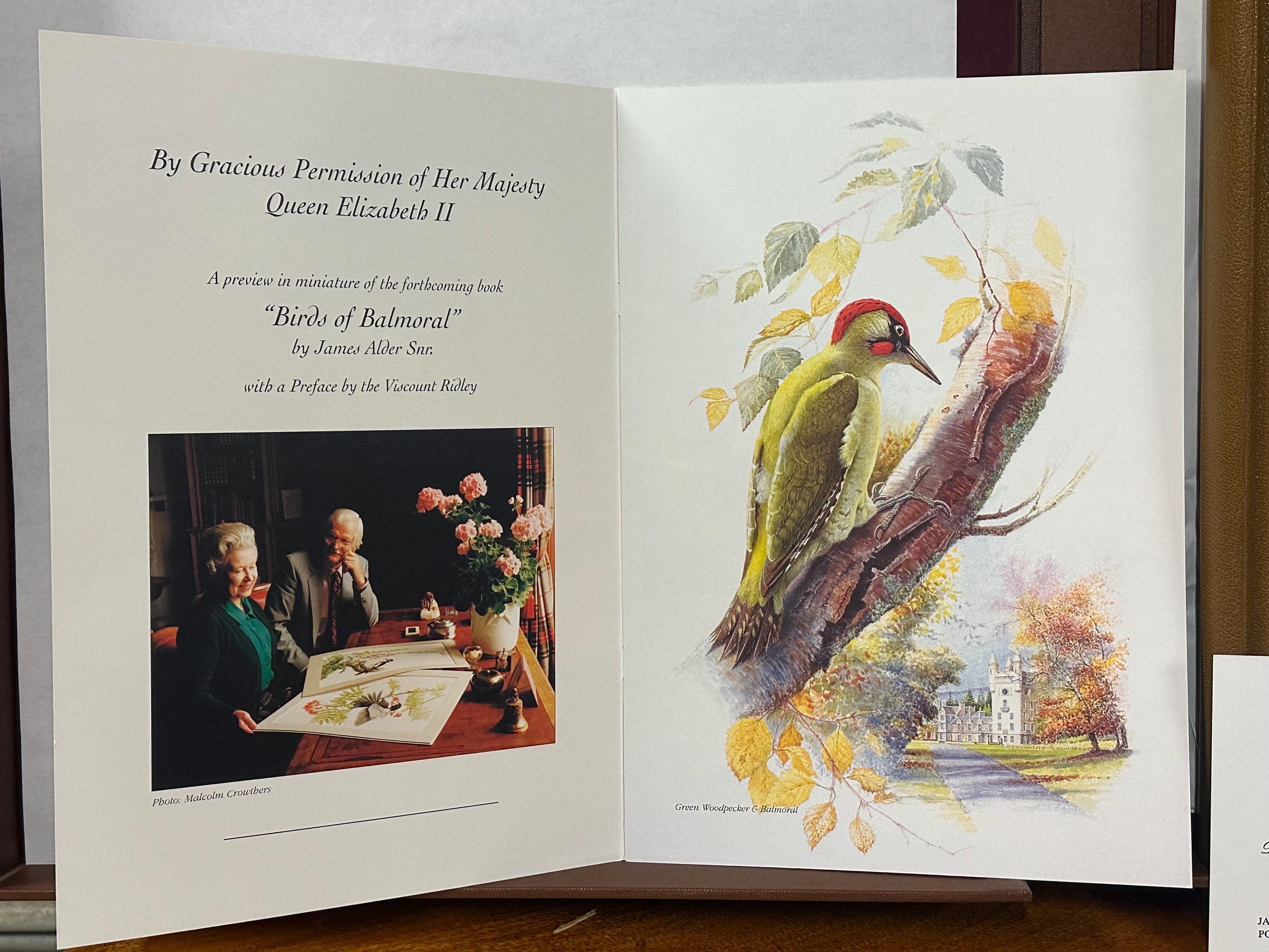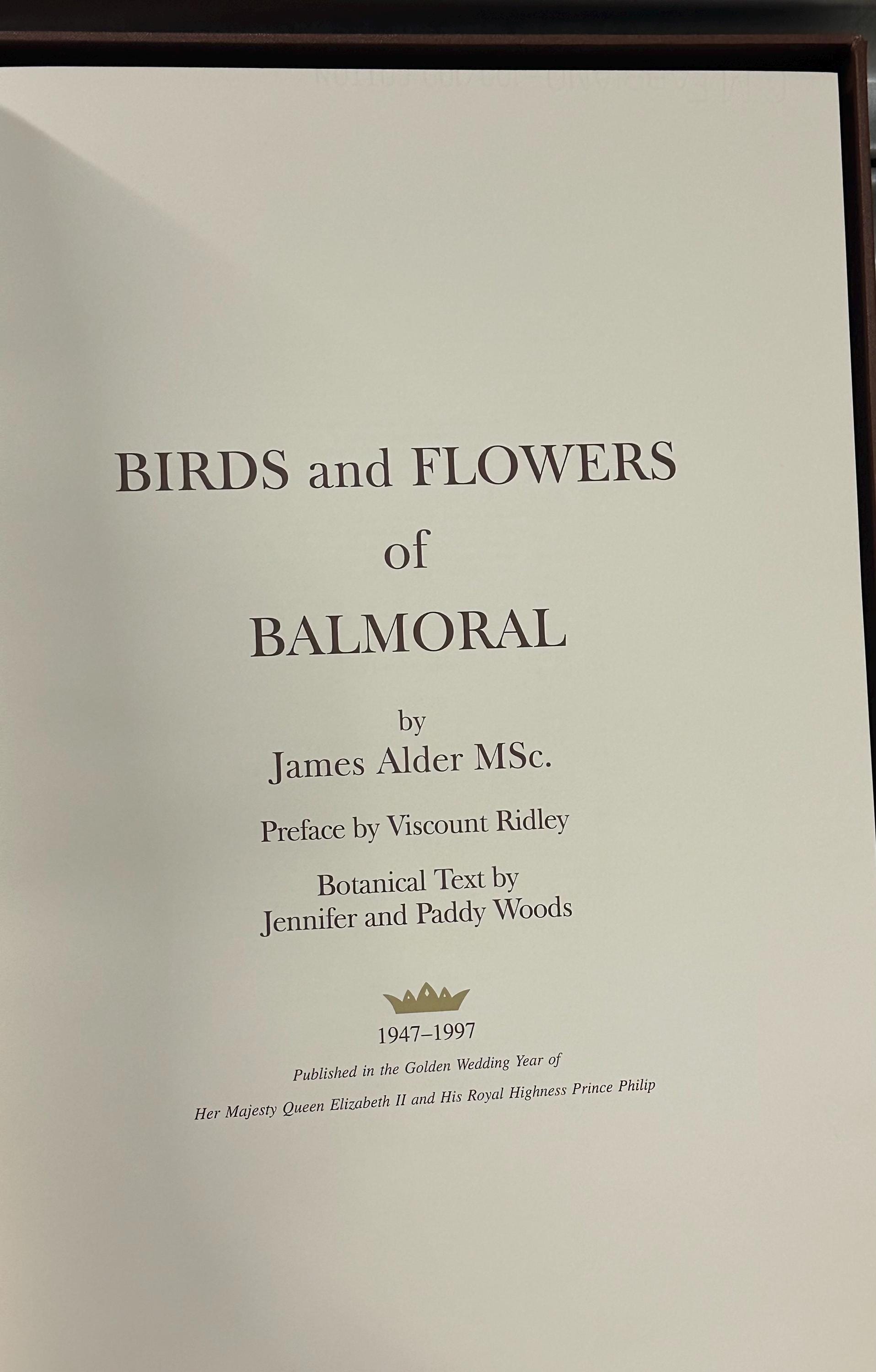 A beautiful and highly collectible limited edition volume titled Birds and Flowers of Balmoral, written by James Alder MSc, with a preface by Viscount Ridley and botanical text by Jennifer and Paddy Woods.