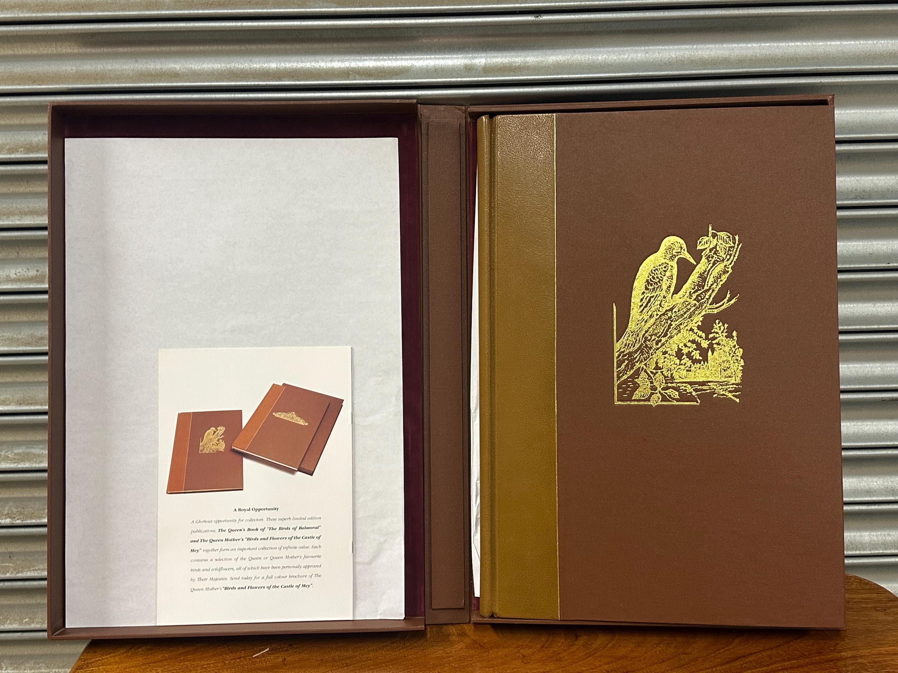 Lavishly produced, the book celebrates the flora and birdlife of the Balmoral Estate, combining authoritative text with elegant presentation. The title page bears the commemorative crown motif and dates, reinforcing its royal association.