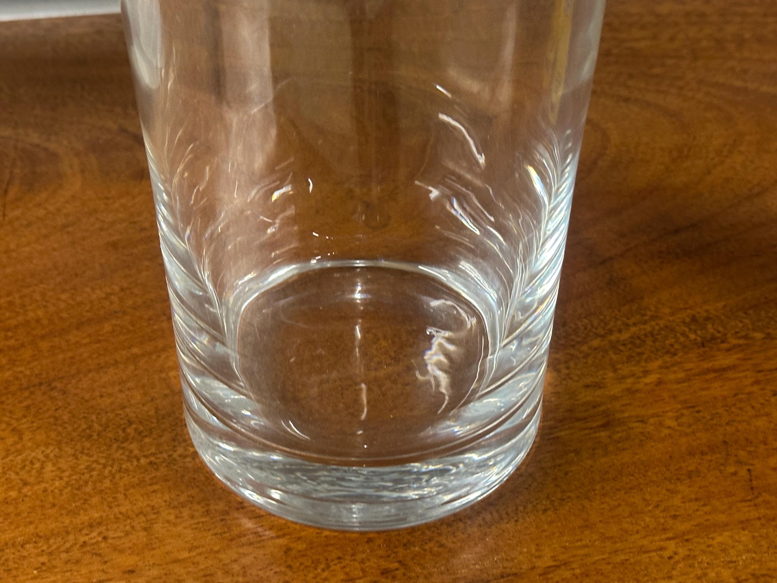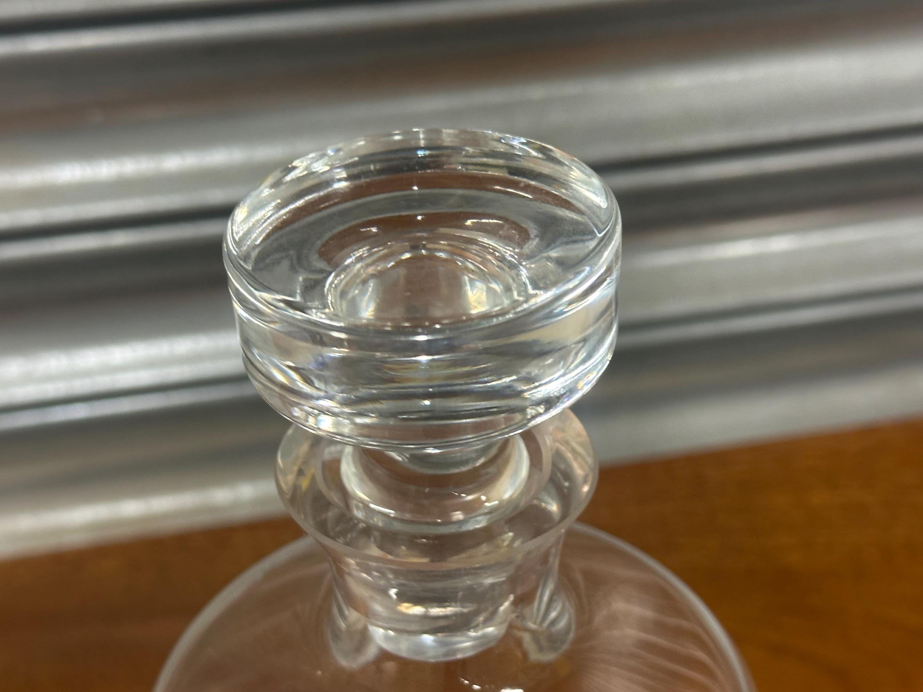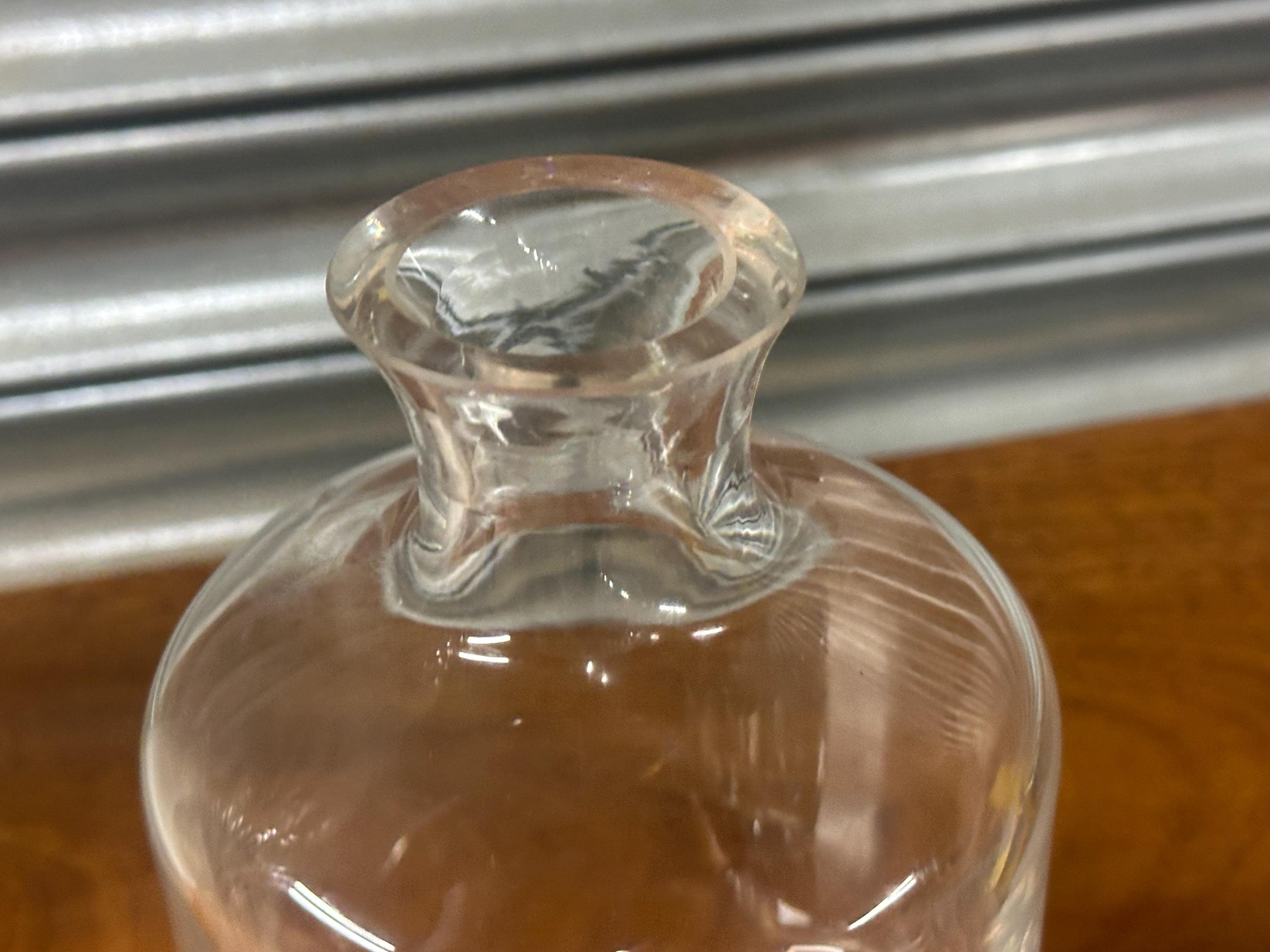 A classic clear glass decanter with matching stopper, simple and timeless in design. The decanter has a gently rounded shoulder tapering to a short neck, finished with a solid, well-fitting glass stopper. Made from good quality clear glass with a pleasing weight to the base, giving it stability and presence.