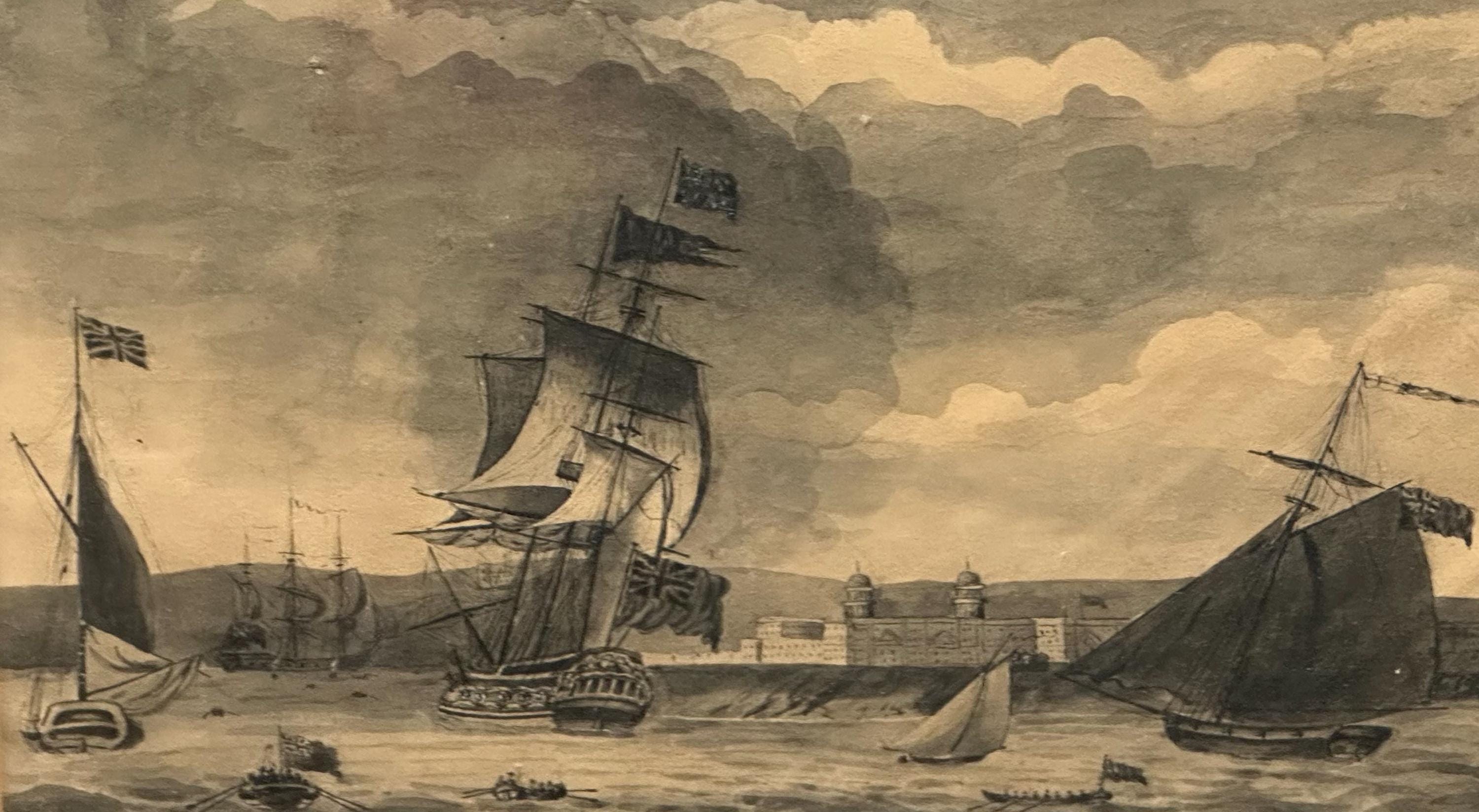 A charming and decorative antique maritime watercolour, ideal for collectors of marine art, naval history enthusiasts, or coastal interiors.