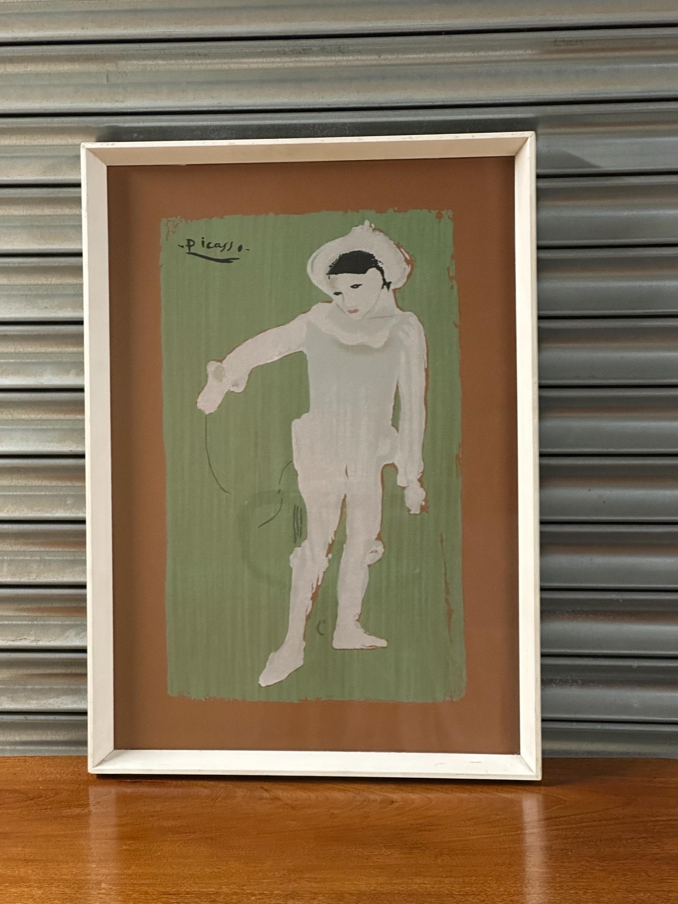 Framed Pablo Picasso Pierrot White Clown – Screen Print After the Original