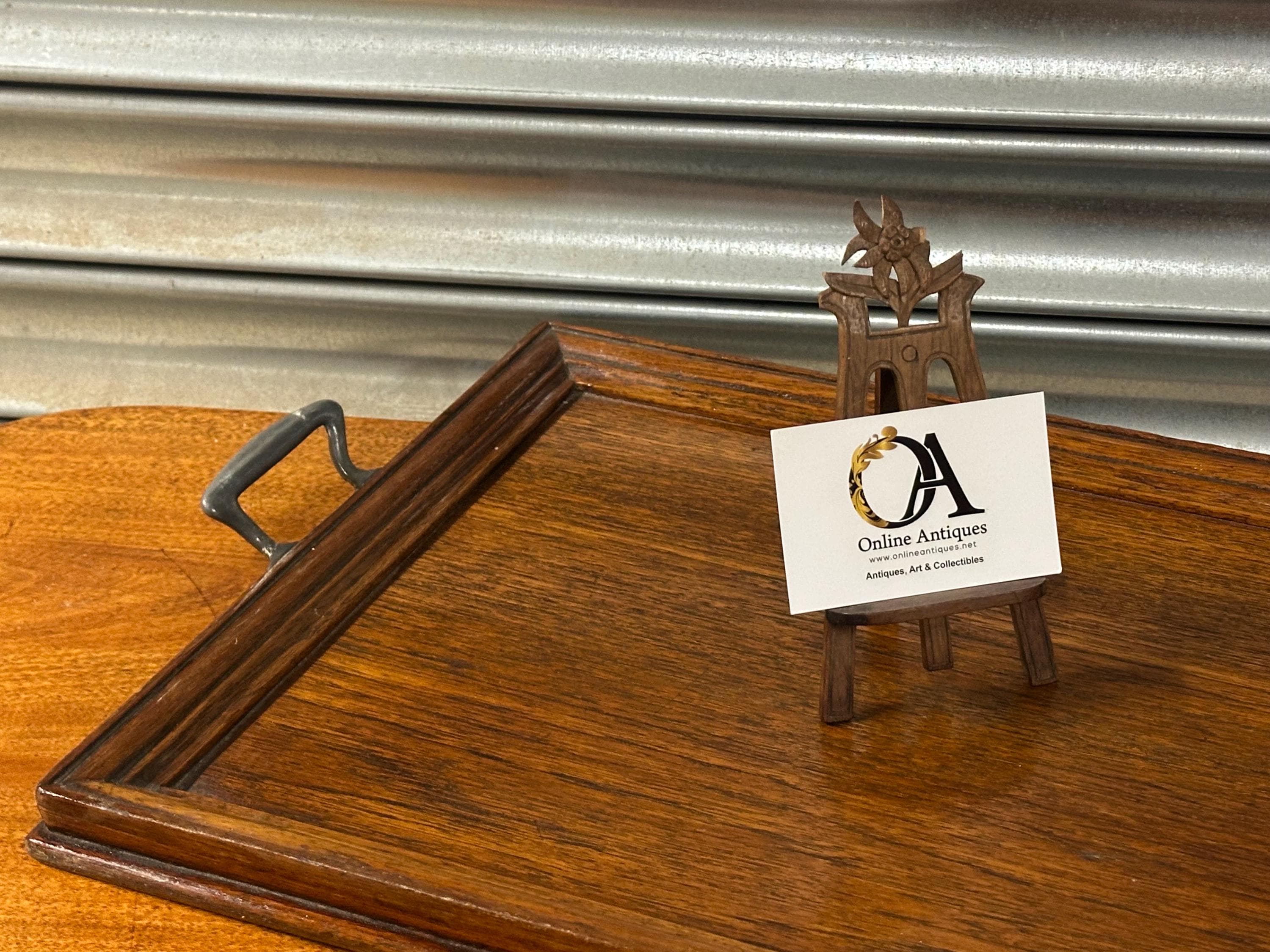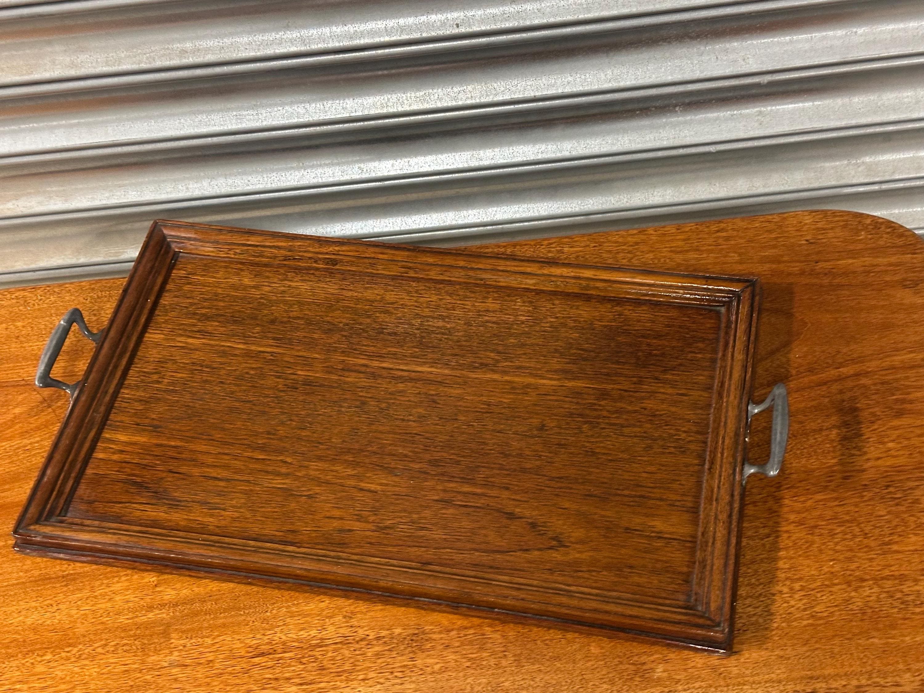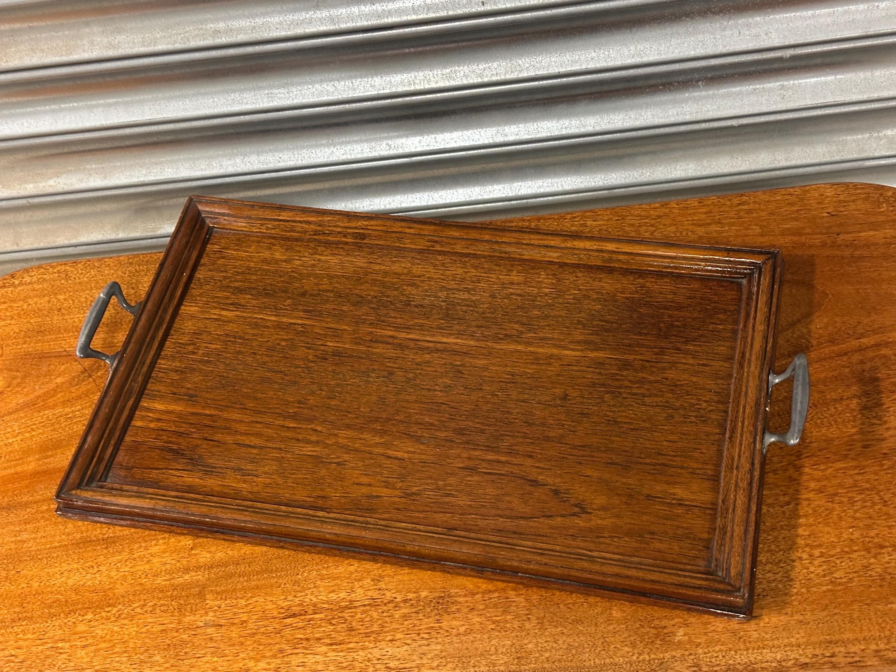 Antique British Solid Oak Butler’s Serving Tray with Raised Metal Handles c1930s
