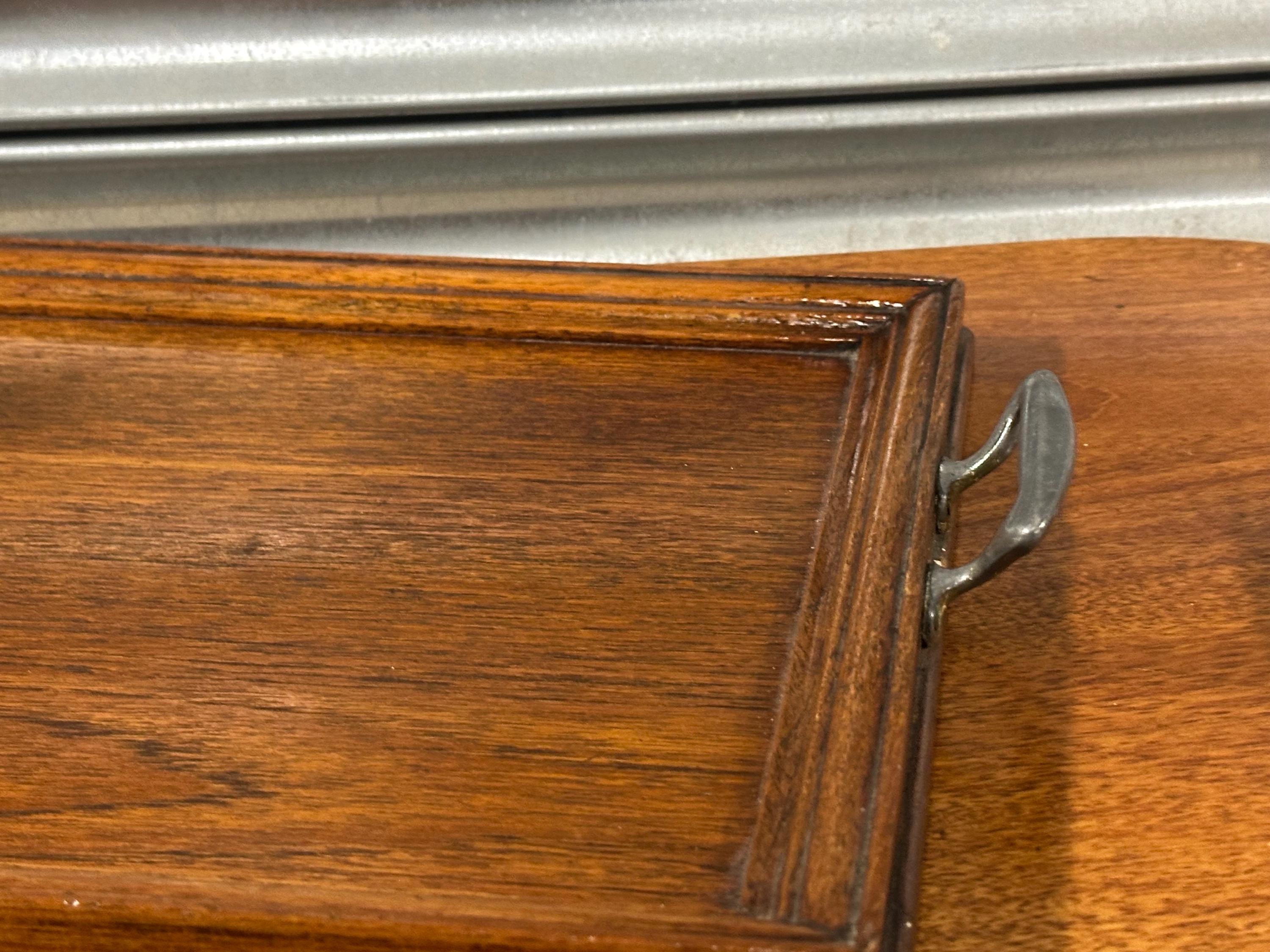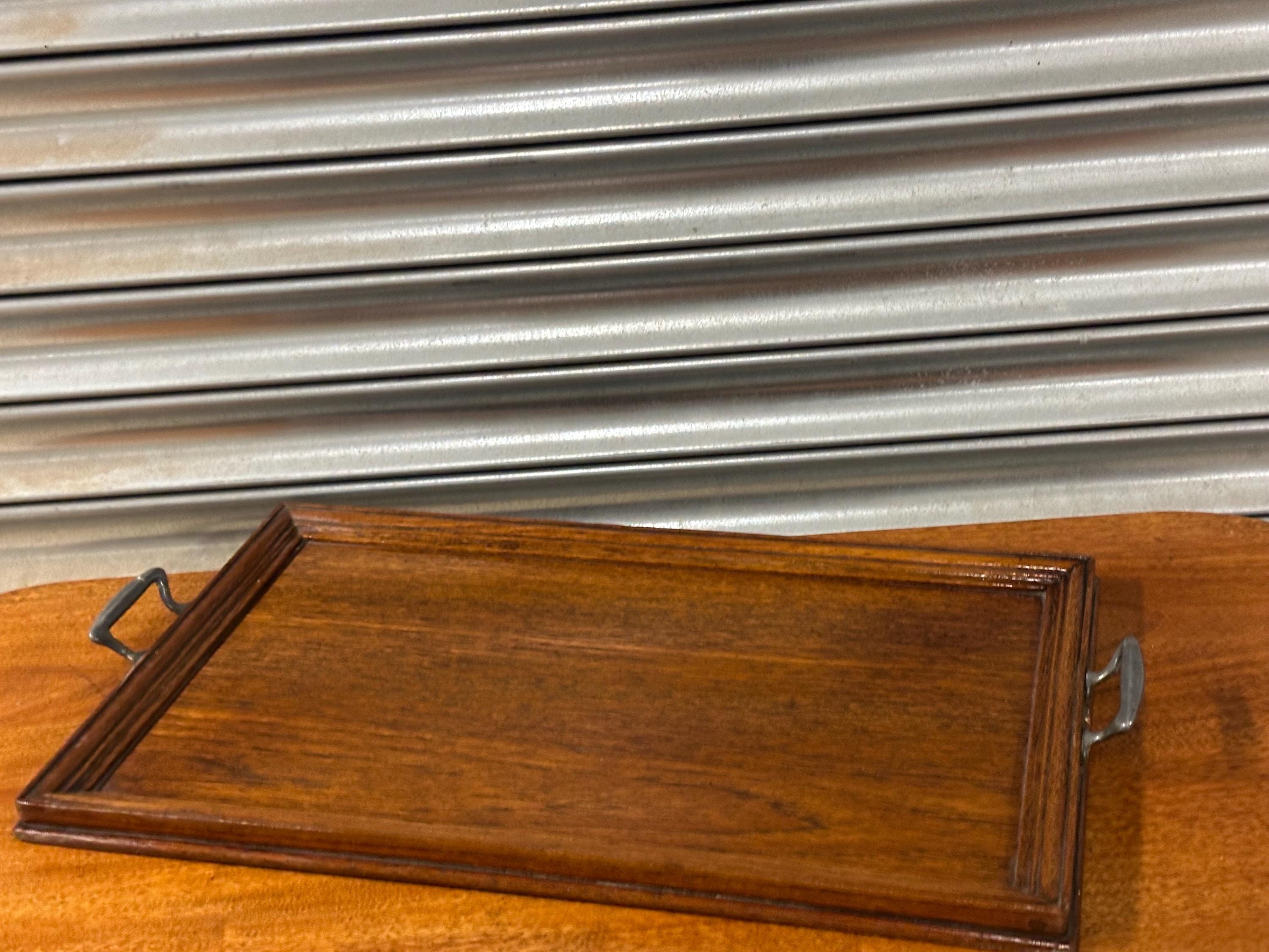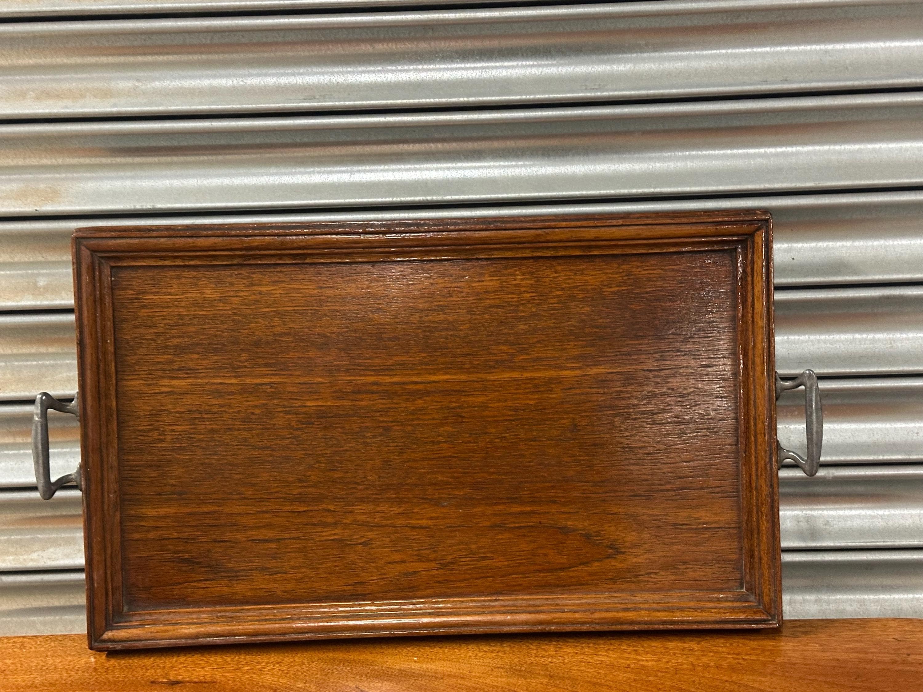 Antique British Solid Oak Butler’s Serving Tray with Raised Metal Handles c1930s