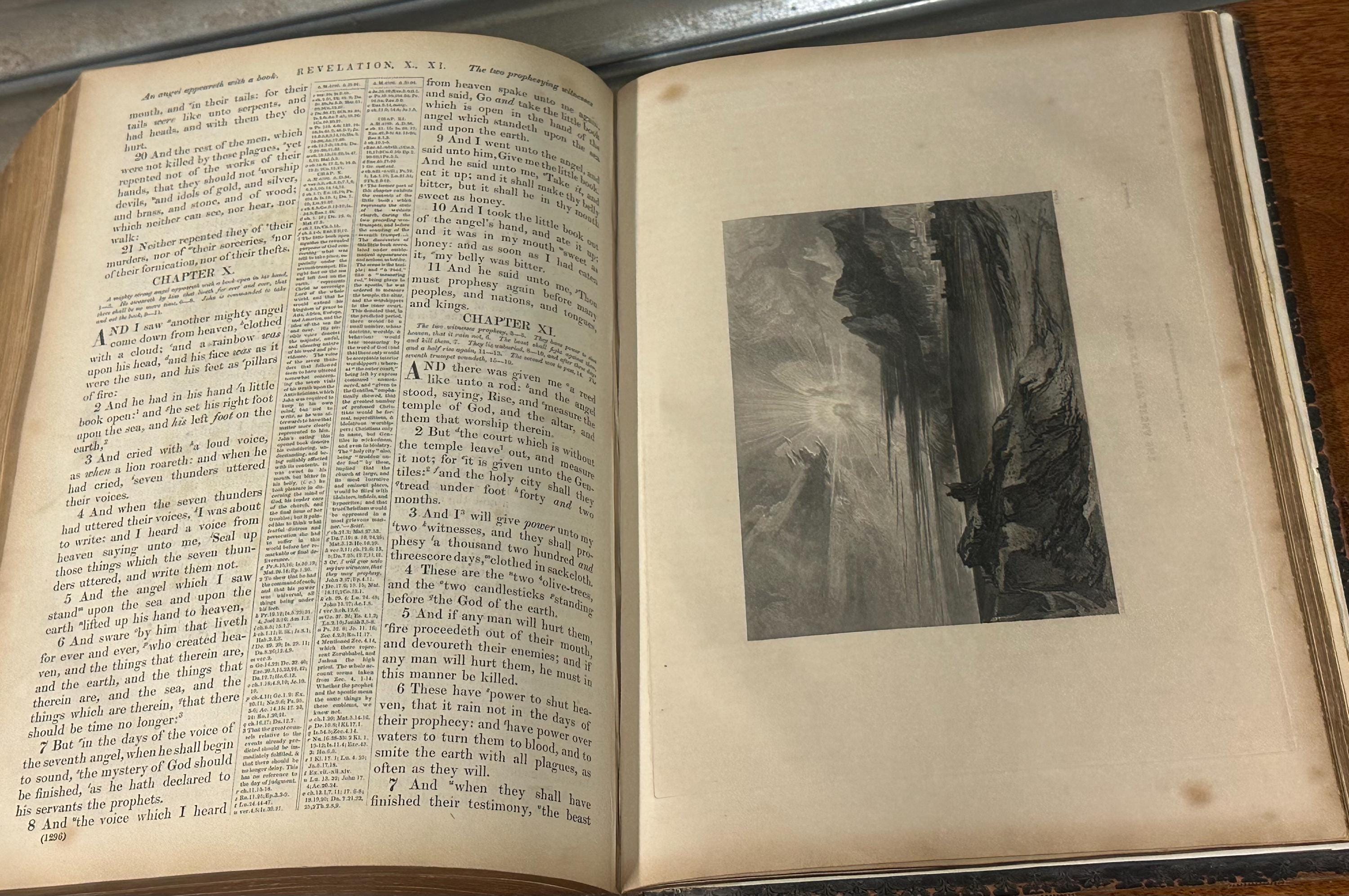 This large-format Bible contains the Old and New Testaments according to the Authorised Version and is richly illustrated with a superb series of engraved plates, typical of high-quality Victorian family Bibles. It also includes family register page which has not been filled in, beautifully decorated with detailed allegorical and domestic engravings, intended for recording births, marriages and deaths.