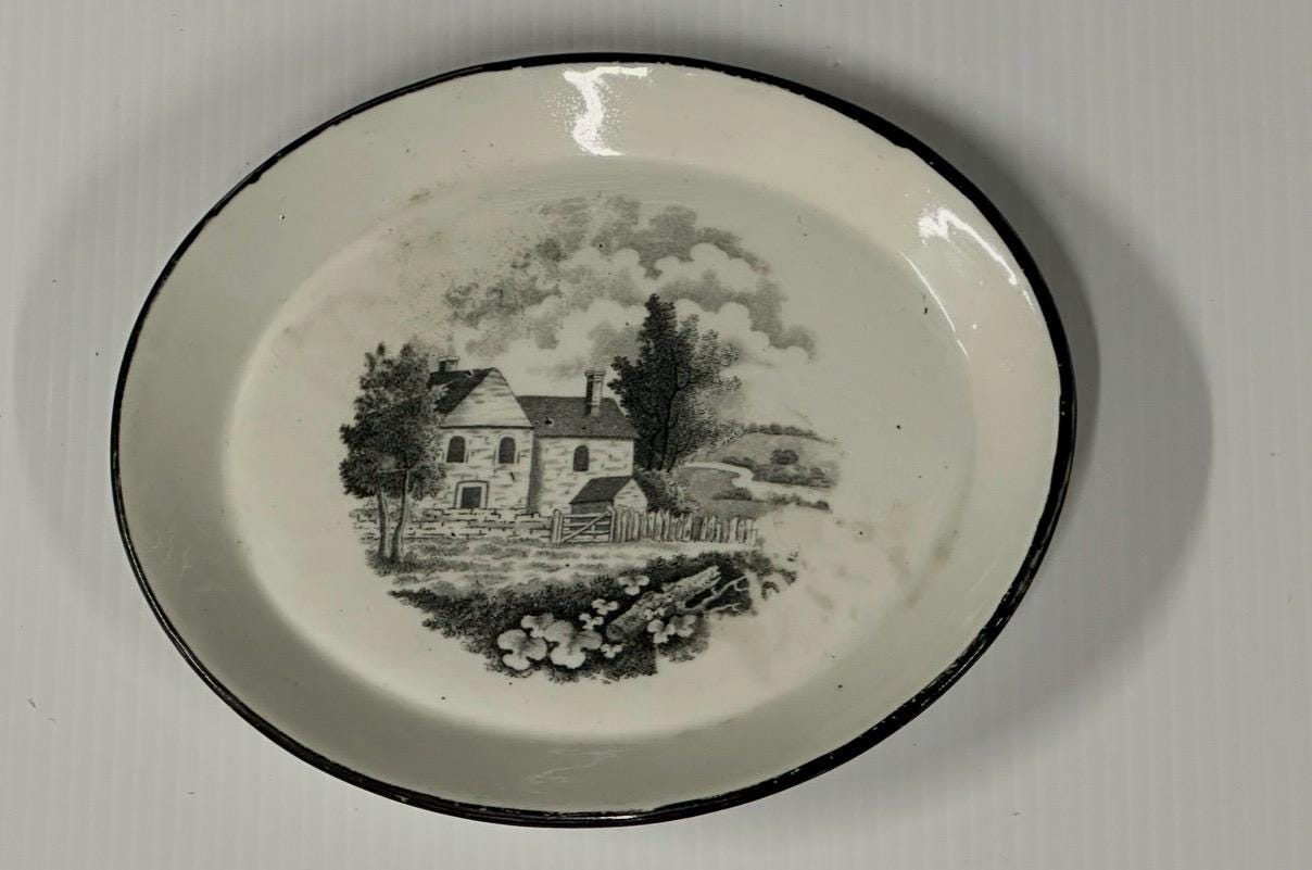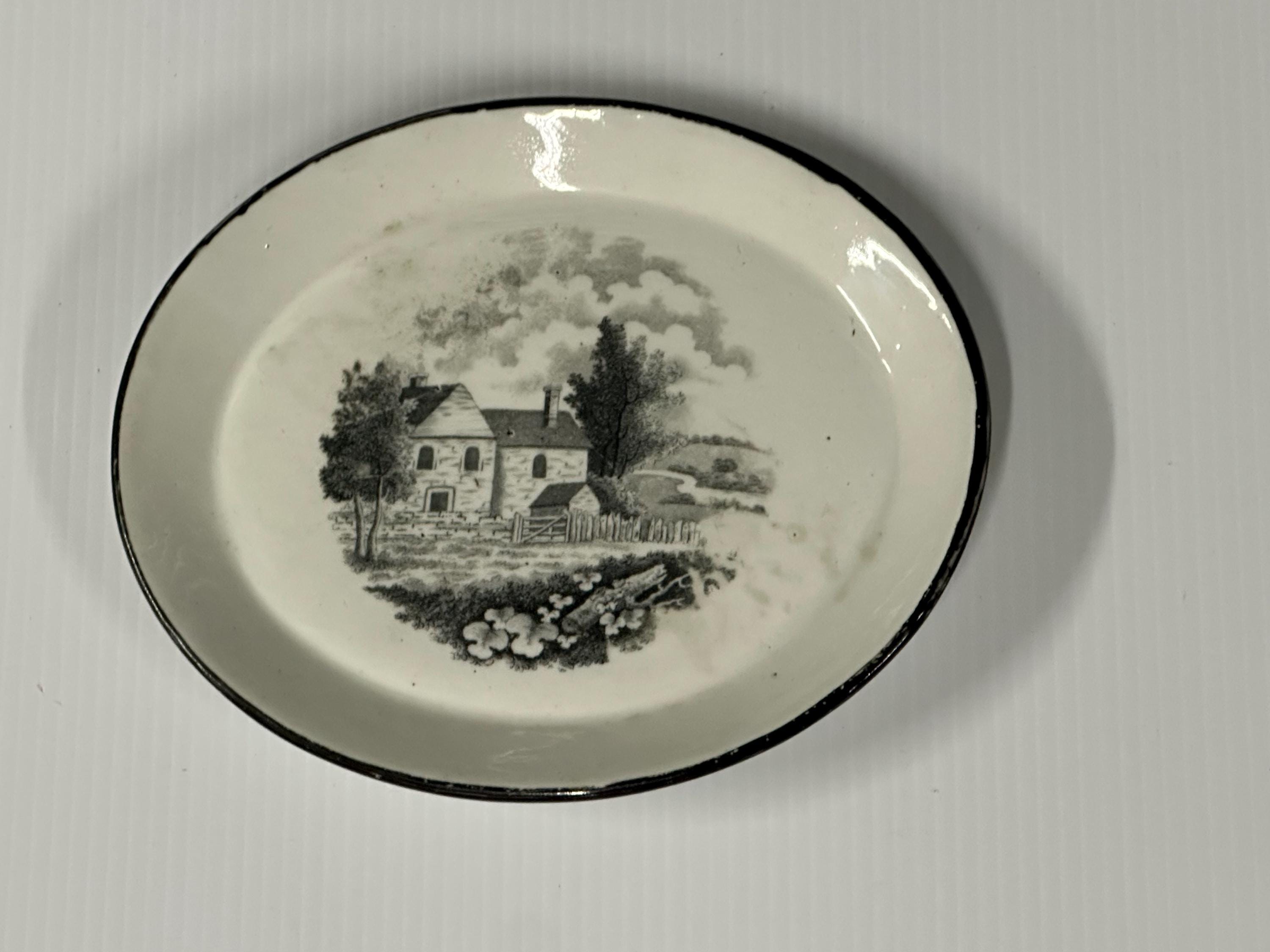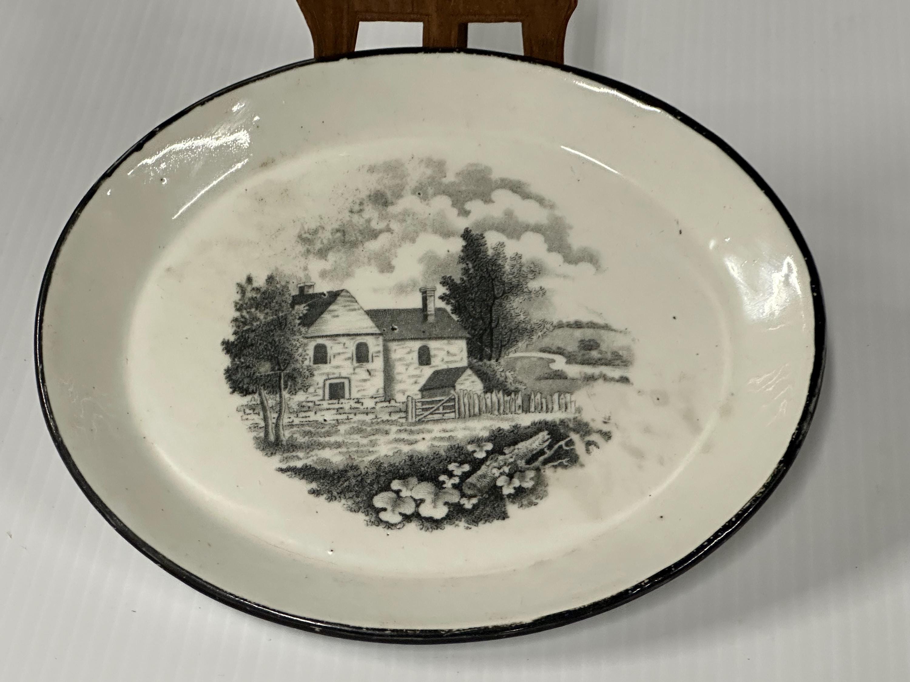 Antique Georgian New Hall Black Transferware Plate c.1795–1805