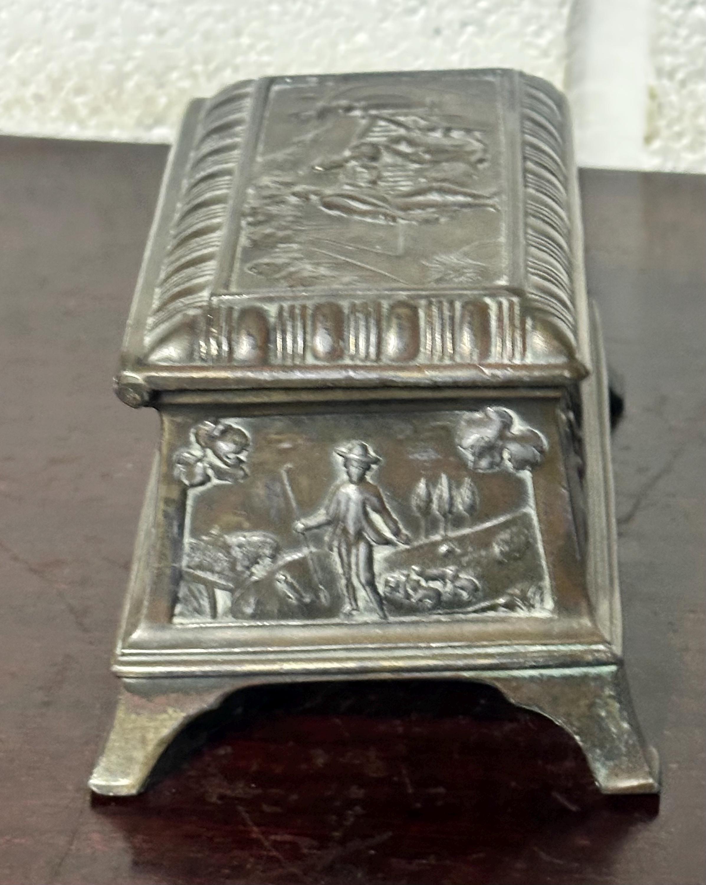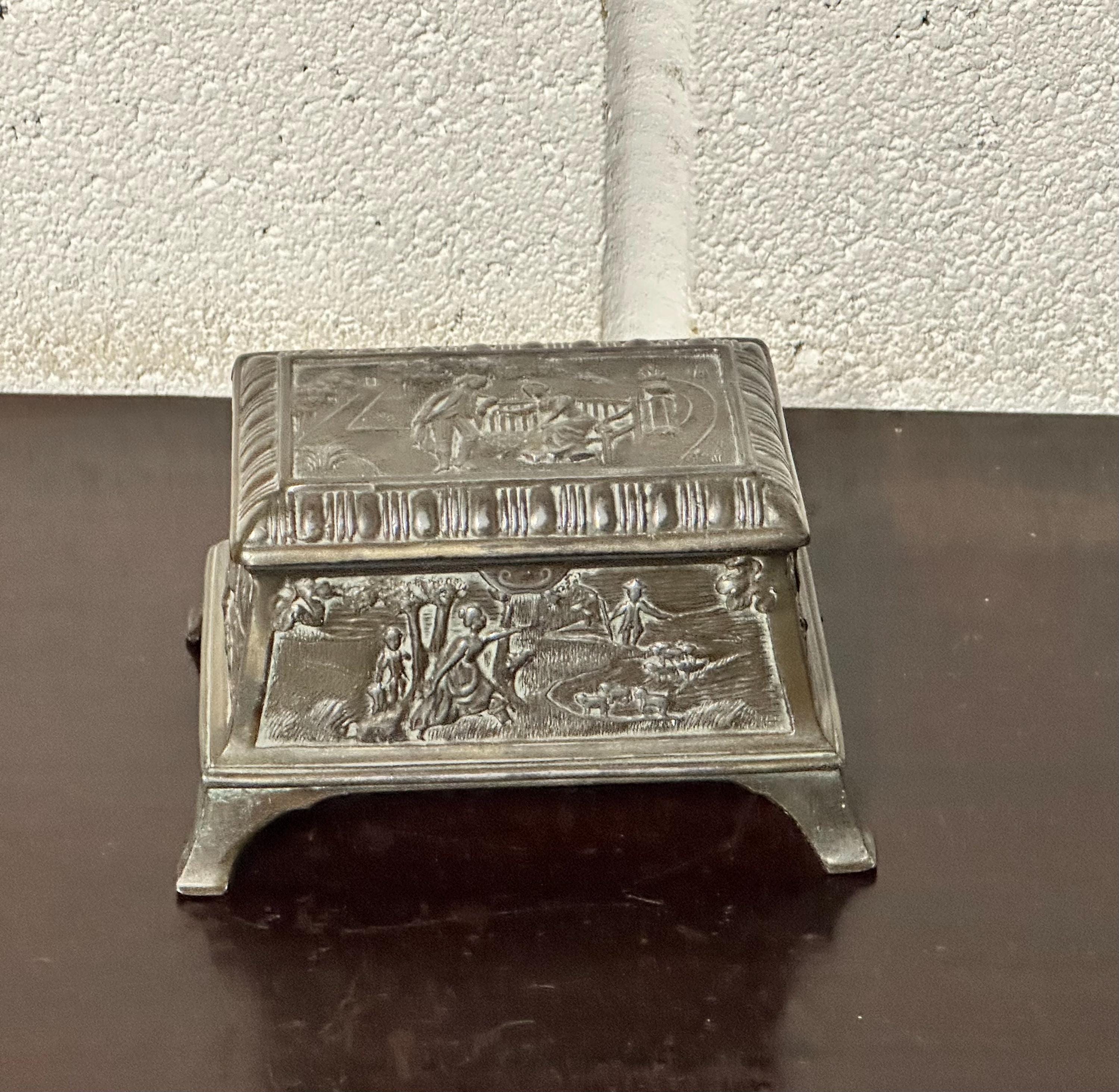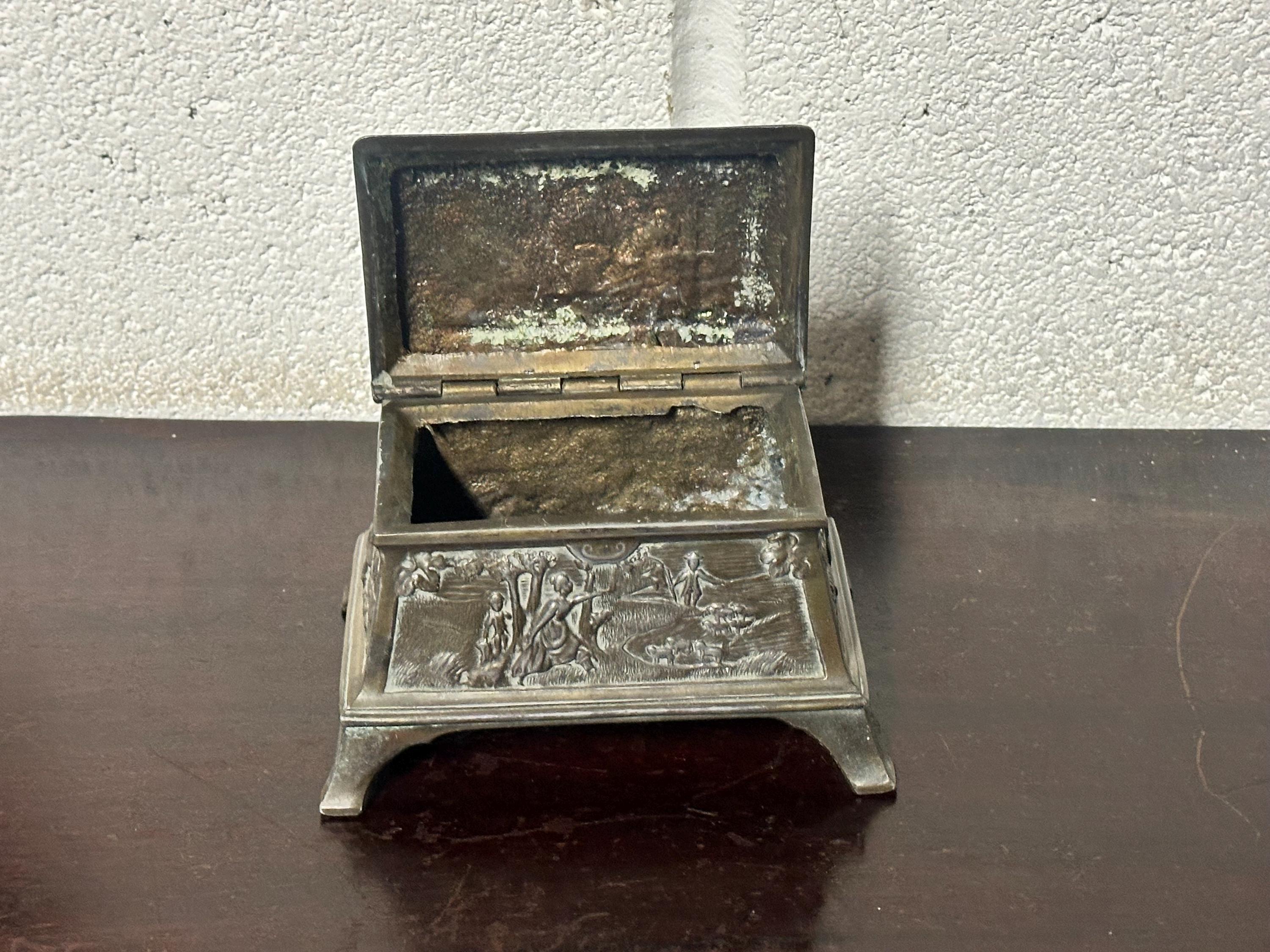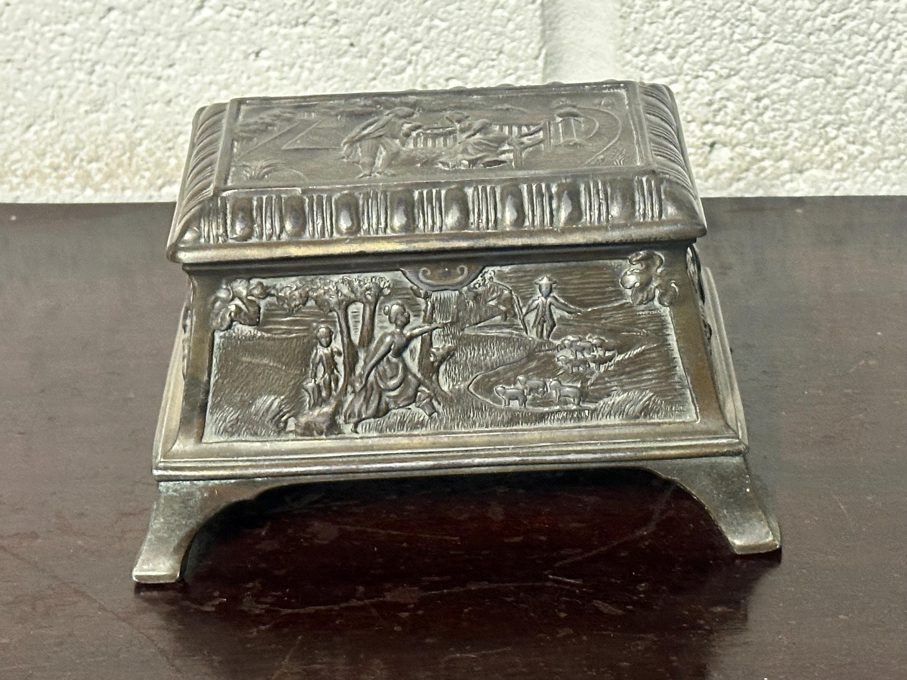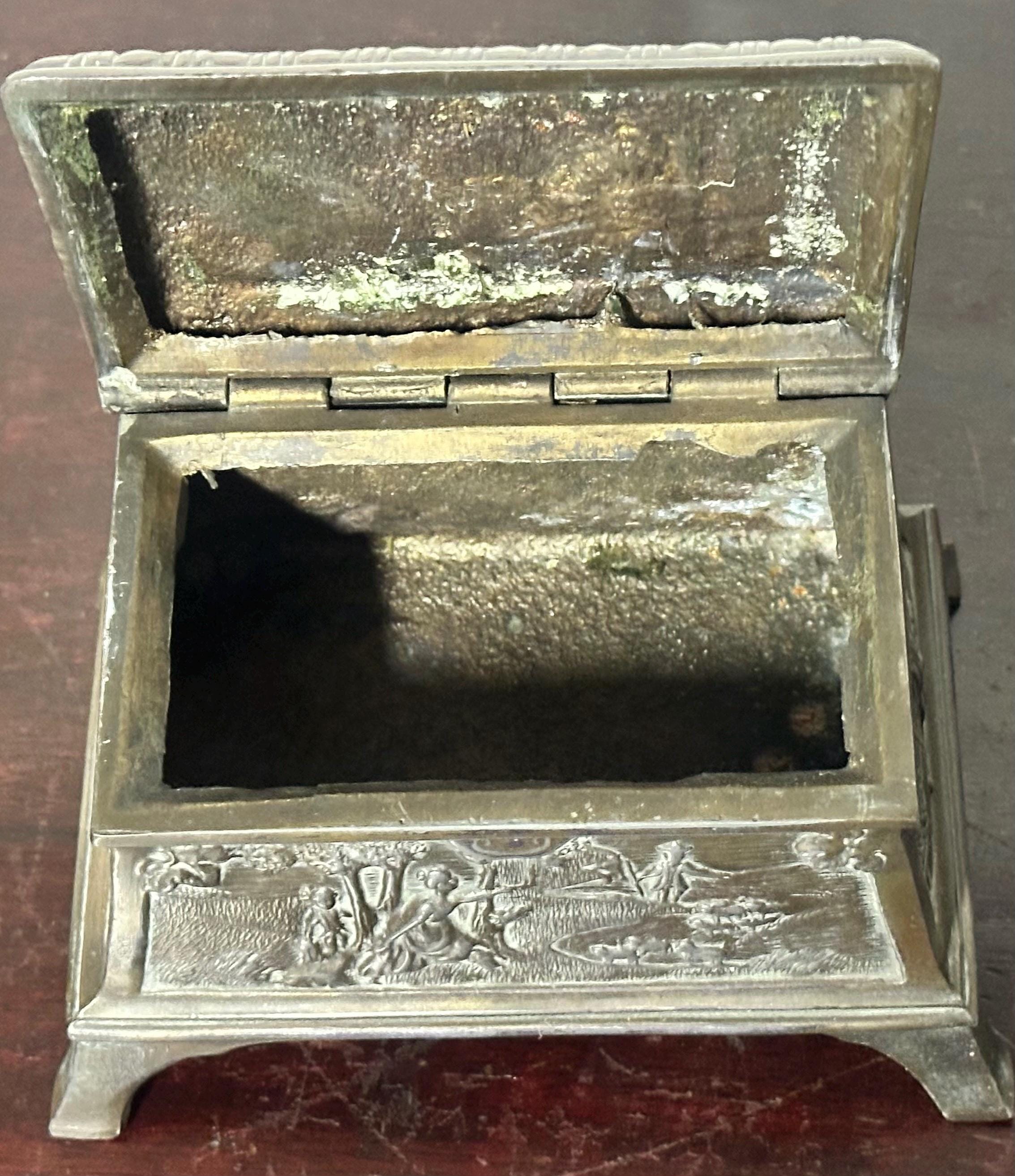 Antique Ornate Embossed Bronze Trinket & Jewellery Box – Footed Casket